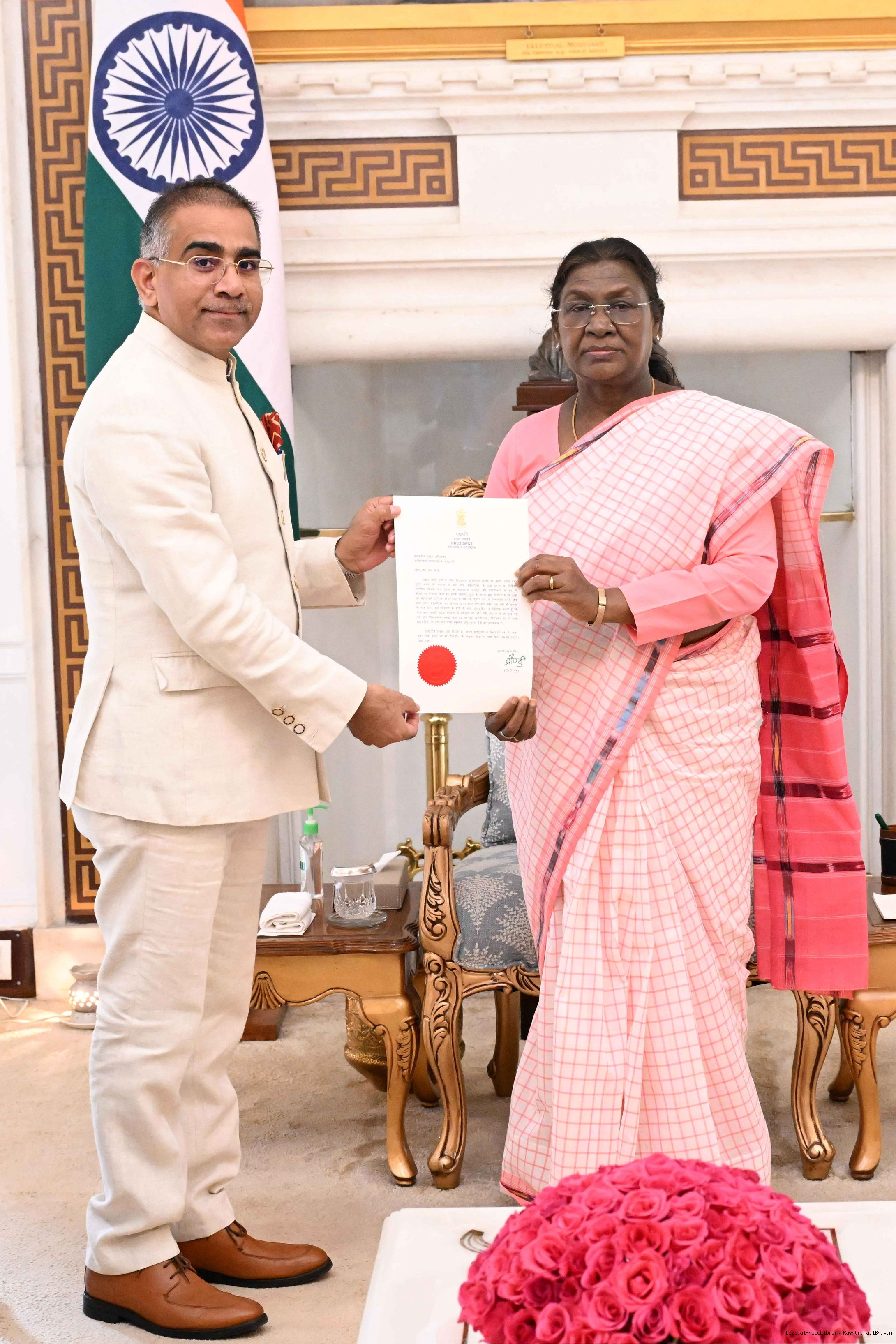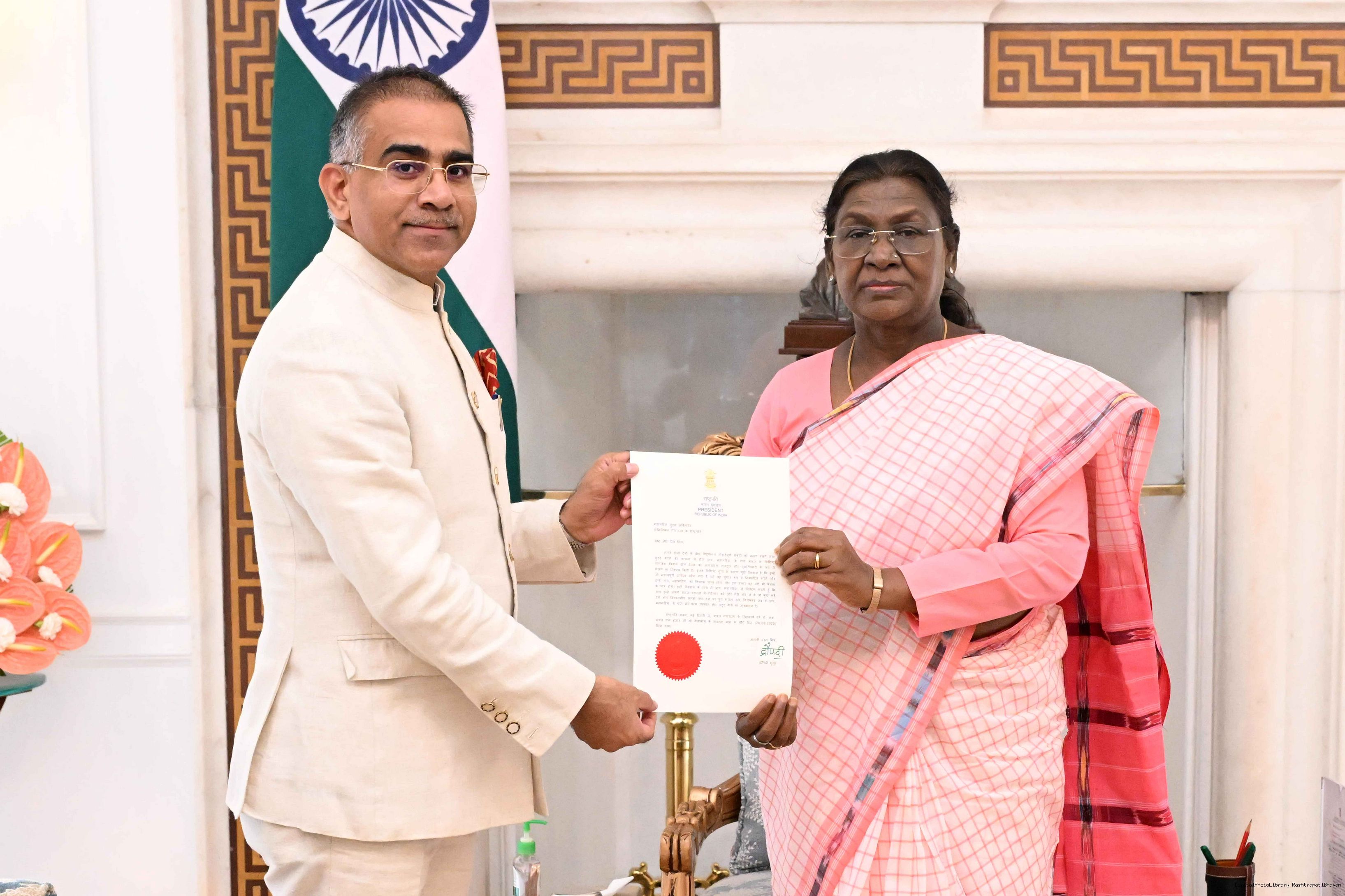 | Caption: | The Ambassador-designate of India to Dominican Republic, Shri K.D. Dewal meeting with the President of India, Smt Droupadi Murmu, at Rashtrapati Bhavan on September 17, 2025. |