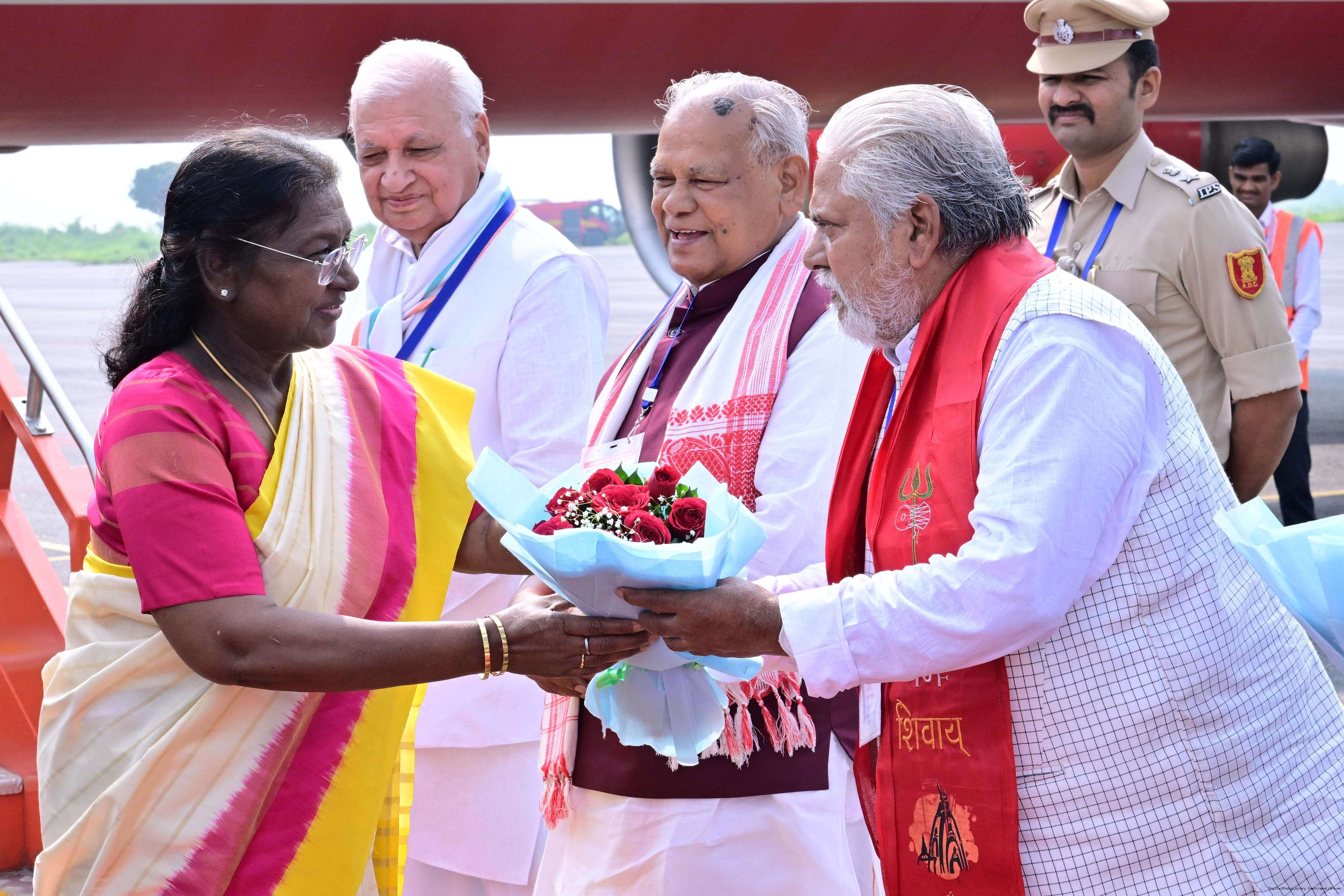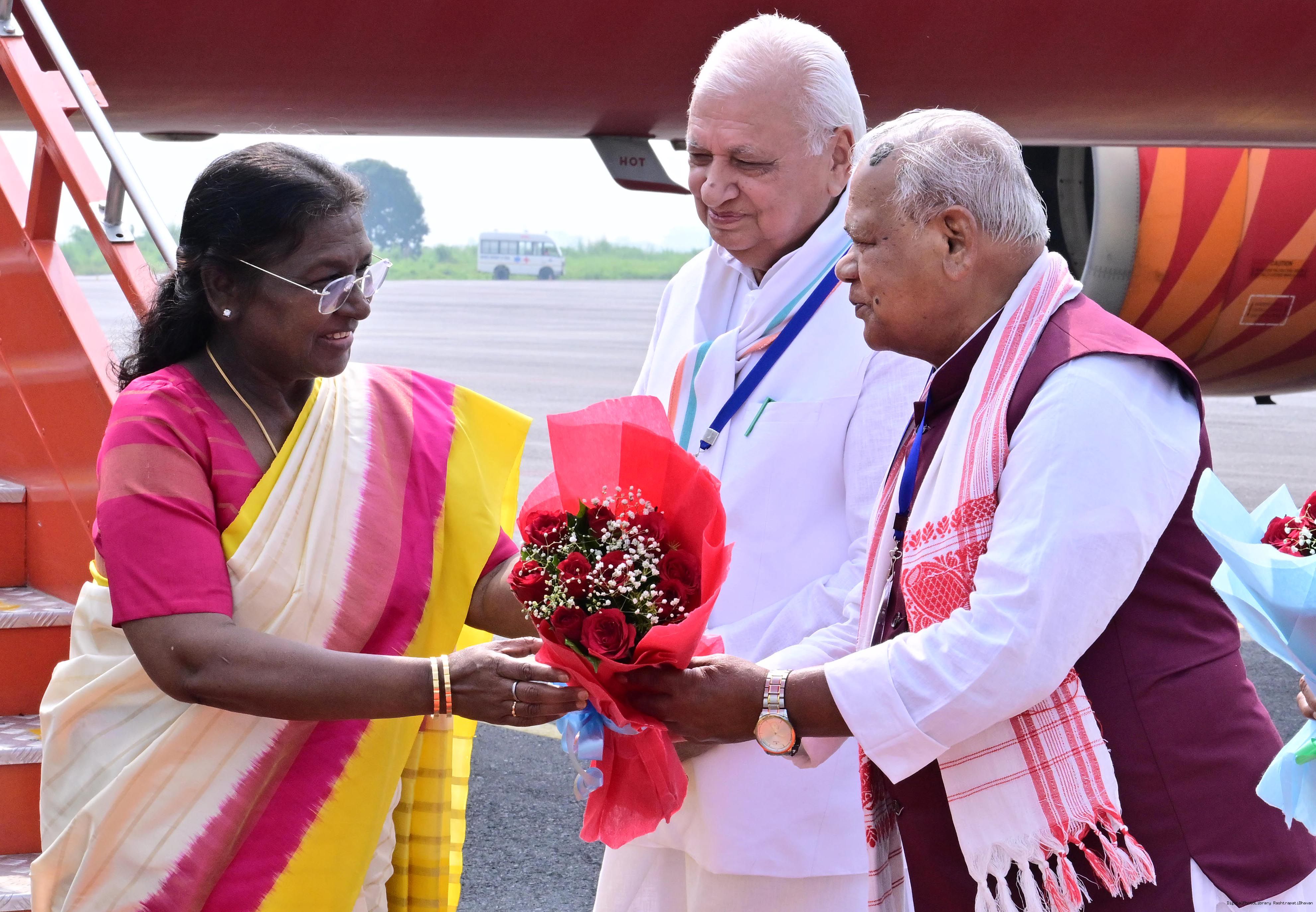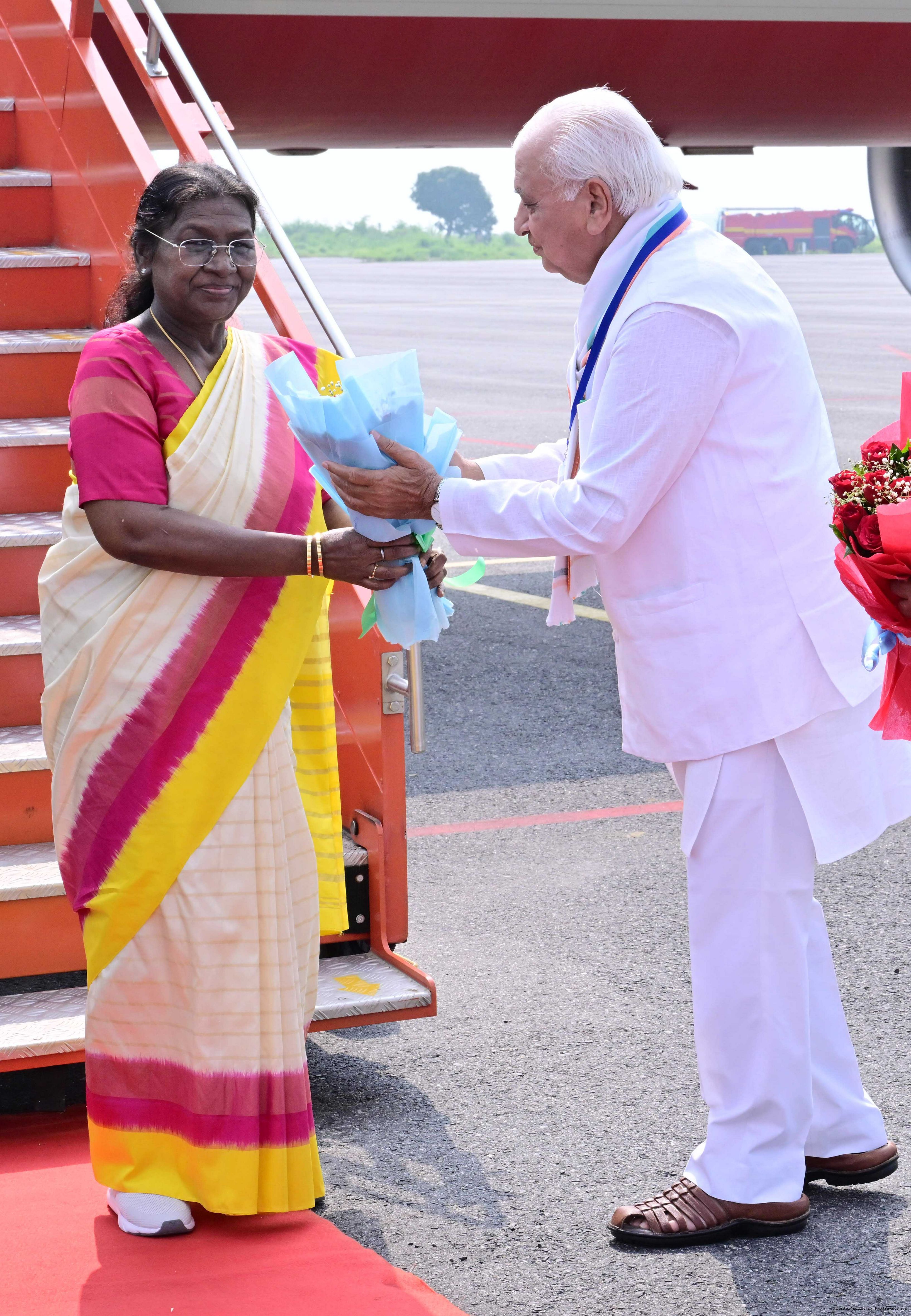| Caption: | The Governor of Bihar, Shri Arif Mohammed Khan, Union Minister for Micro, Small and Medium Enterprises, Shri Jitan Ram Manjhi and Minister of Co-operative, Government of Bihar, Dr Prem Kumar, received the President of India, Smt. Droupadi Murmu on her arrival at Gaya, Bihar on September 20, 2025. |