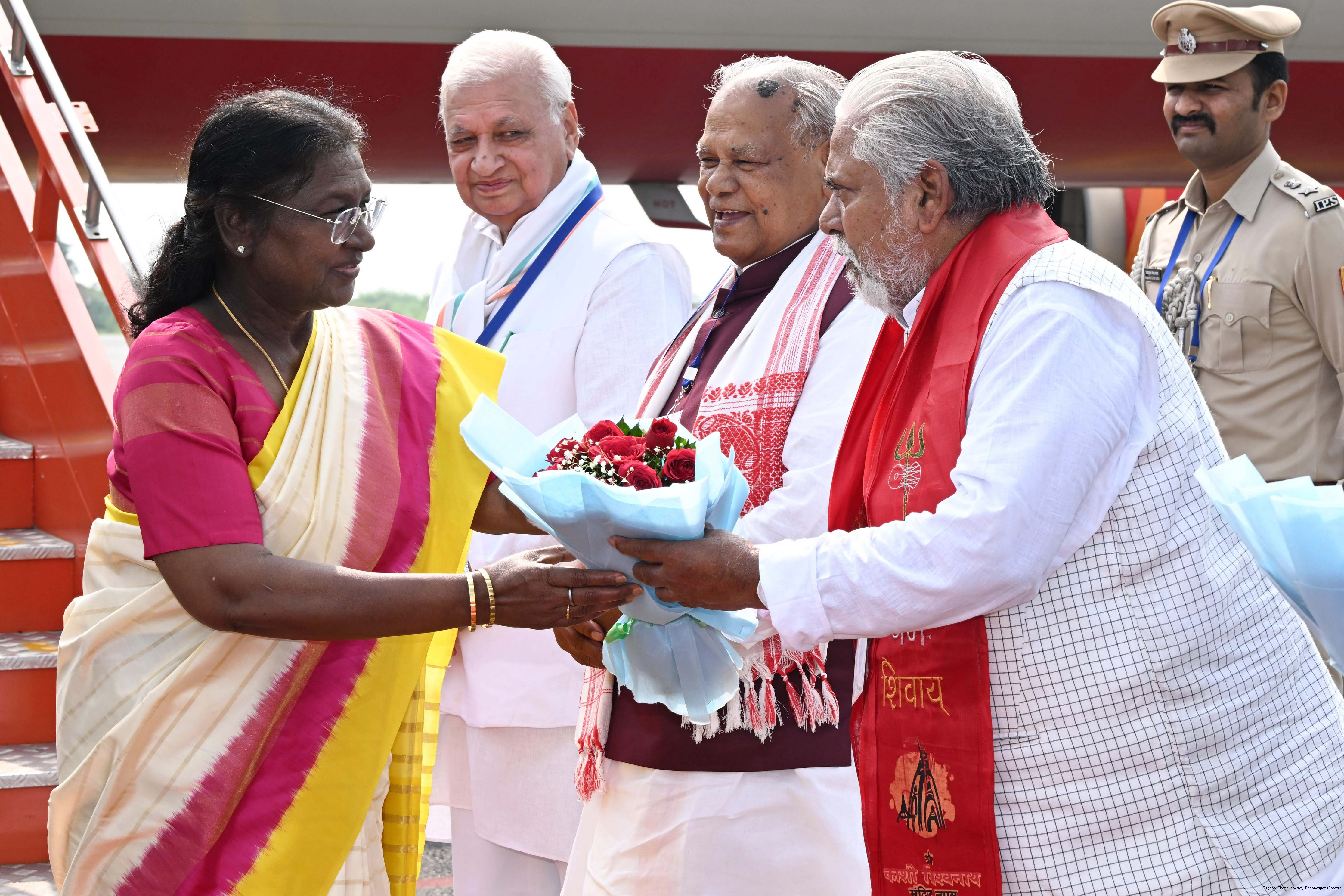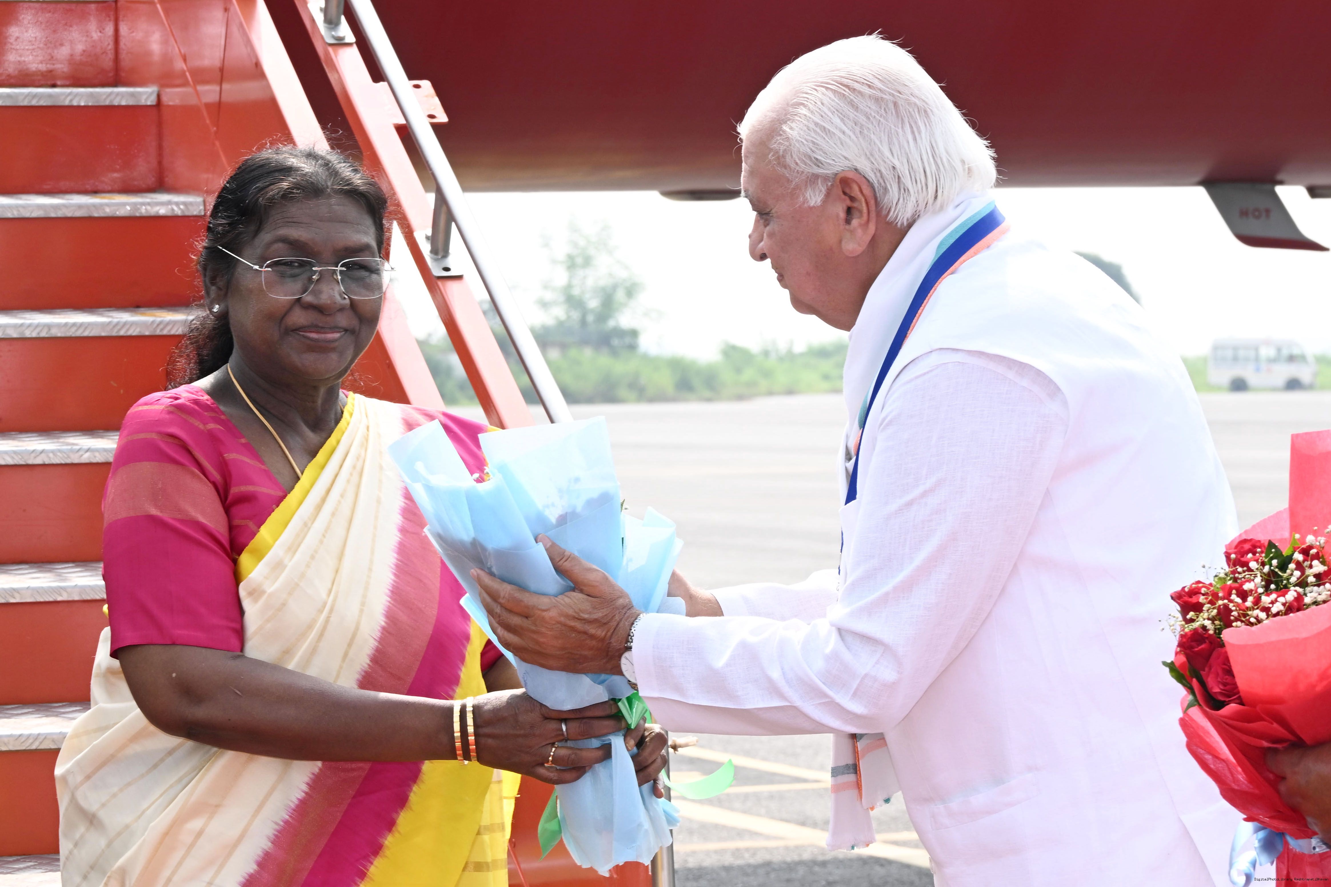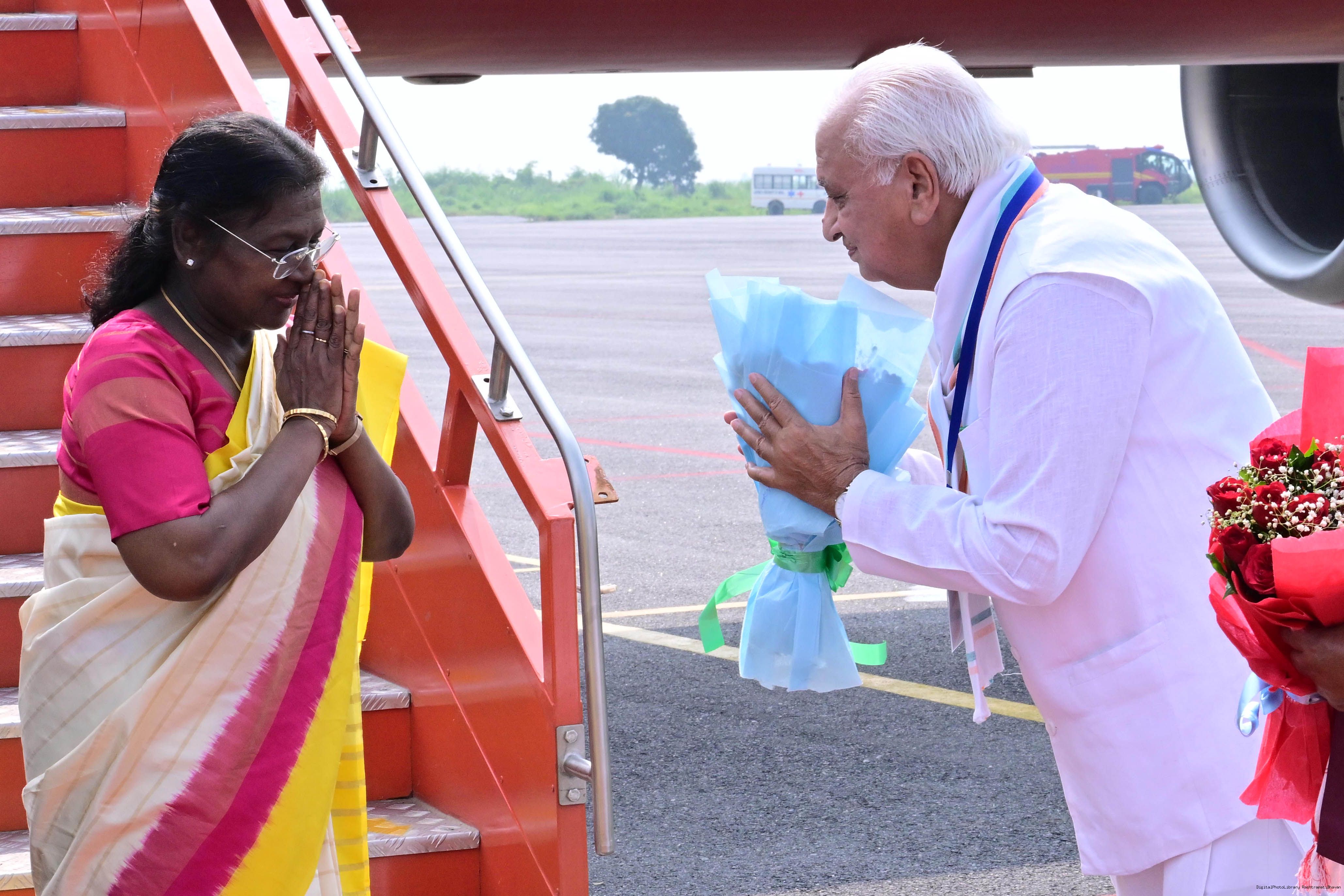 | Caption: | The Governor of Bihar, Shri Arif Mohammed Khan, Union Minister for Micro, Small and Medium Enterprises, Shri Jitan Ram Manjhi and Minister of Co-operative, Government of Bihar, Dr Prem Kumar, received the President of India, Smt. Droupadi Murmu on her arrival at Gaya, Bihar on September 20, 2025. |