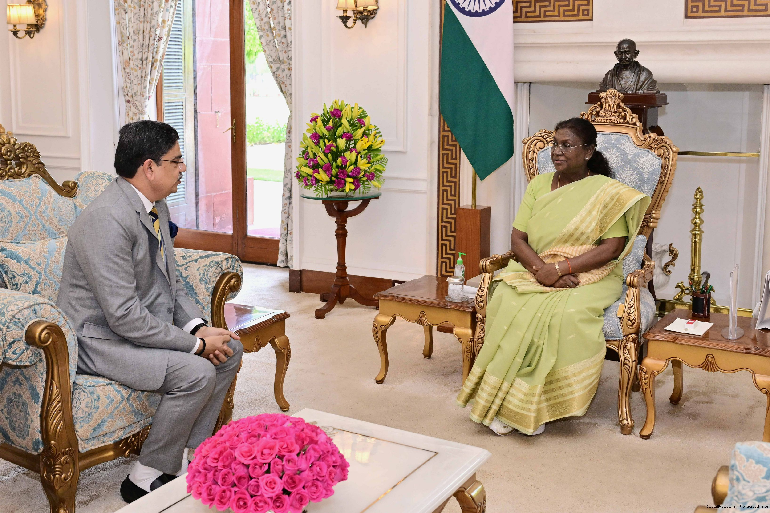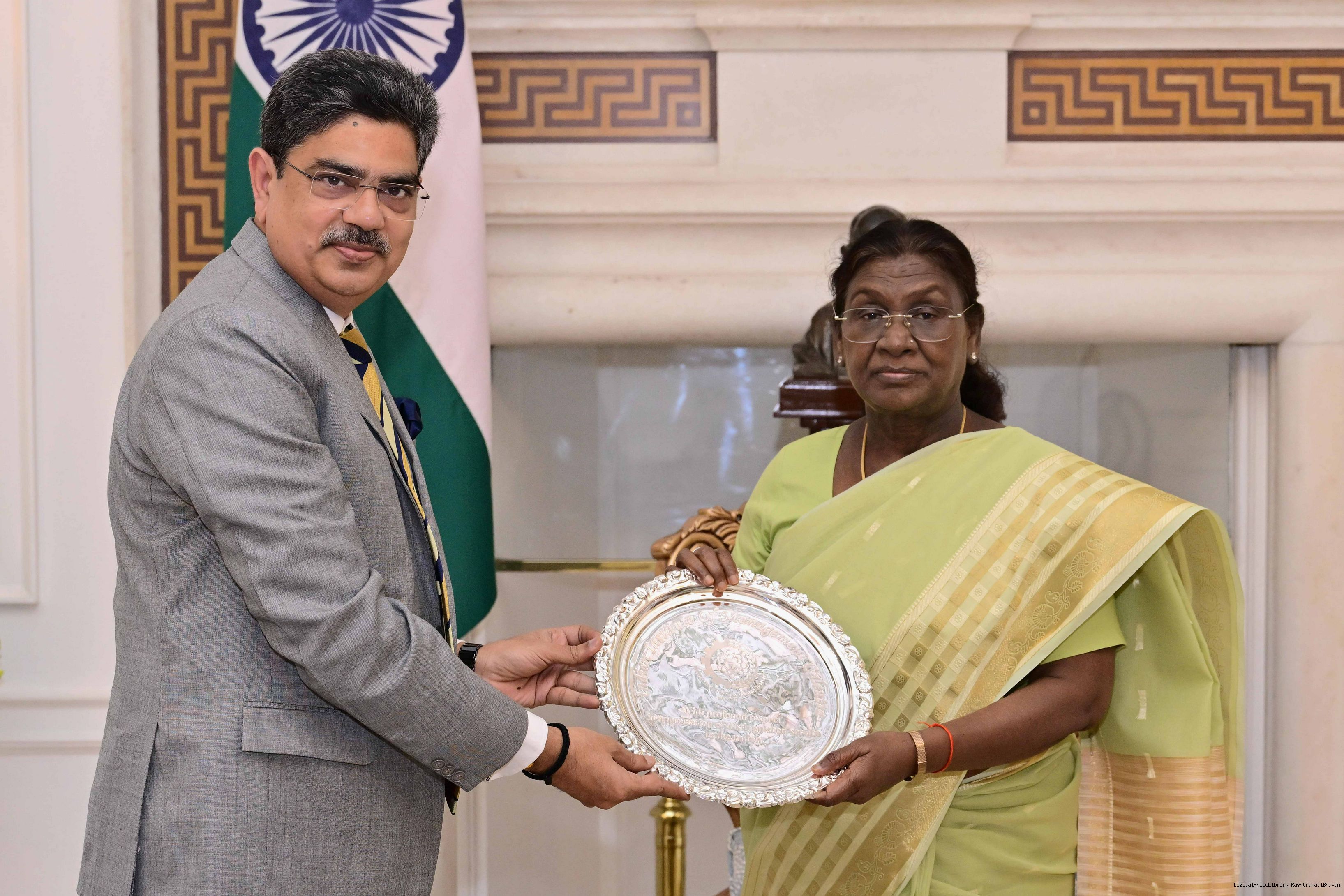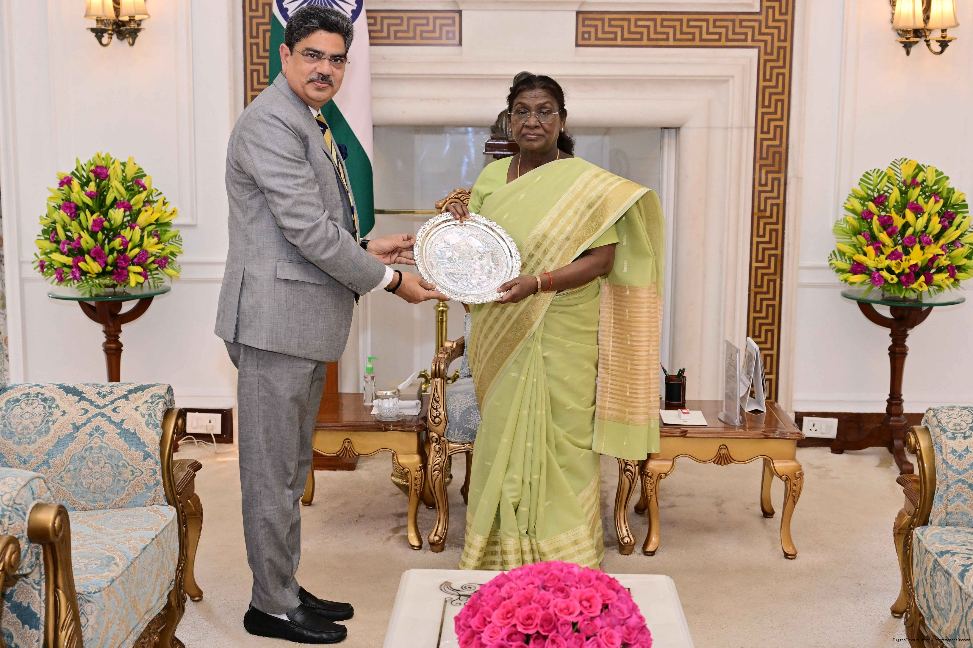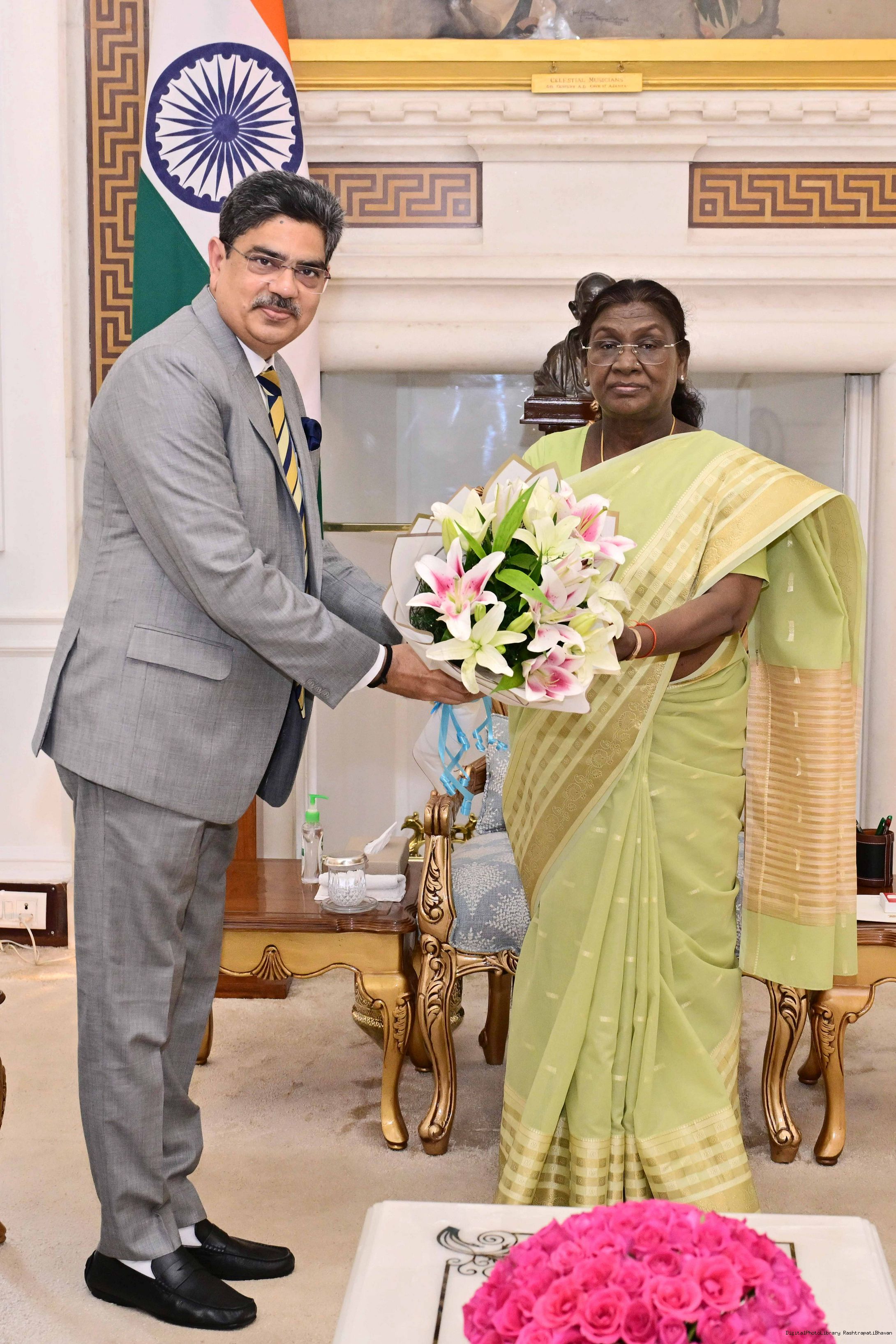 | Caption: | Prof. Alok Kumar Rai, Director, IIM, Calcutta meeting with the President of India, Smt Droupadi Murmu, at Rashtrapati Bhavan on September 22, 2025. |