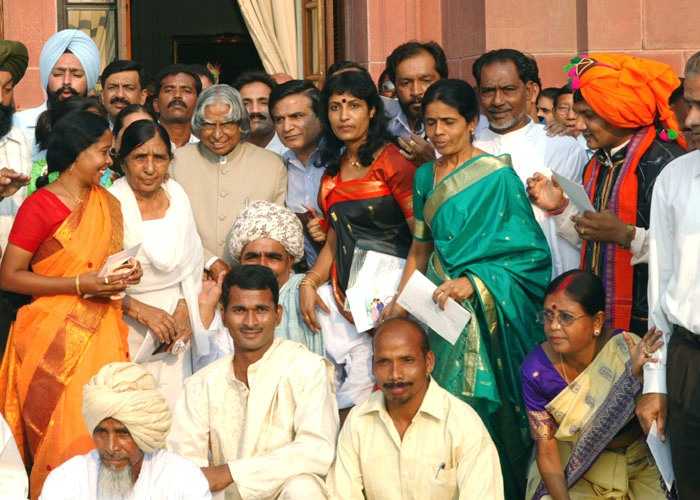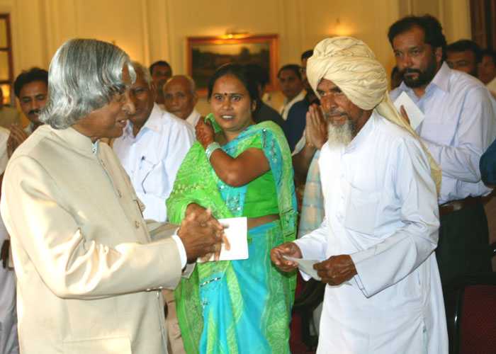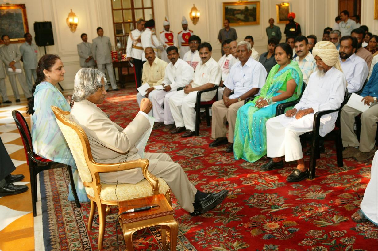 | Caption: | The President of India, Dr A P J Abdul Kalam interacting with Sarpanches at the Yellow Drawing Room of Rashtrapati Bhavan in New Delhi on Aug 15, 2004 |