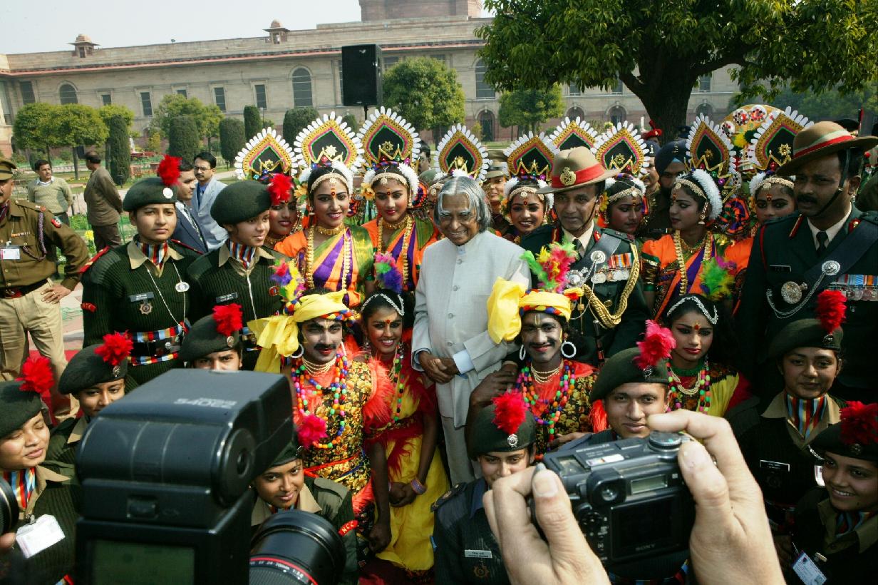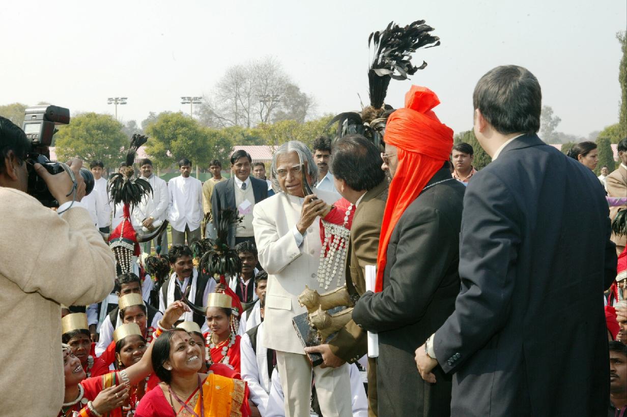 | Caption: | The Republic Day Tribal Guests & Tableaux Artistes NSS Volunteers and NCC Cadets & Officials calling on the President of India, Dr A P J Abdul Kalam at the Central Lawn at Rashtrapati Bhavan in New Delhi on Jan 29, 2004 |