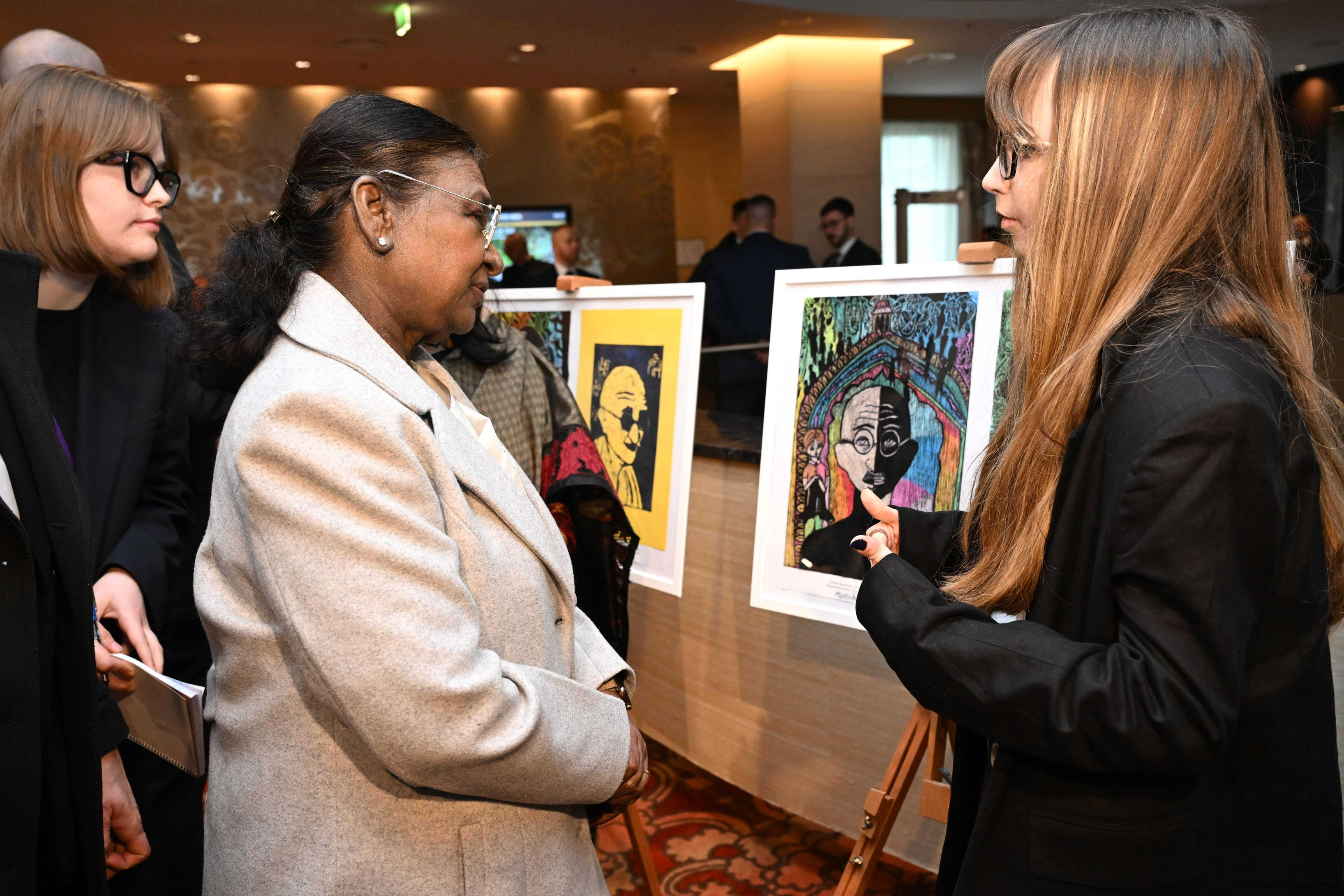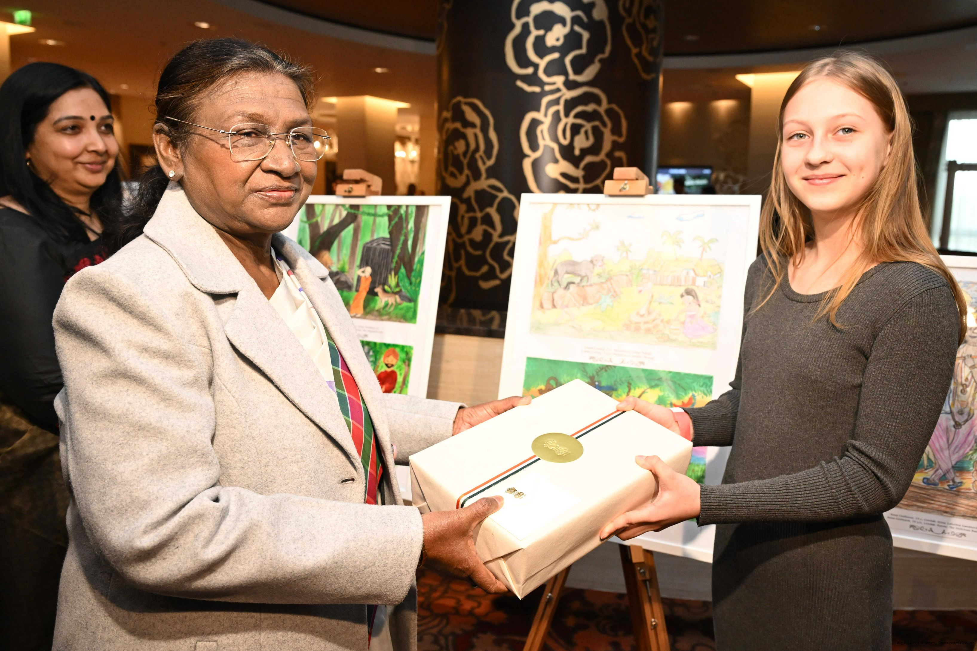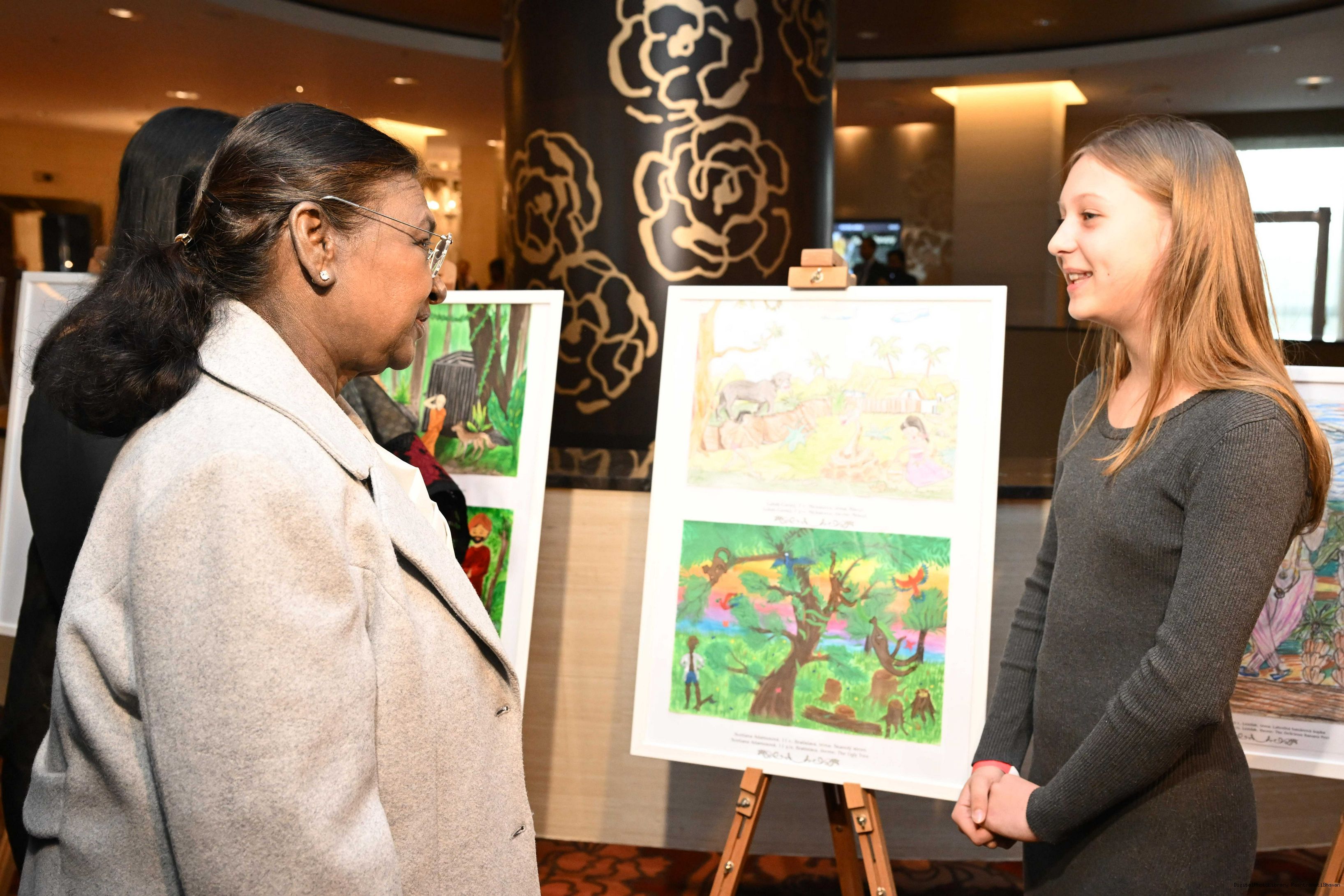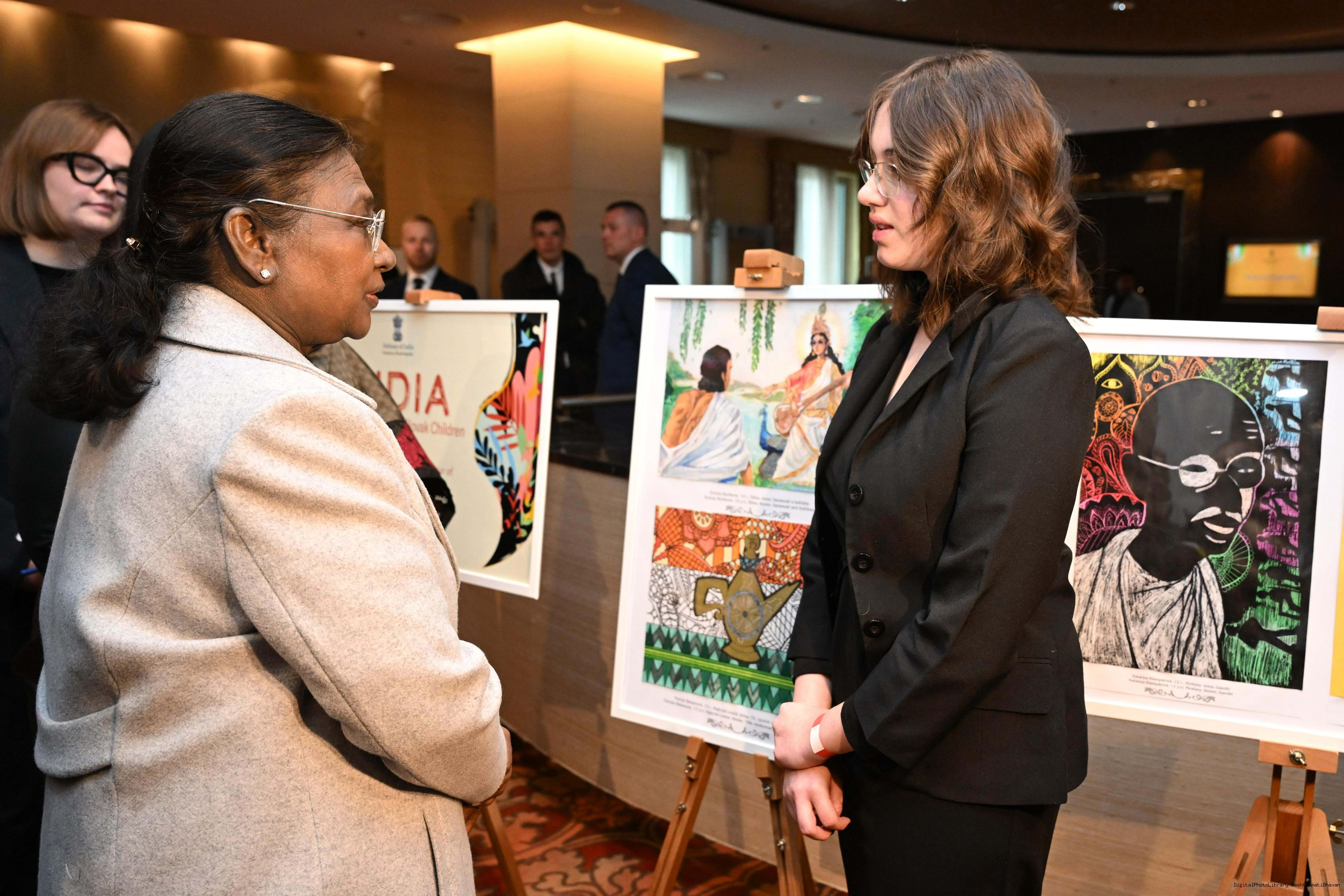 | Caption: | The President of India, Smt. Droupadi Murmu visited to the Exhibition of Painting on Indian Theme by Slovak Children at Grand Hotel River Park, Slovak on April 10, 2025. |
