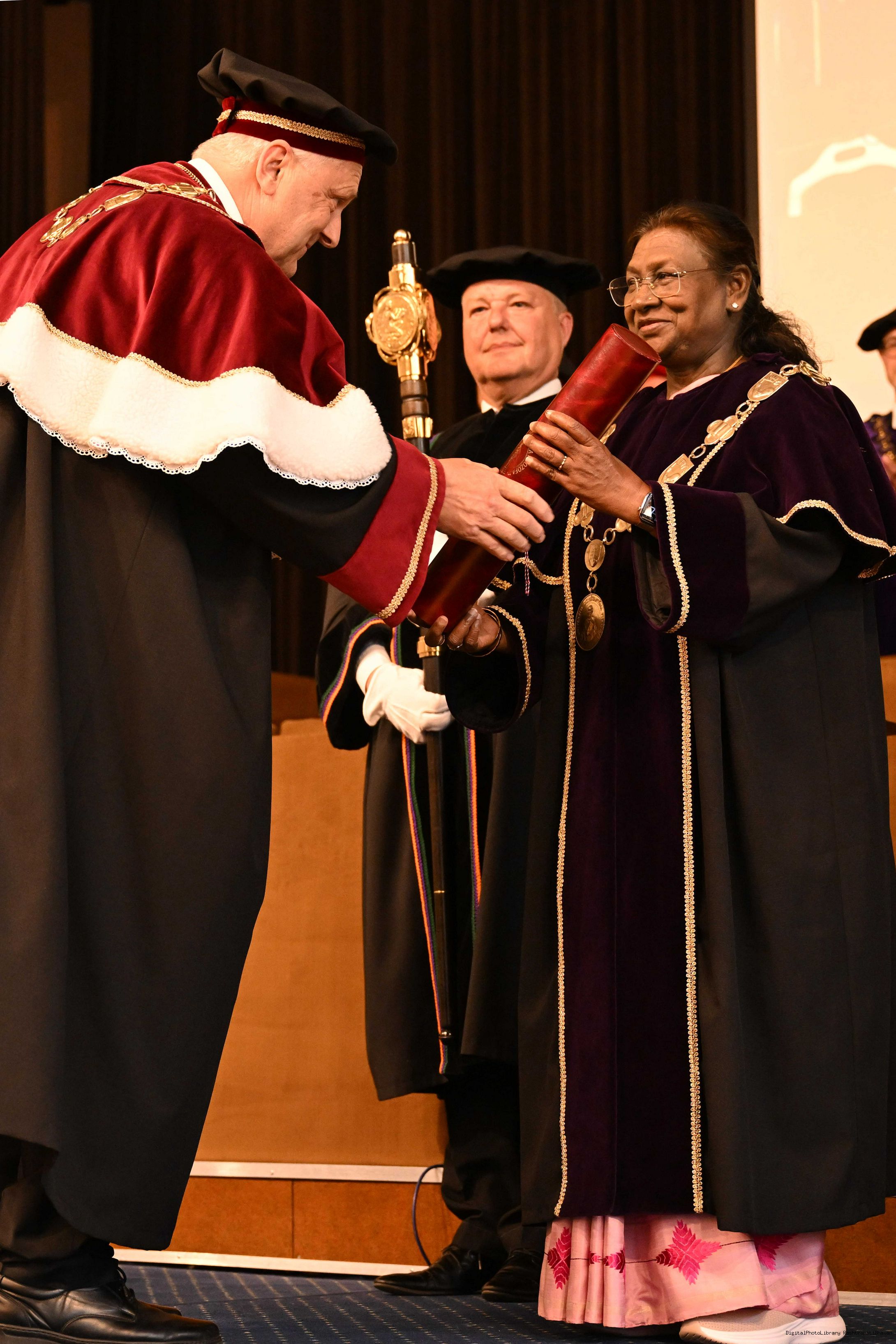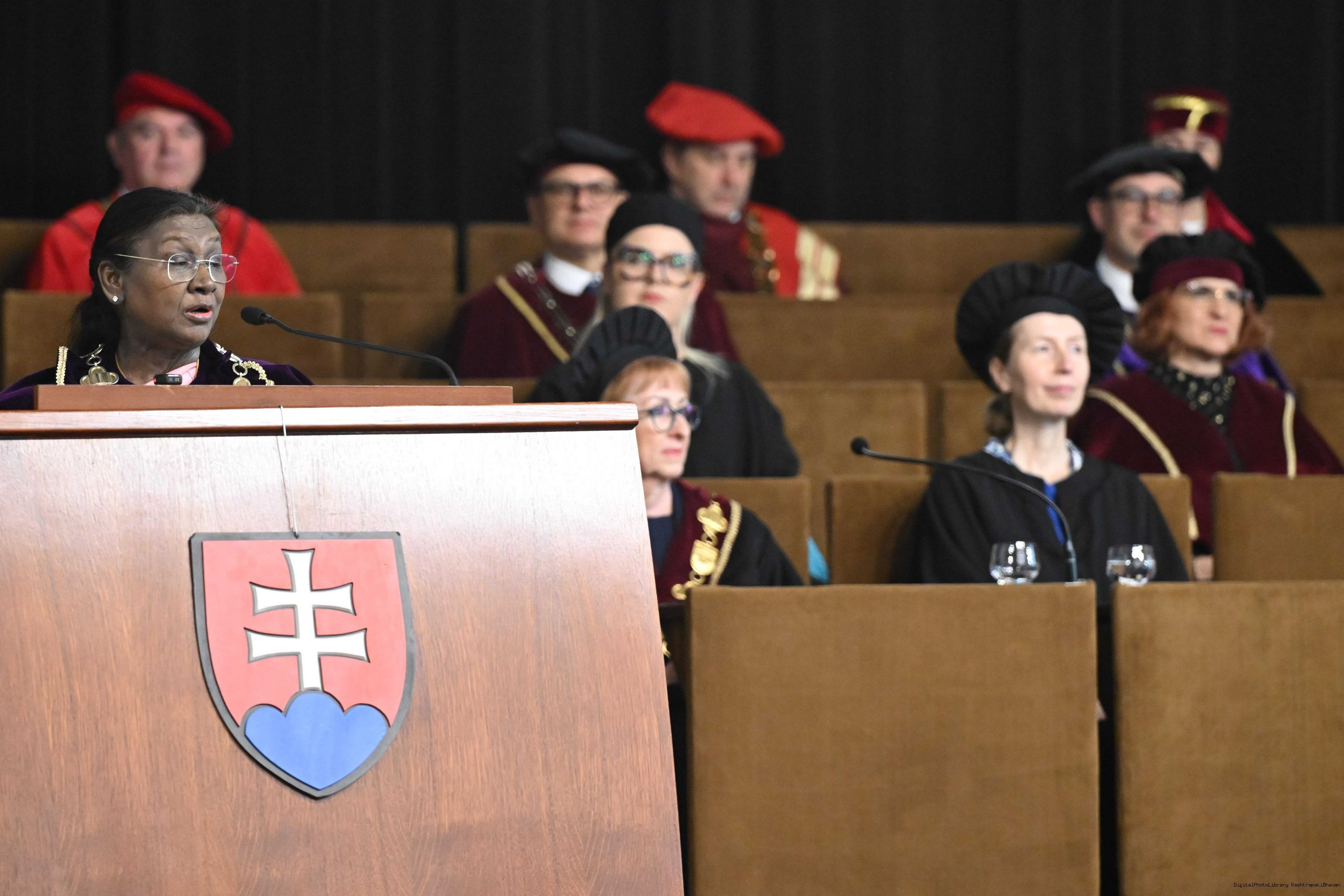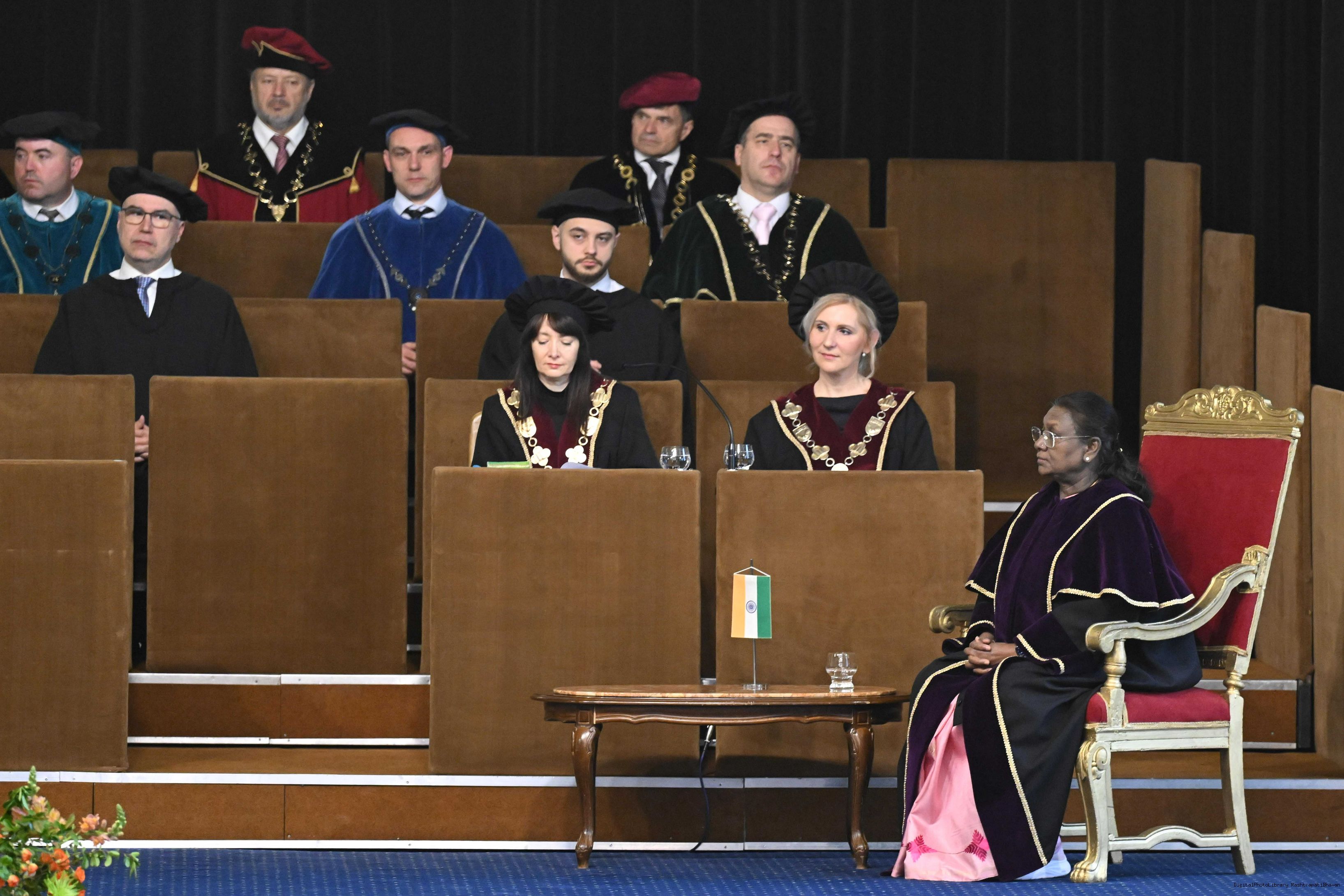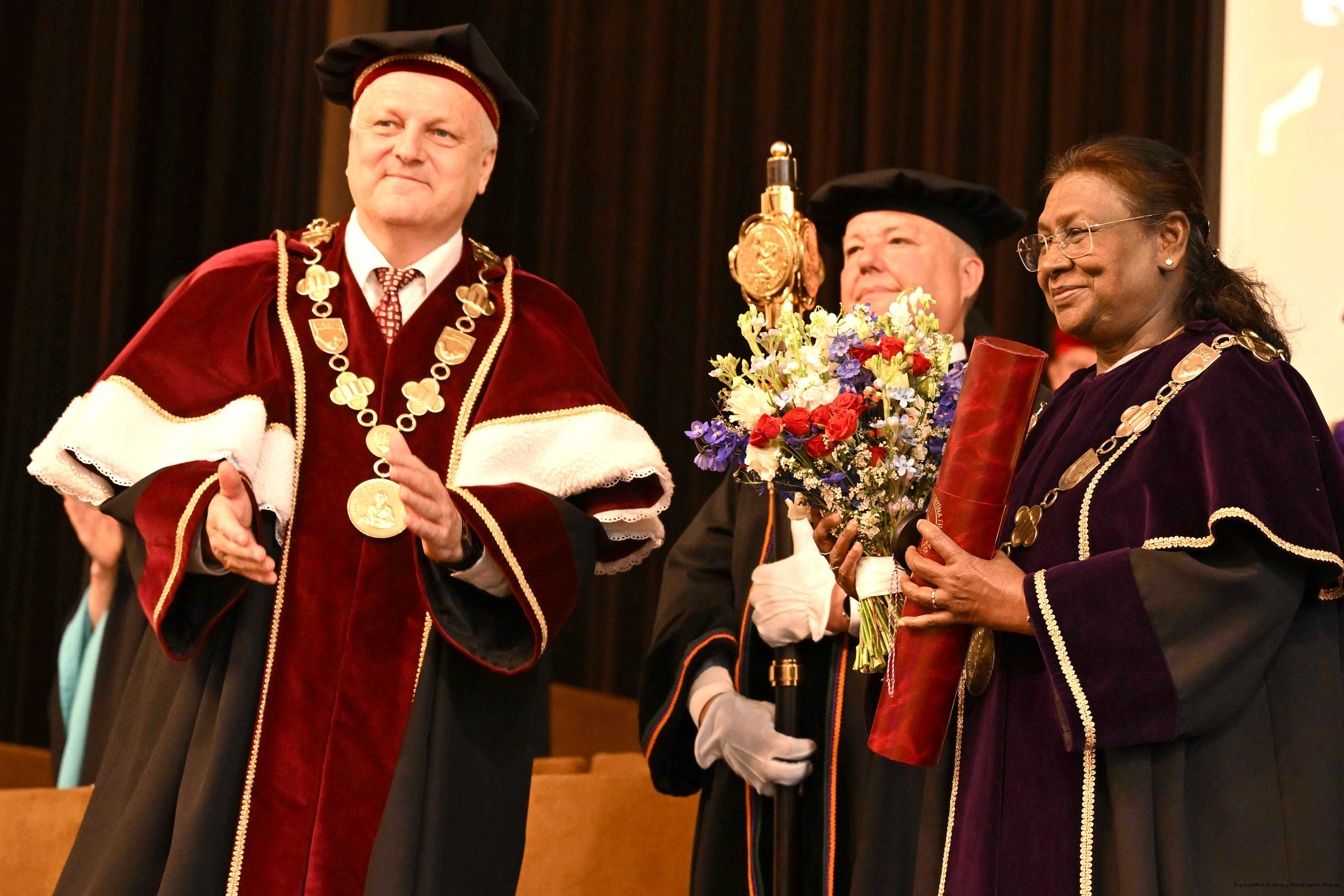| Caption: | Constantine the Philosopher University conferred Honoris Causa Doctorate degree on the President of India, Smt. Droupadi Murmu at a ceremony held at Nitra, Slovakia on April 10, 2025. |