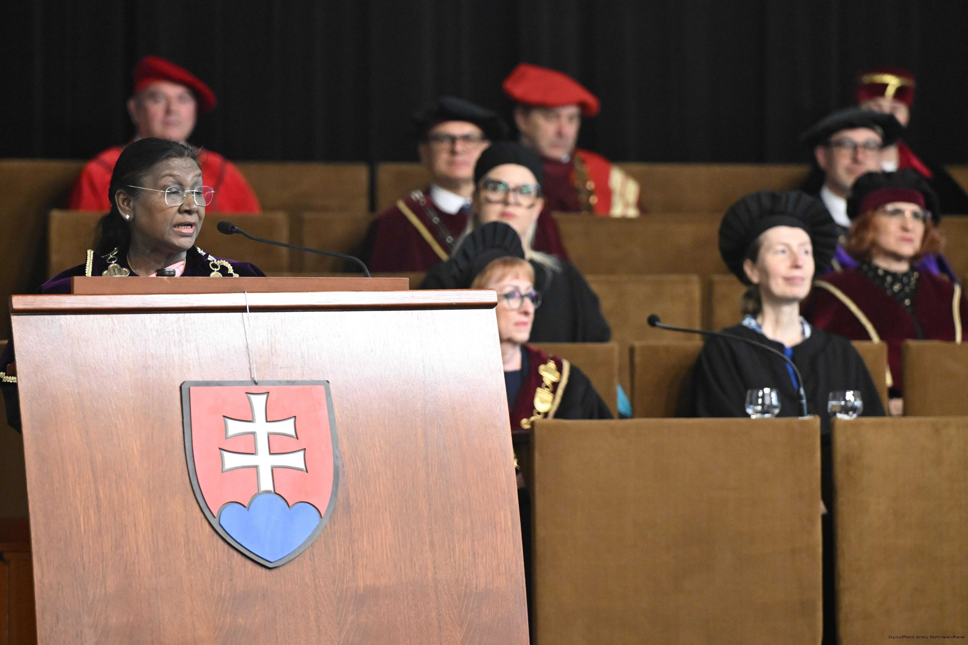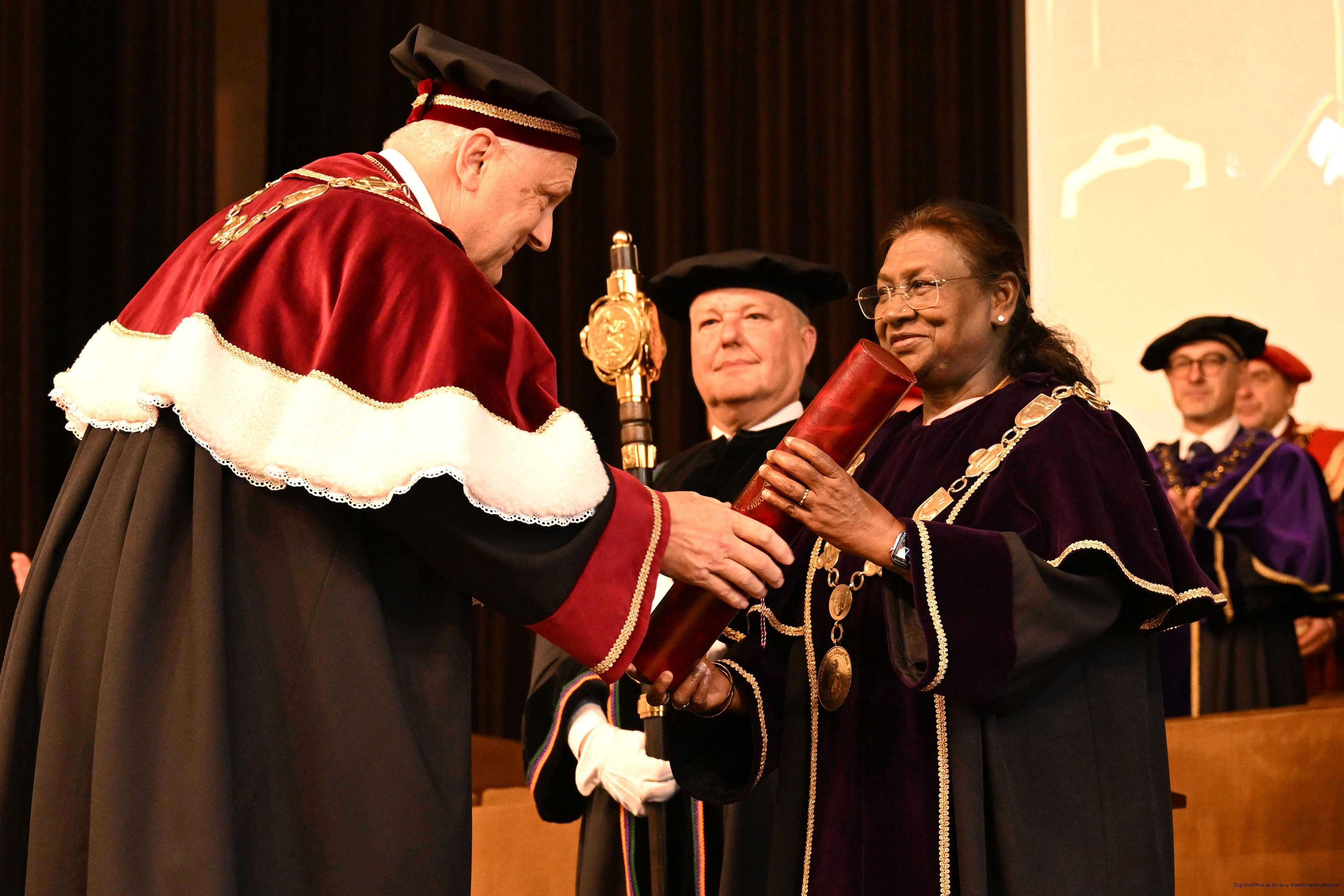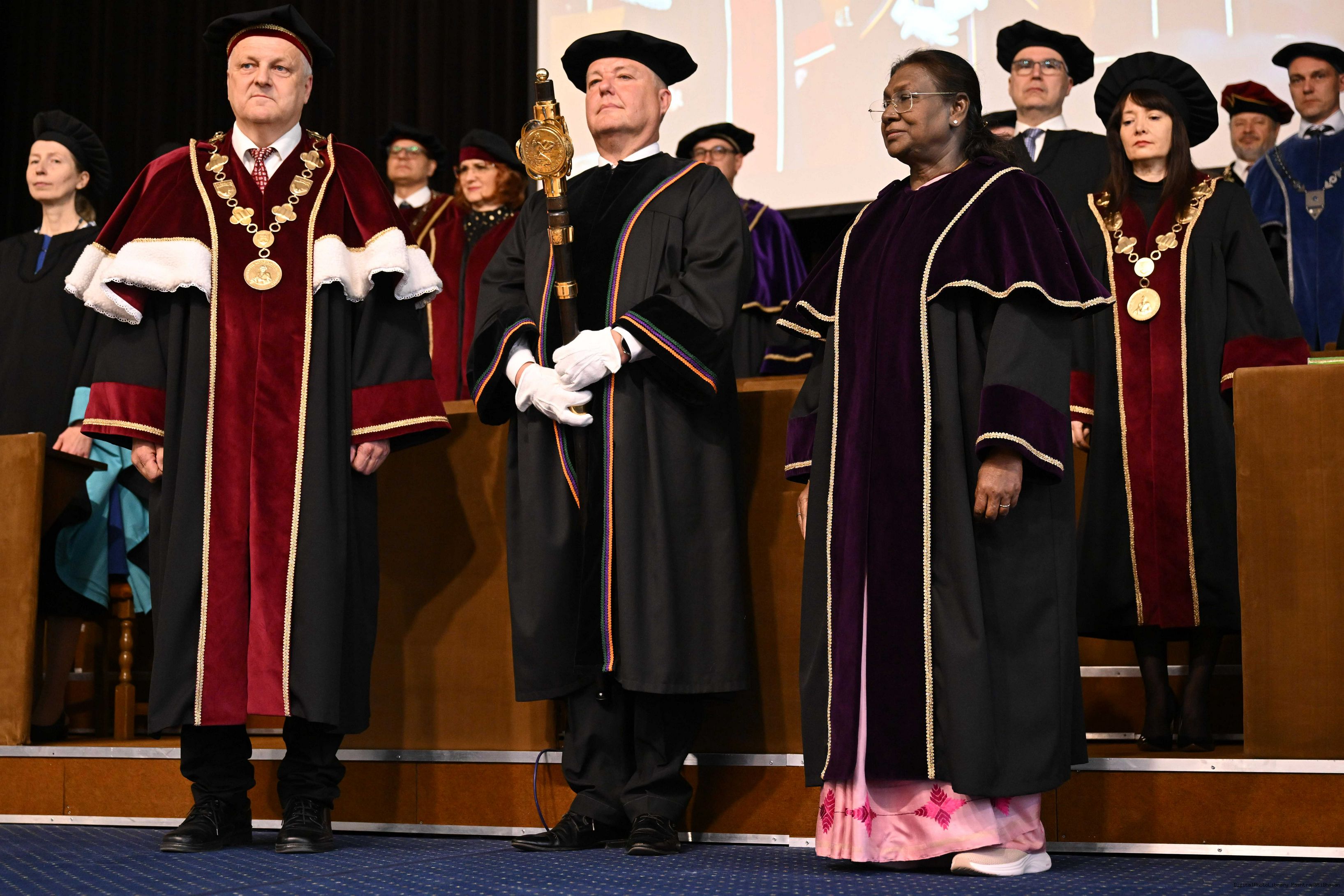 | Caption: | Constantine the Philosopher University conferred Honoris Causa Doctorate degree on the President of India, Smt. Droupadi Murmu at a ceremony held at Nitra, Slovakia on April 10, 2025. |