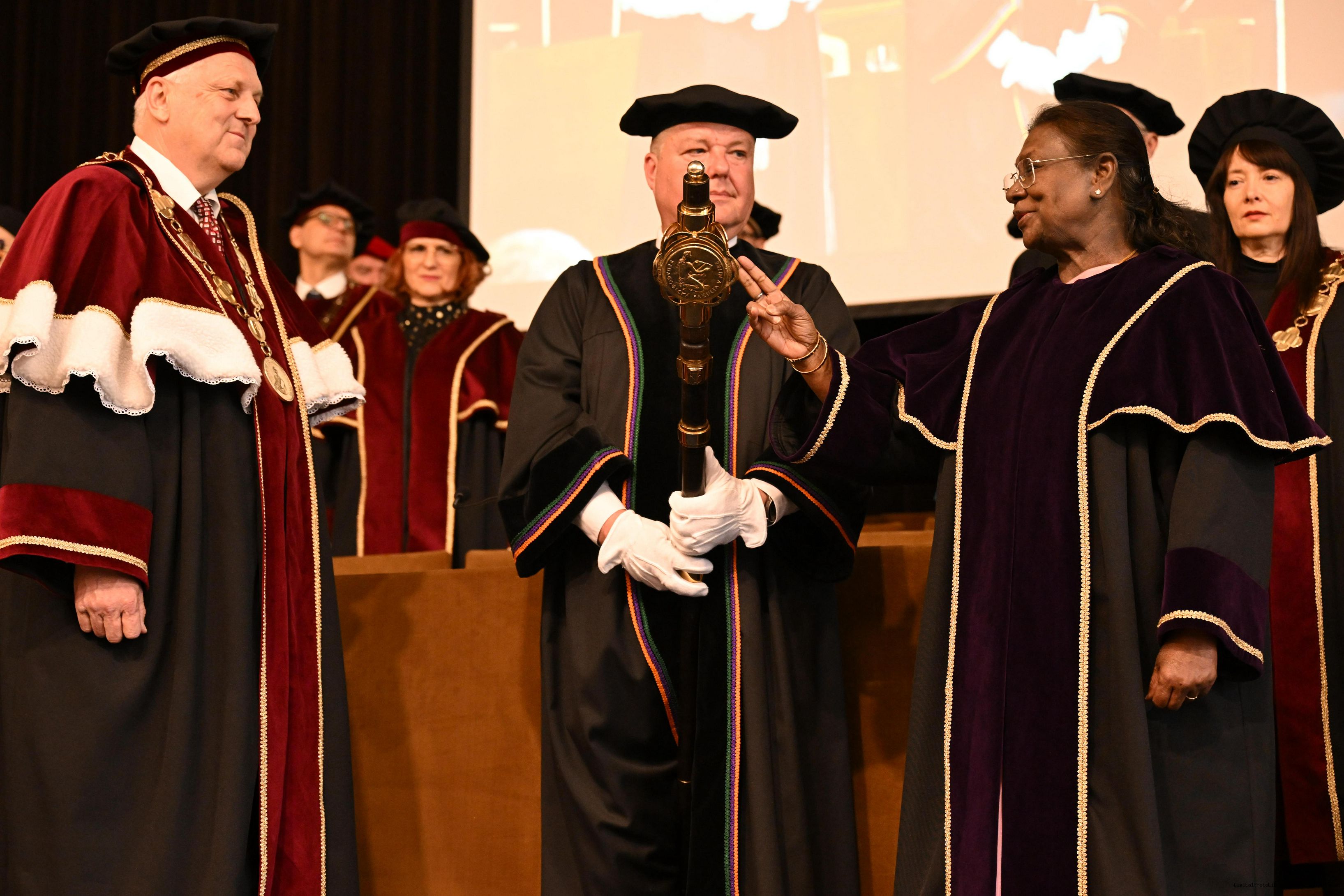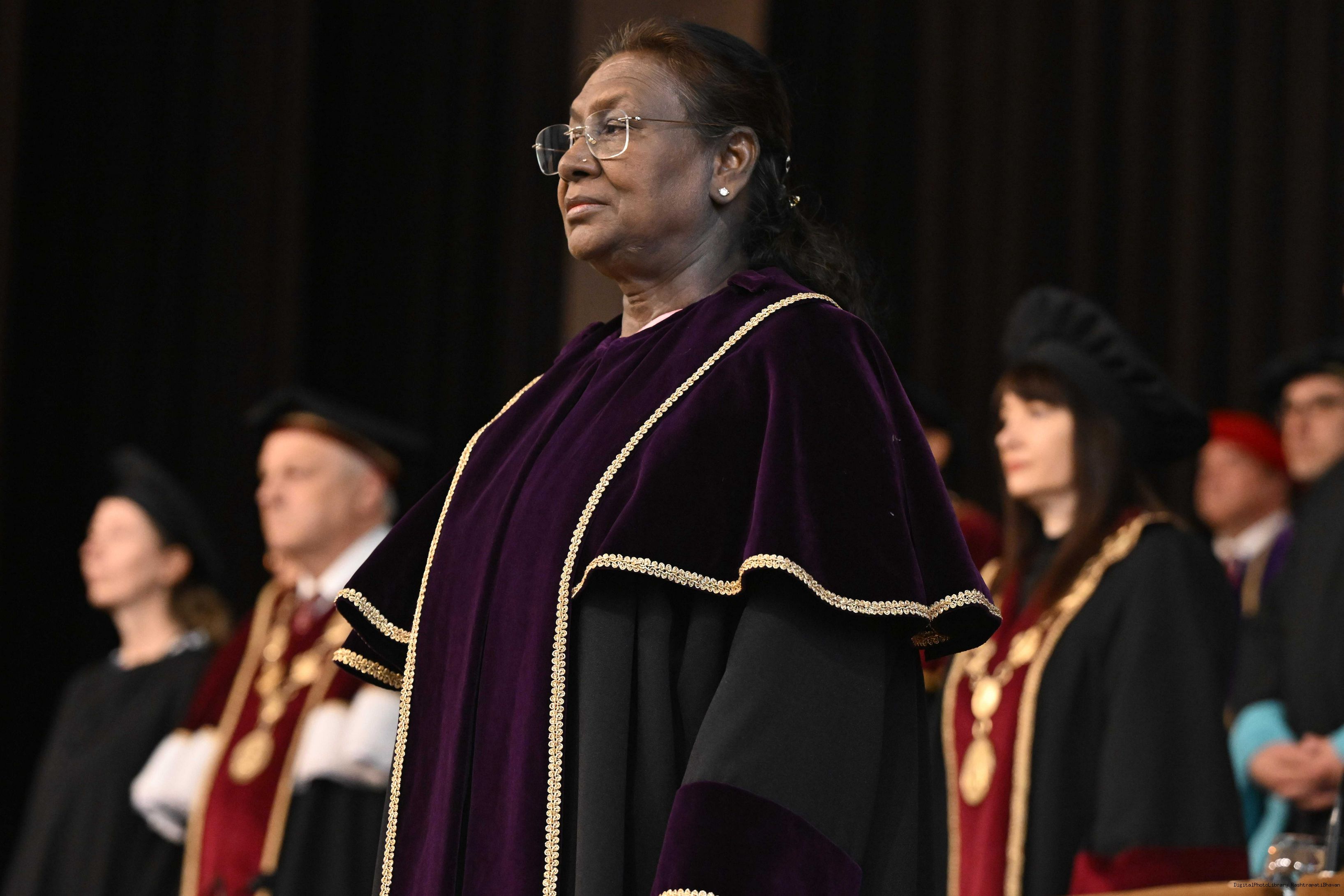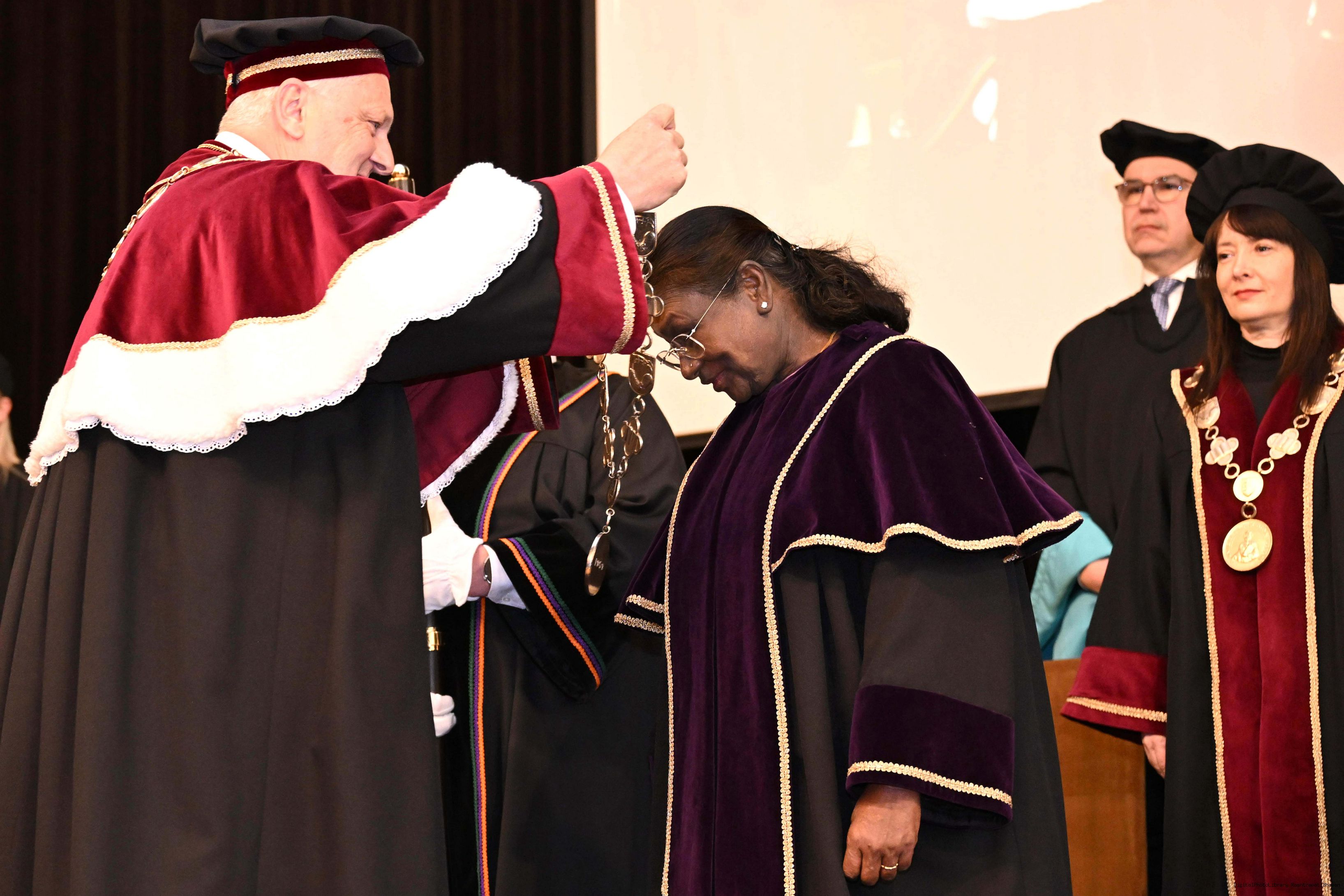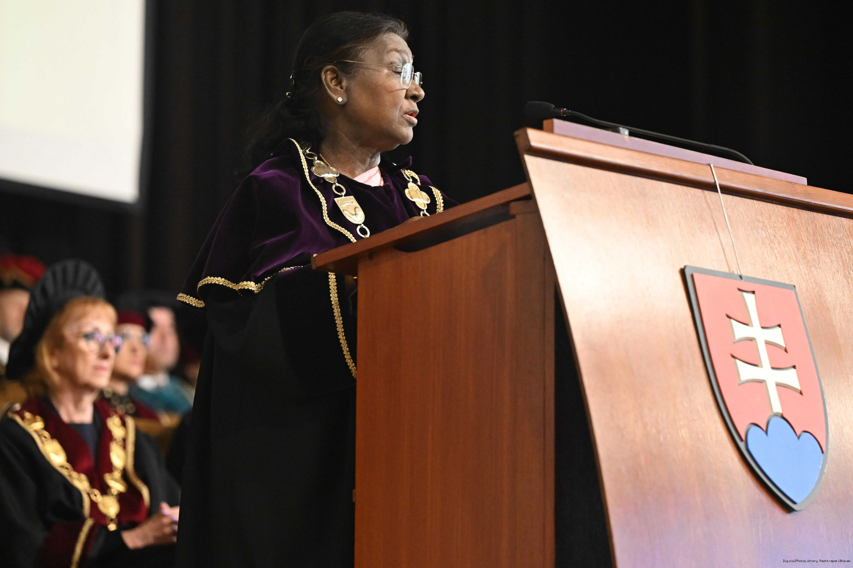 | Caption: | Constantine the Philosopher University conferred Honoris Causa Doctorate degree on the President of India, Smt. Droupadi Murmu at a ceremony held at Nitra, Slovakia on April 10, 2025. |