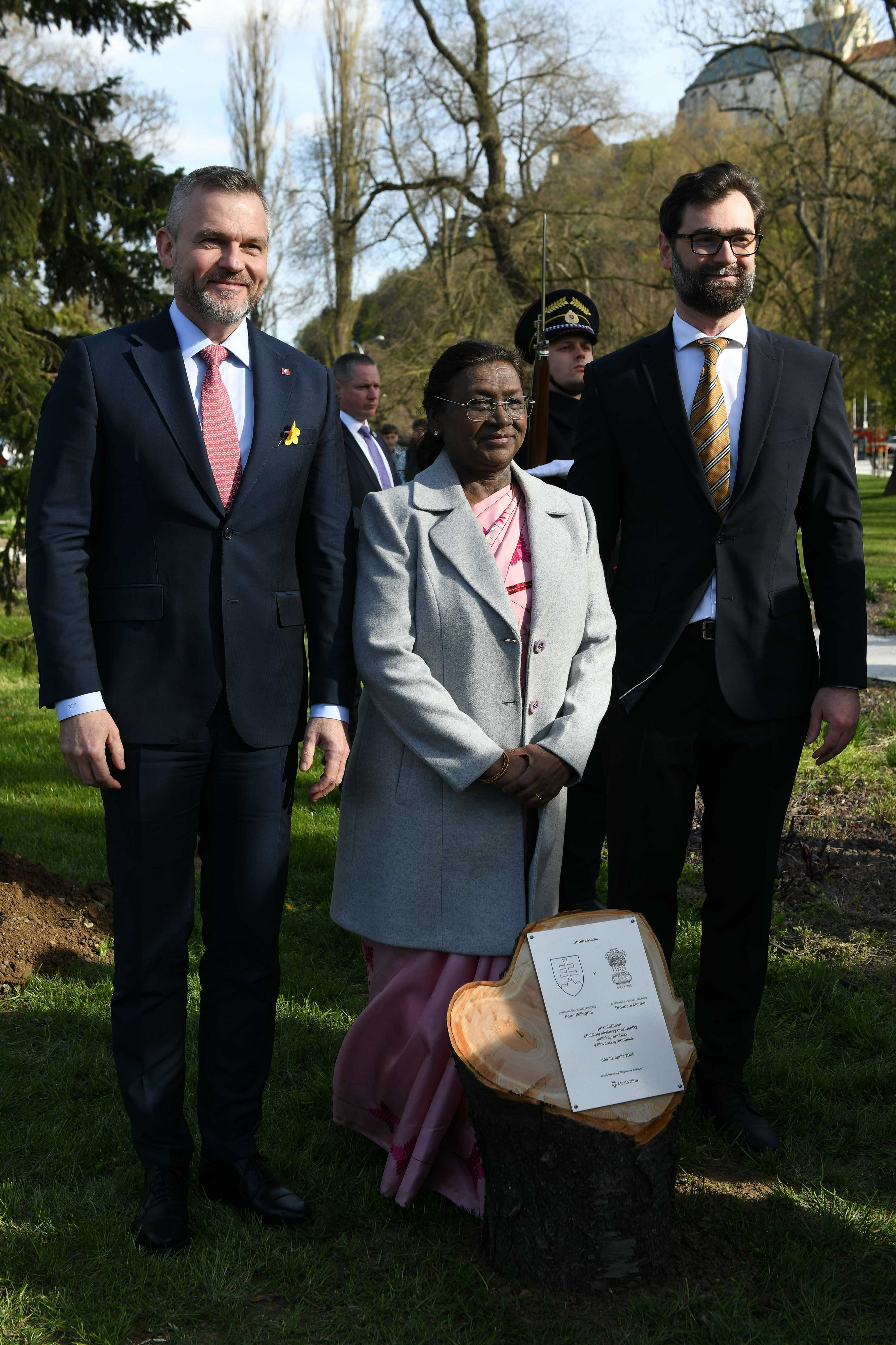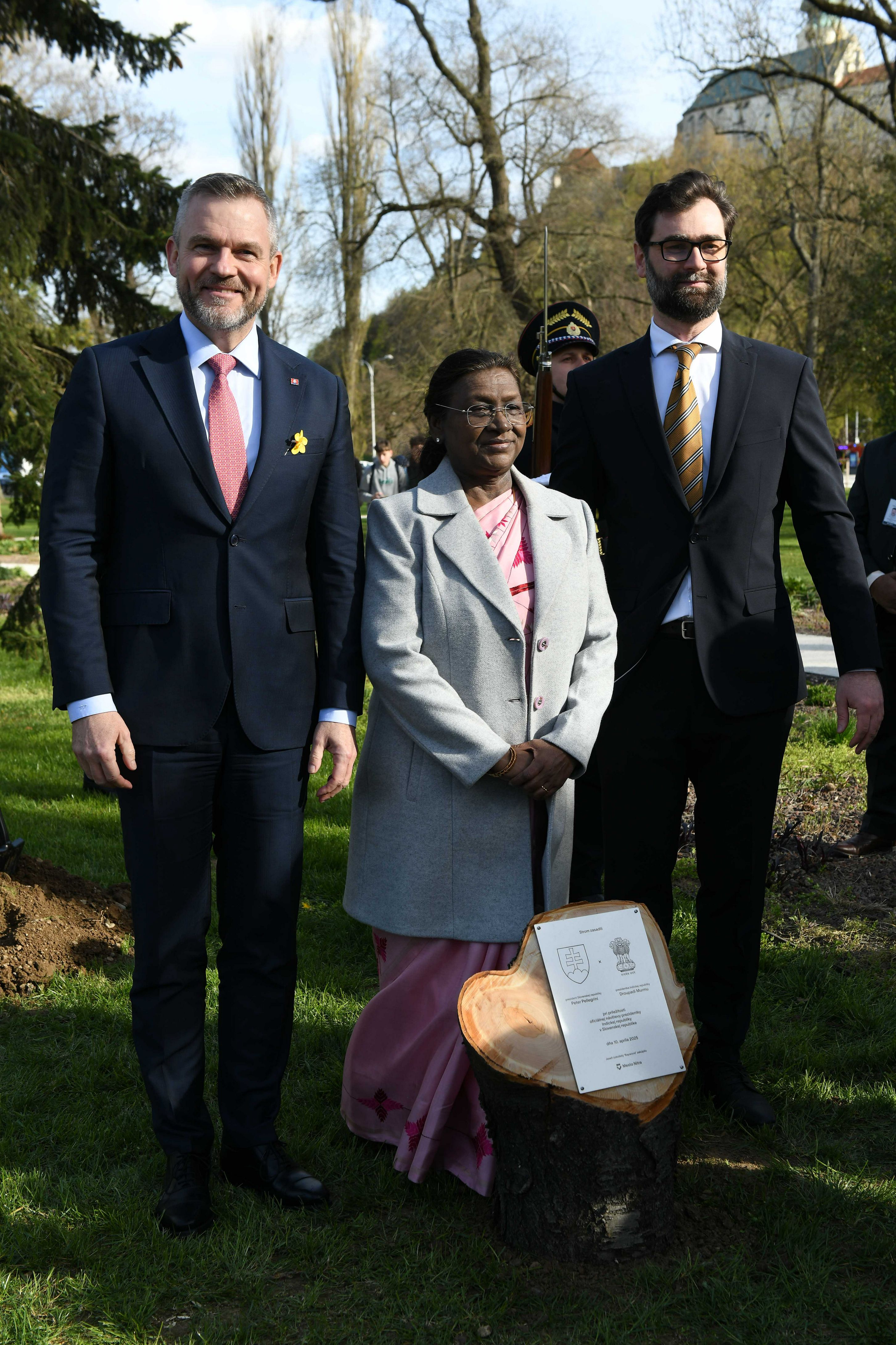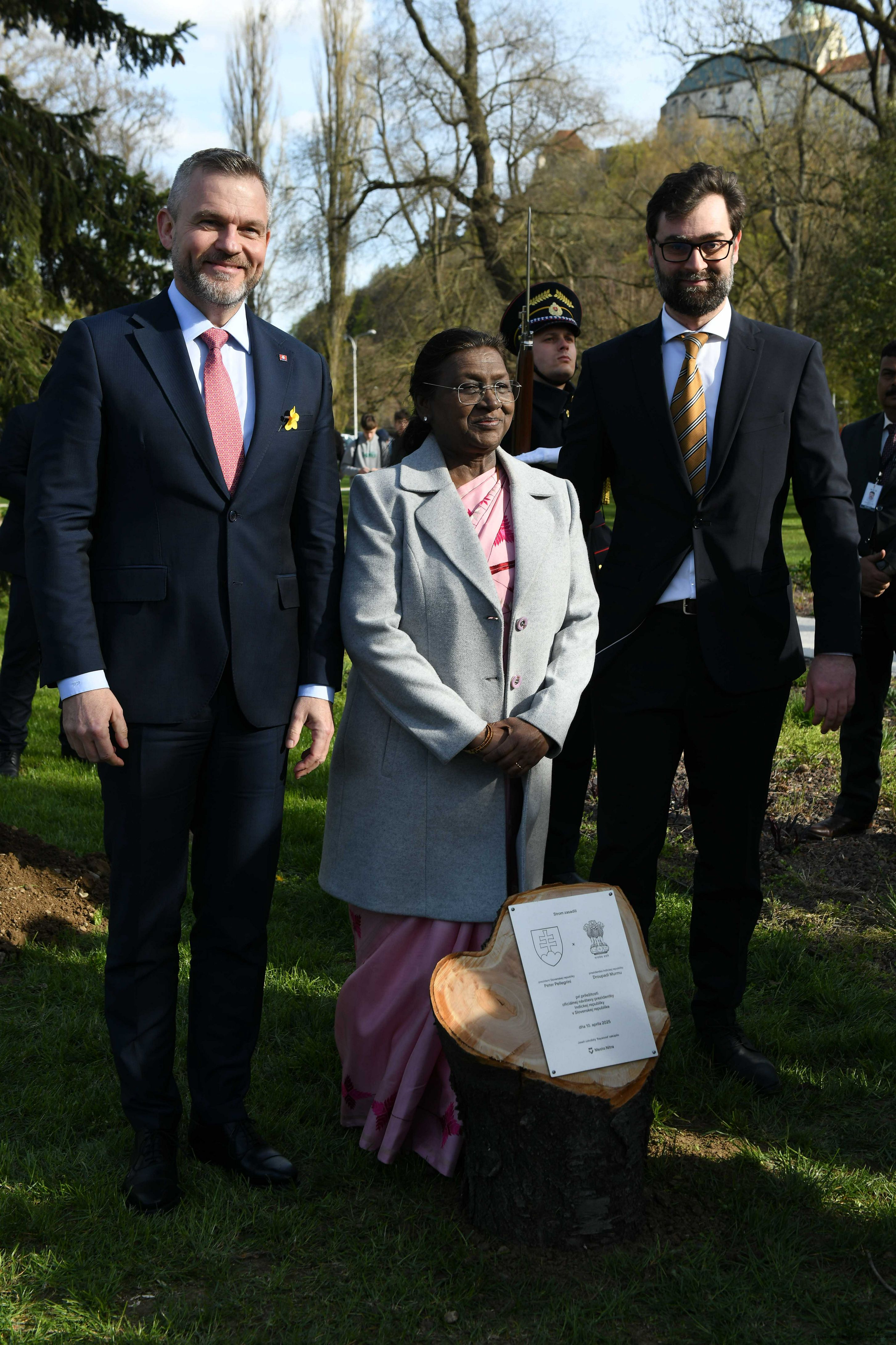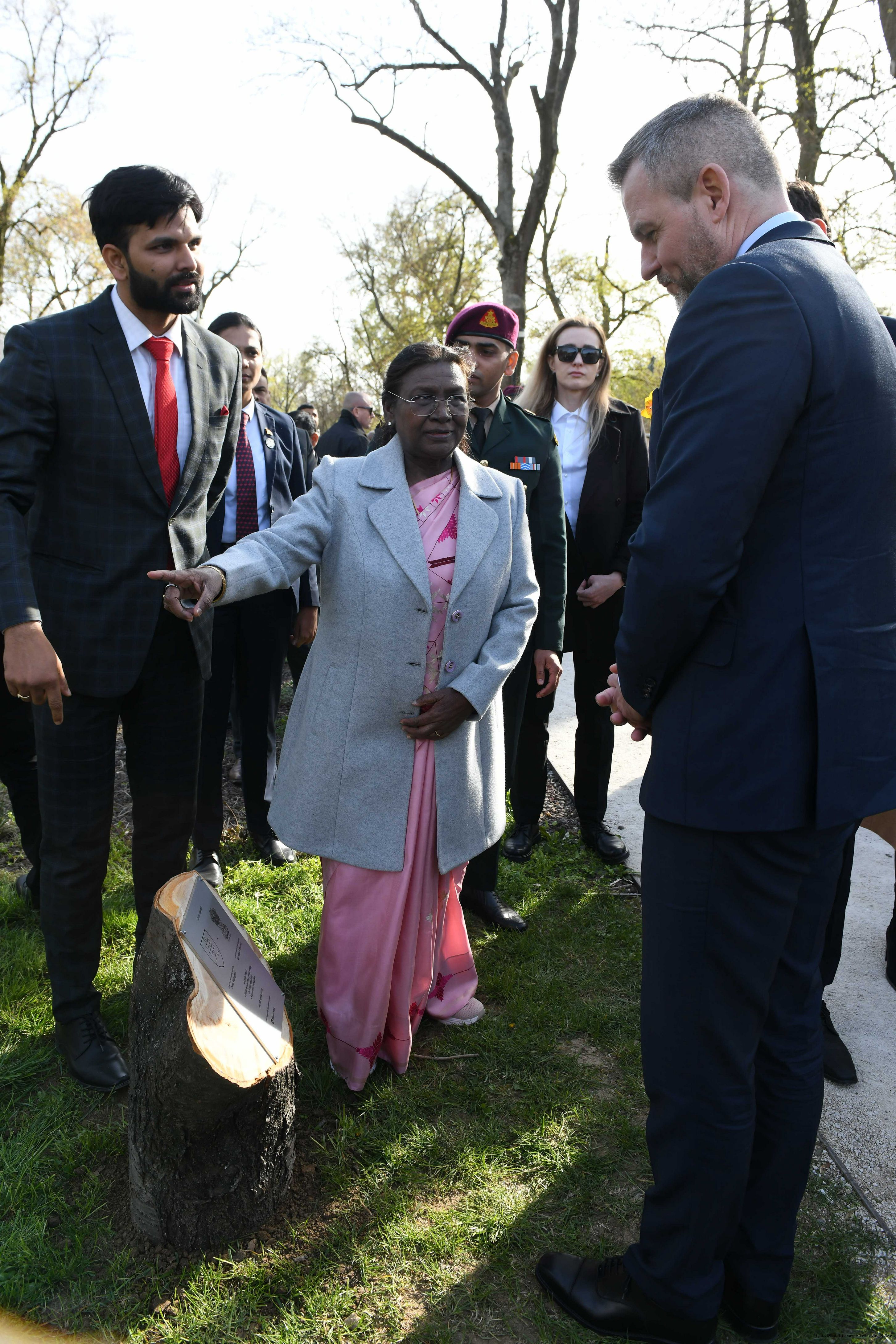 | Caption: | The President of India, Smt. Droupadi Murmu and President Peter Pellegrini of the Slovak Republic jointly planted a Linden tree, the national tree of Slovakia, at the City Park on Sihoť, Nitra, Slovakia on April 10, 2025. |