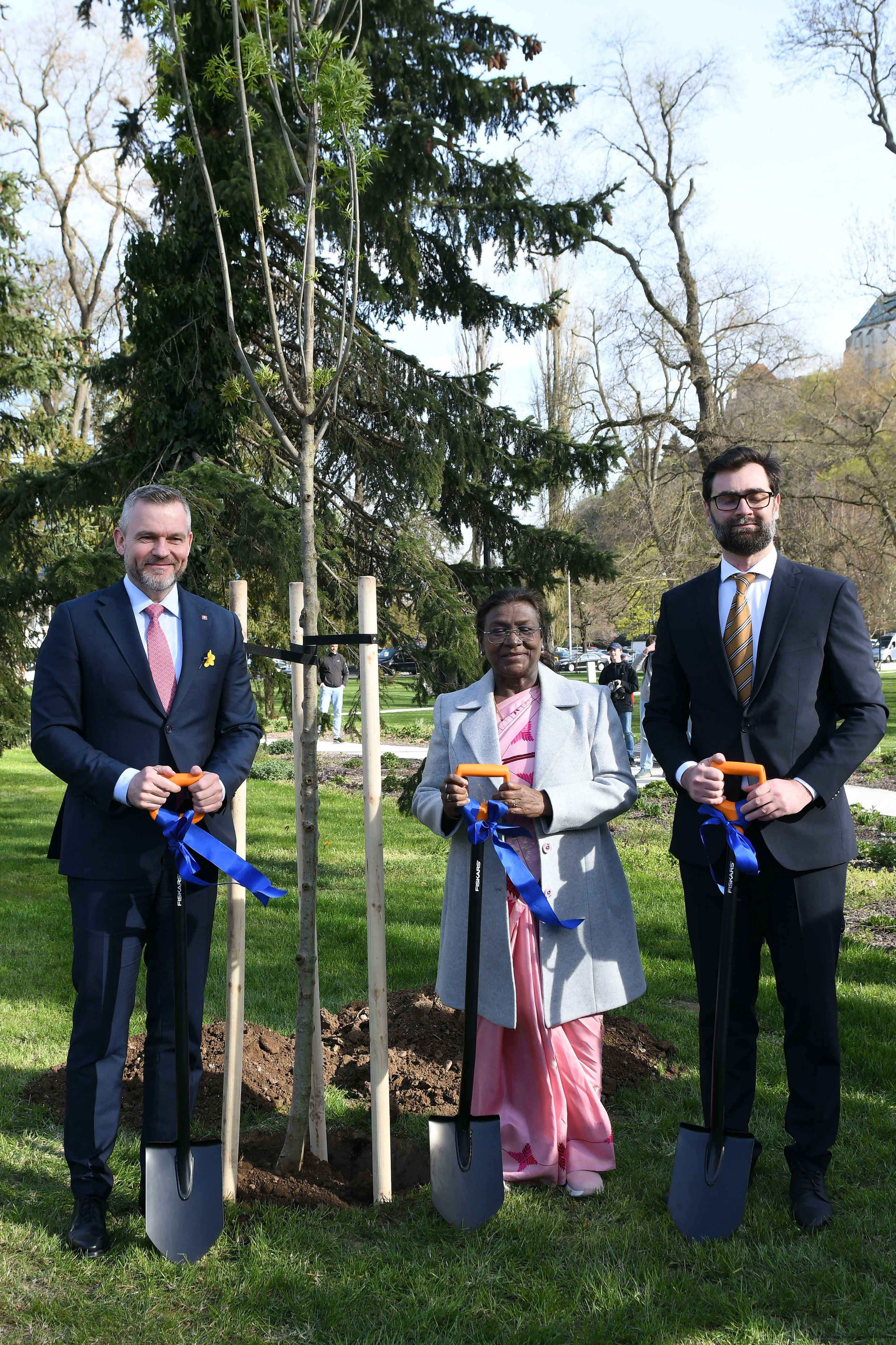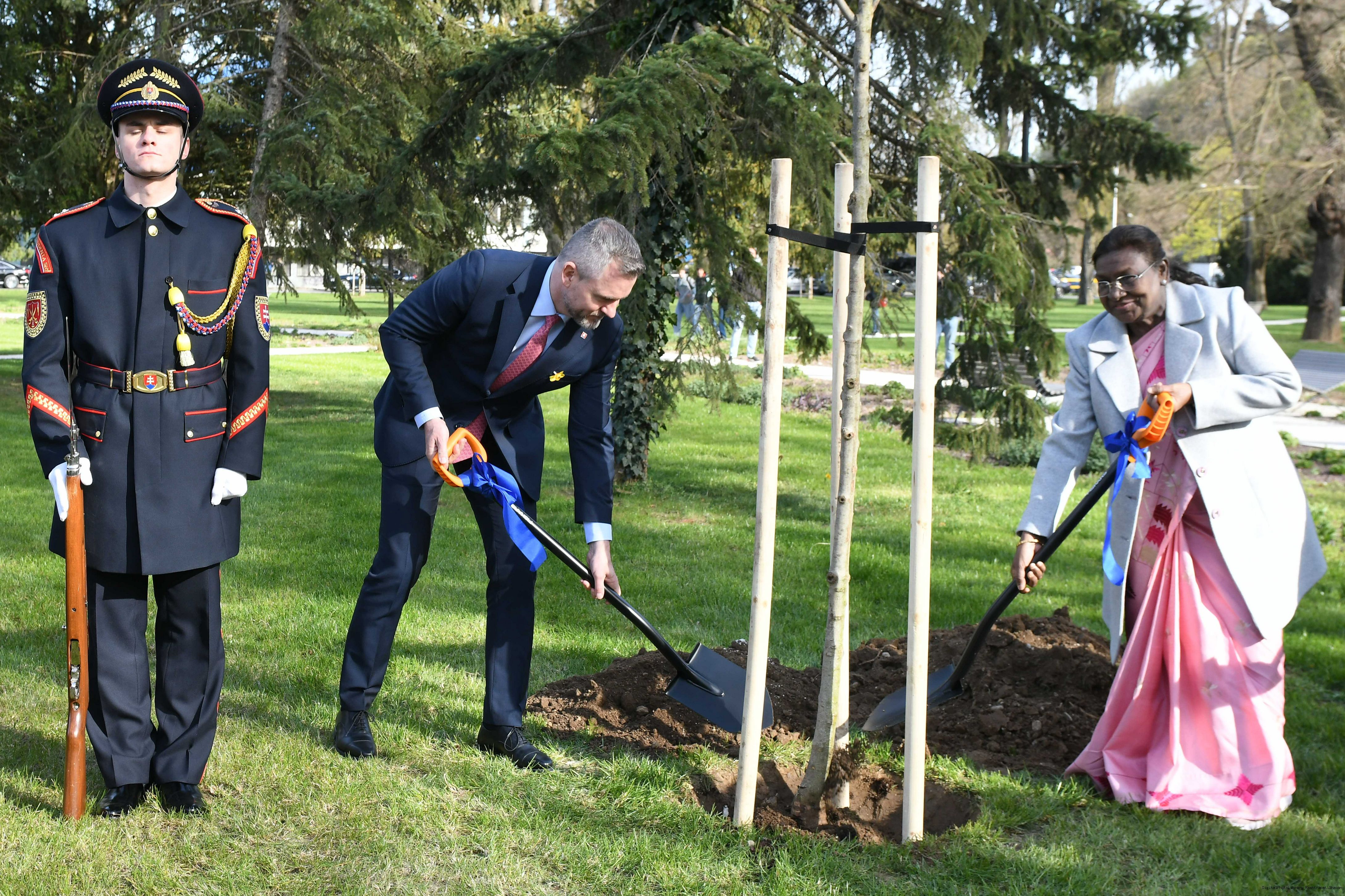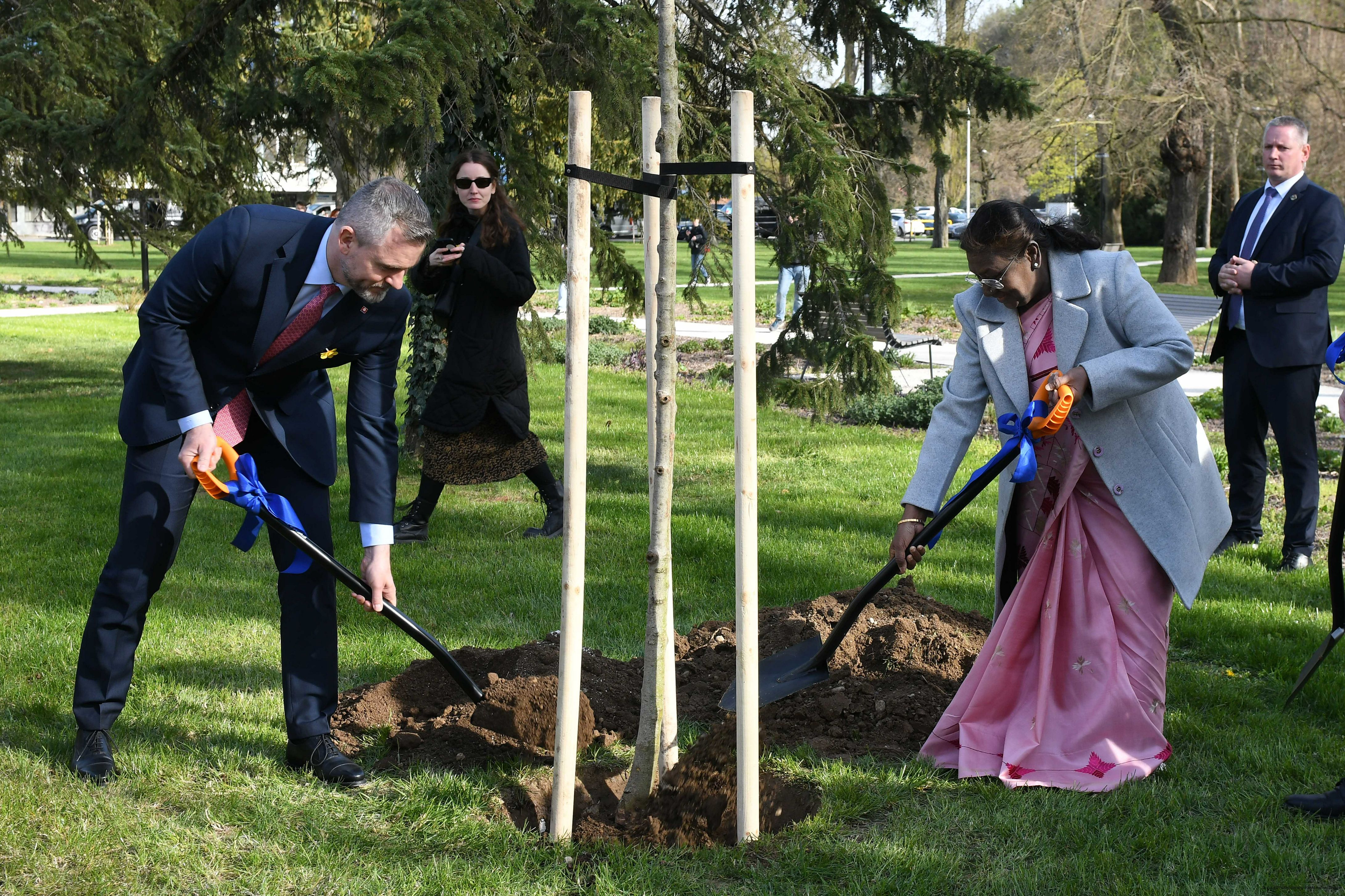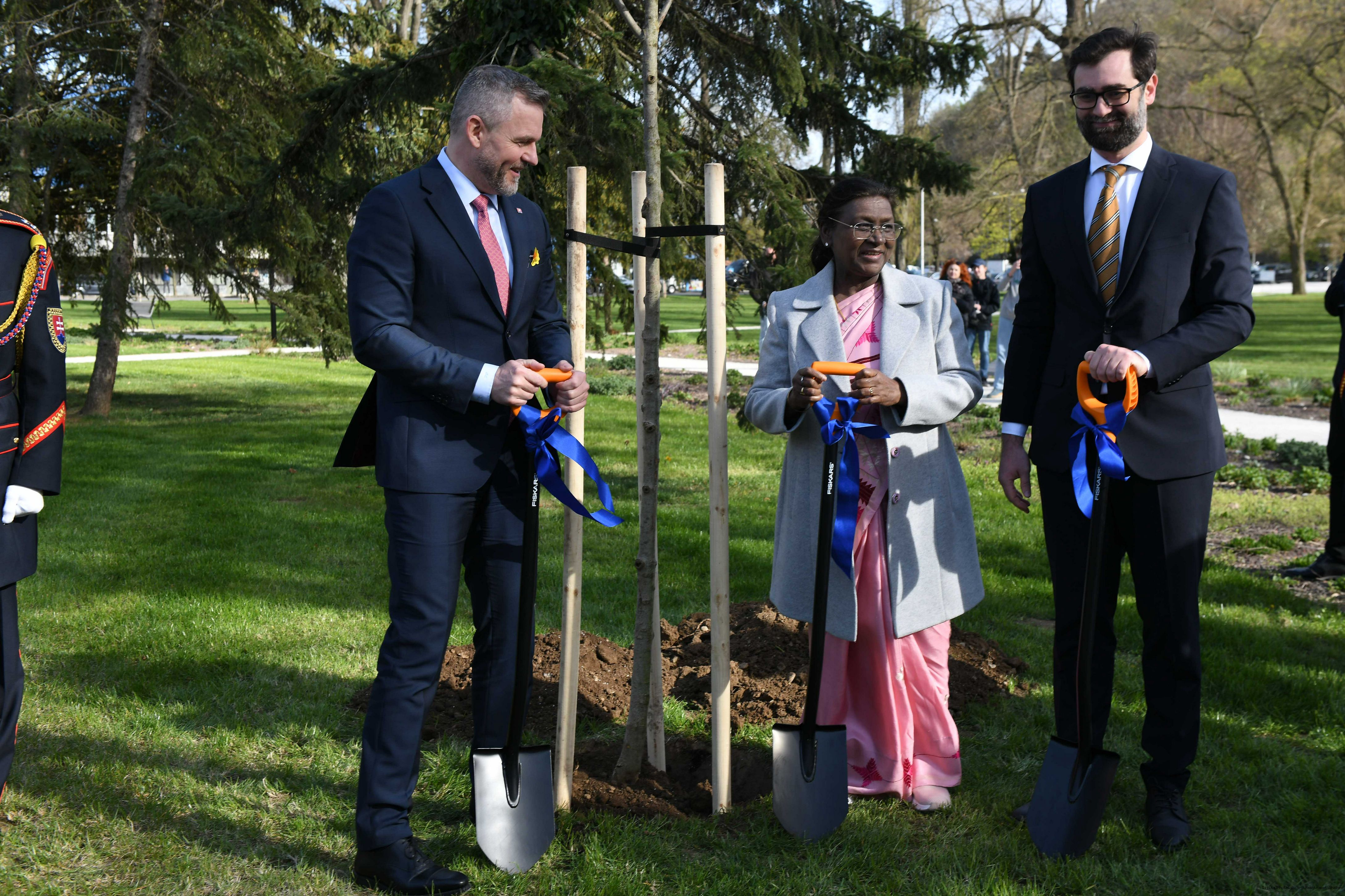 | Caption: | The President of India, Smt. Droupadi Murmu and President Peter Pellegrini of the Slovak Republic jointly planted a Linden tree, the national tree of Slovakia, at the City Park on Sihoť, Nitra, Slovakia on April 10, 2025. |
