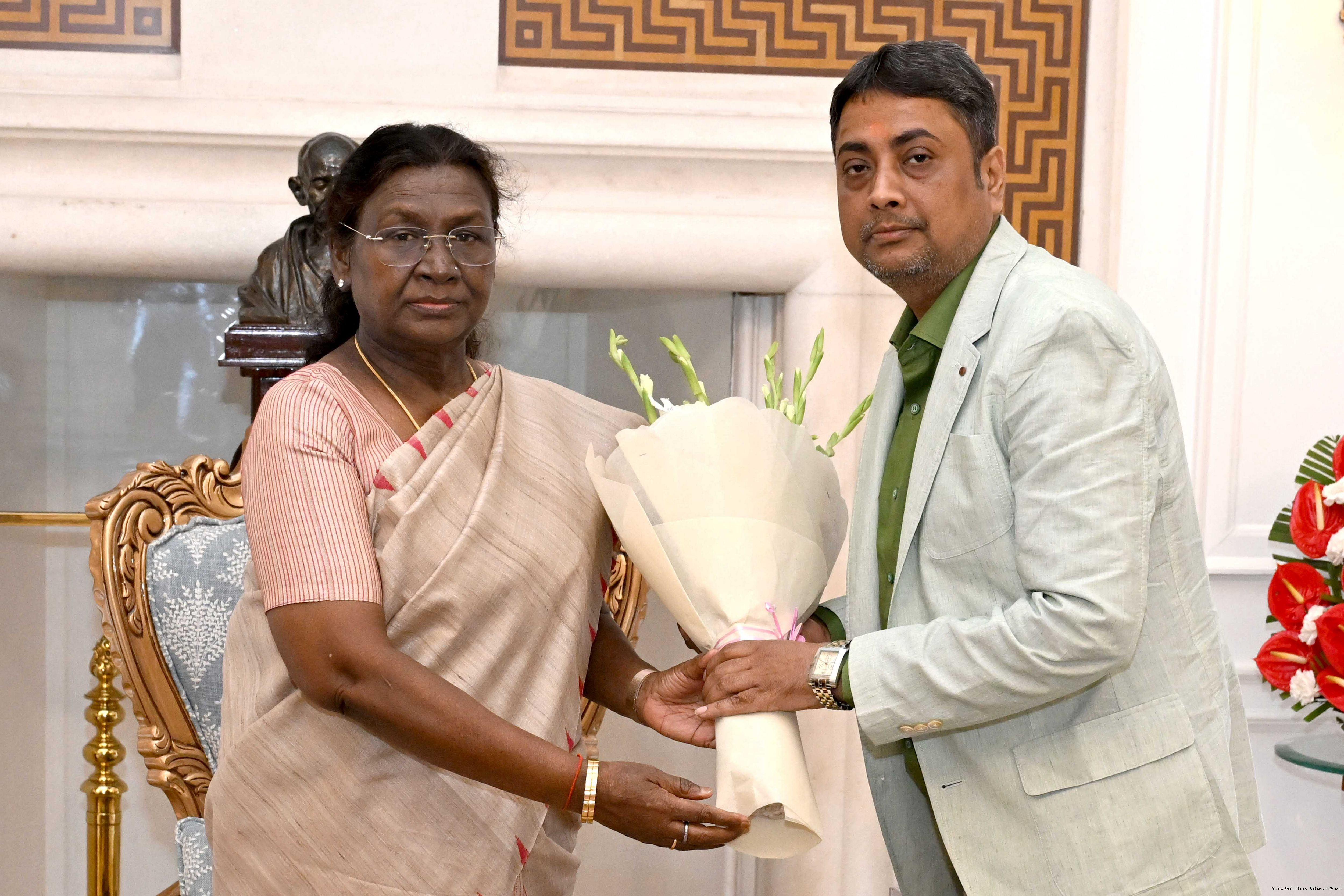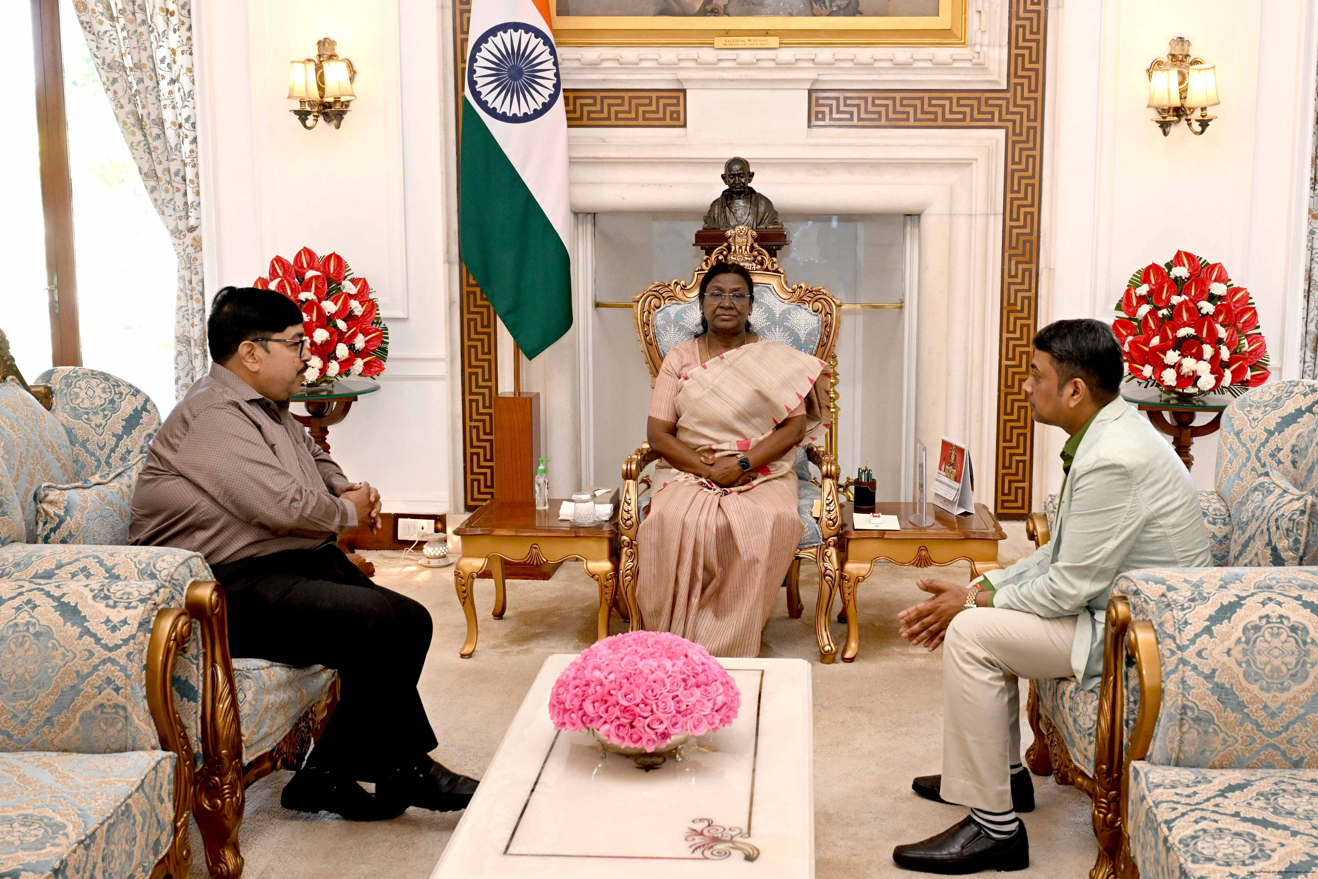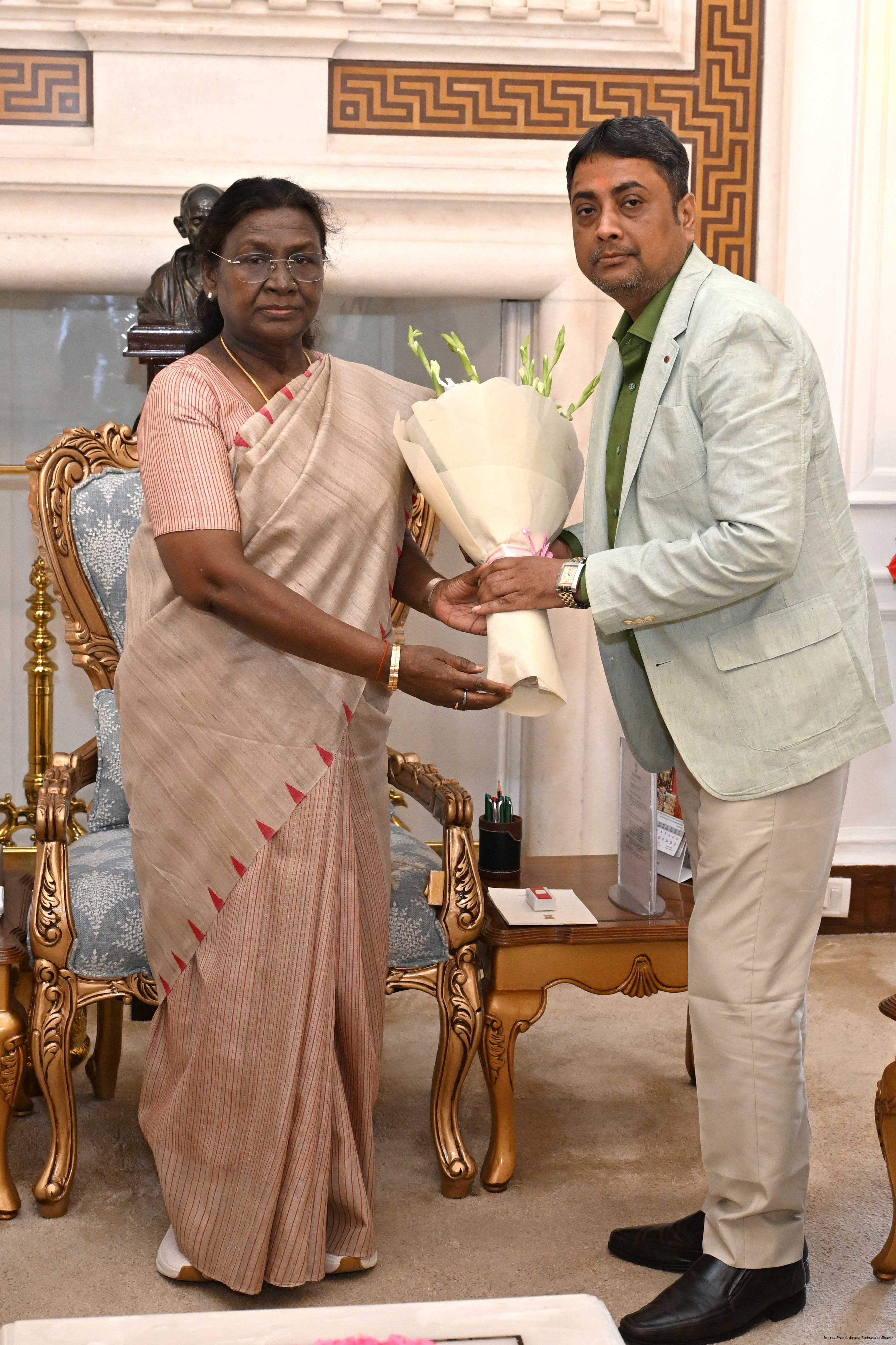 | Caption: | Shri Manoj Kumar Dhandhania from Rairangpur along with other meeting with the President of India, Smt. Droupadi Murmu at Rashtrapati Bhavan on April 23, 2025. |