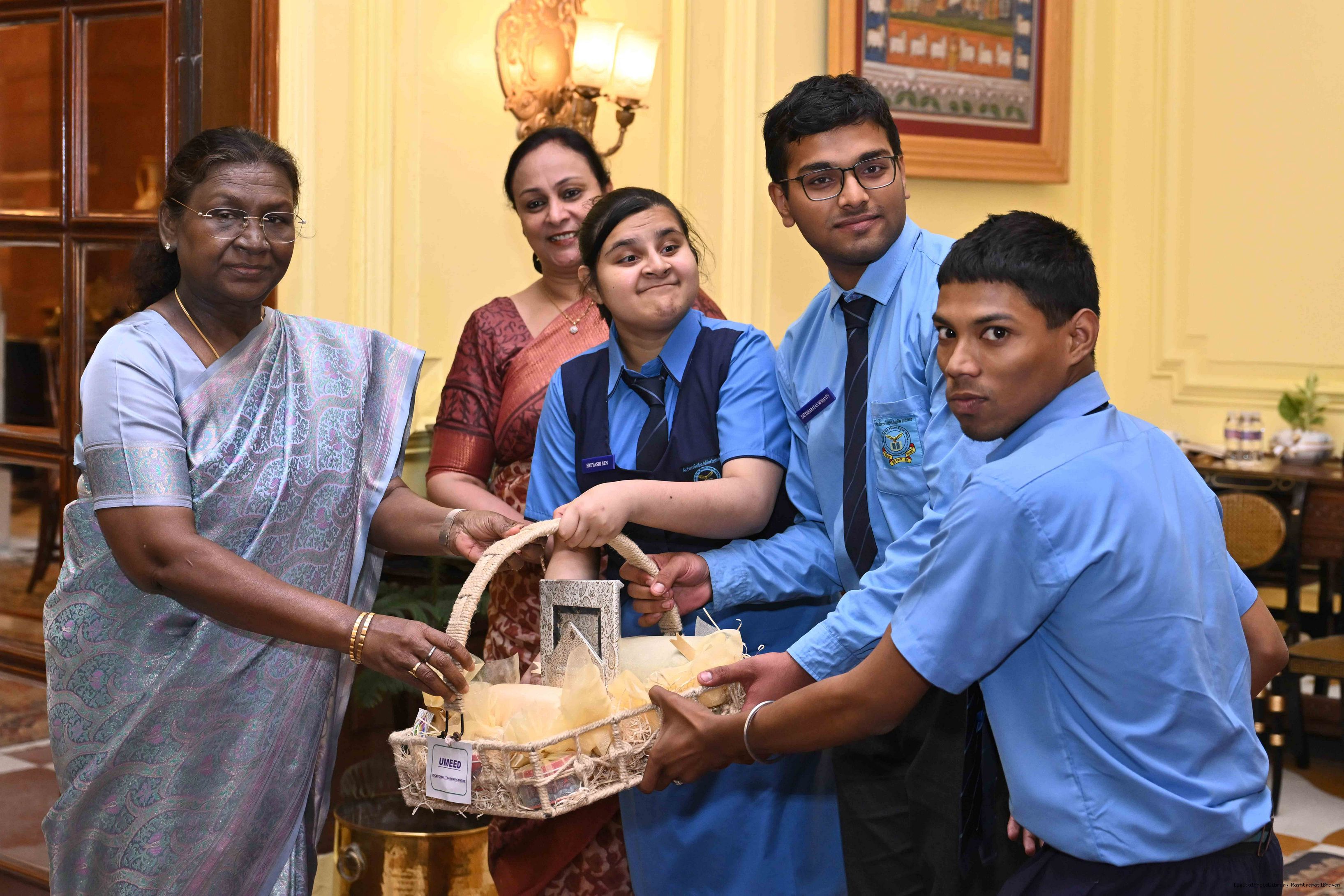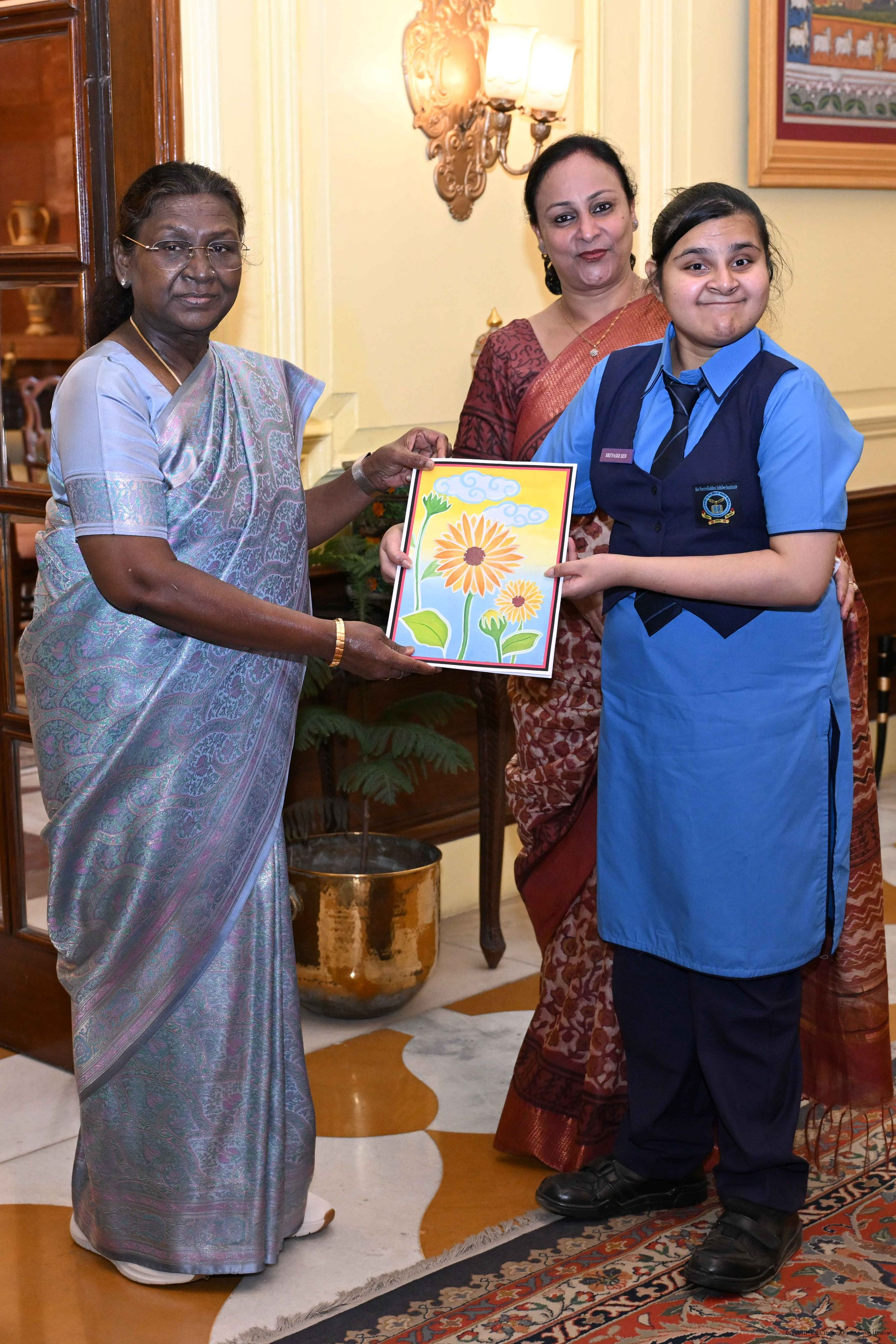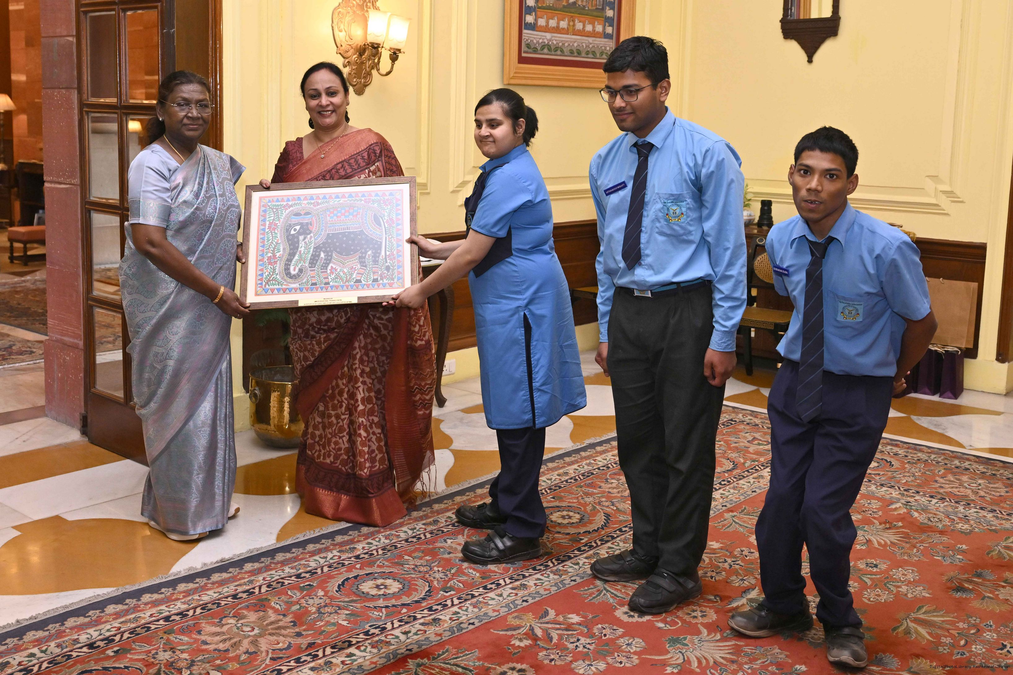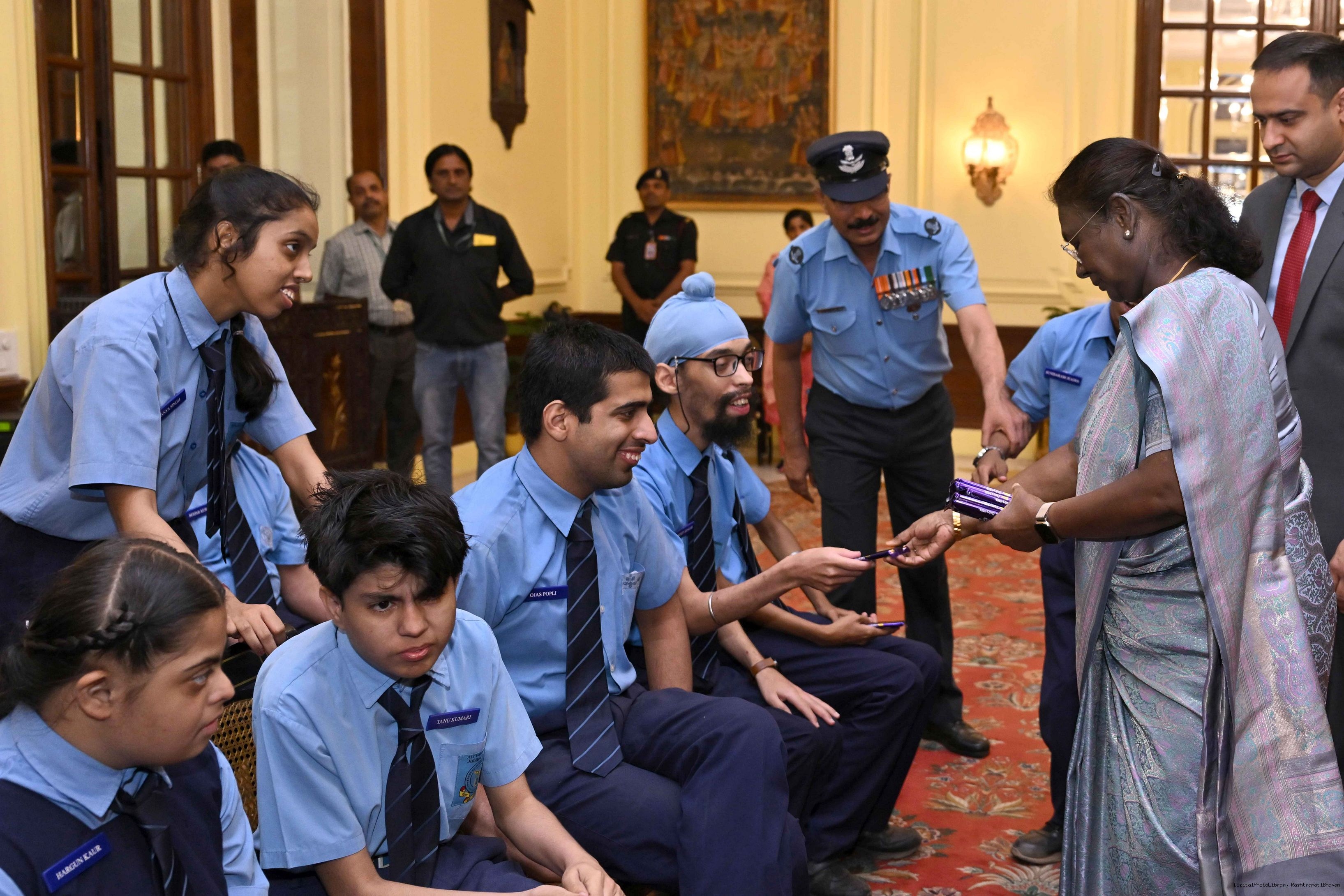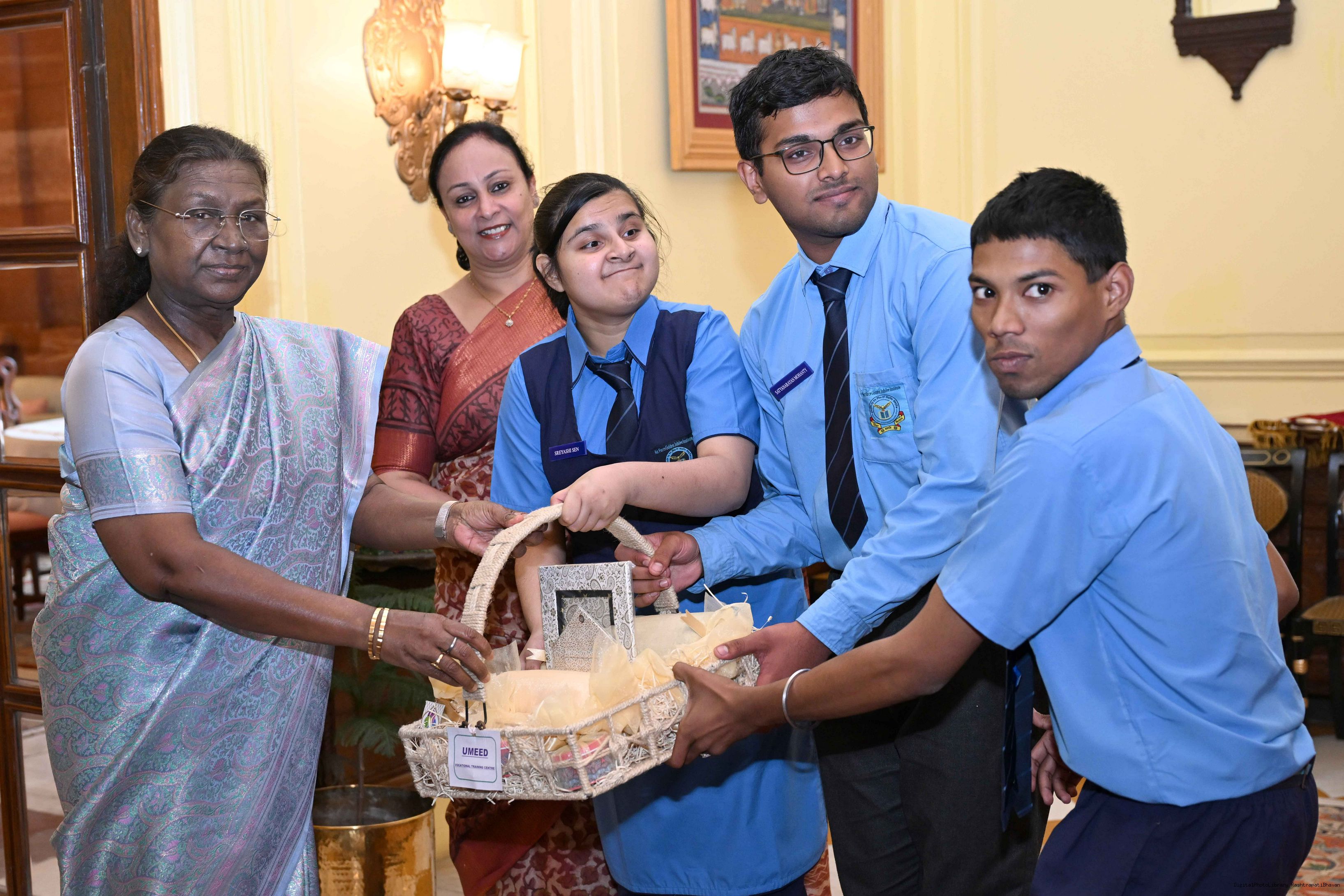 | Caption: | A group of specially-abled young adults from Umeed Vocational Training Centre, New Delhi called on the President of India, Smt. Droupadi Murmu at Rashtrapati Bhavan on April 30, 2025. |