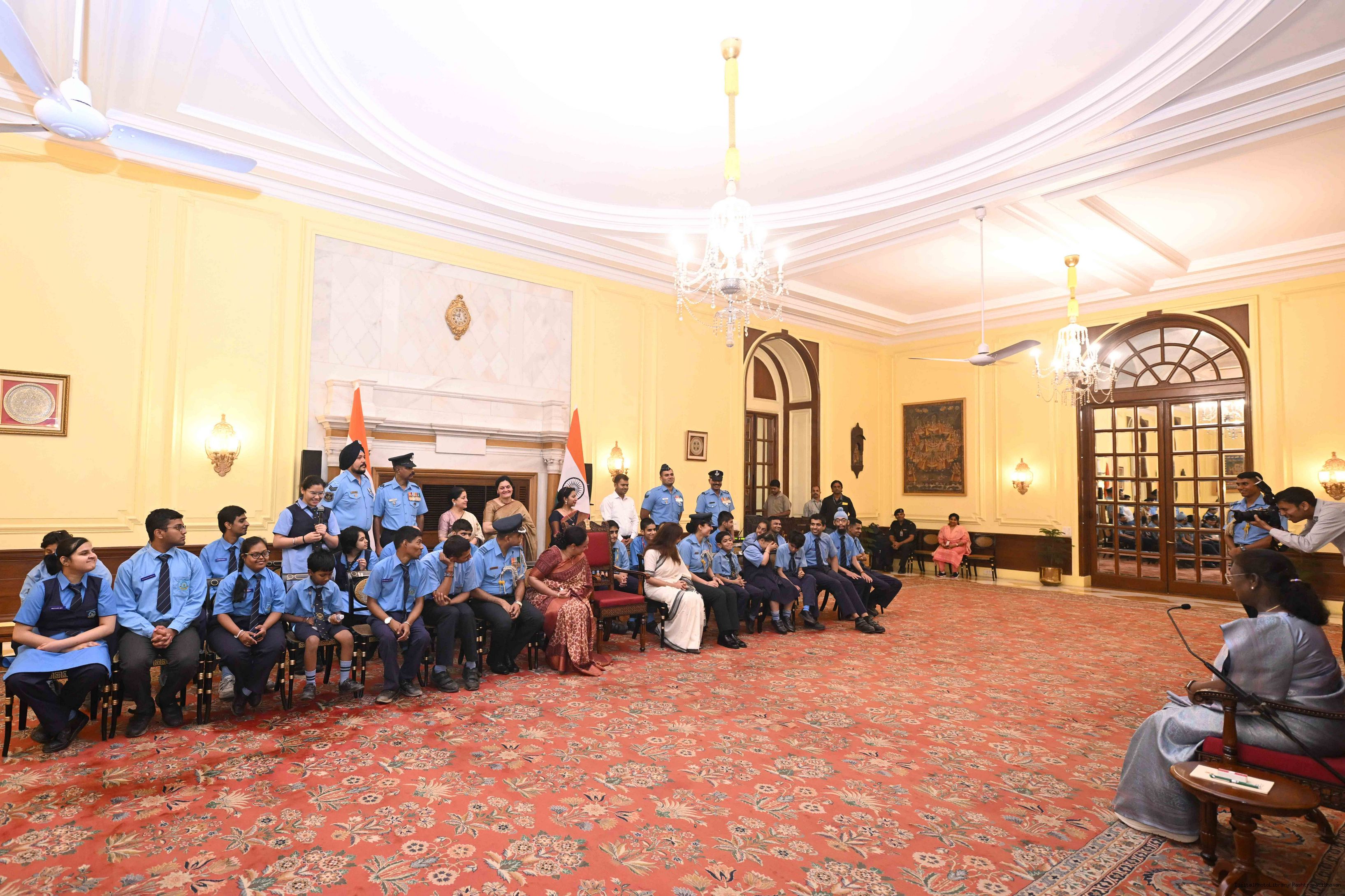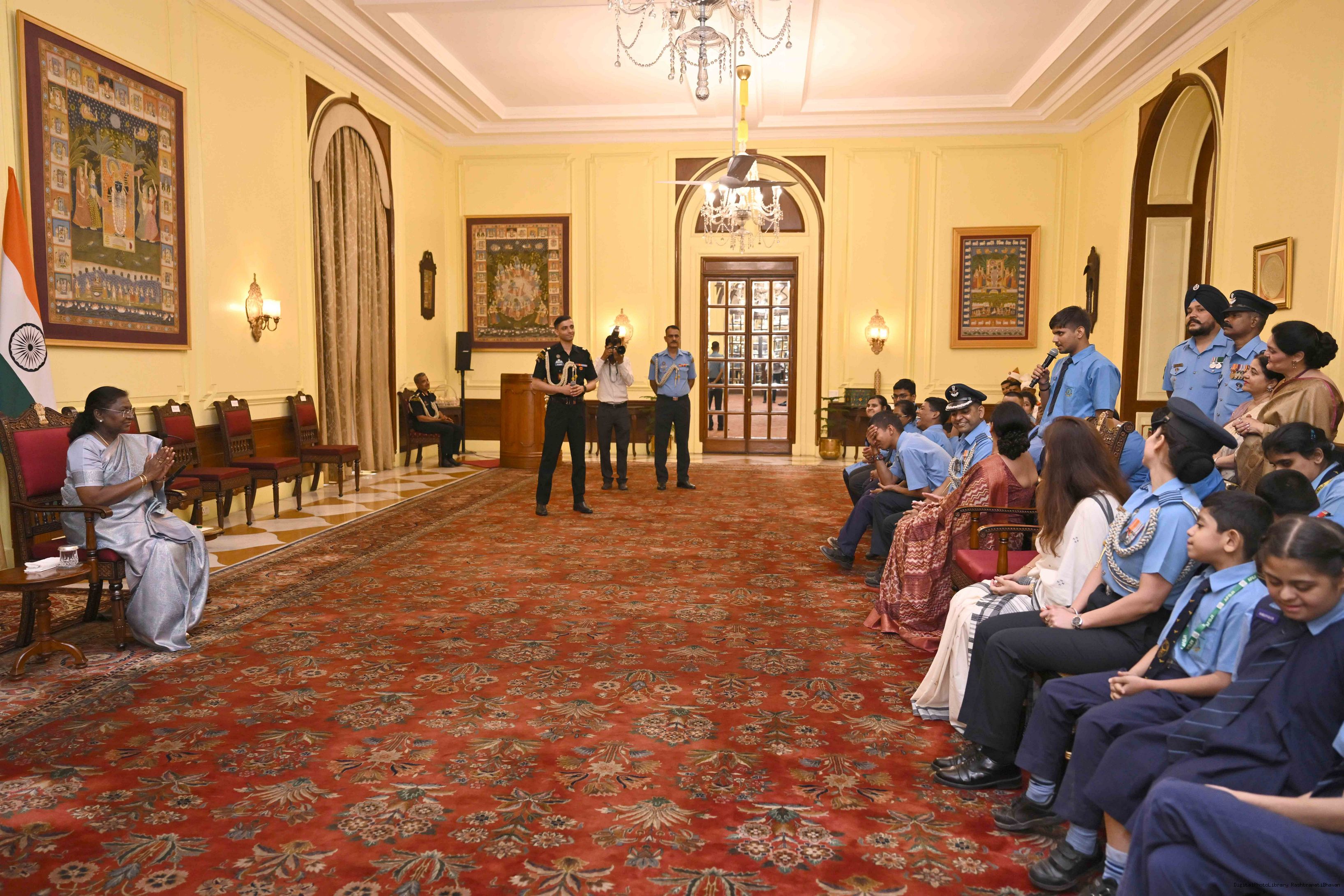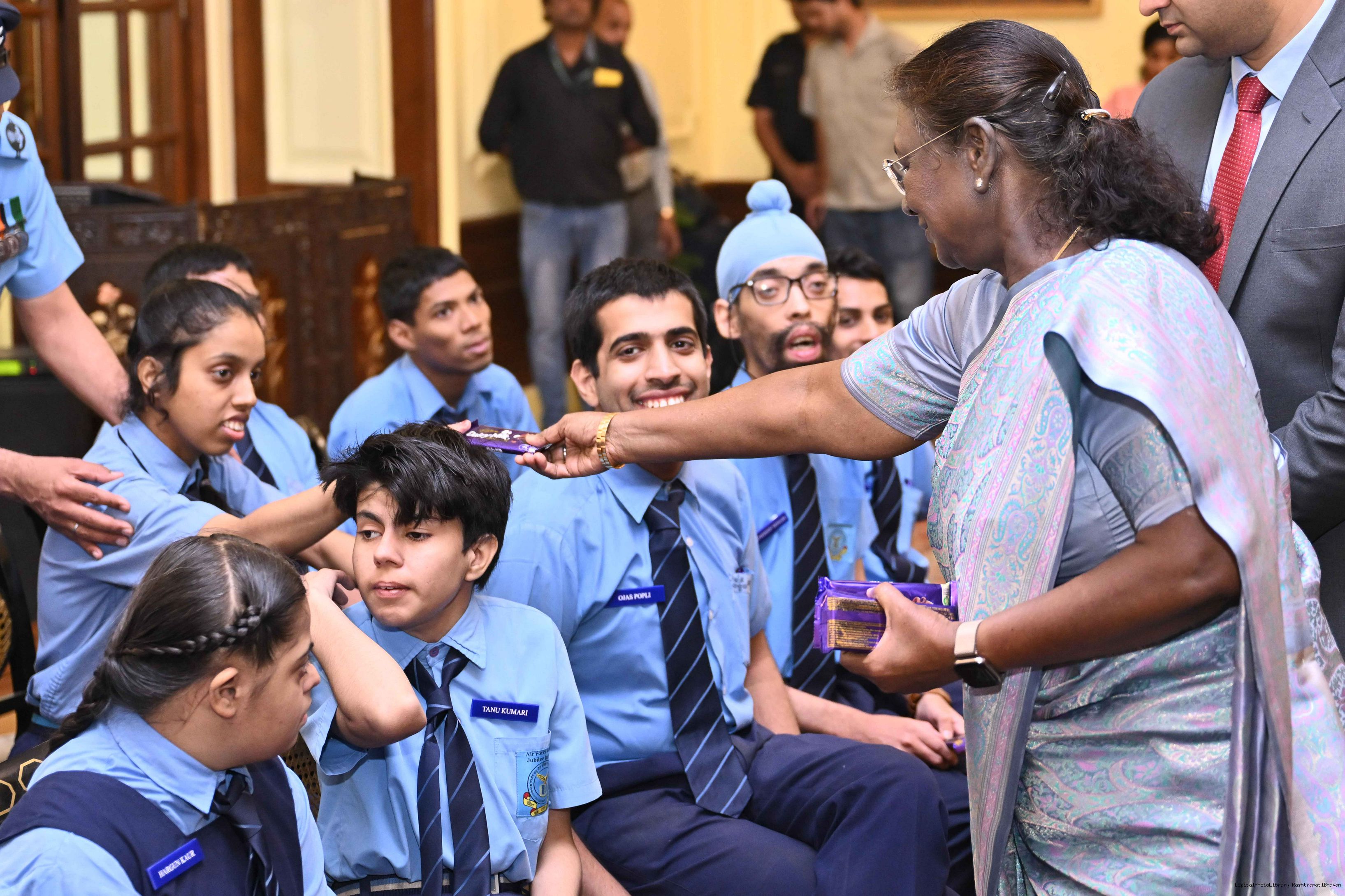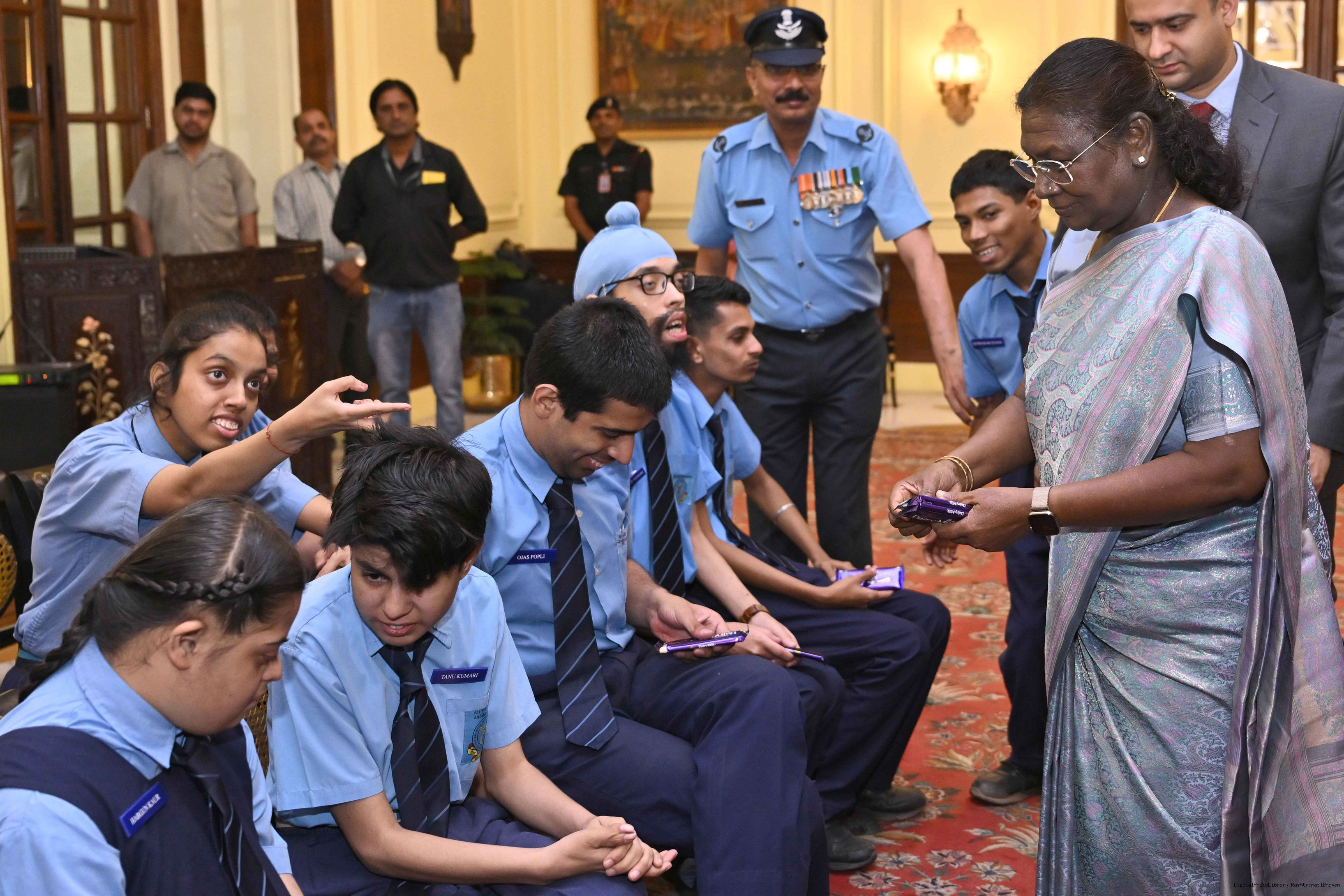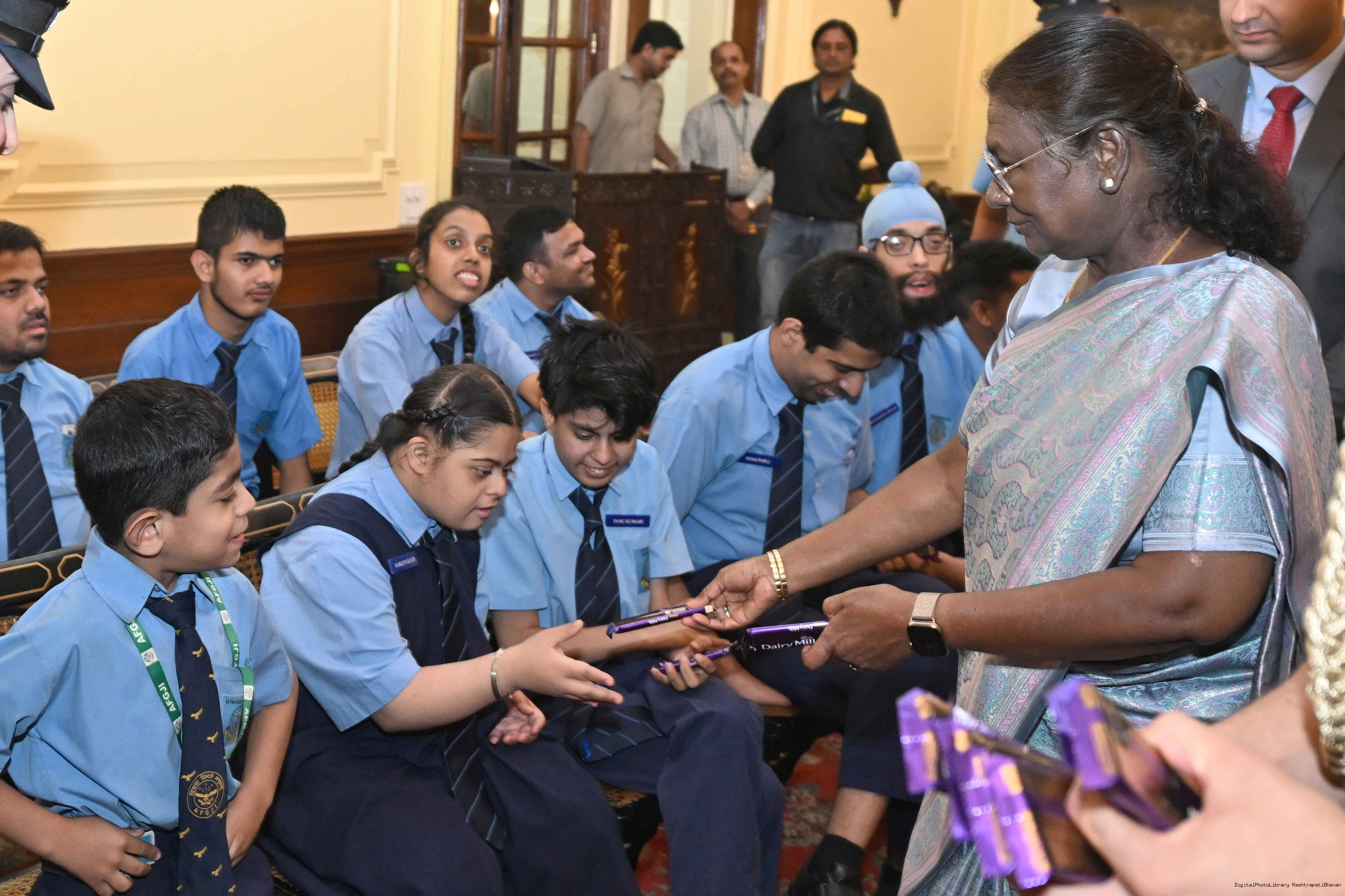 | Caption: | A group of specially-abled young adults from Umeed Vocational Training Centre, New Delhi called on the President of India, Smt. Droupadi Murmu at Rashtrapati Bhavan on April 30, 2025. |
