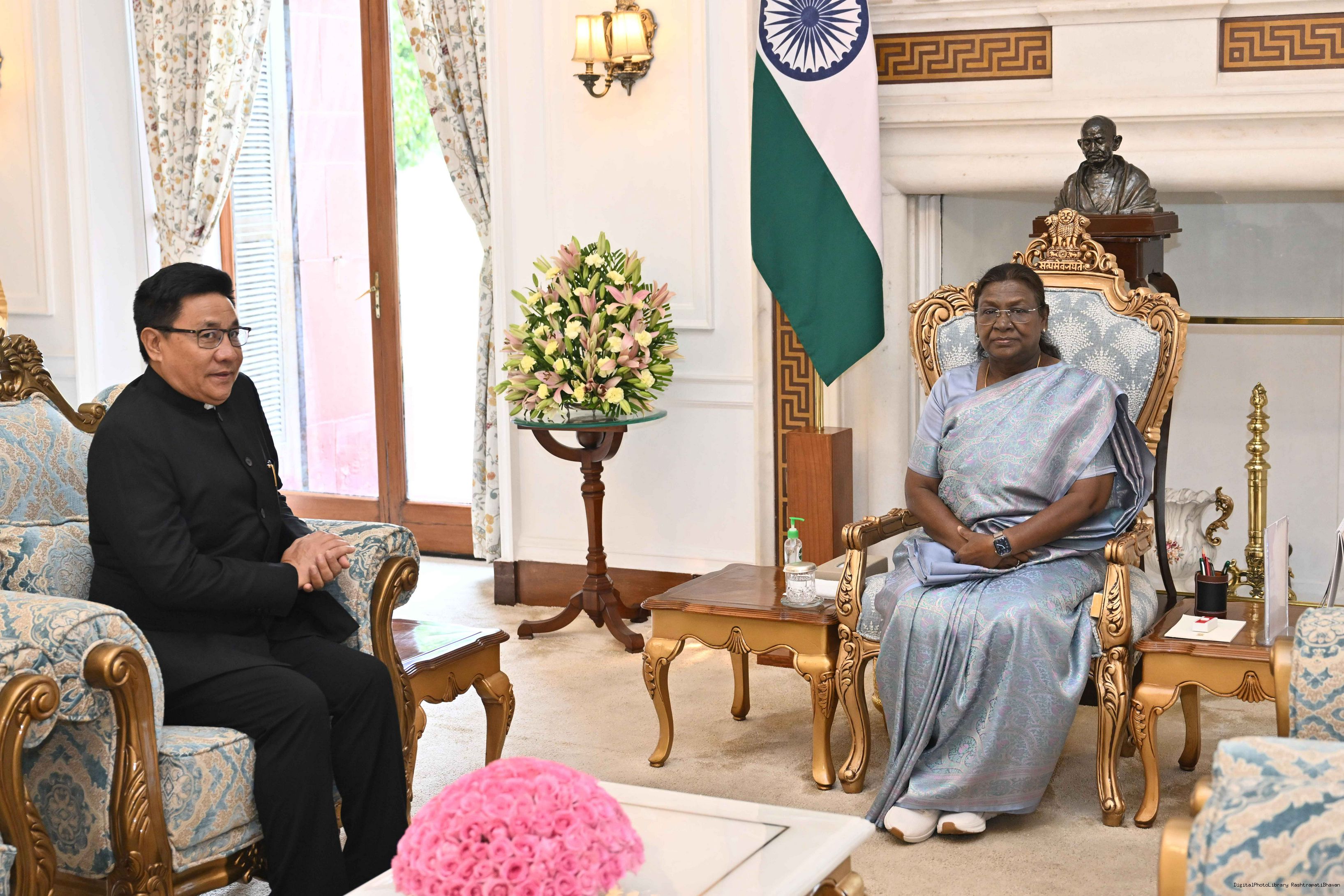 | Caption: | The Ambassador-designate to Kazakhstan, Shri Y.K. Sailas Thangal meeting with the President of India, Smt. Droupadi Murmu at Rashtrapati Bhavan on April 30, 2025. |