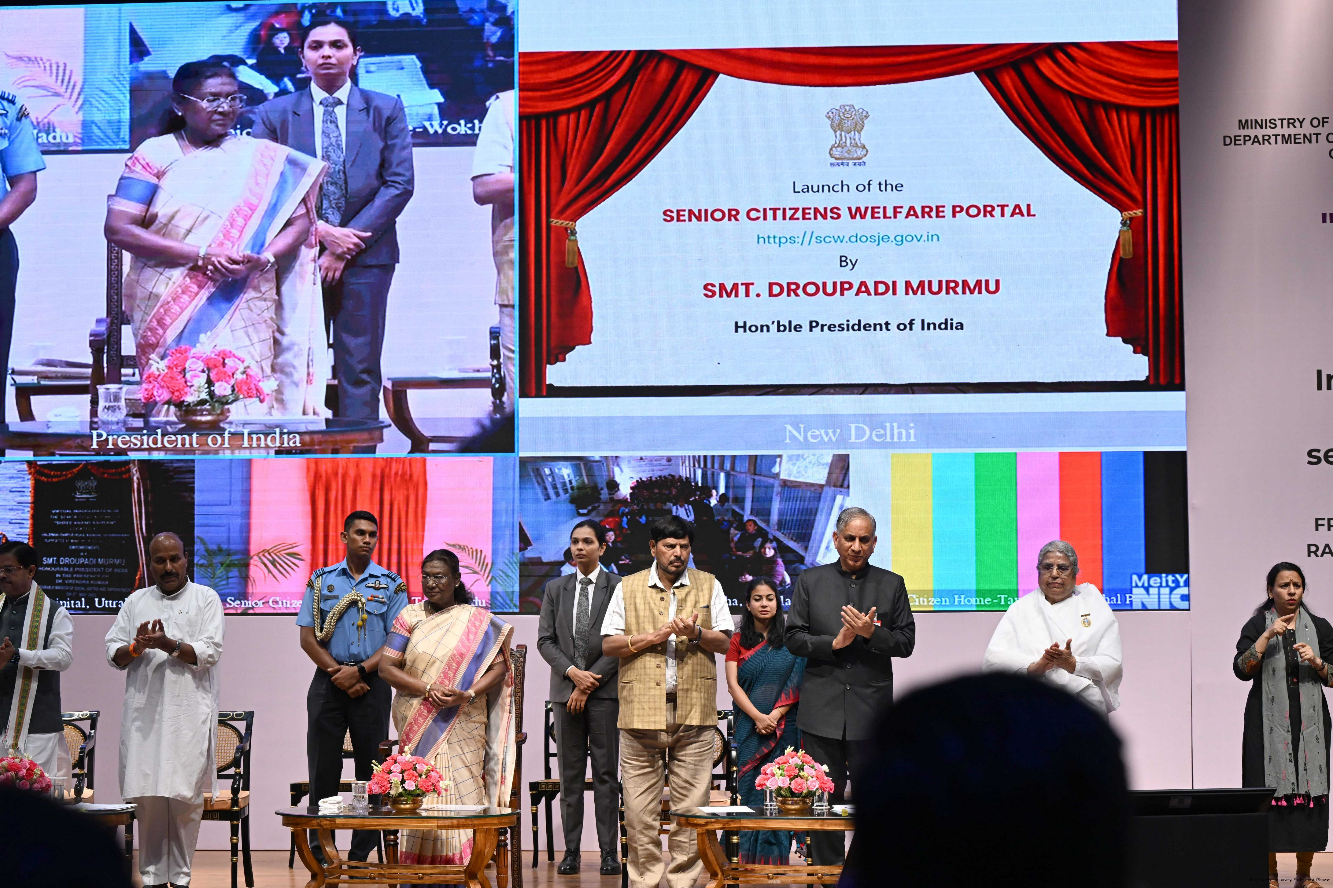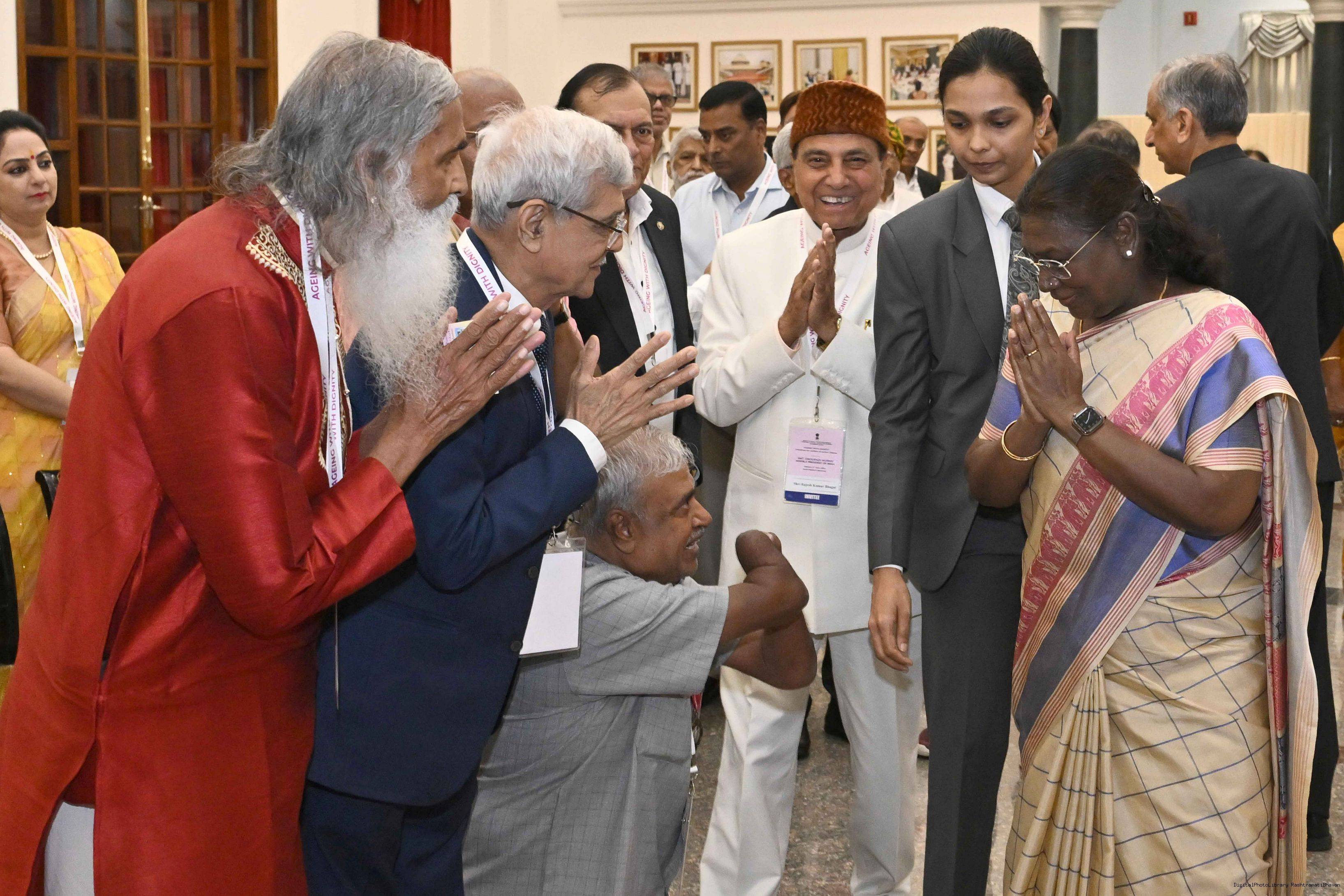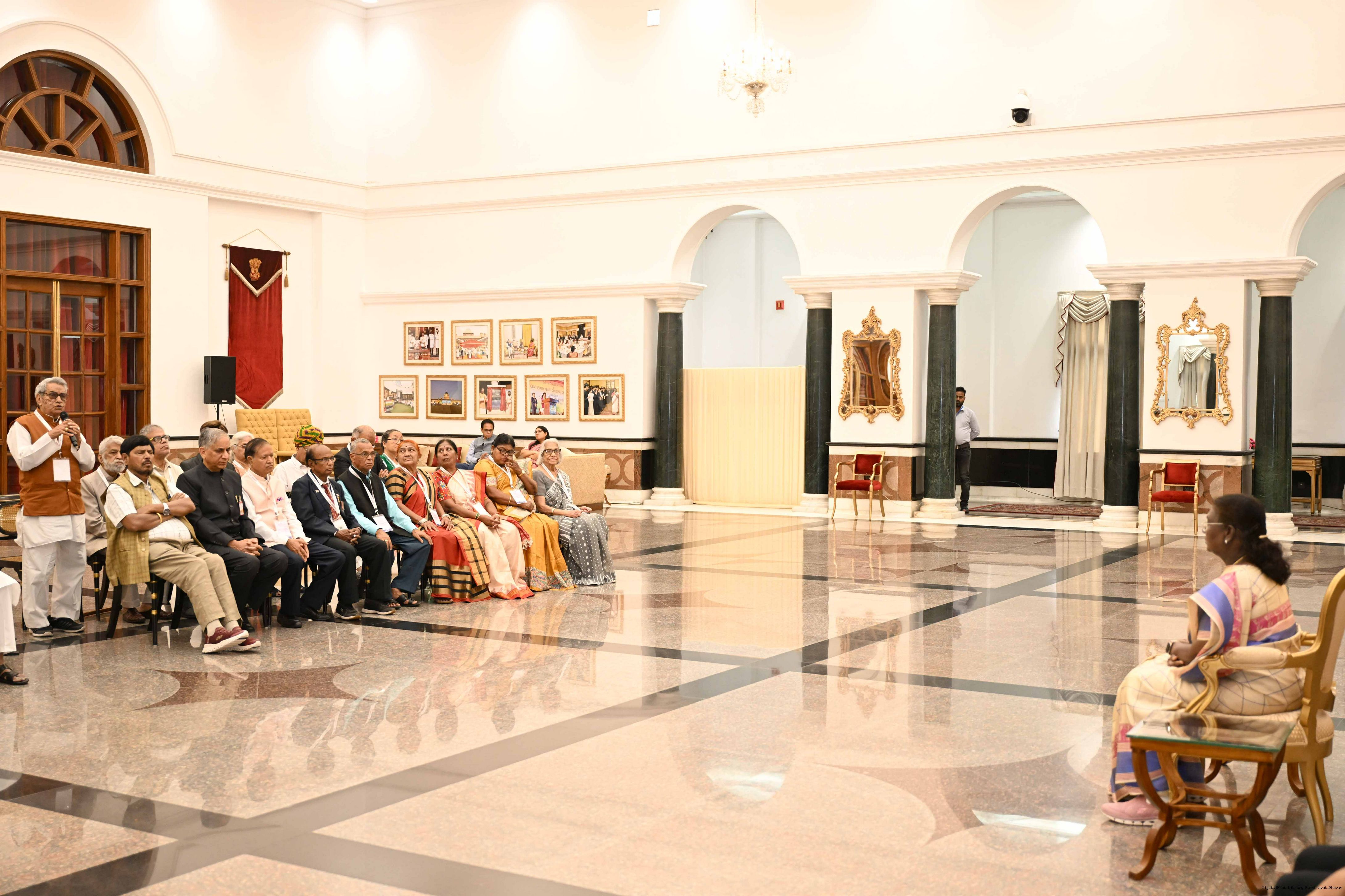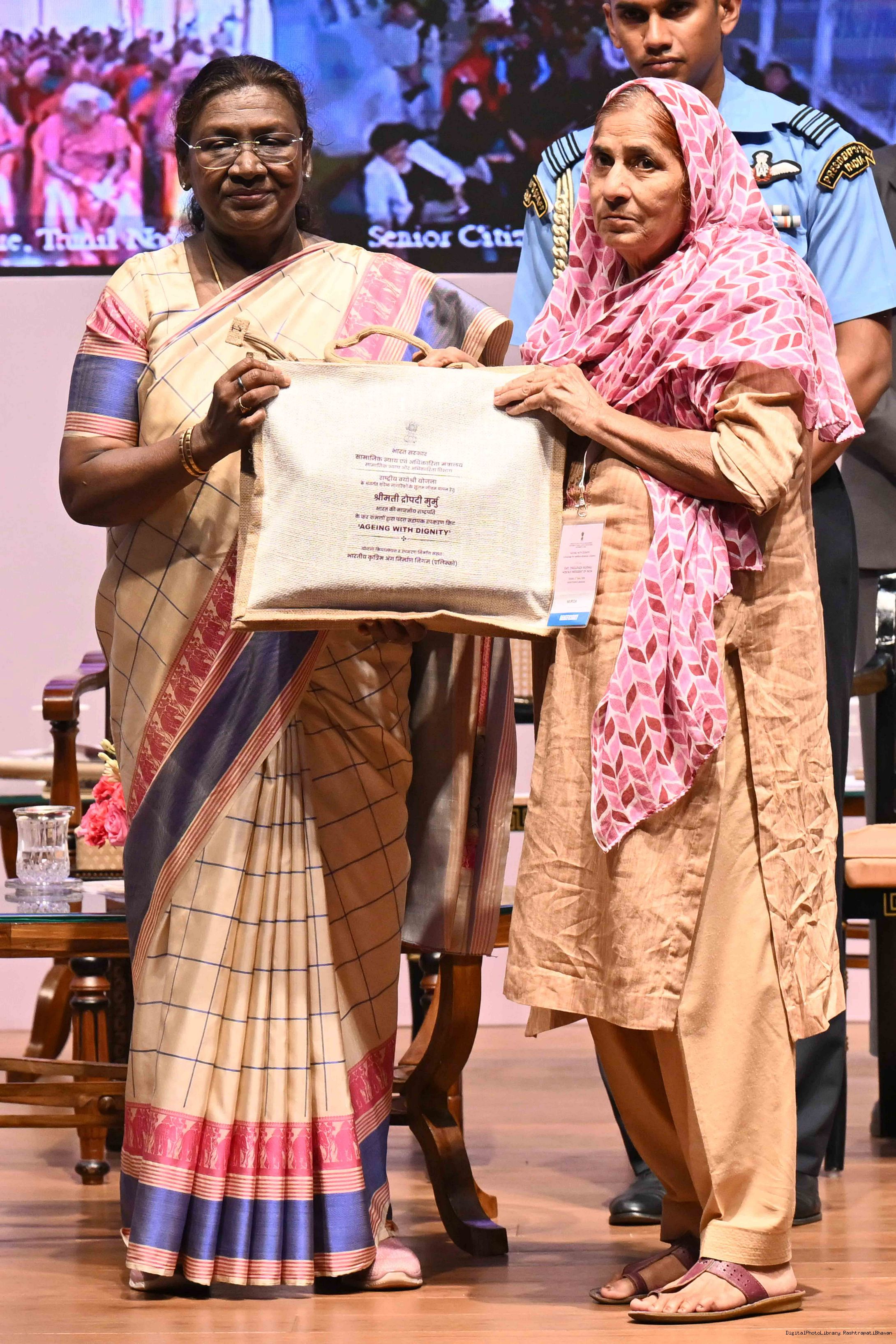 | Caption: | The President of India, Smt Droupadi Murmu graced an event ‘Ageing with Dignity’ - initiatives for the welfare of senior citizens at Rashtrapati Bhavan Cultural Centre on May 2, 2025. |