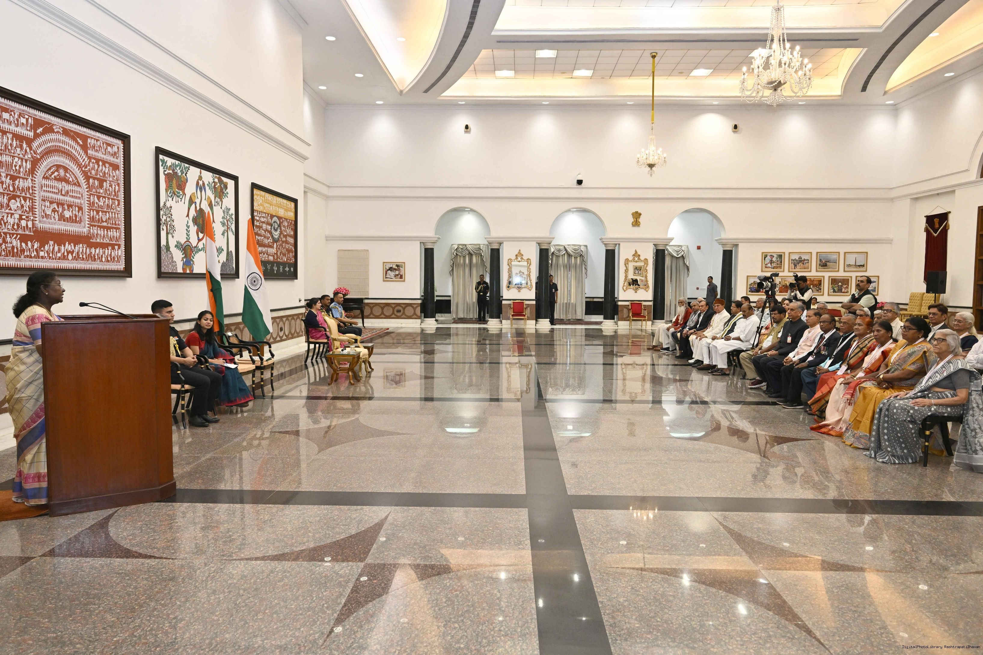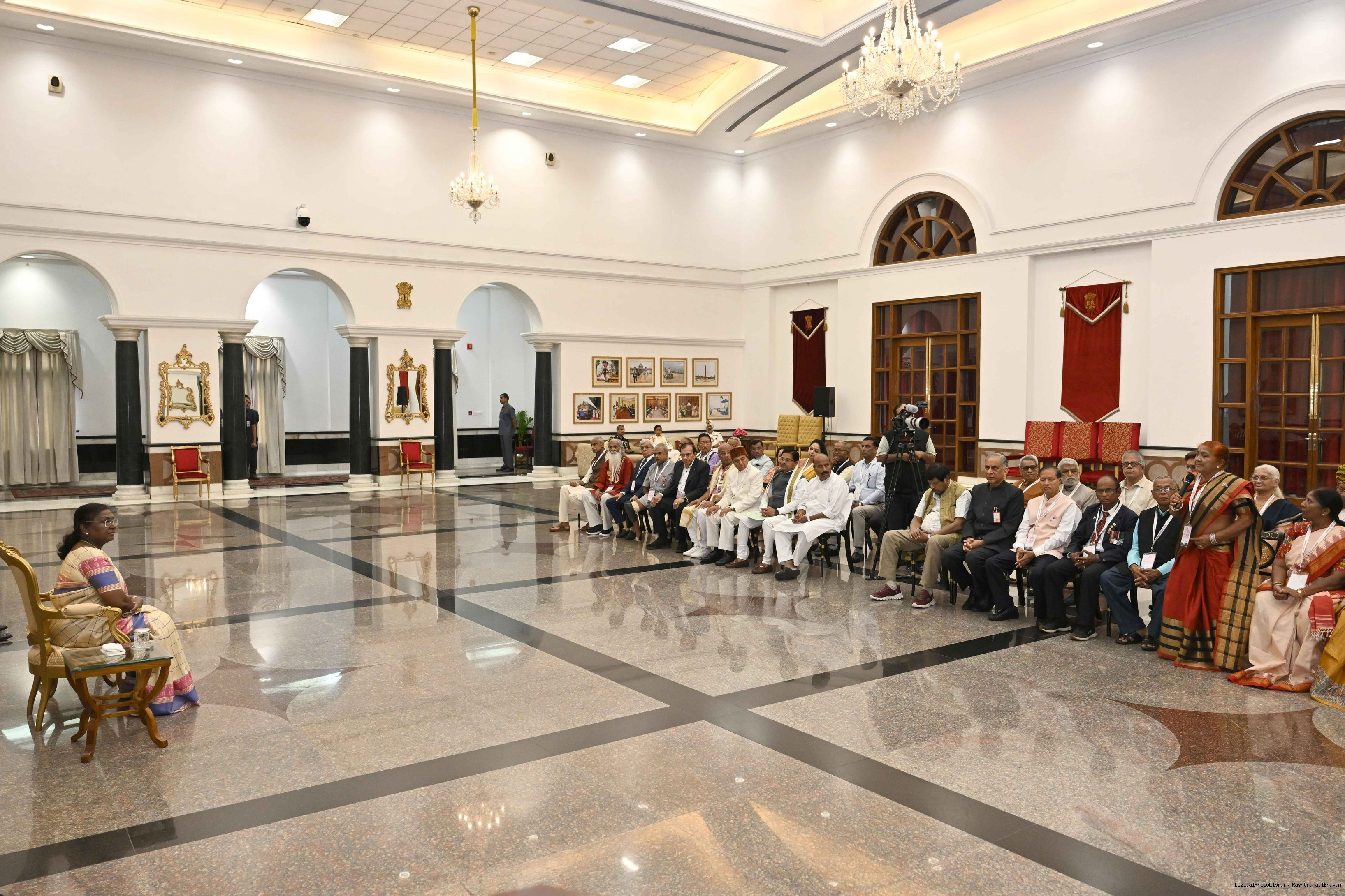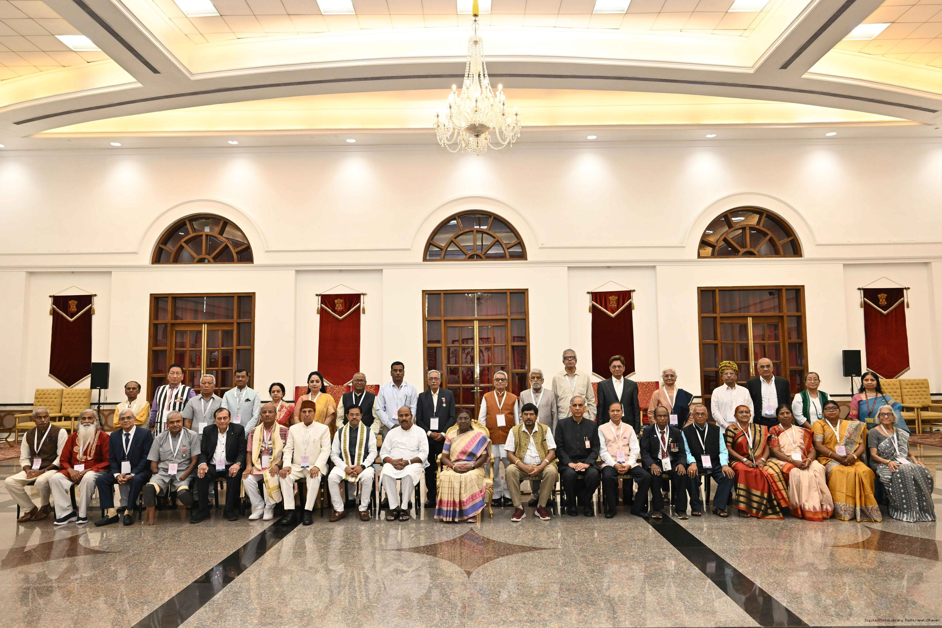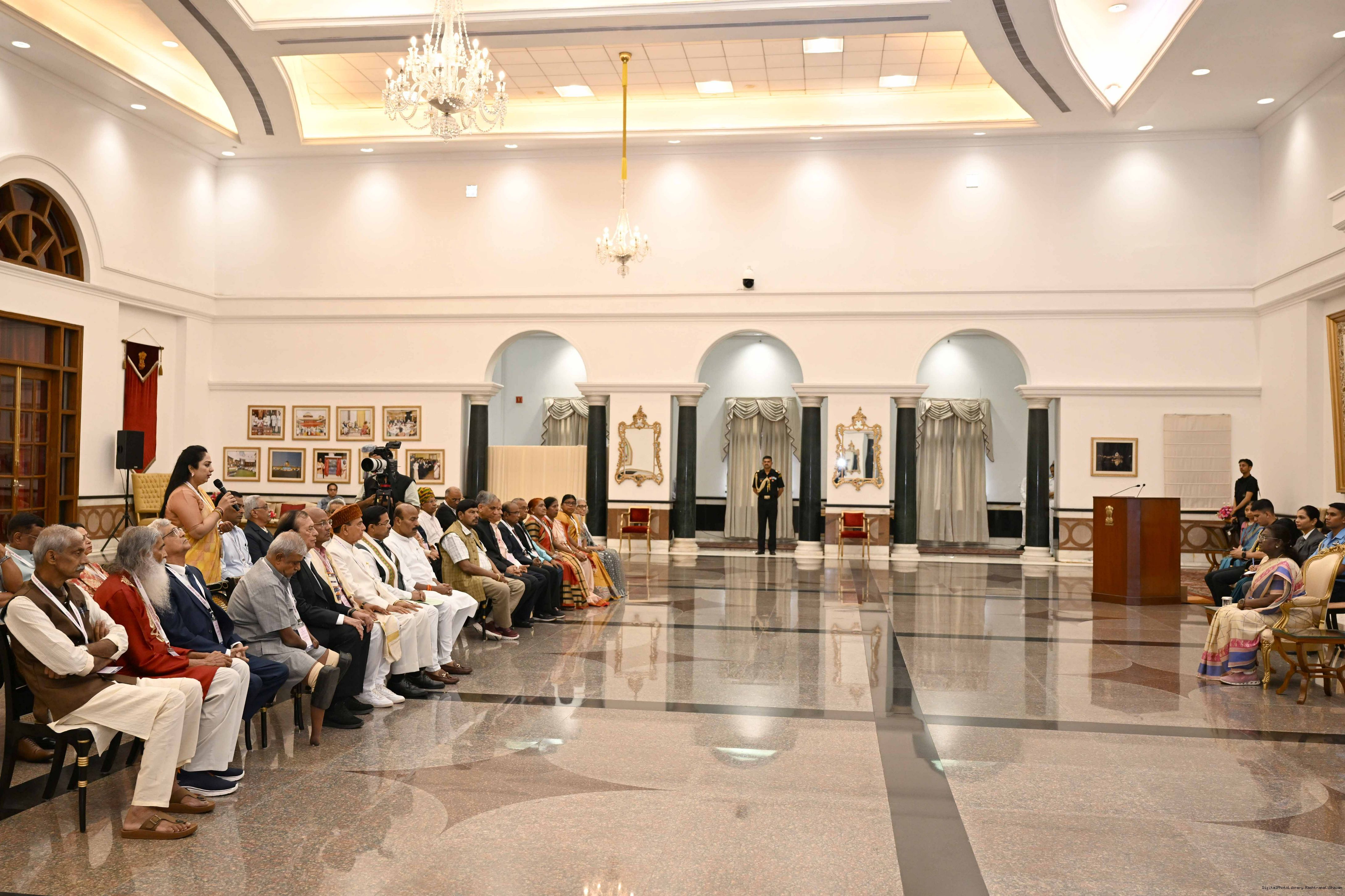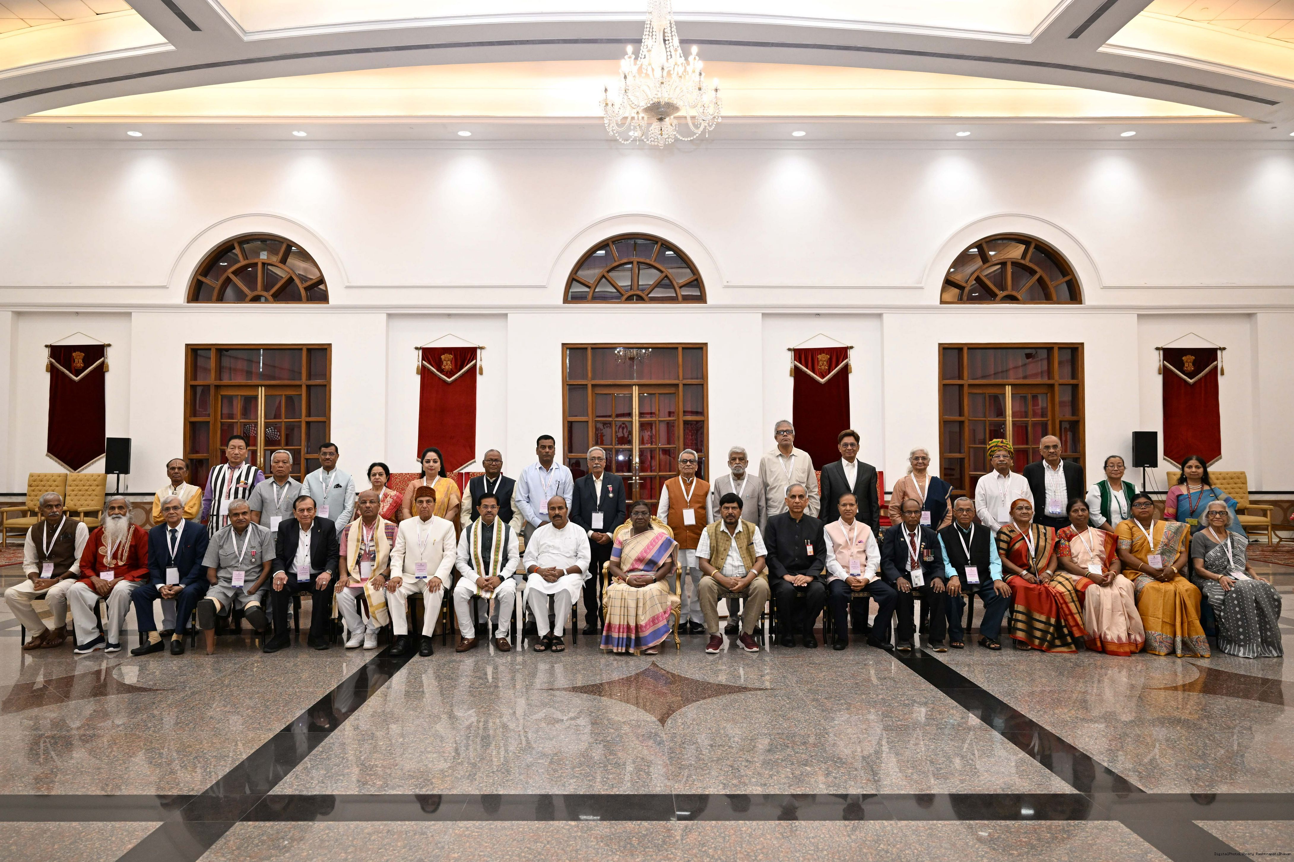 | Caption: | The President of India, Smt Droupadi Murmu graced an event ‘Ageing with Dignity’ - initiatives for the welfare of senior citizens at Rashtrapati Bhavan Cultural Centre on May 2, 2025. |