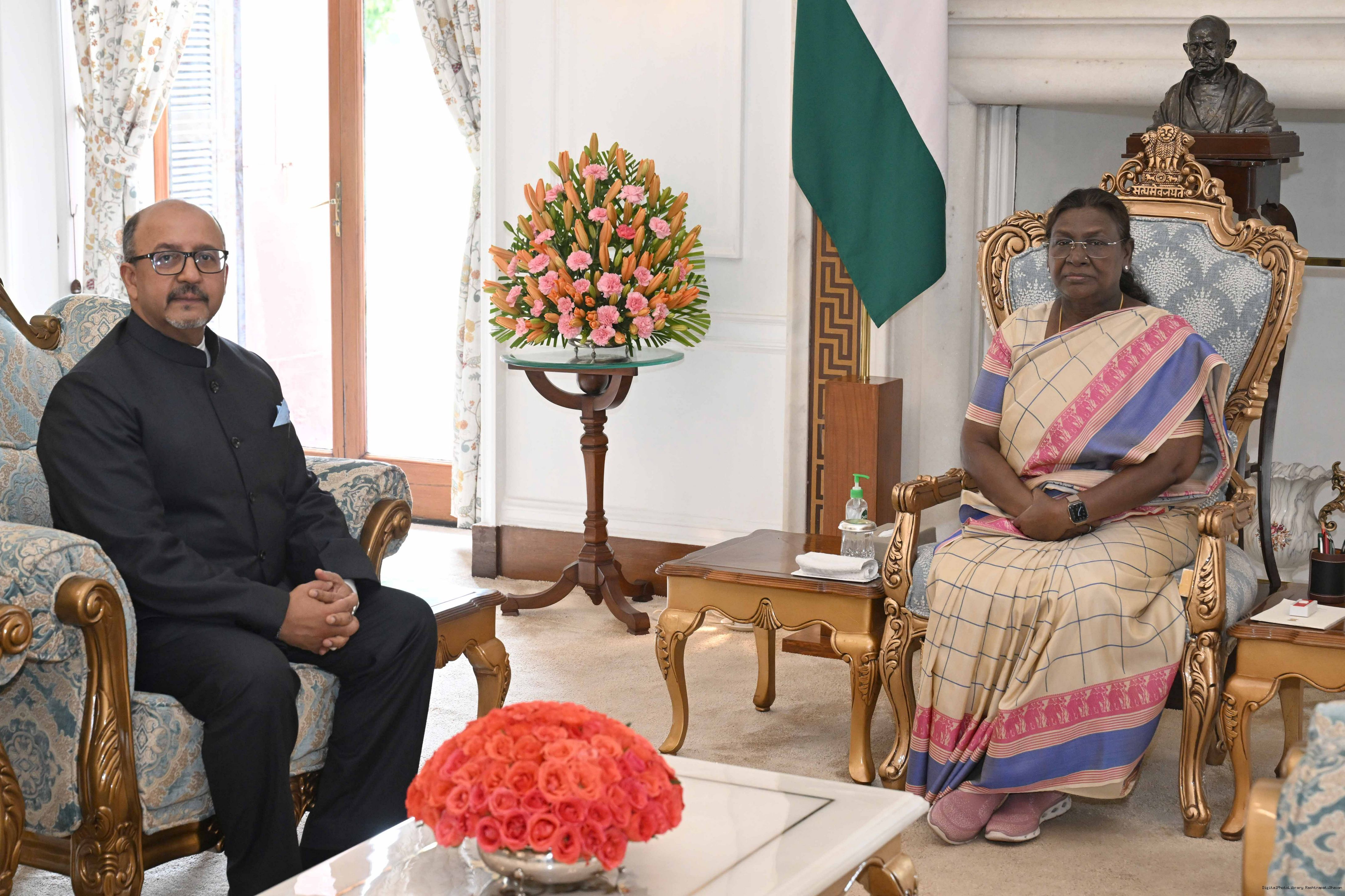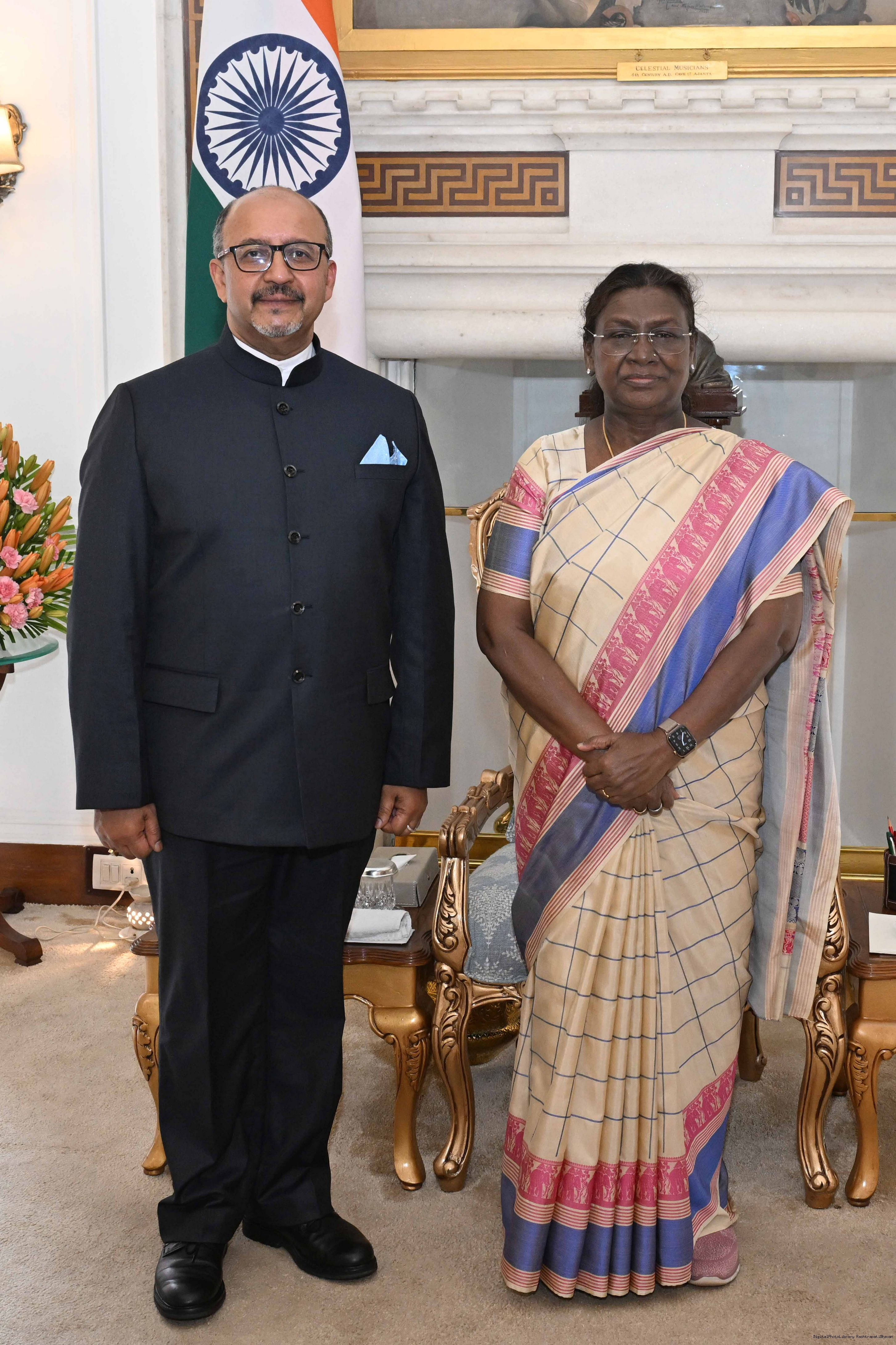 | Caption: | The Ambassador-designate of India to Argentina, Shri Ajaneesh Kumar meeting with the President of India, Smt. Droupadi Murmu at Rashtrapati Bhavan on May 2, 2025. |