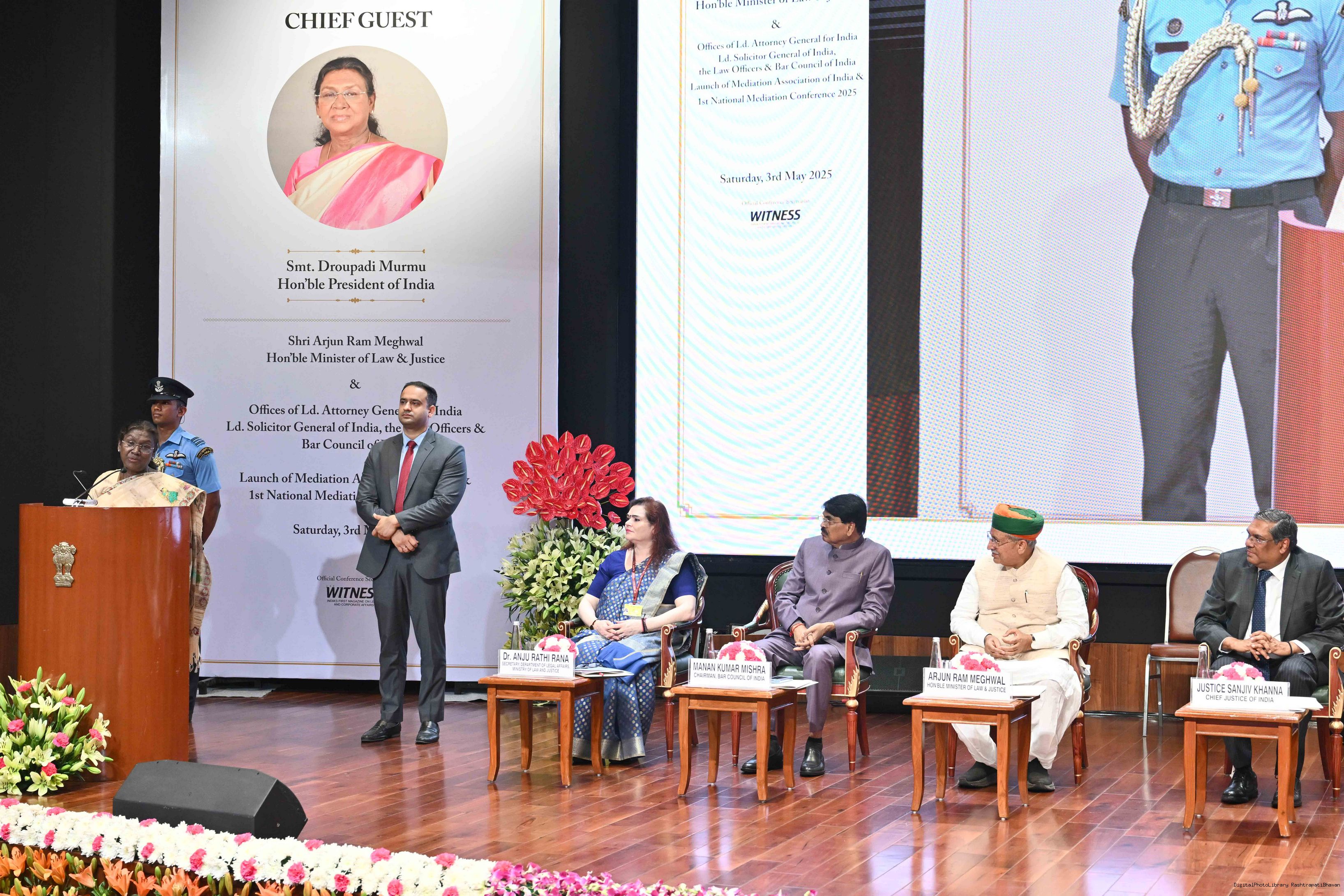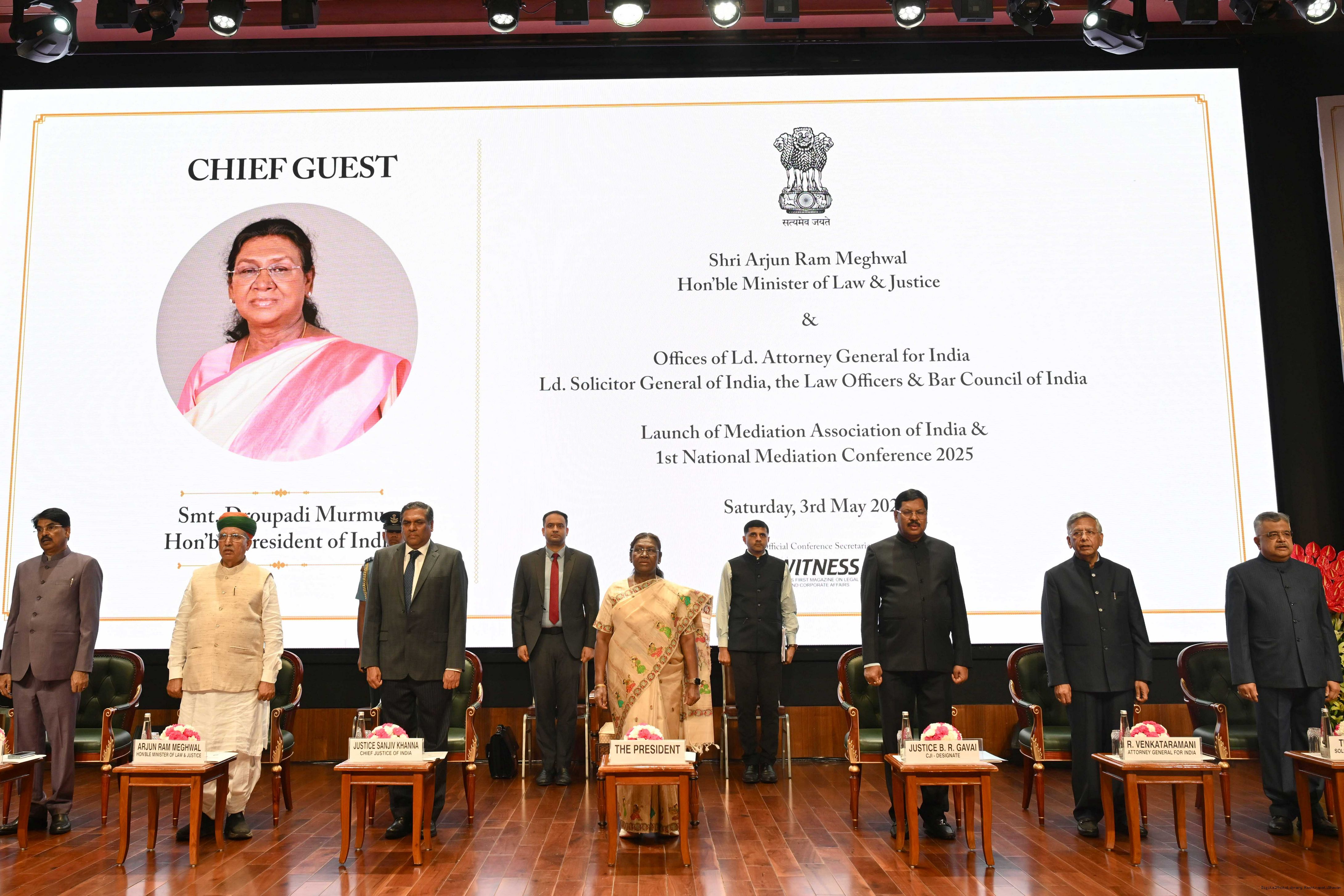 | Caption: | The President of India, Smt Droupadi Murmu graced the launch of the Mediation Association of India and addressed the First National Mediation Conference 2025 in New Delhi on May 3, 2025. |