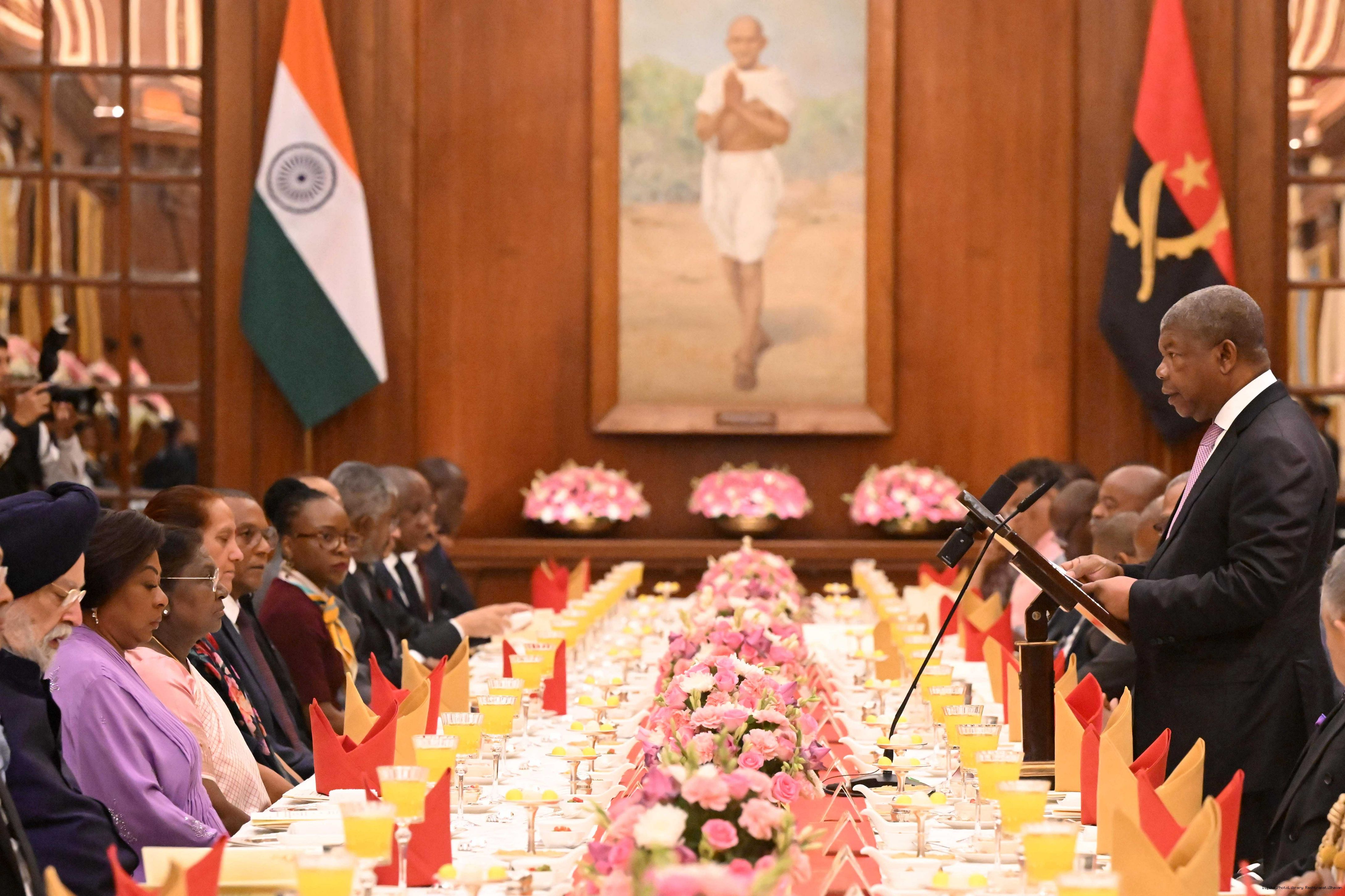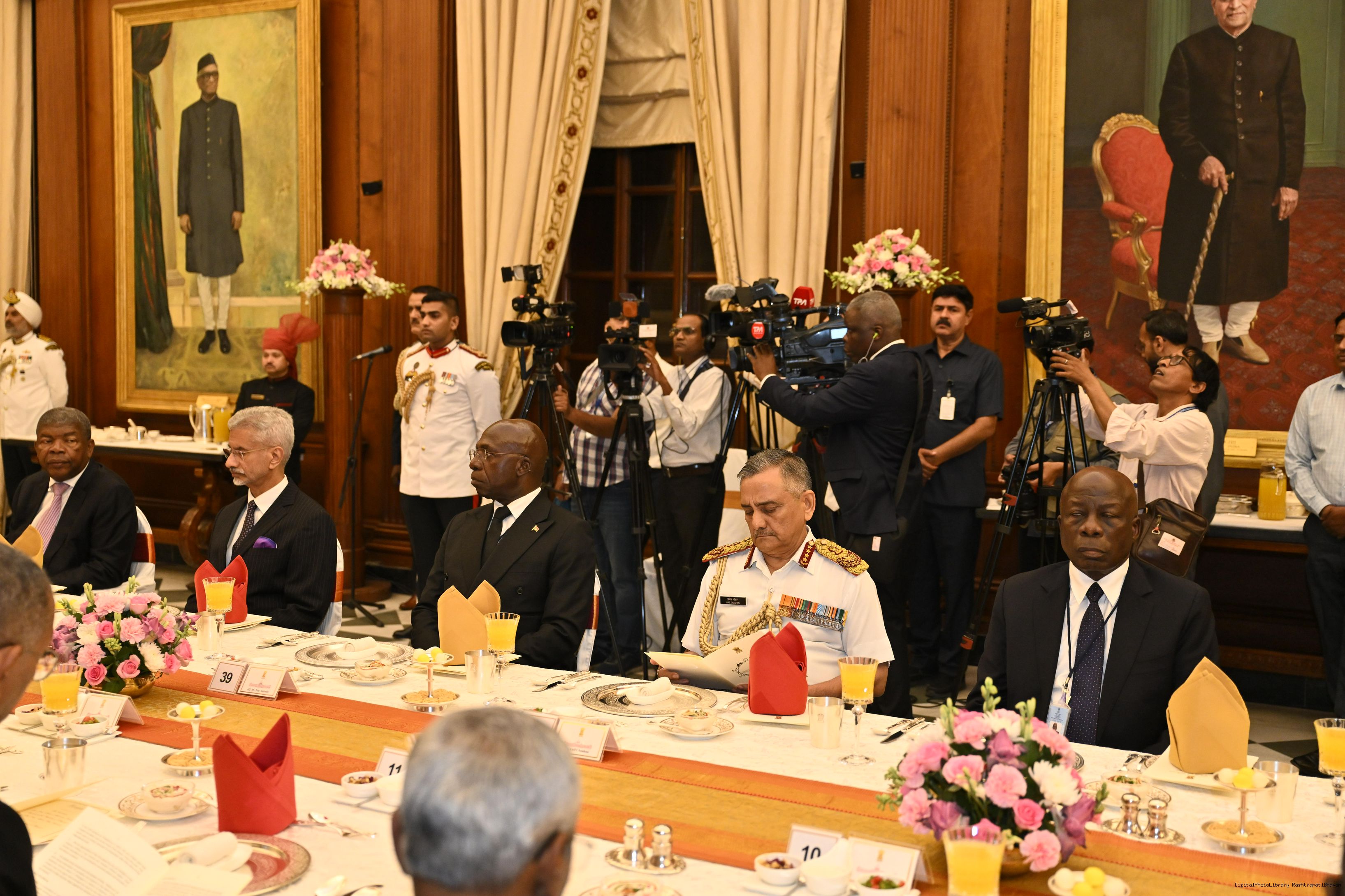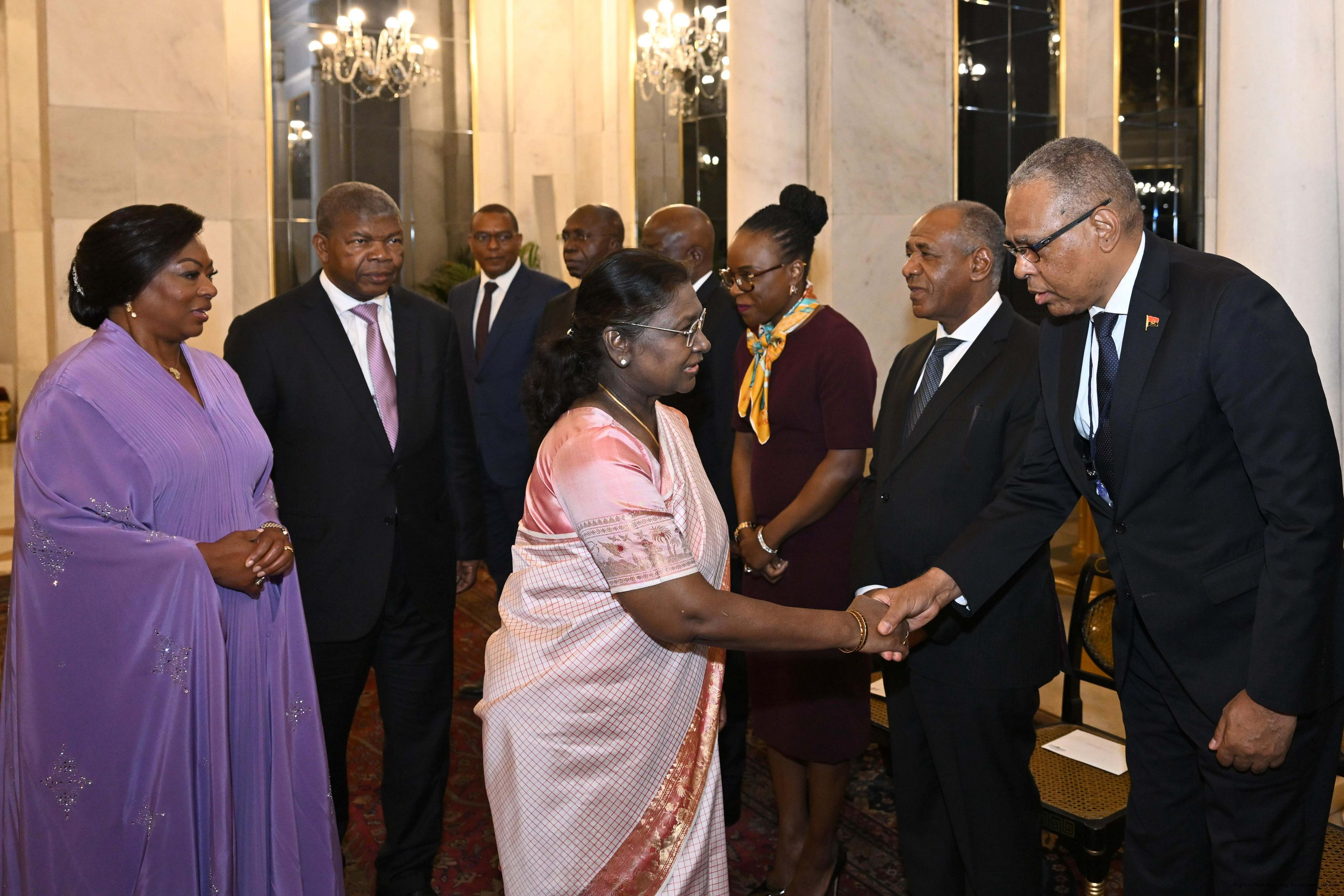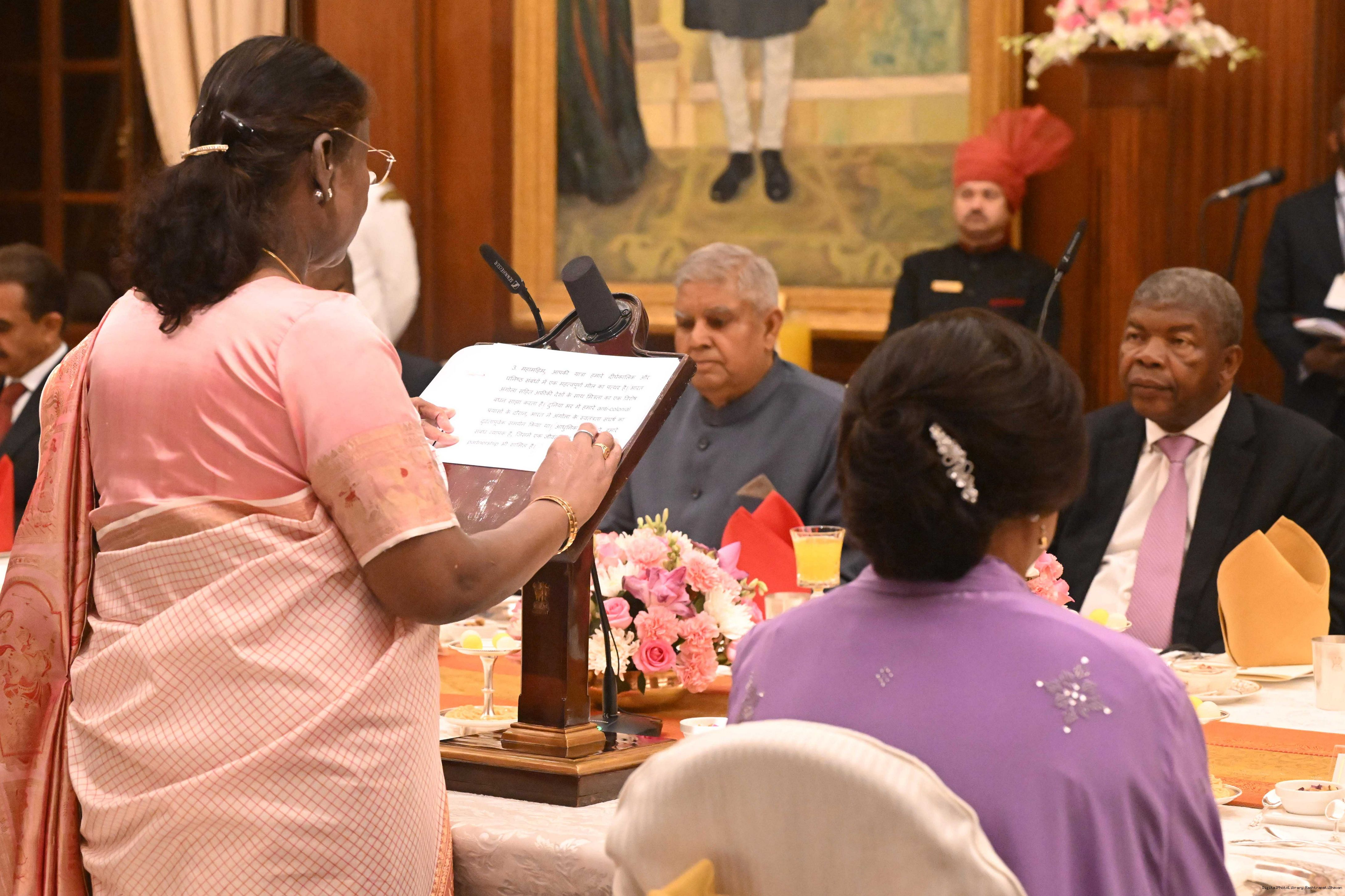 | Caption: | The President of India, Smt Droupadi Murmu hosted a banquet in the honour of H.E. Mr Joao Manuel Goncalves Lourenco, President of the Republic of Angola at Rashtrapati Bhavan on May 3, 2025. |