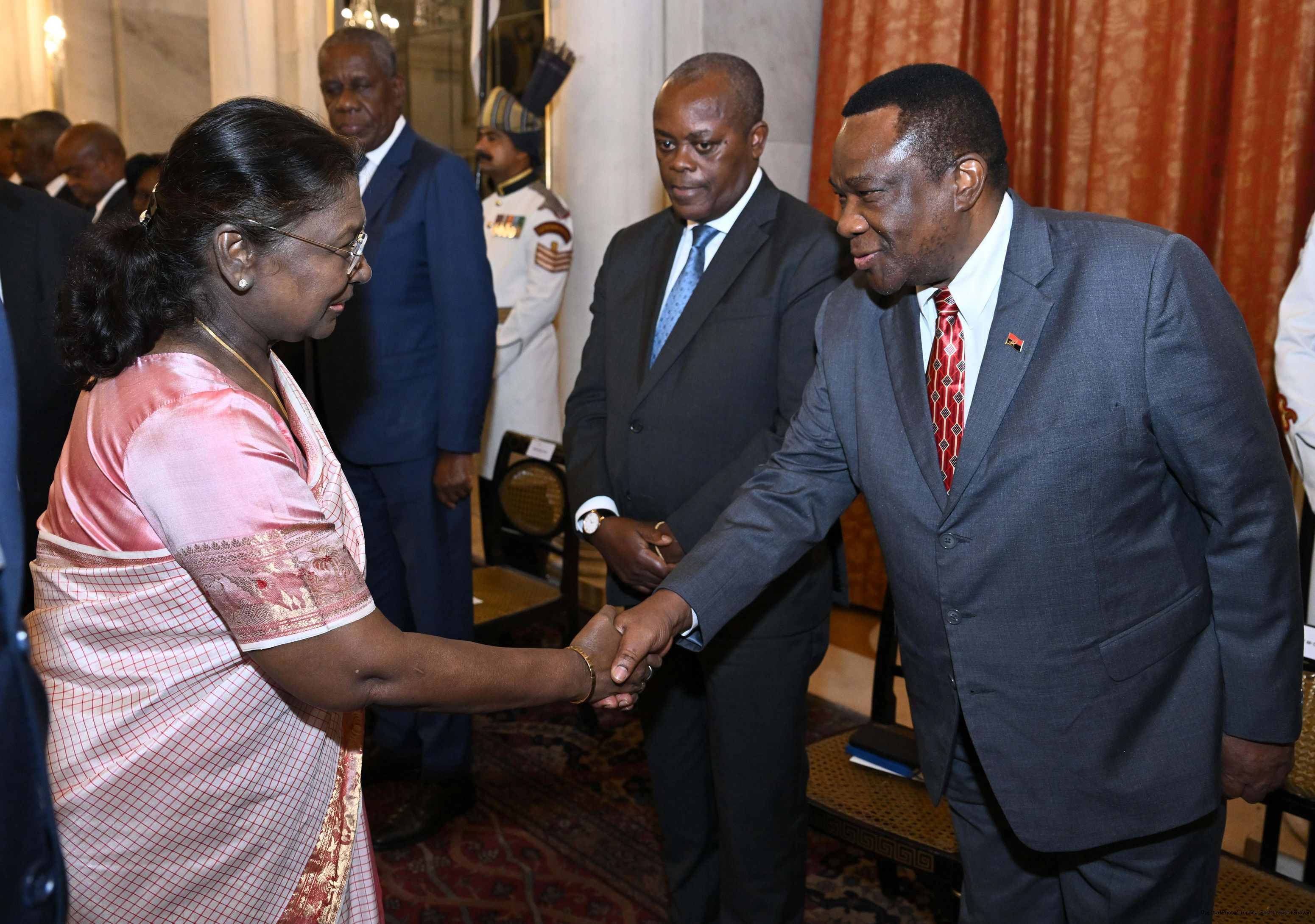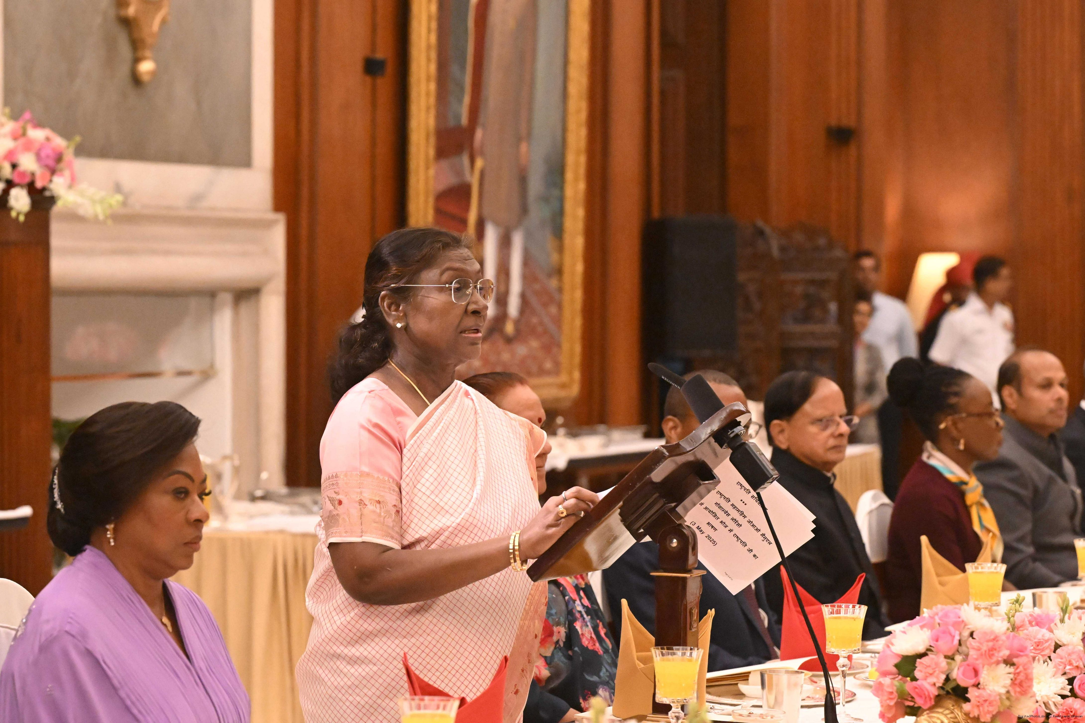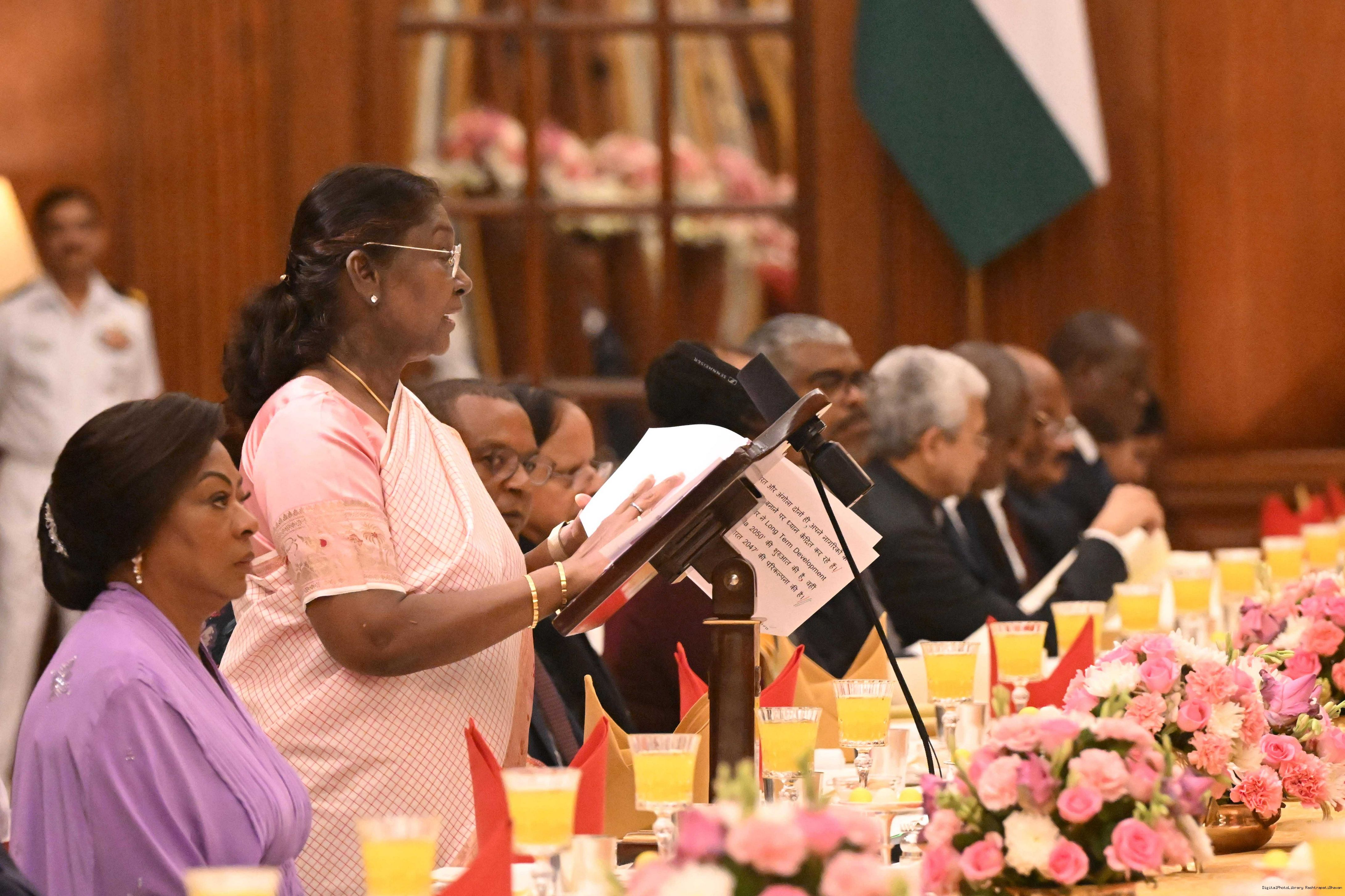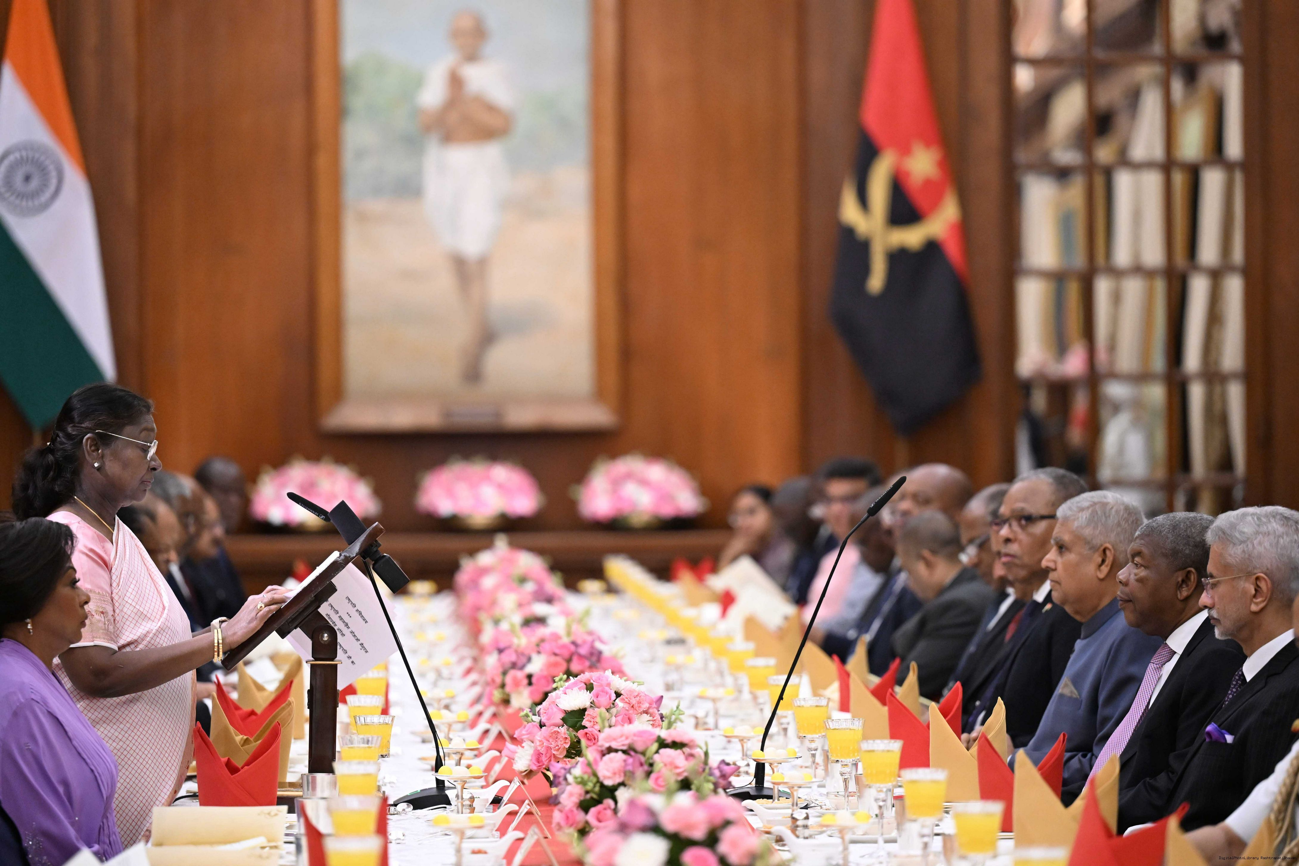 | Caption: | The President of India, Smt Droupadi Murmu hosted a banquet in the honour of H.E. Mr Joao Manuel Goncalves Lourenco, President of the Republic of Angola at Rashtrapati Bhavan on May 3, 2025. |
