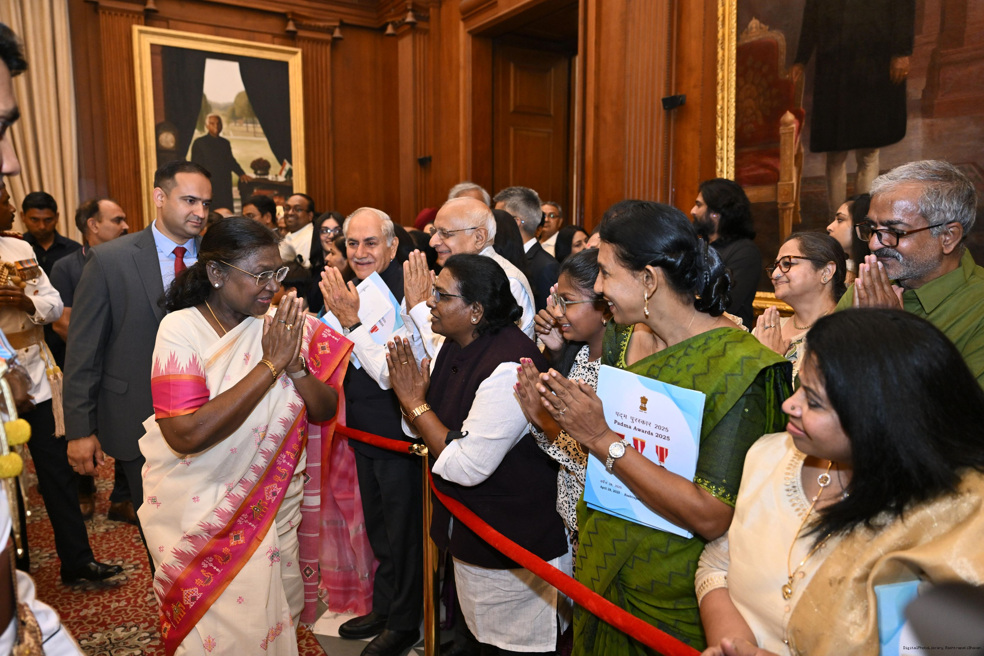 | Caption: | The President of India, Smt Droupadi Murmu presented Padma Vibhushan, Padma Bhushan and Padma Shri Awards for the year 2025 at the Civil Investiture Ceremony-I held at Rashtrapati Bhavan on April 28, 2025 |