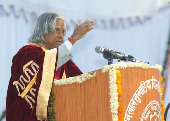 | Caption: | The President of India, Dr A P J Abdul Kalam addressing at the XVIth Convocation of the Mohanlal Sukhadia University at Udaipur in Rajasthan on Nov 23, 2004 |