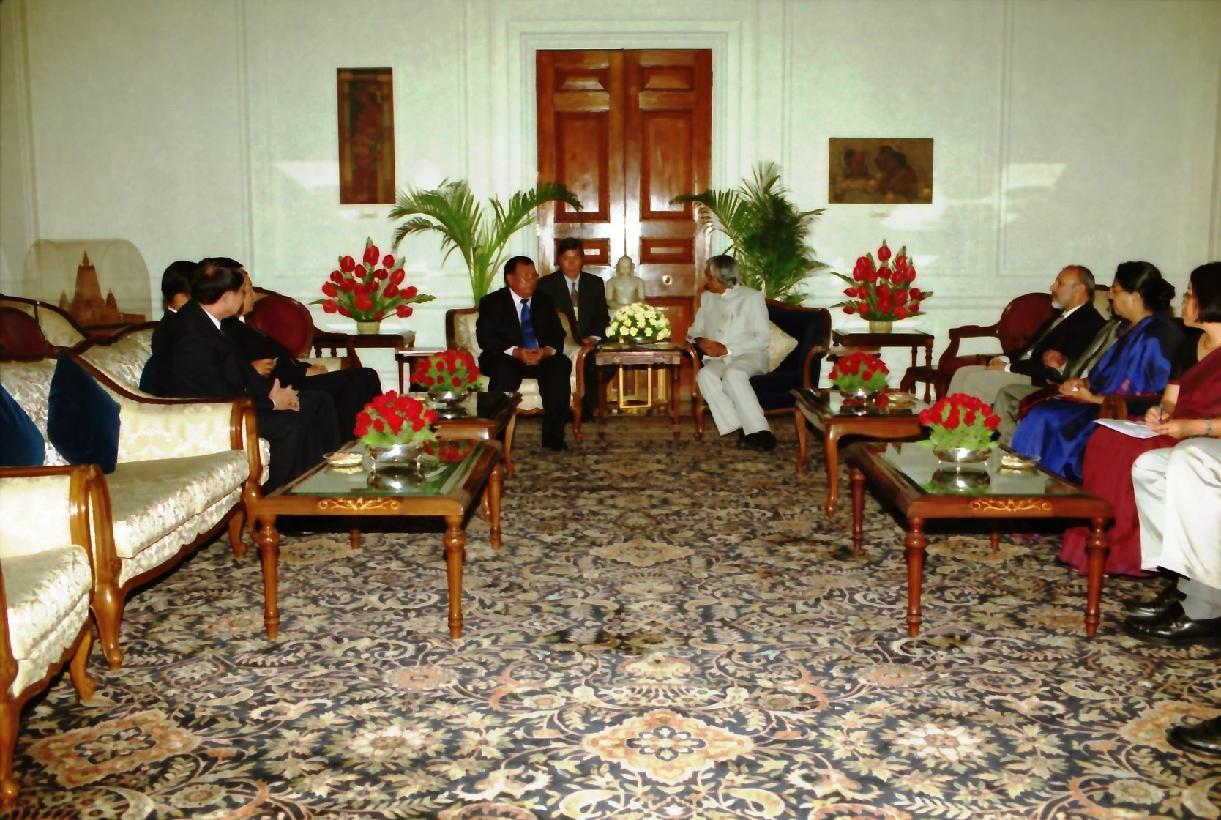 | Caption: | The Prime Minister of the Lao People s Democratic Republic, His Excellency Mr Bounnhang Vorachit calling on the President of India, Dr A P J Abdul Kalam at the Morning Room of Rashtrapati Bhavan in New Delhi on June 16, 2003 |