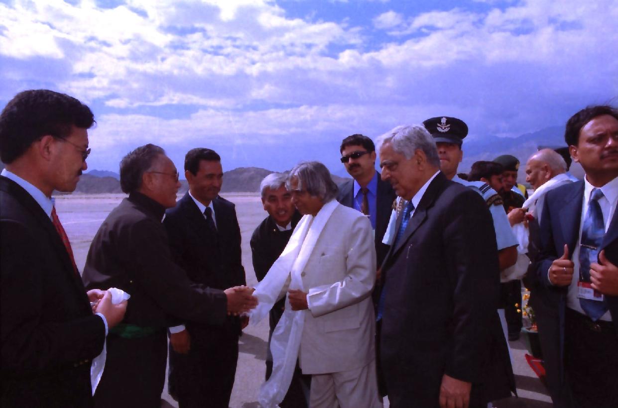The President of India, Dr A P J Abdul Kalam arriving at Leh in Jammu and Kashmir on June 27, 2003