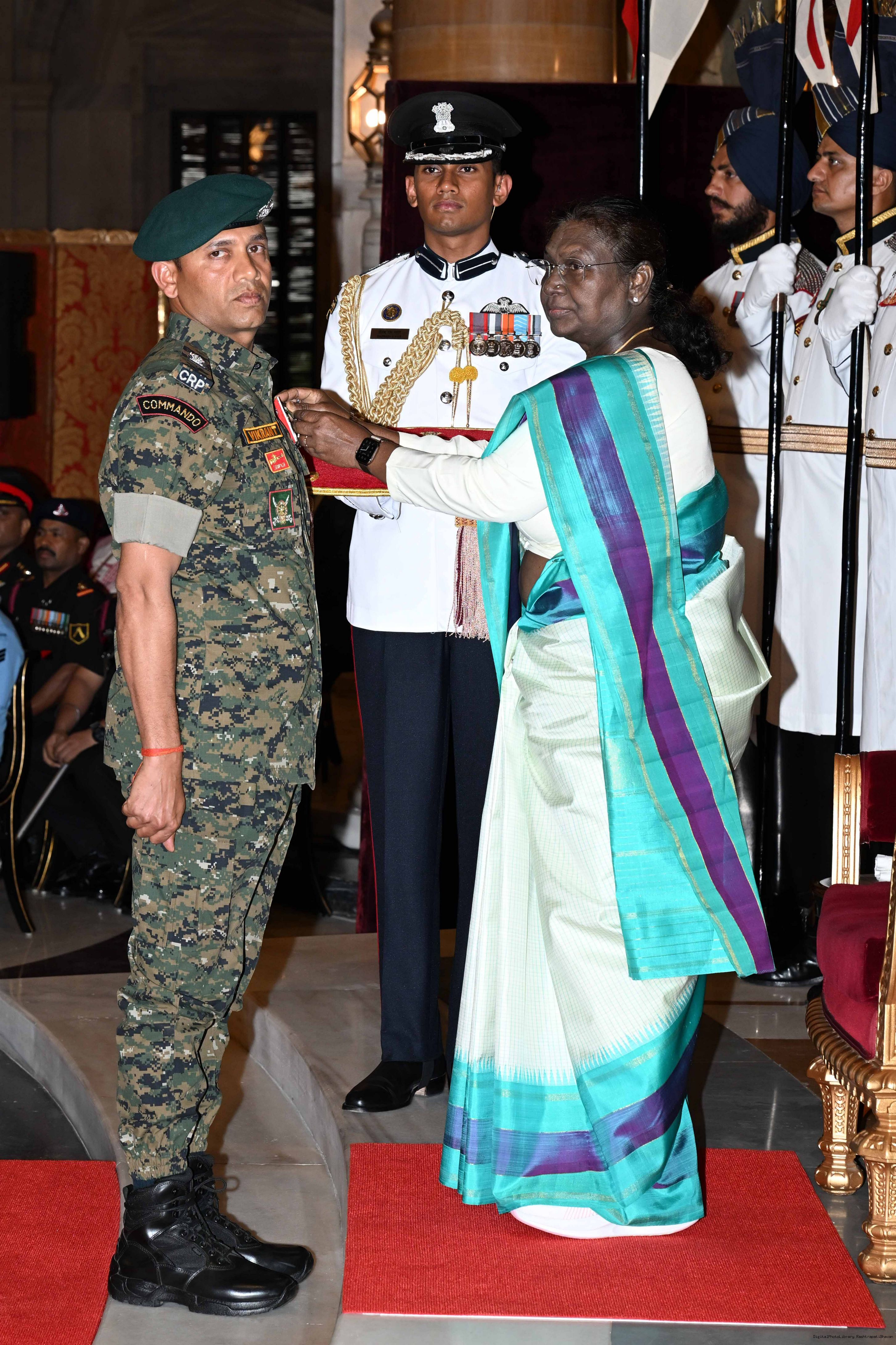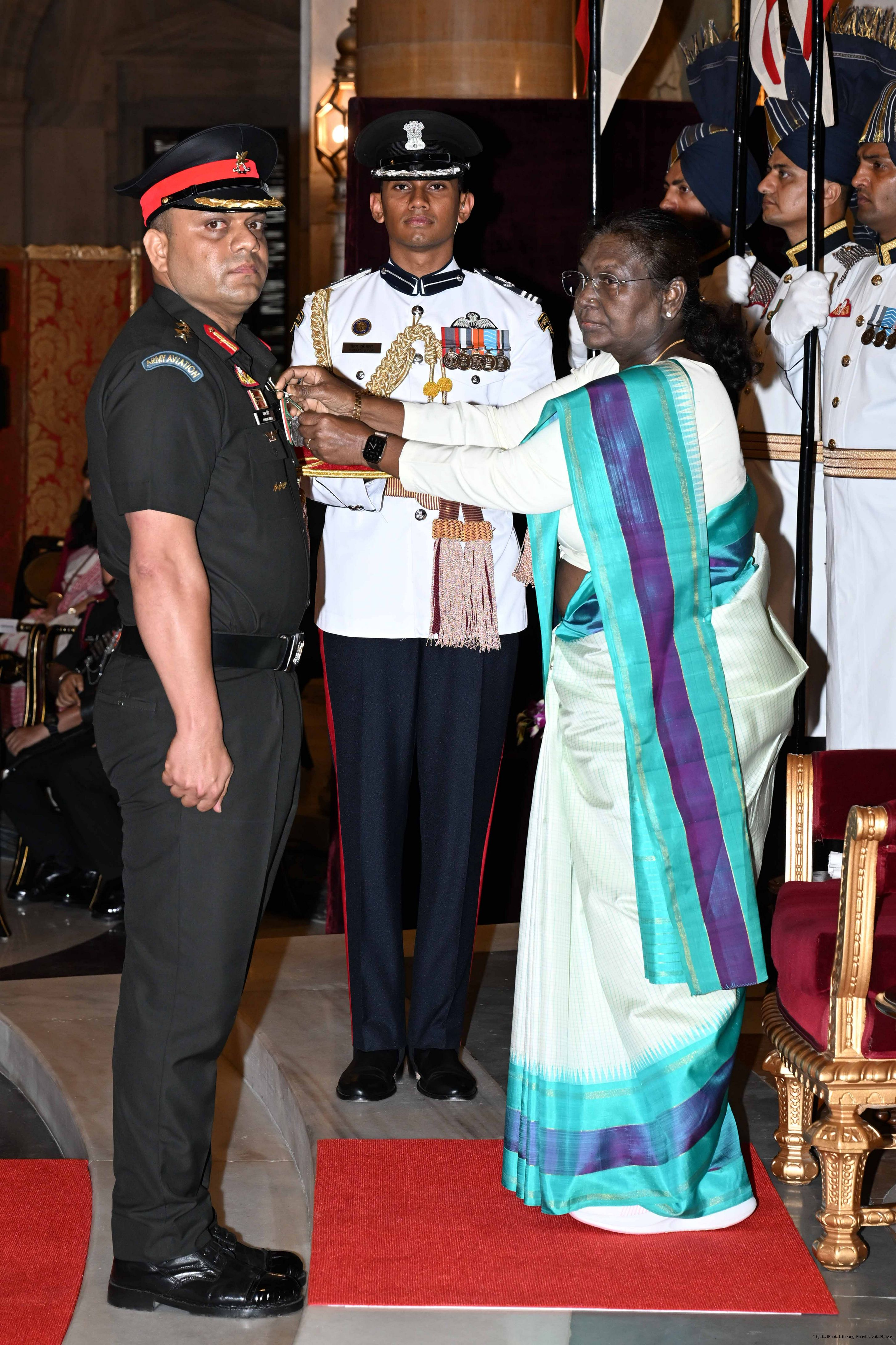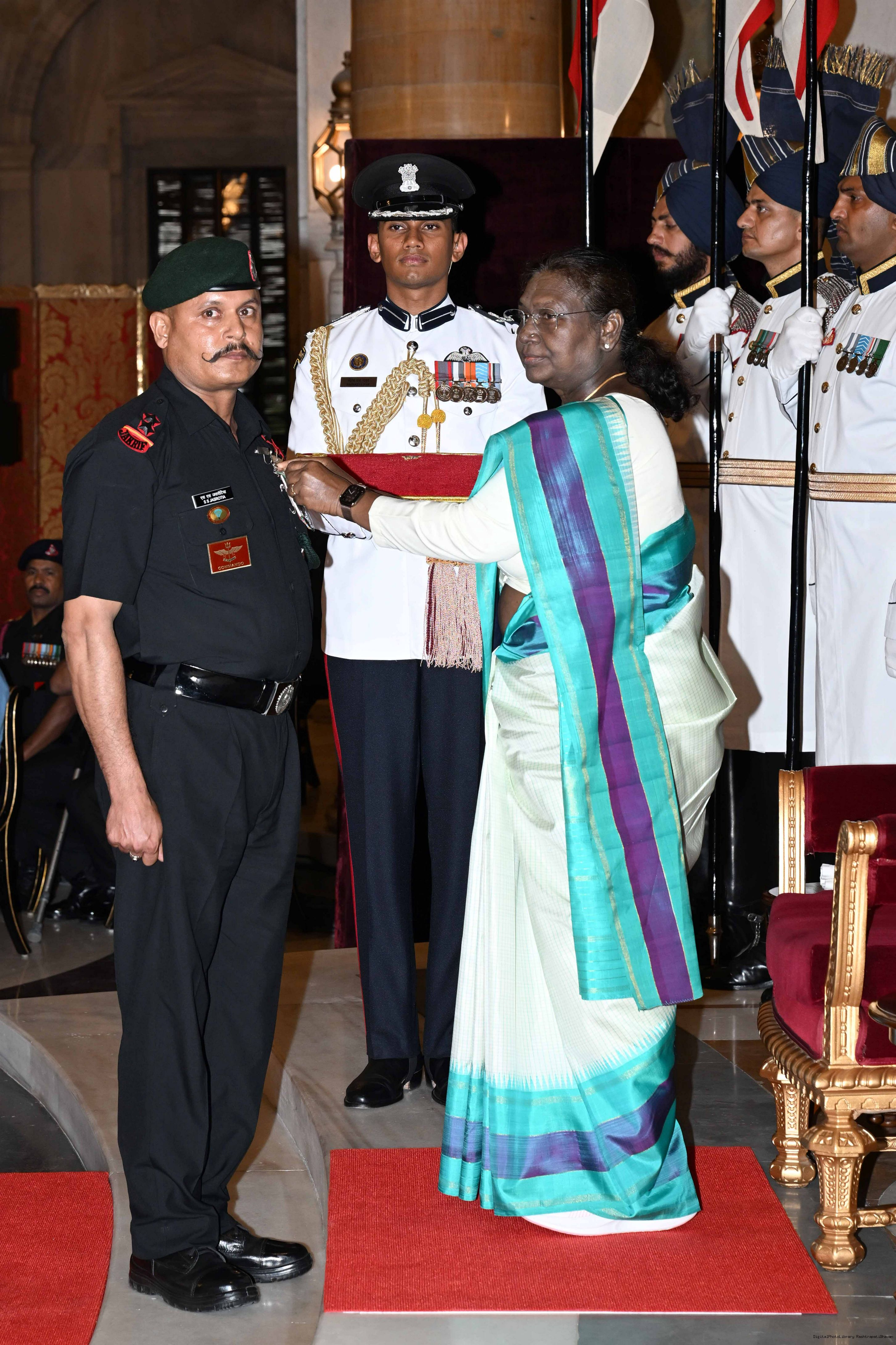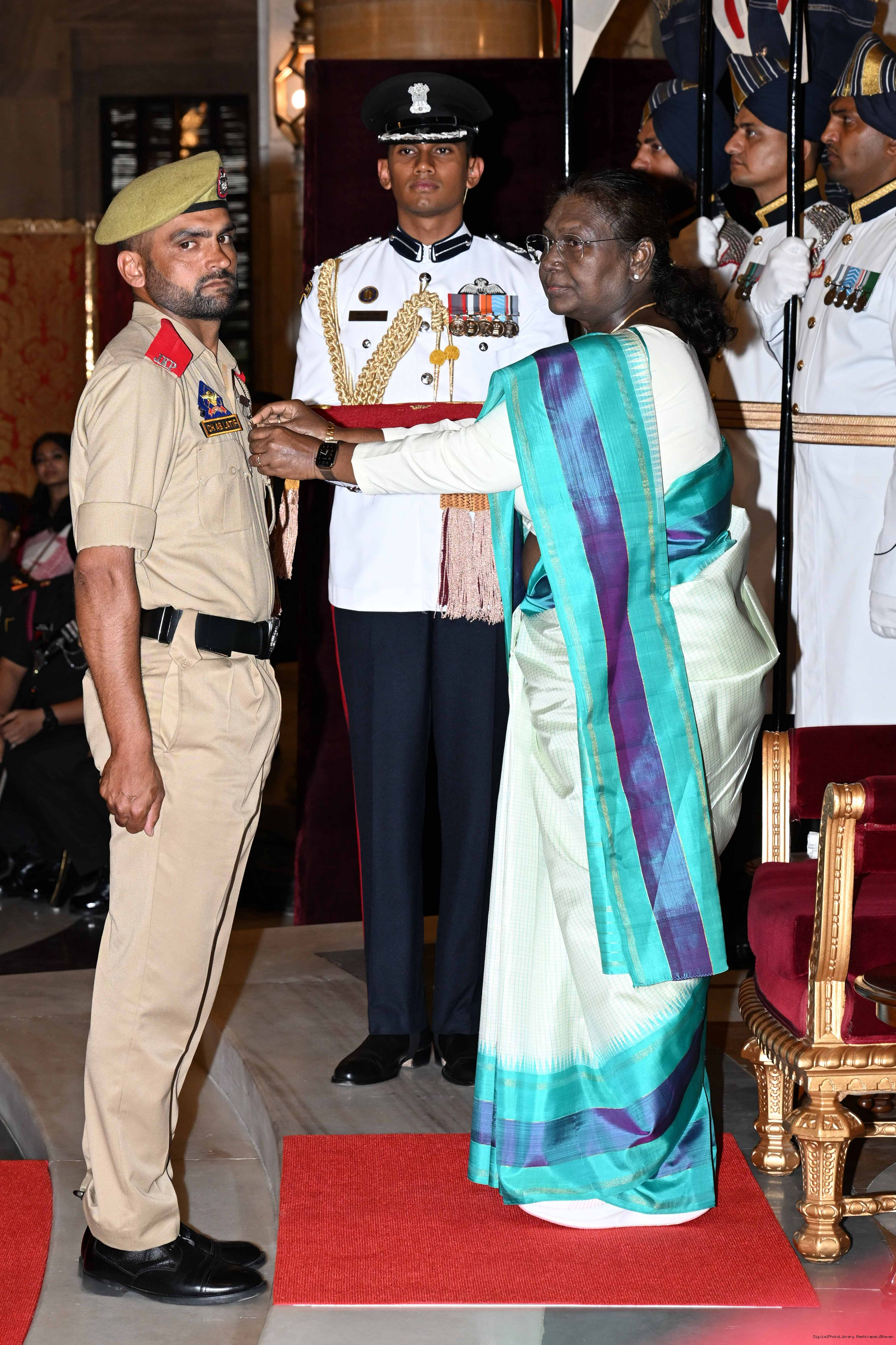 | Caption: | The President of India, Smt Droupadi Murmu presented Gallantry Awards at the Defence Investiture Ceremony-2025 (Phase-I) held at Rashtrapati Bhavan, New Delhi on May 22, 2025. |