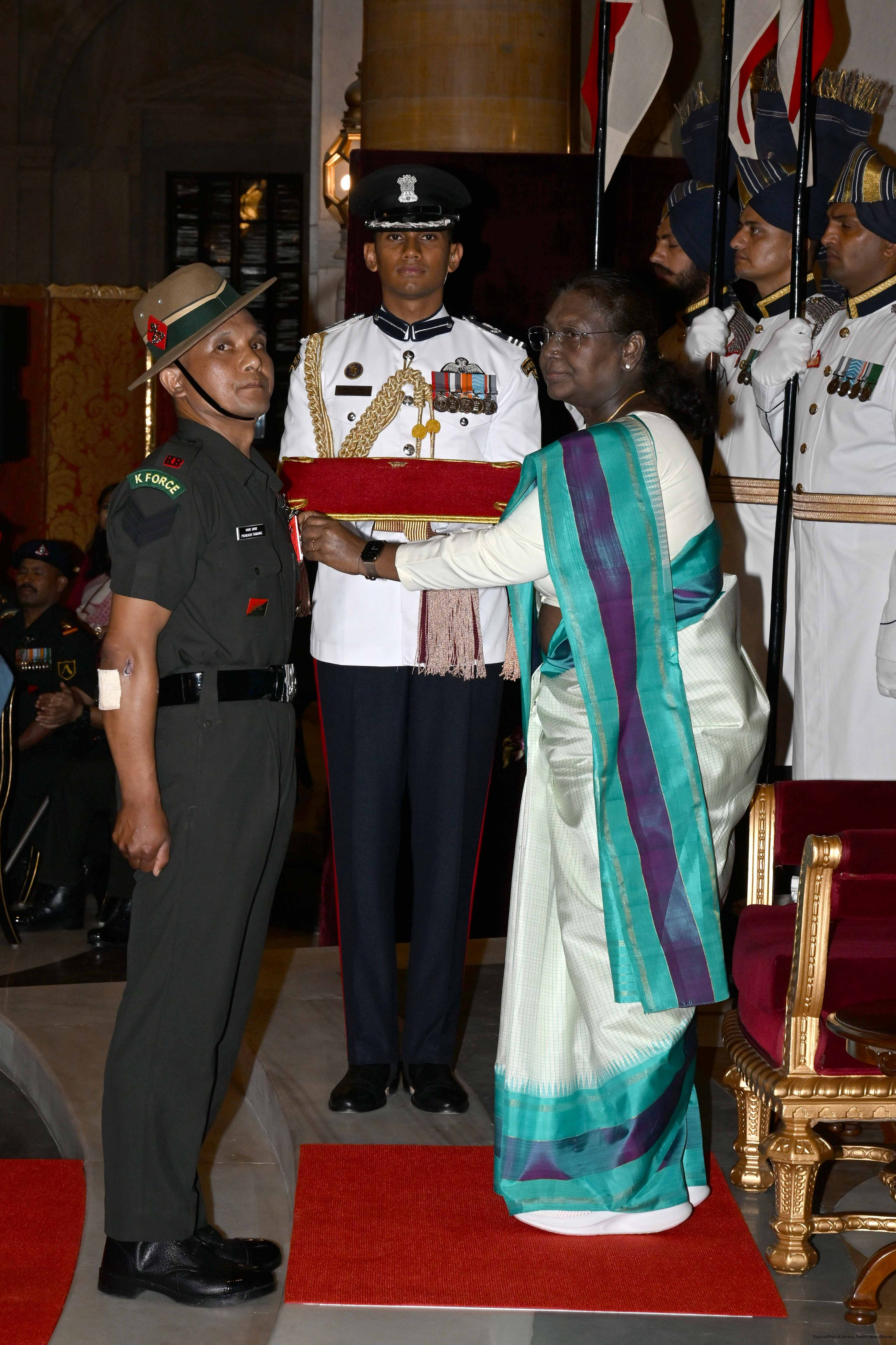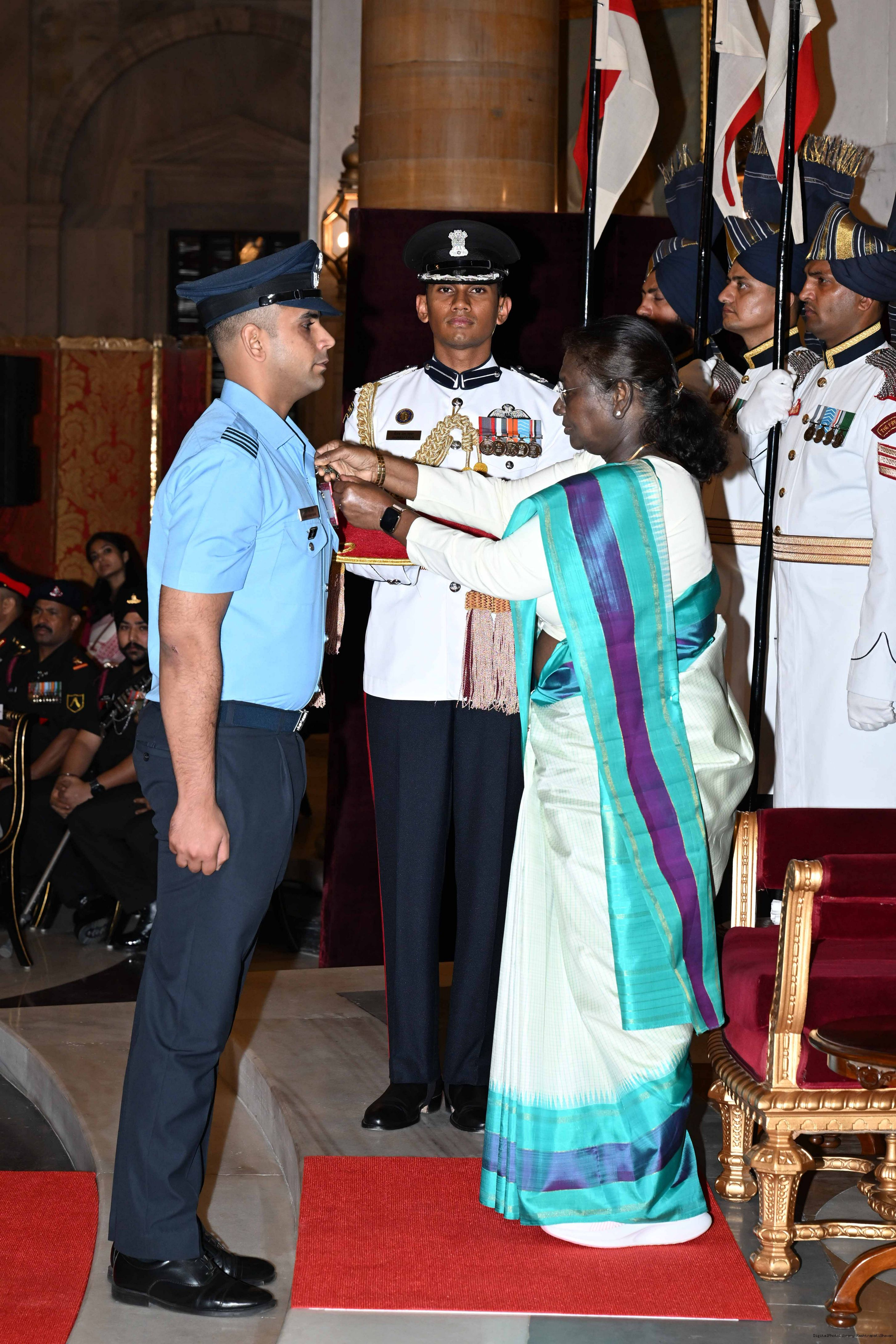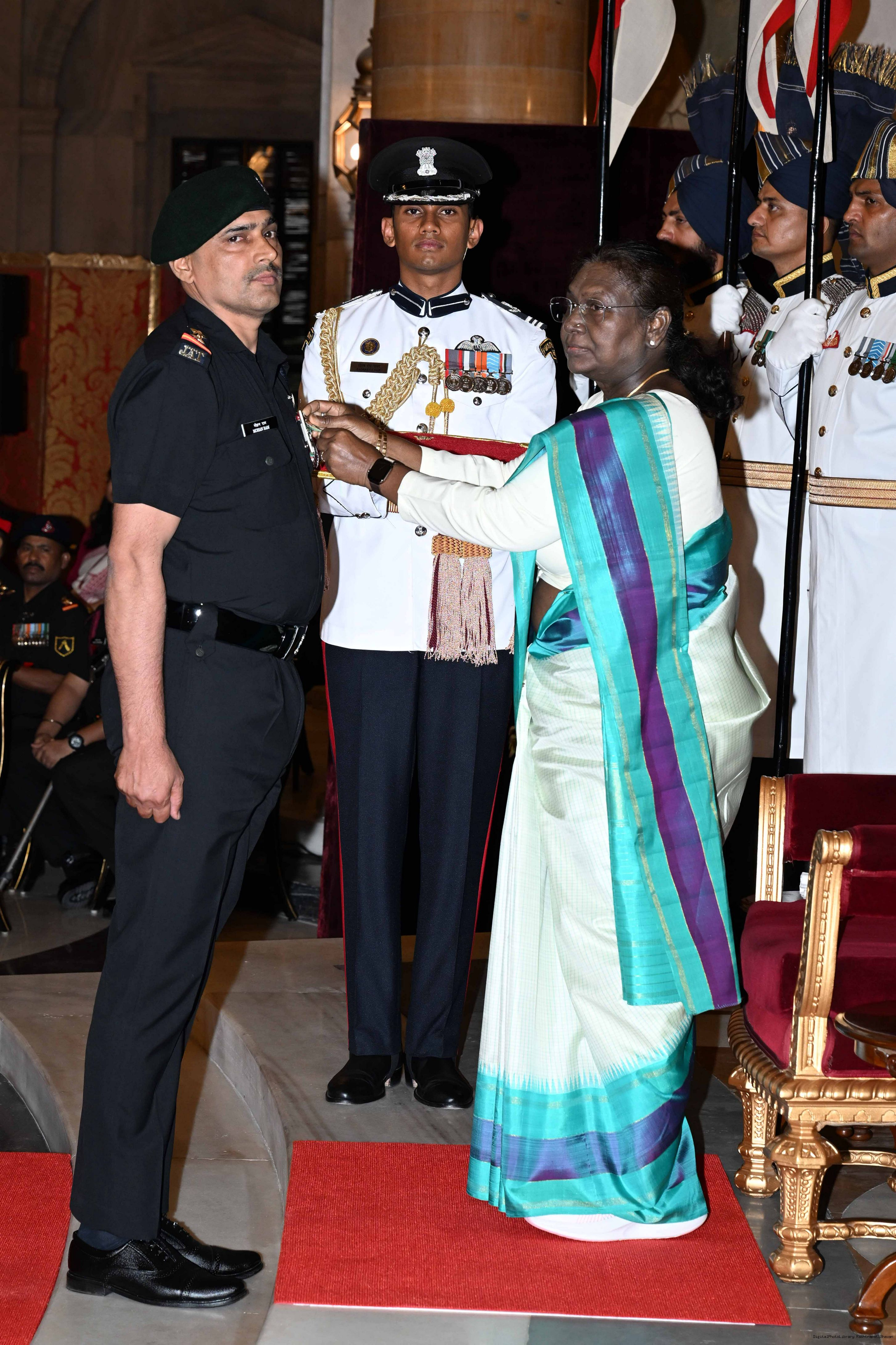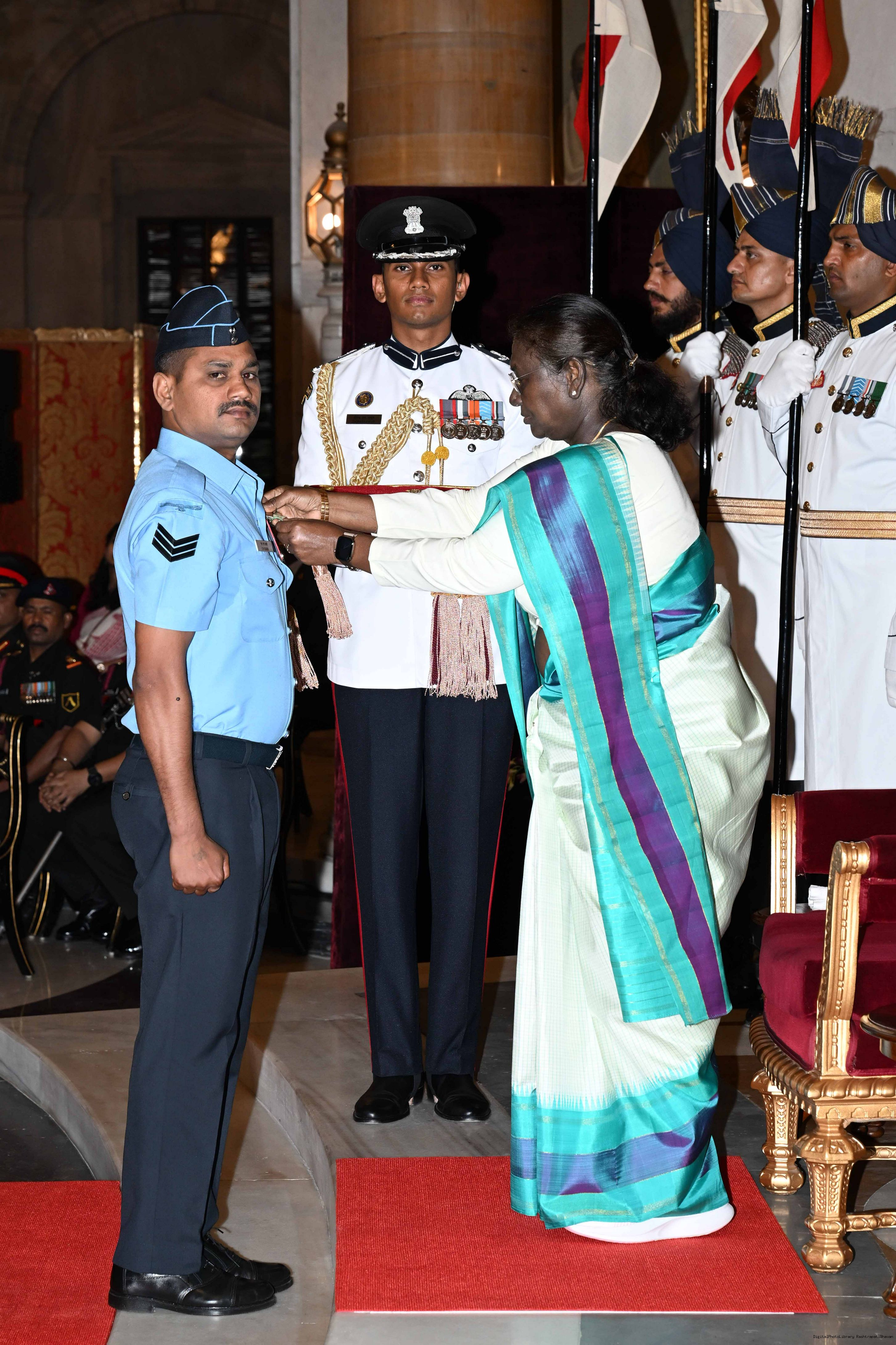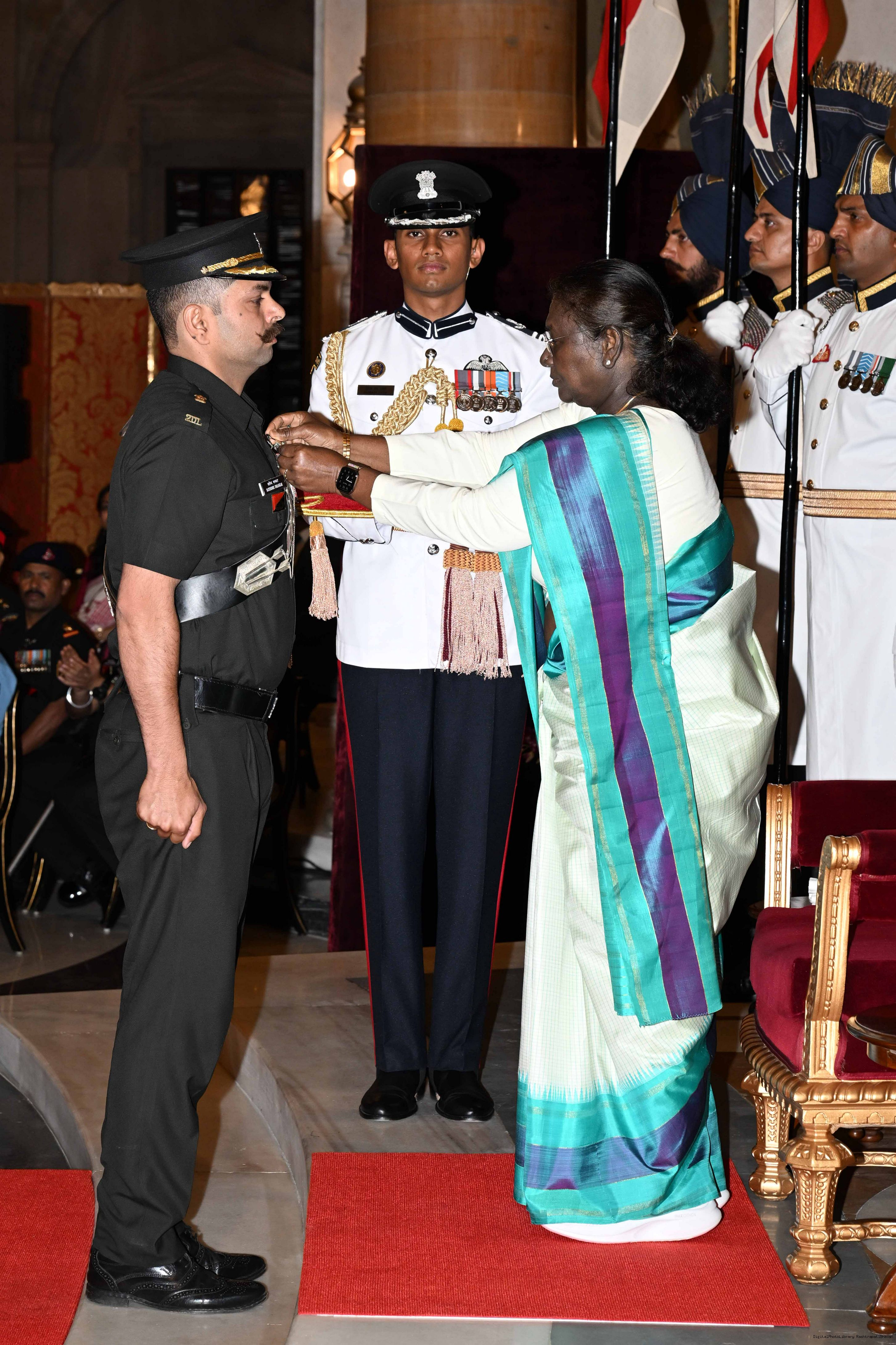| Caption: | The President of India, Smt Droupadi Murmu presented Gallantry Awards at the Defence Investiture Ceremony-2025 (Phase-I) held at Rashtrapati Bhavan, New Delhi on May 22, 2025. |