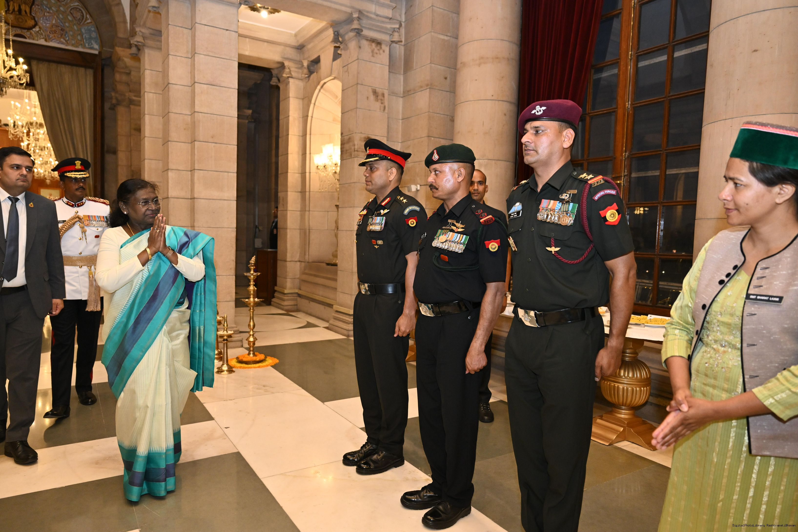| Caption: | The President of India, Smt Droupadi Murmu presented Gallantry Awards at the Defence Investiture Ceremony-2025 (Phase-I) held at Rashtrapati Bhavan, New Delhi on May 22, 2025. |