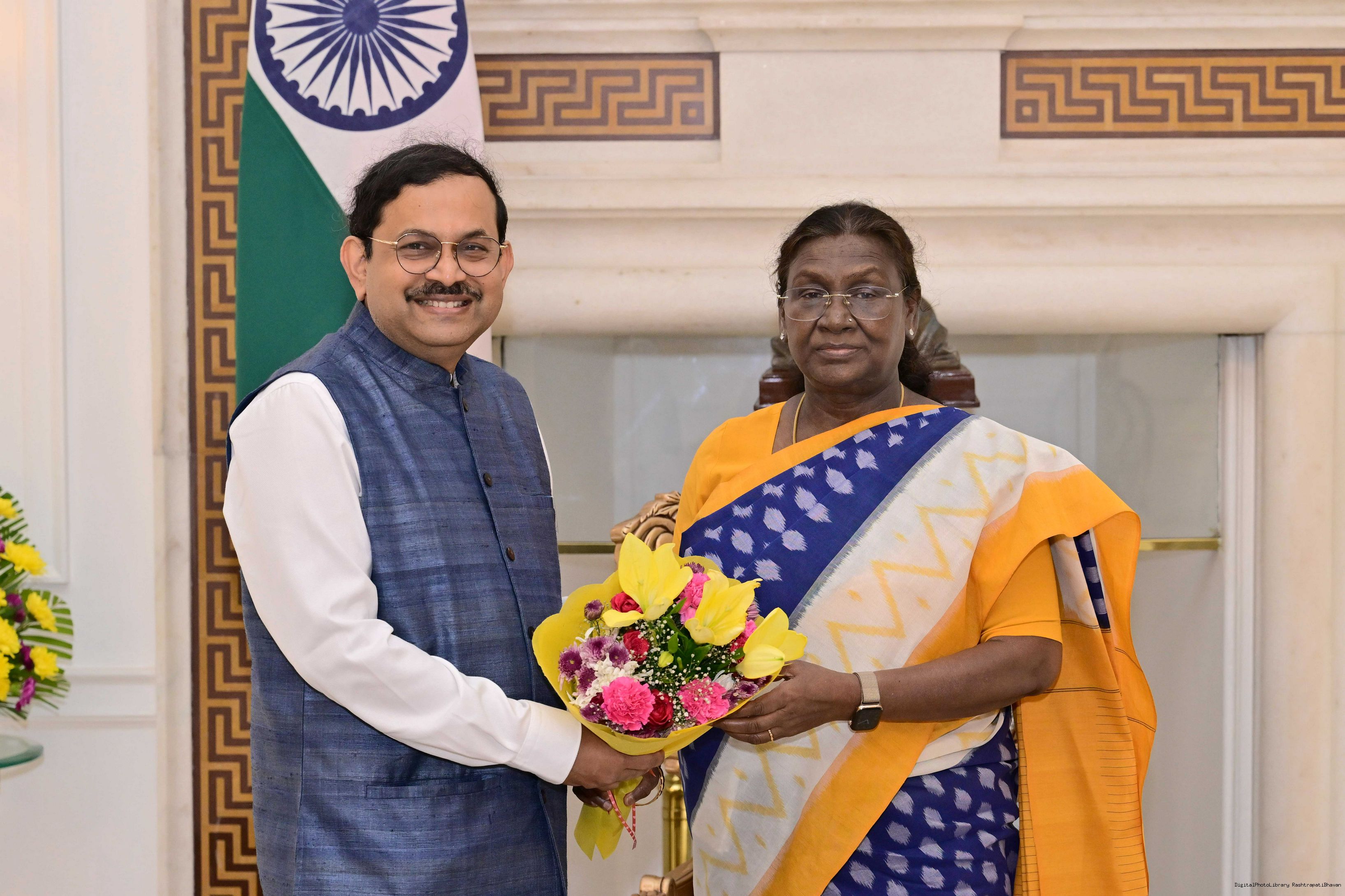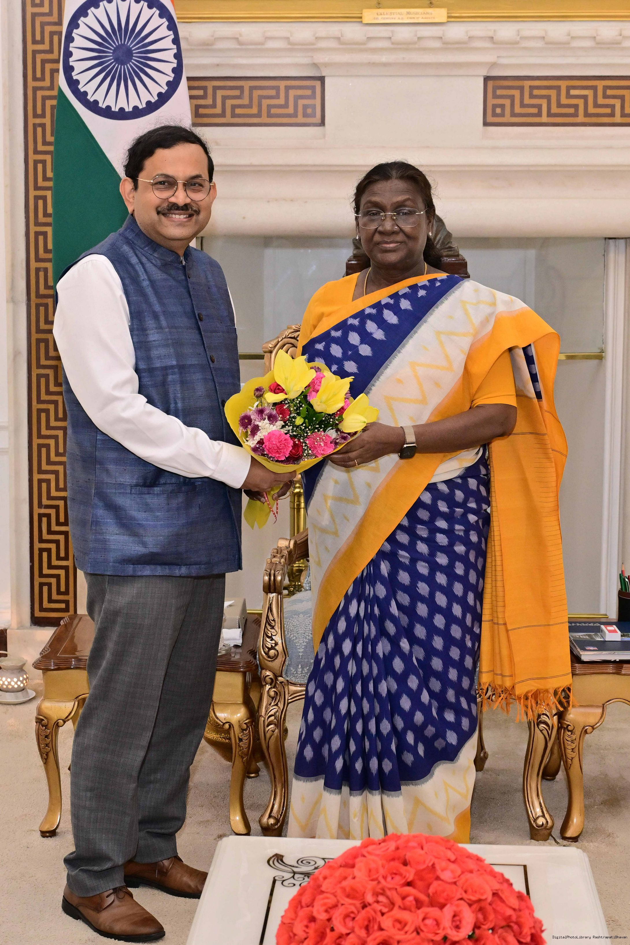| Caption: | Prof. Debarata Das, Director, International Institue of Information Technology, Bangalore (IIIT-B) meeting with the President of India, Smt. Droupadi Murmu at Rashtrapati Bhavan on May 26, 2025. |