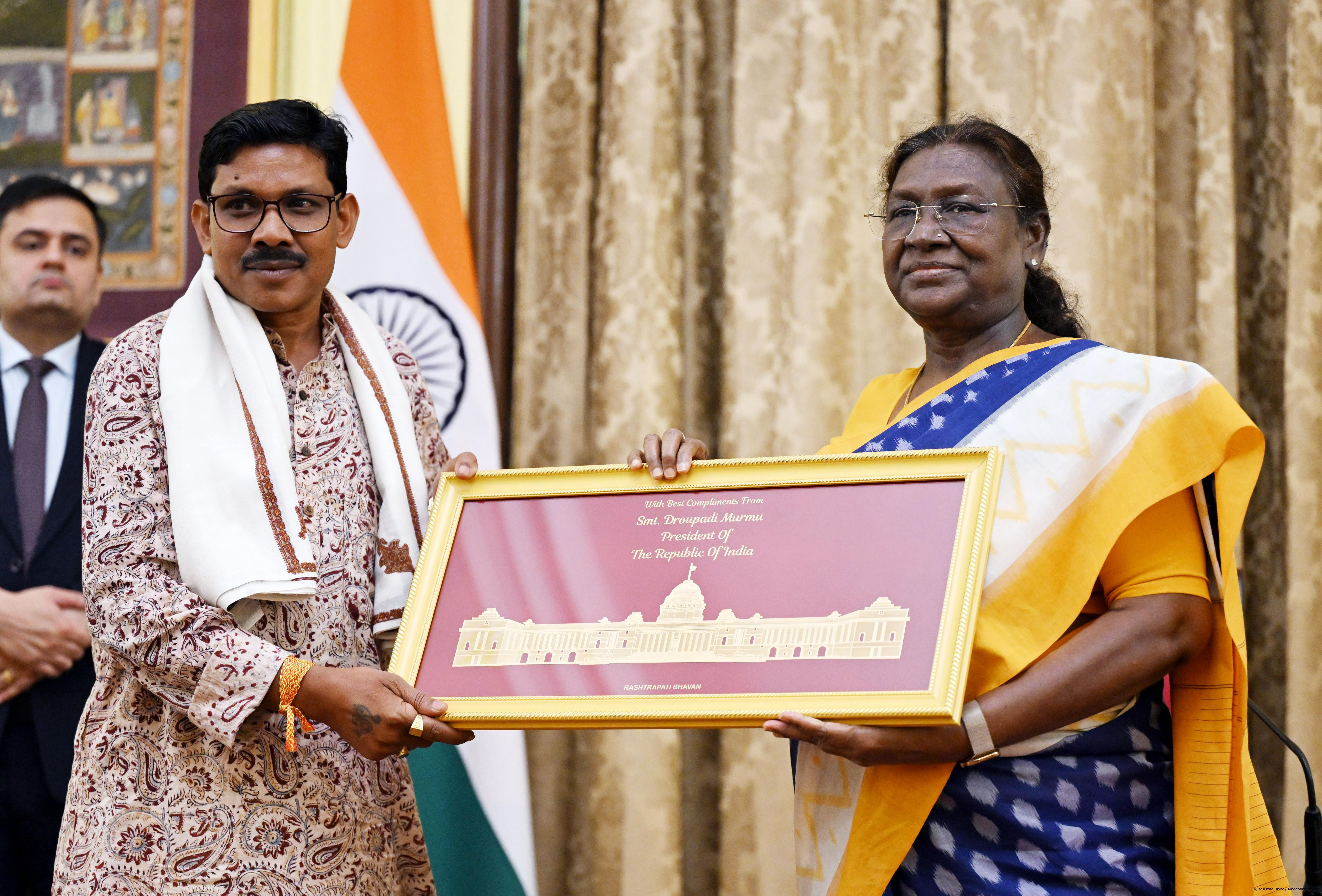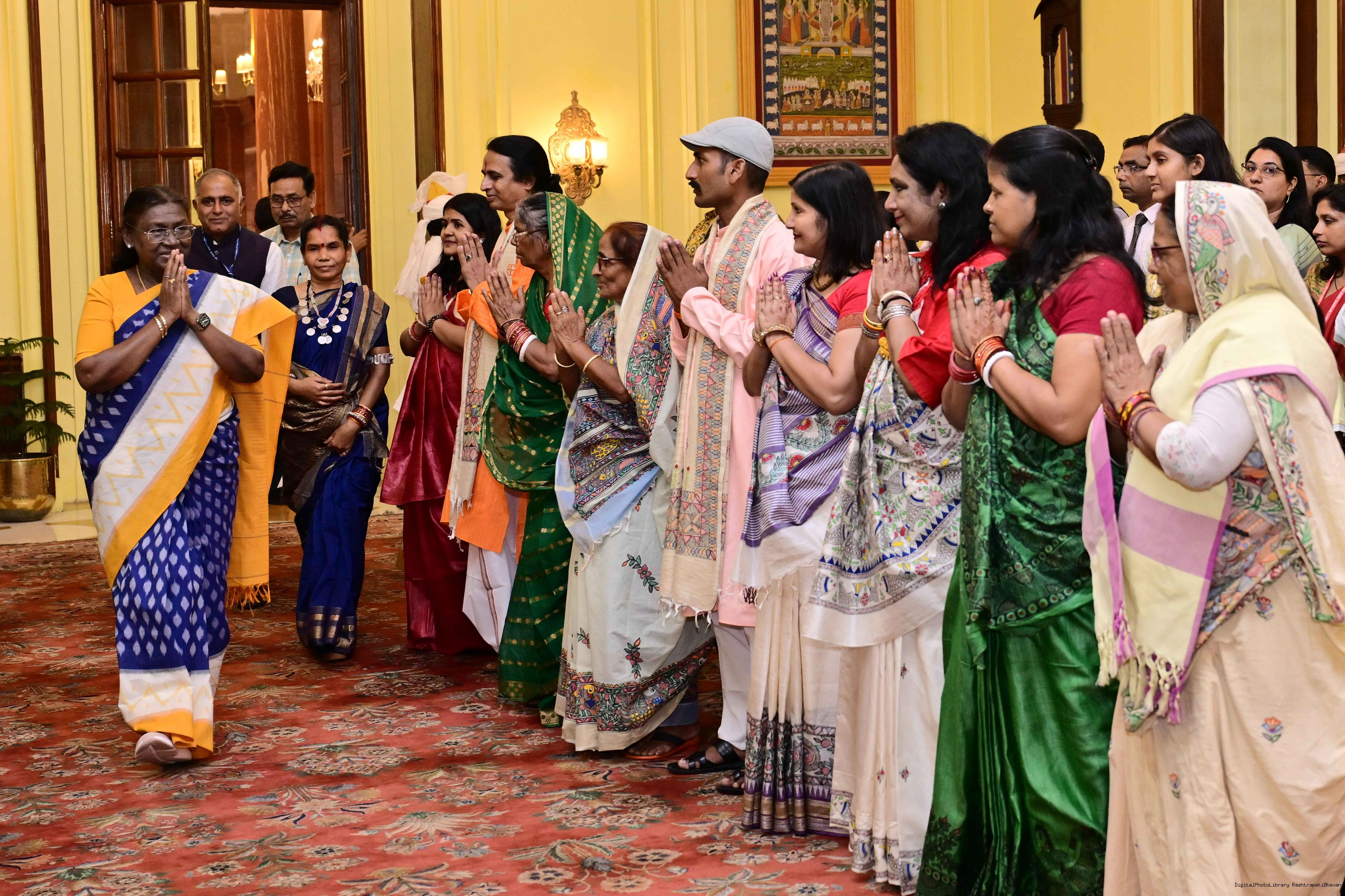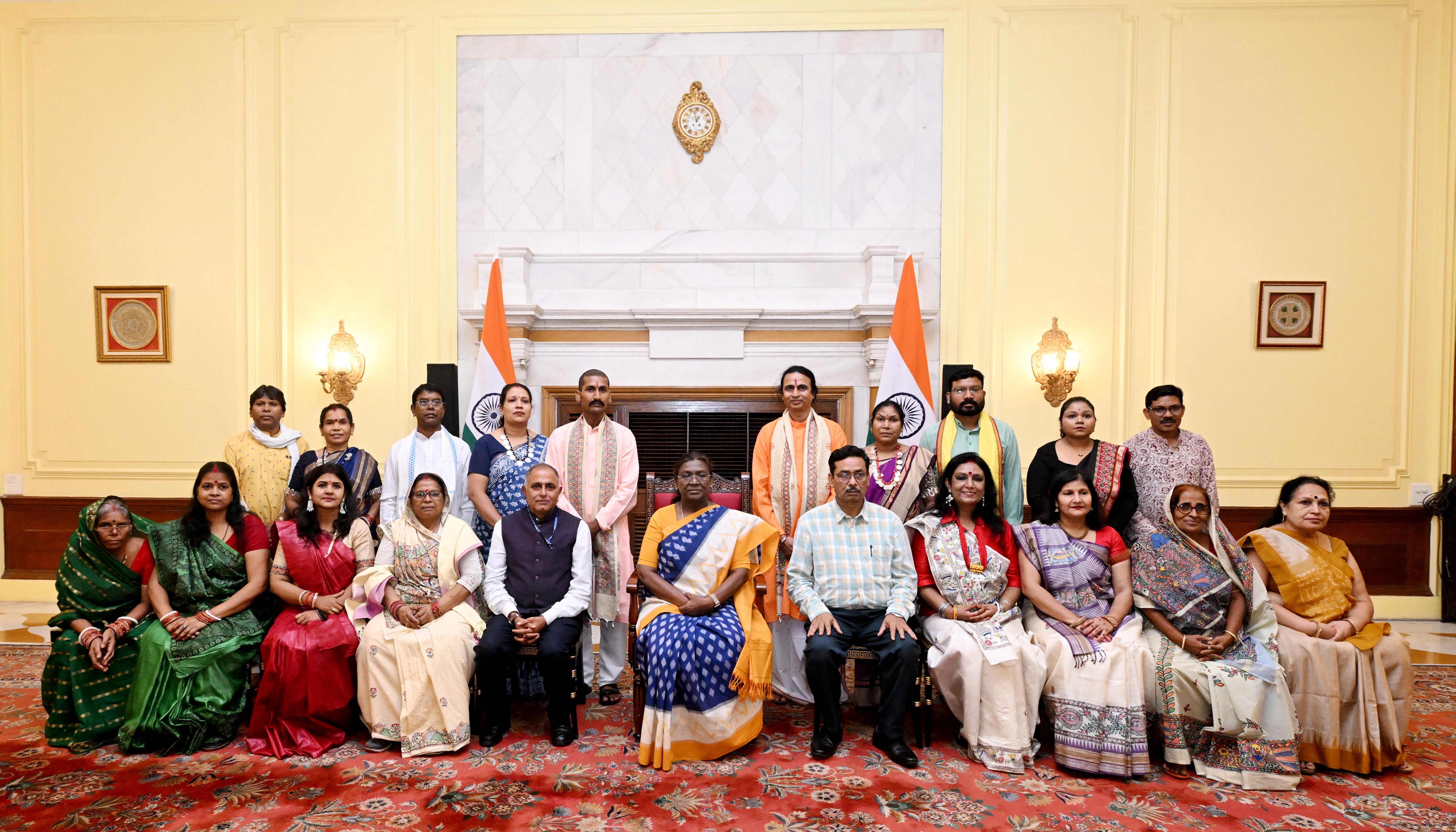 | Caption: | A group of artists of Gond Art and Madhubani Art called on the President of India, Smt. Droupadi Murmu at Rashtrapati Bhavan on May 26, 2025. |