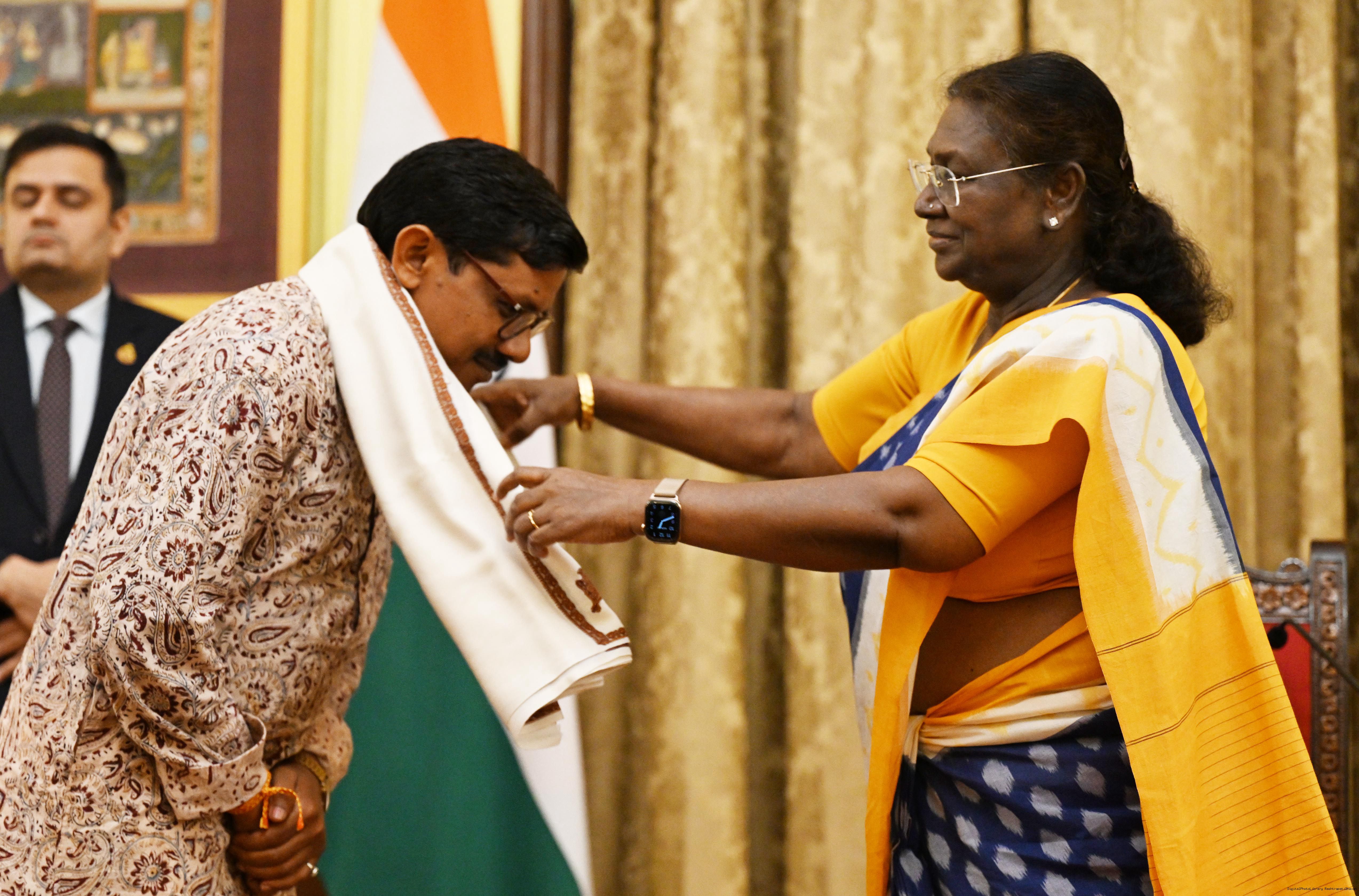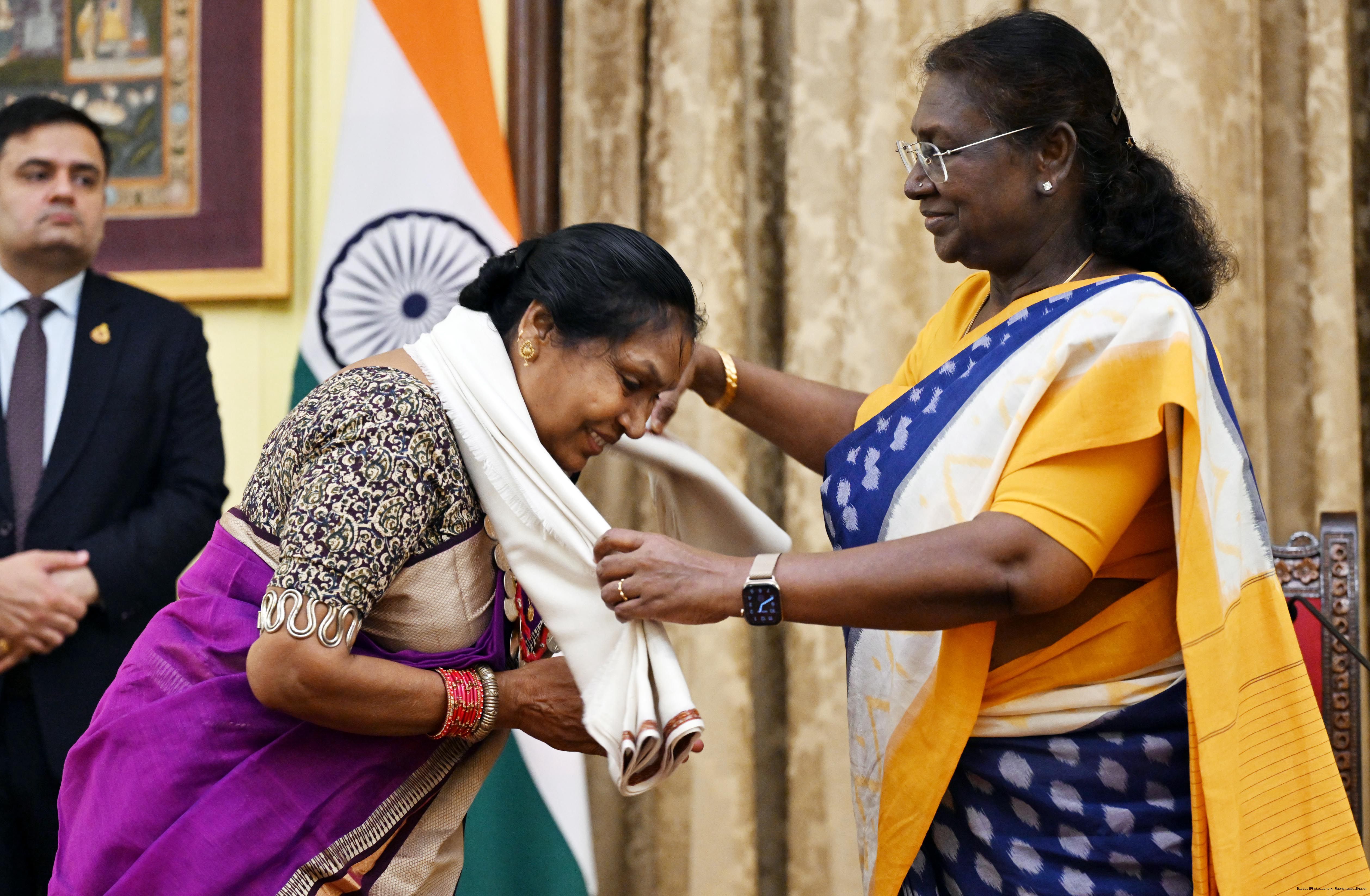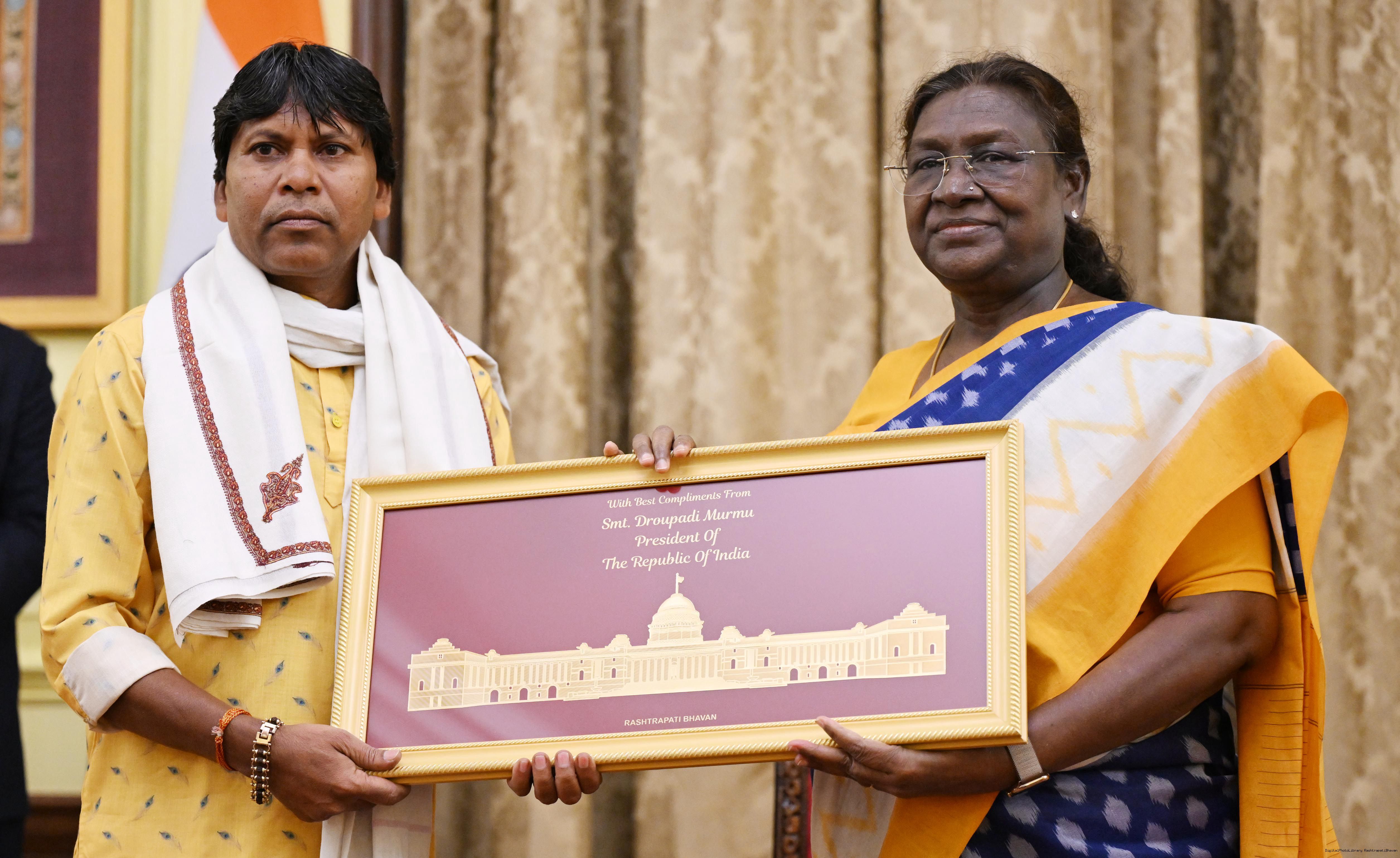 | Caption: | A group of artists of Gond Art and Madhubani Art called on the President of India, Smt. Droupadi Murmu at Rashtrapati Bhavan on May 26, 2025. |