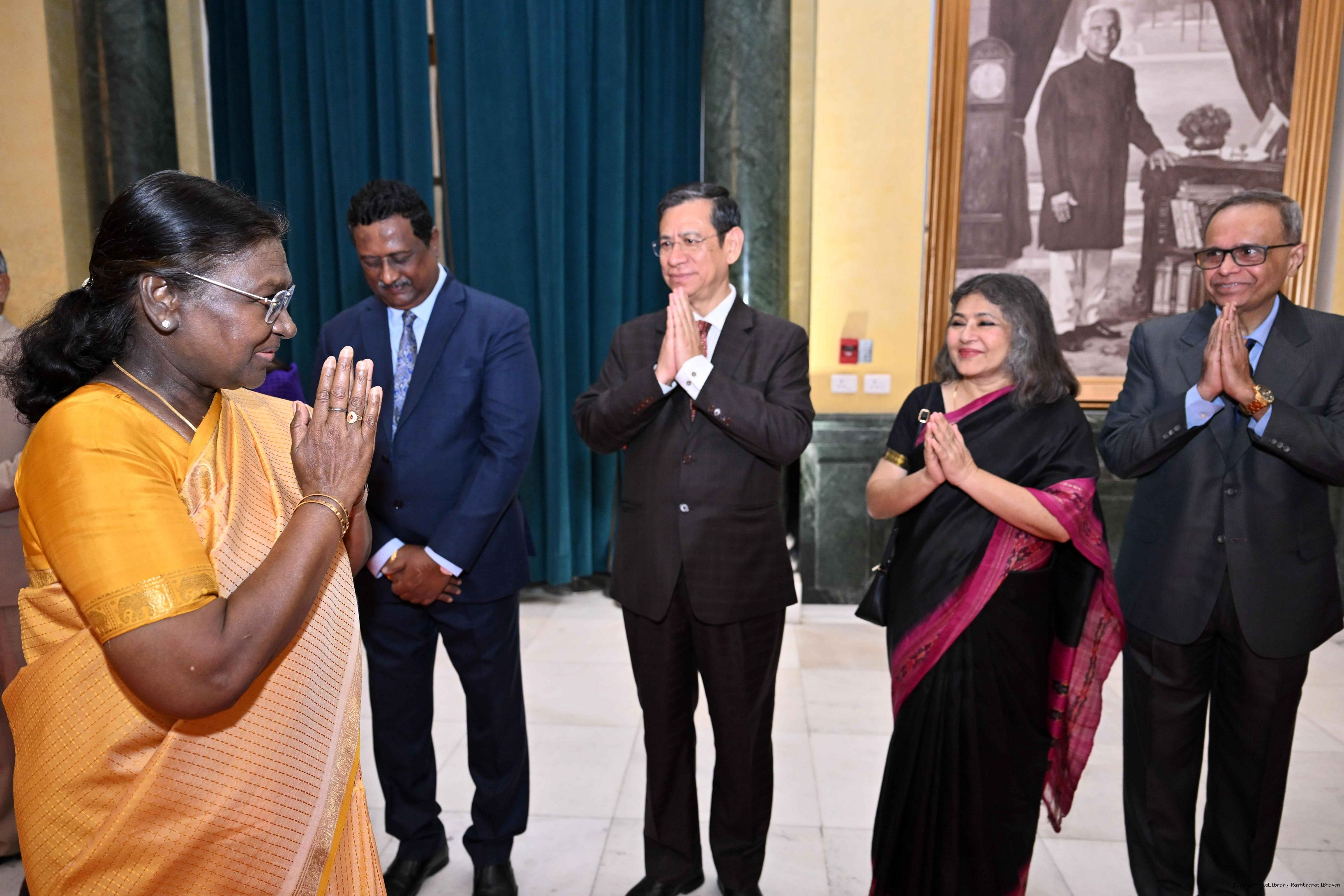 | Caption: | President Droupadi Murmu hosted a dinner at Rashtrapati Bhavan Cultural Centre to welcome the newly sworn-in Chief Justice of India, Shri Justice Bhushan Ramkrishna Gavai on May 26, 2025. |