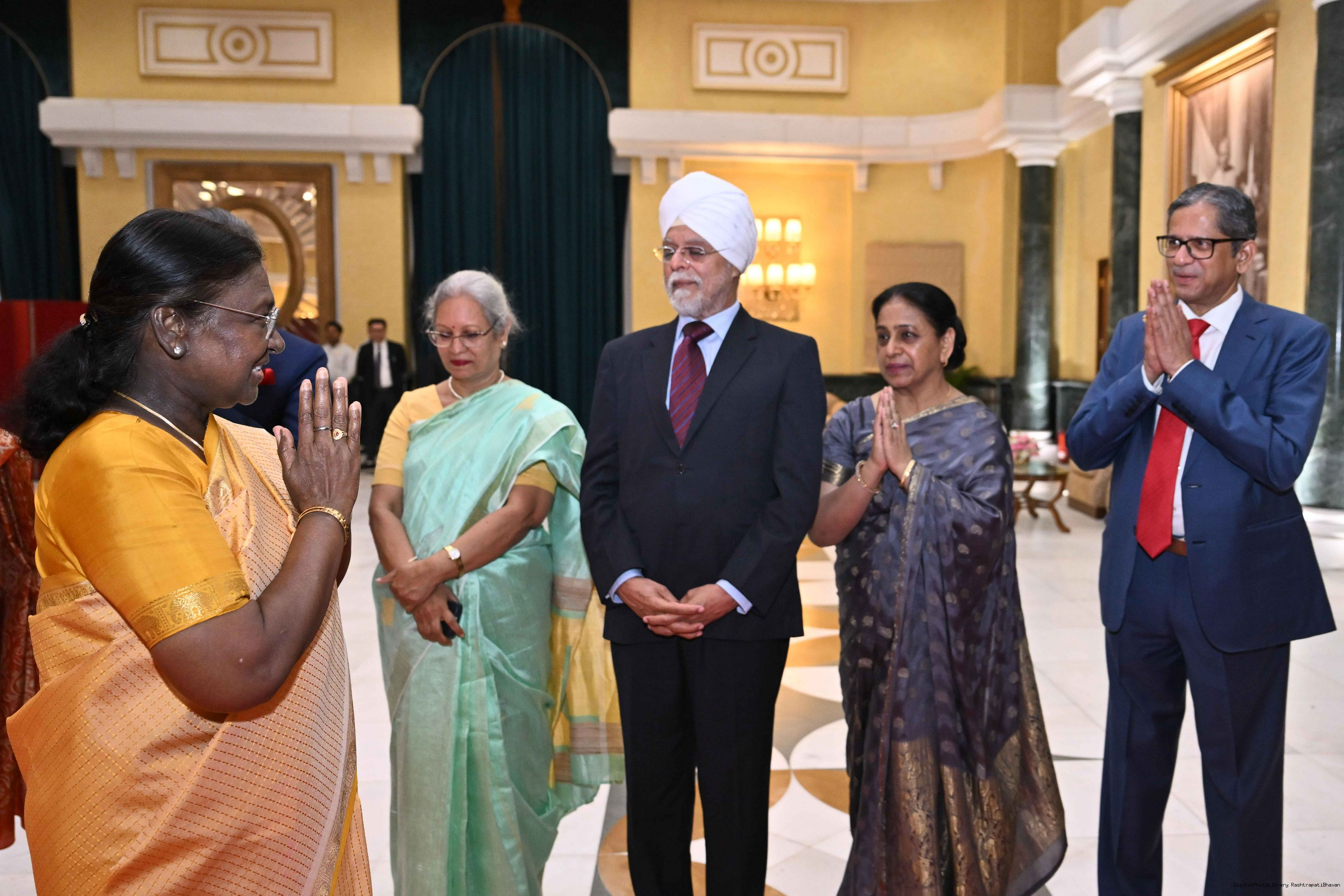 | Caption: | President Droupadi Murmu hosted a dinner at Rashtrapati Bhavan Cultural Centre to welcome the newly sworn-in Chief Justice of India, Shri Justice Bhushan Ramkrishna Gavai on May 26, 2025. |