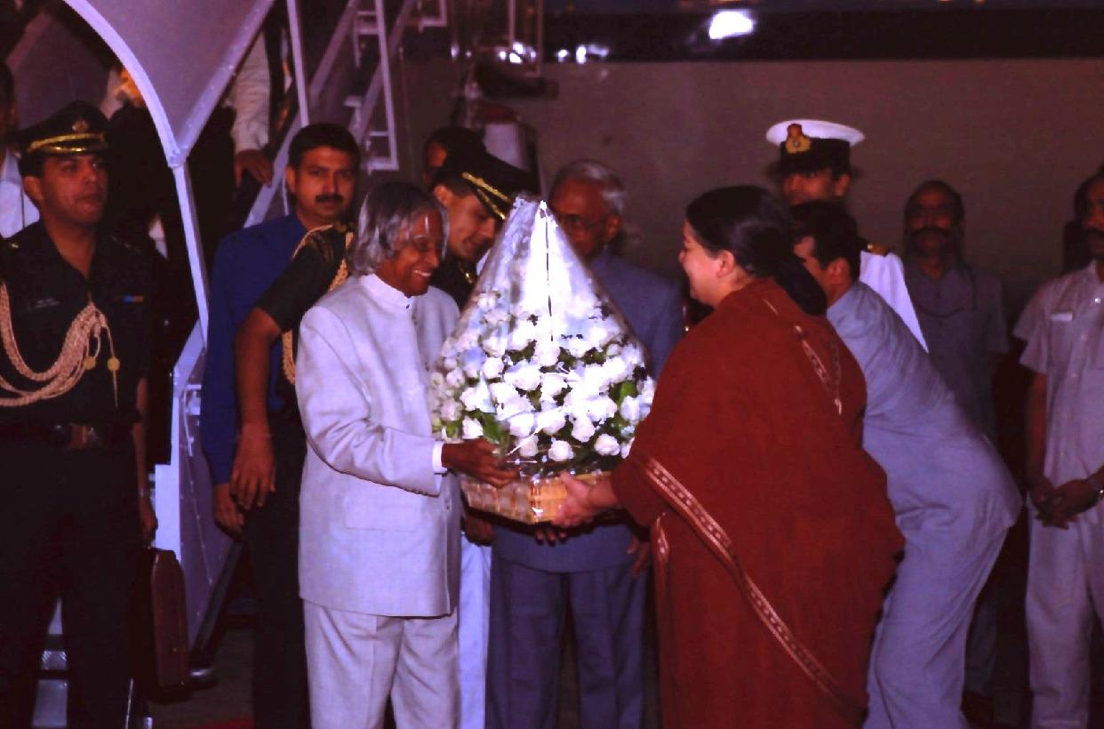 | Caption: | The President of India, Dr A P J Abdul Kalam arriving at Chennai Airport at Tamil Nadu on June 19, 2003 |