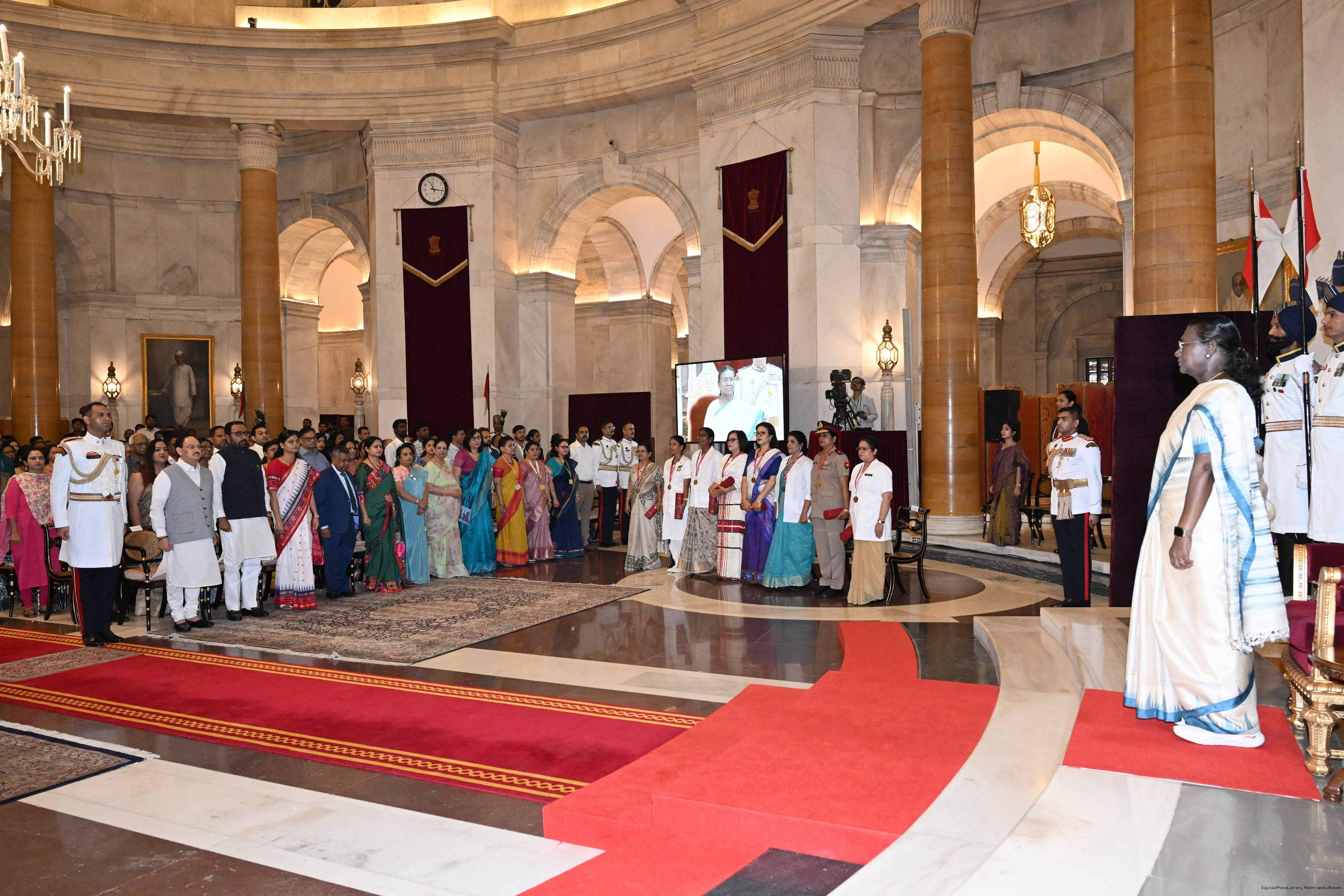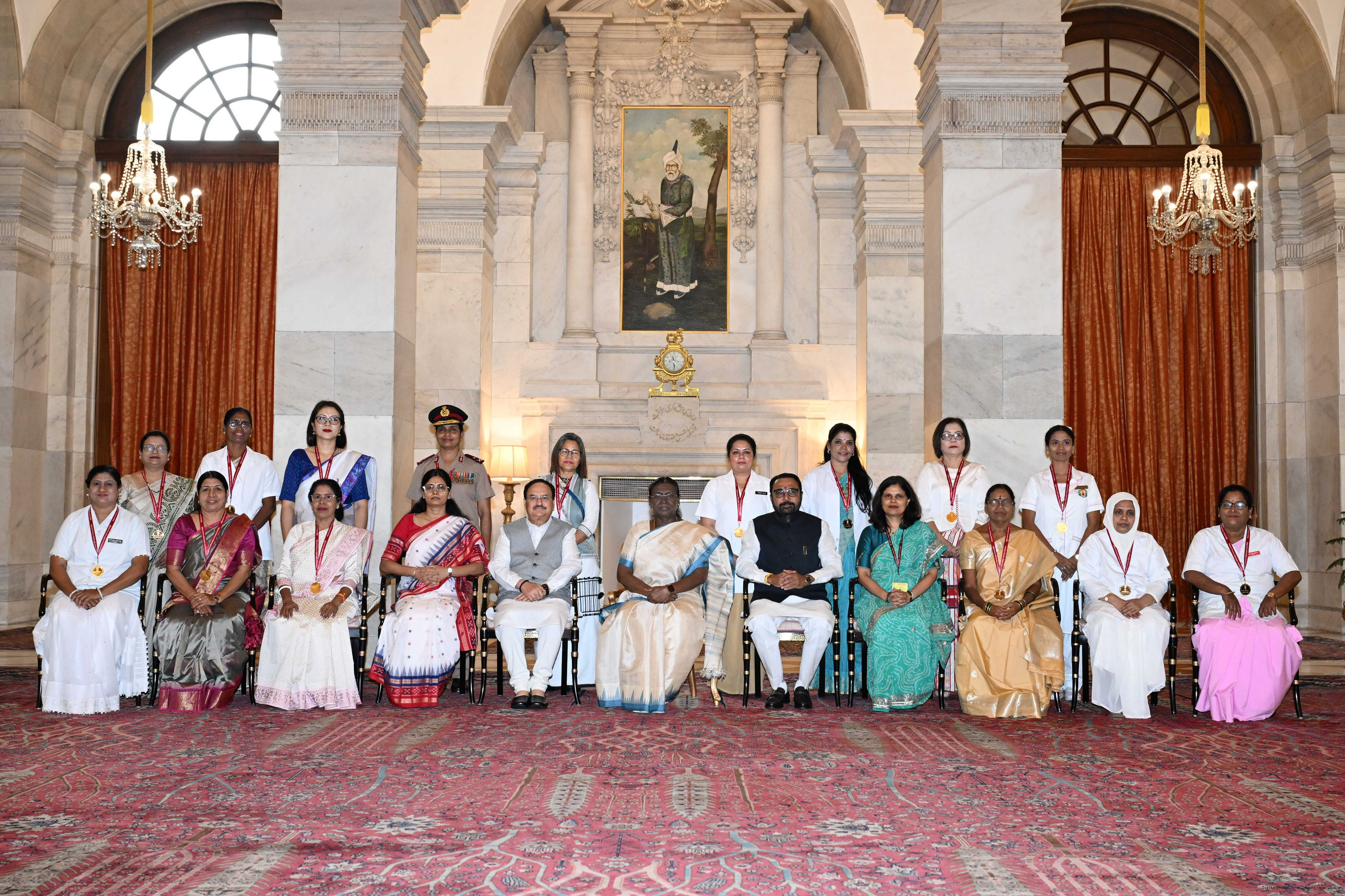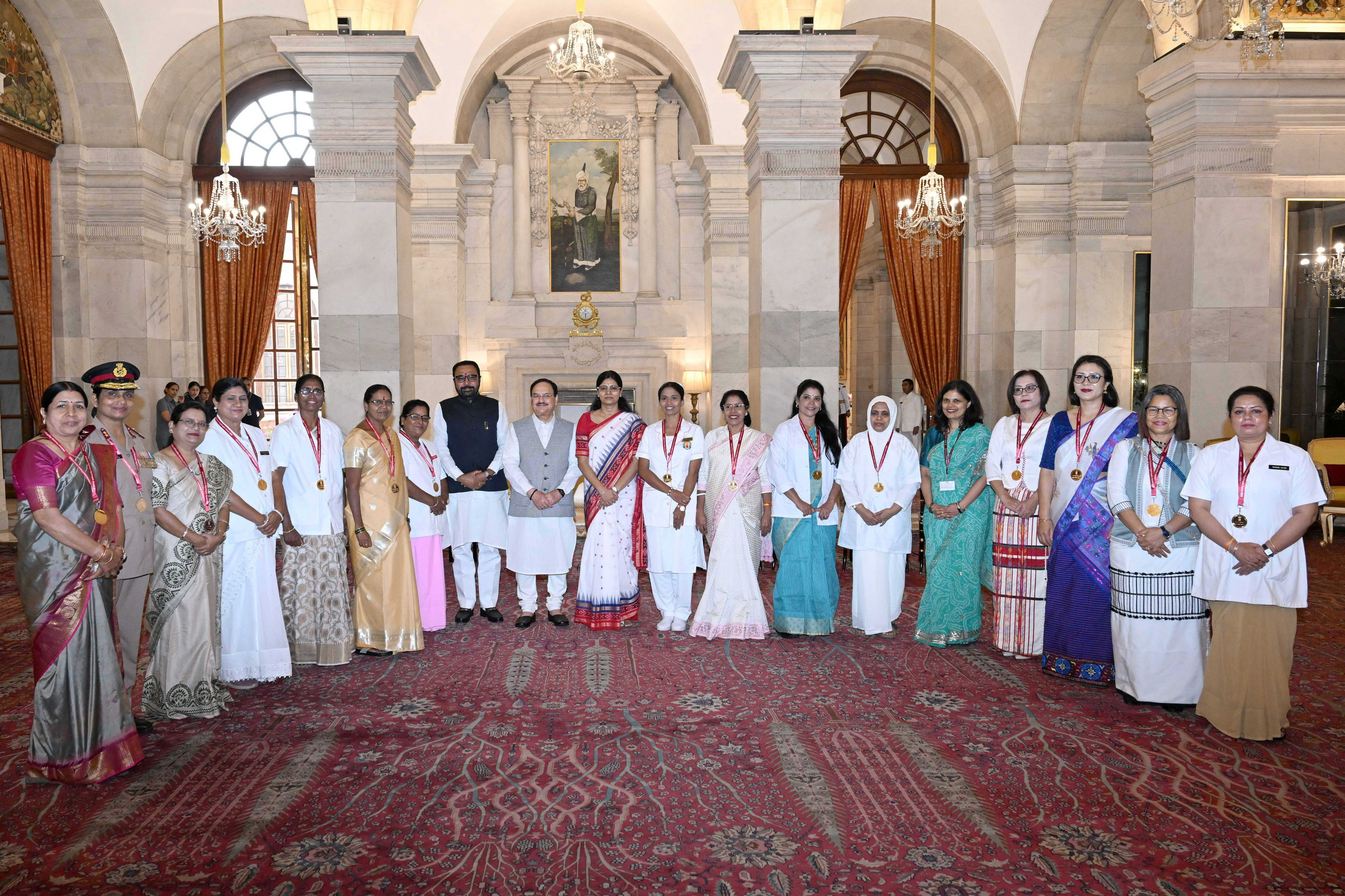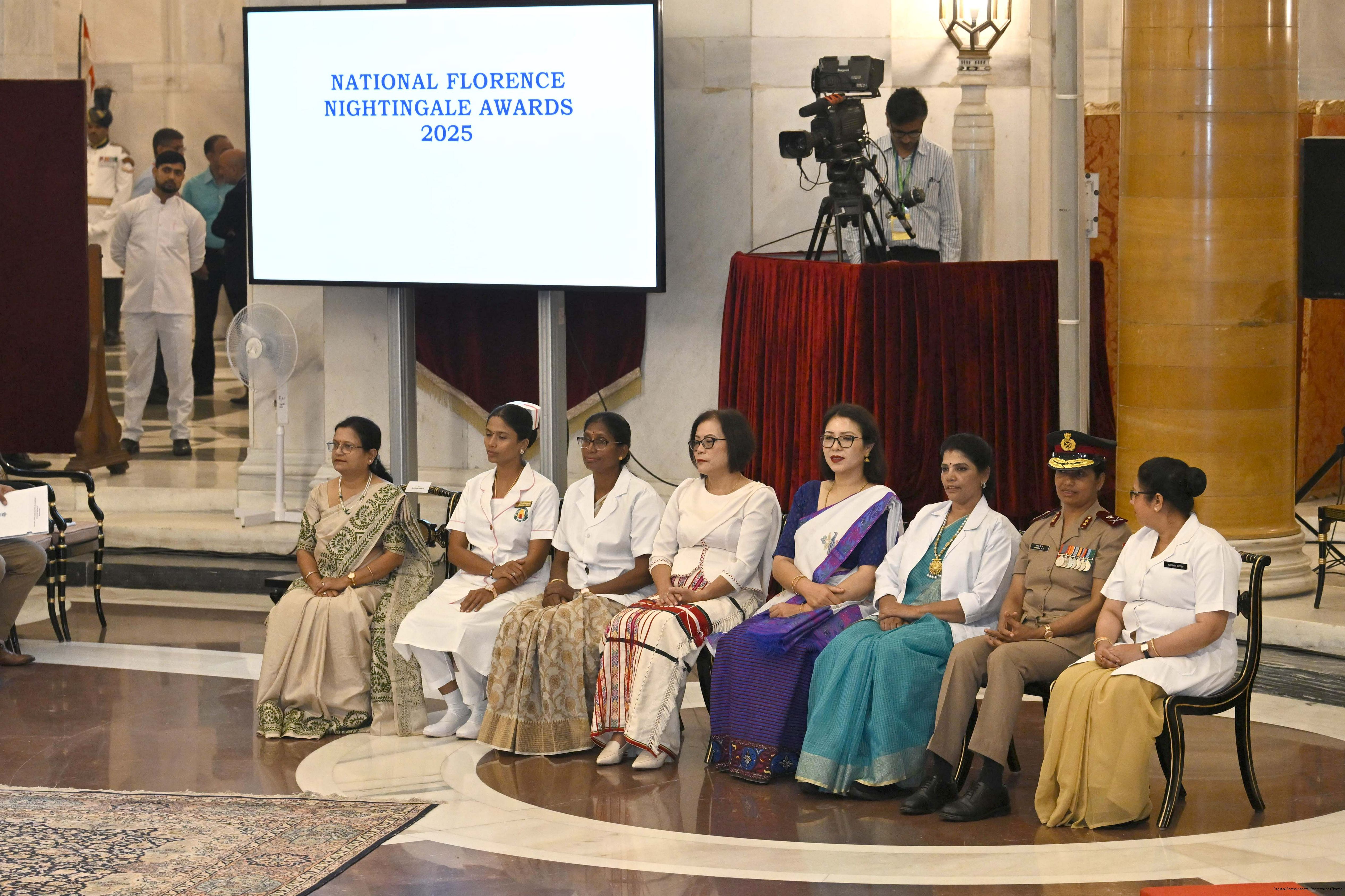 | Caption: | The President of India, Smt Droupadi Murmu presented the National Florence Nightingale Awards for the year 2025 to the nurses at a function held at Rashtrapati Bhavan May 30, 2025. |