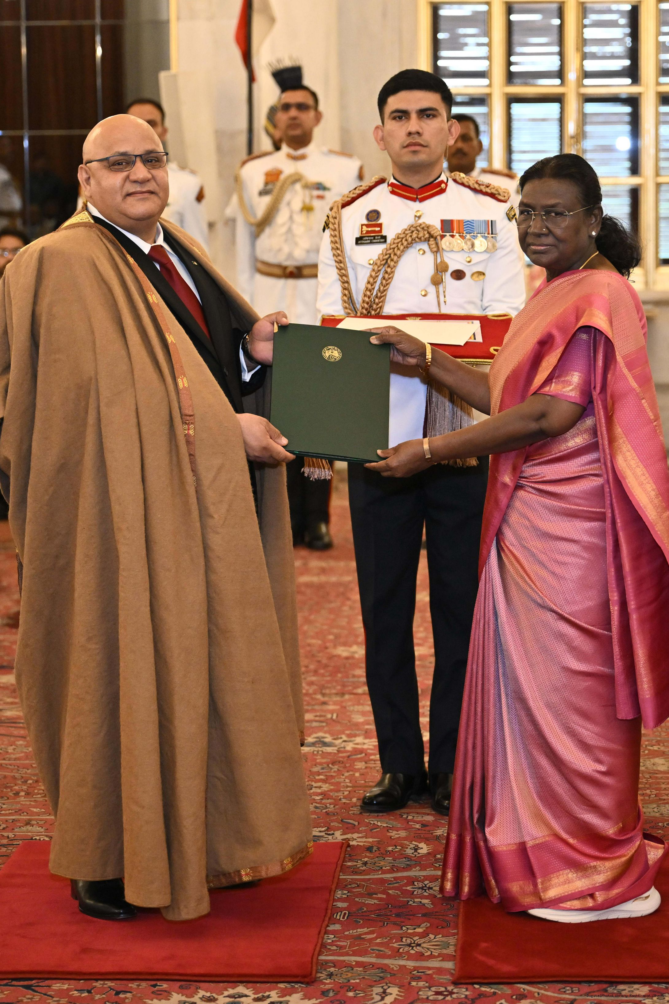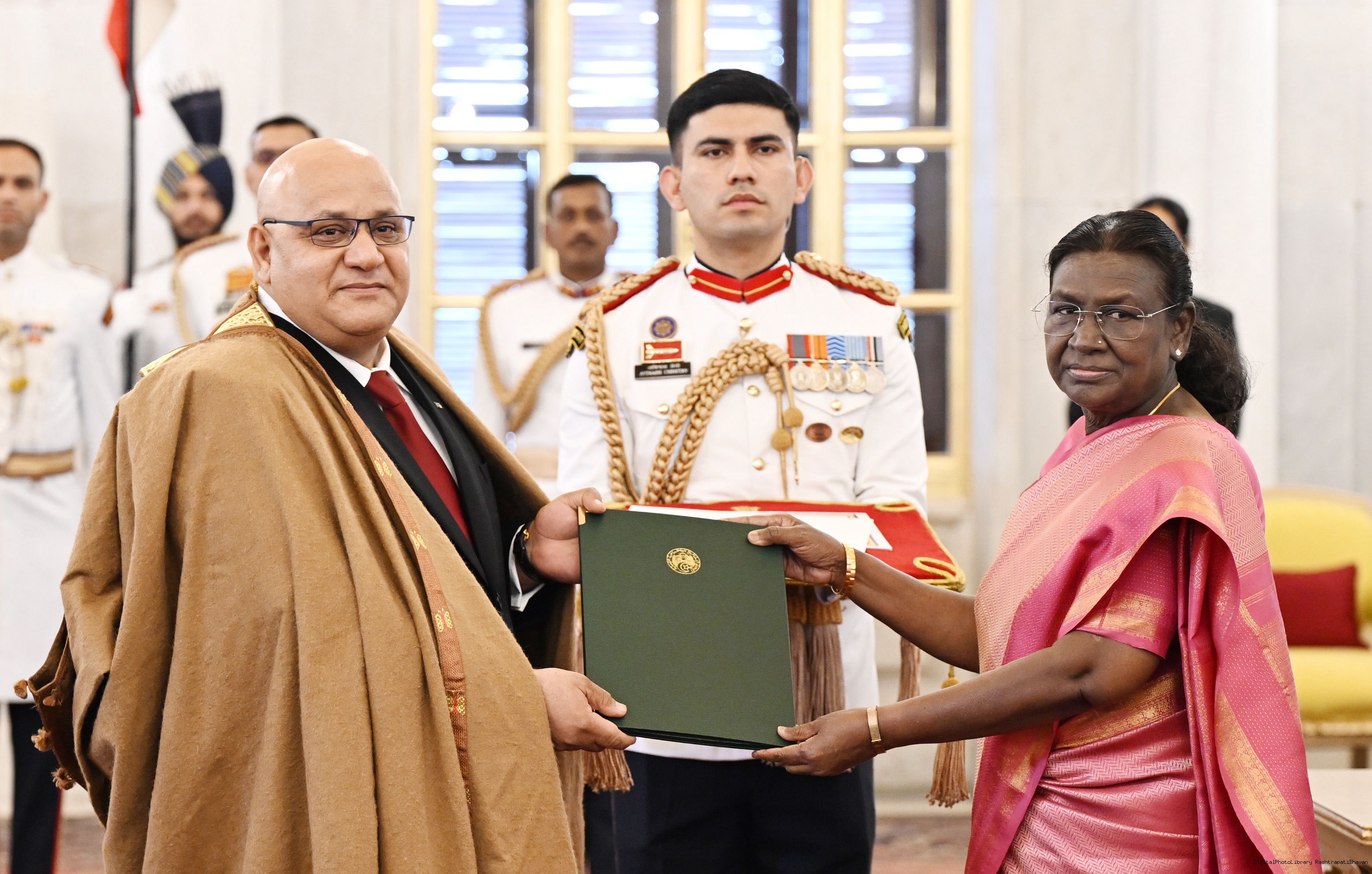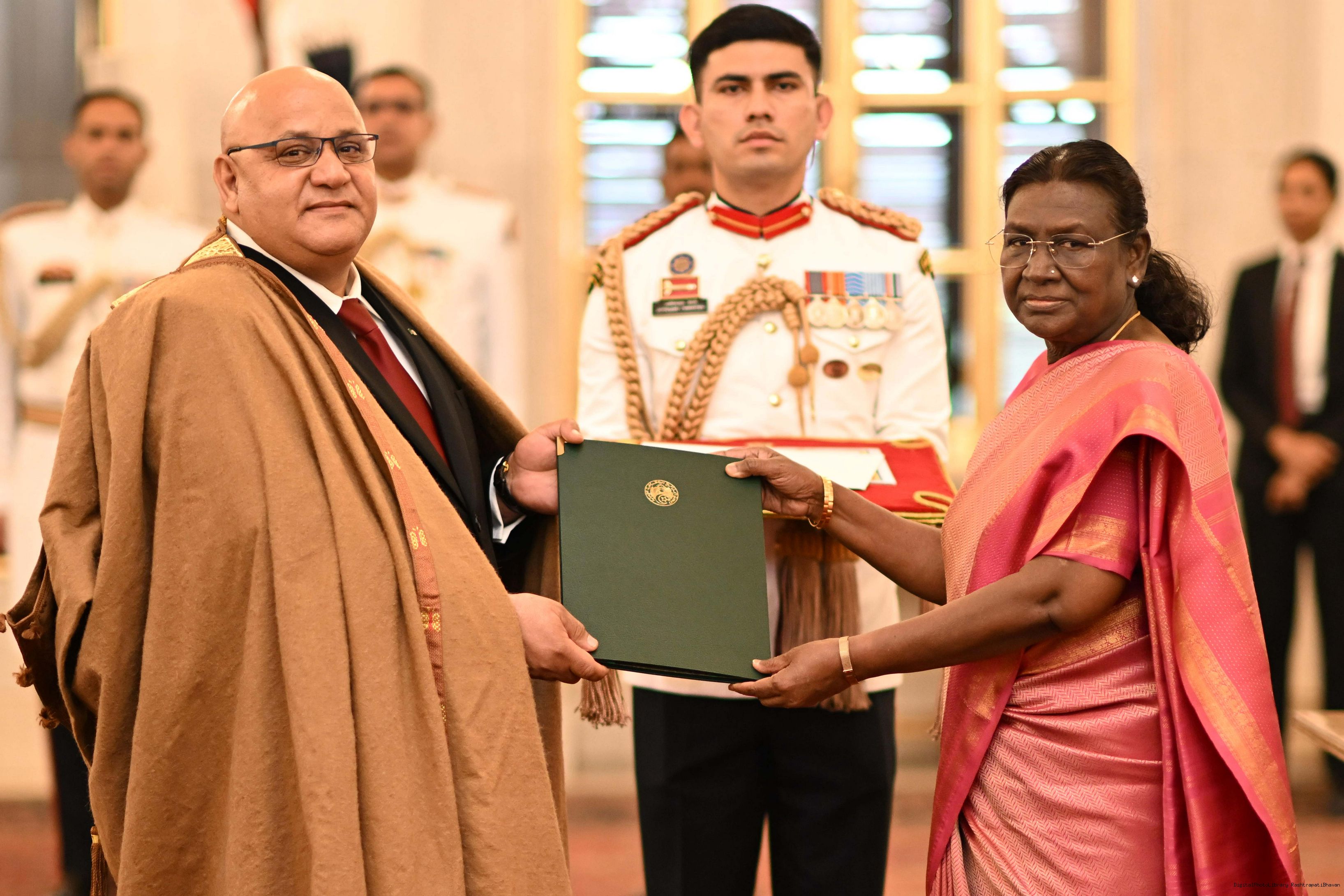 | Caption: | H.E. Mr Abdenor Khelifi, Ambassador of the People’s Democratic Republic of Algeria presenting credentials to the President of India, Smt Droupadi Murmu at a ceremony held at Rashtrapati Bhavan on May 30, 2025. |
