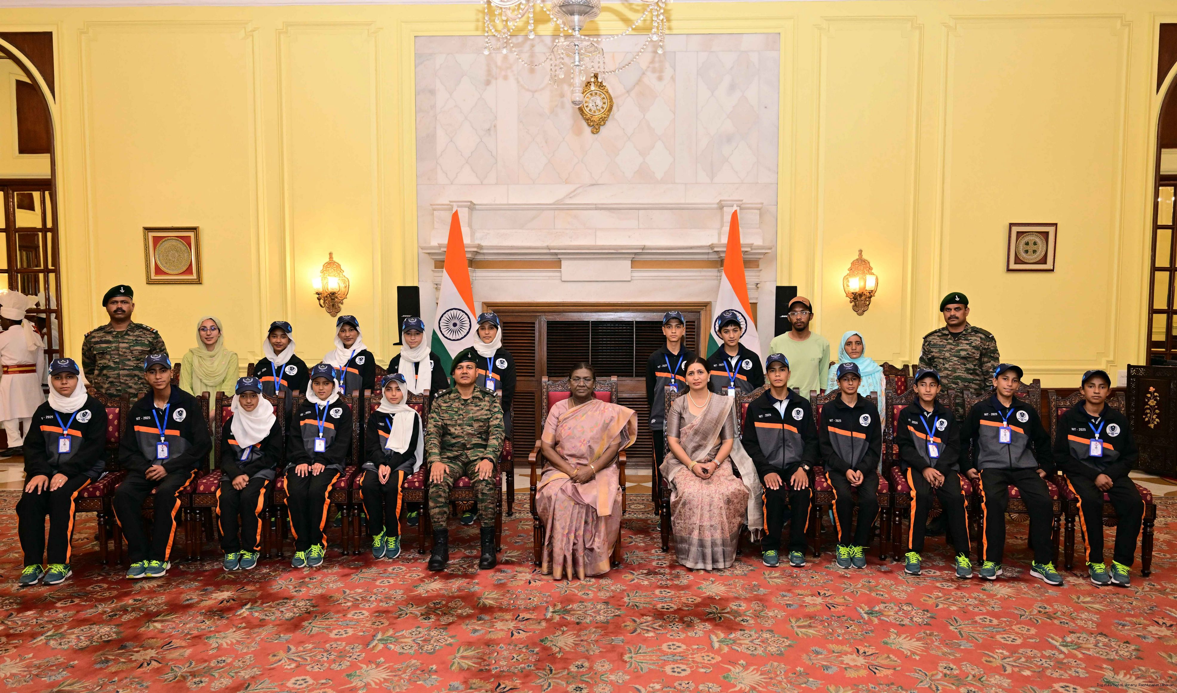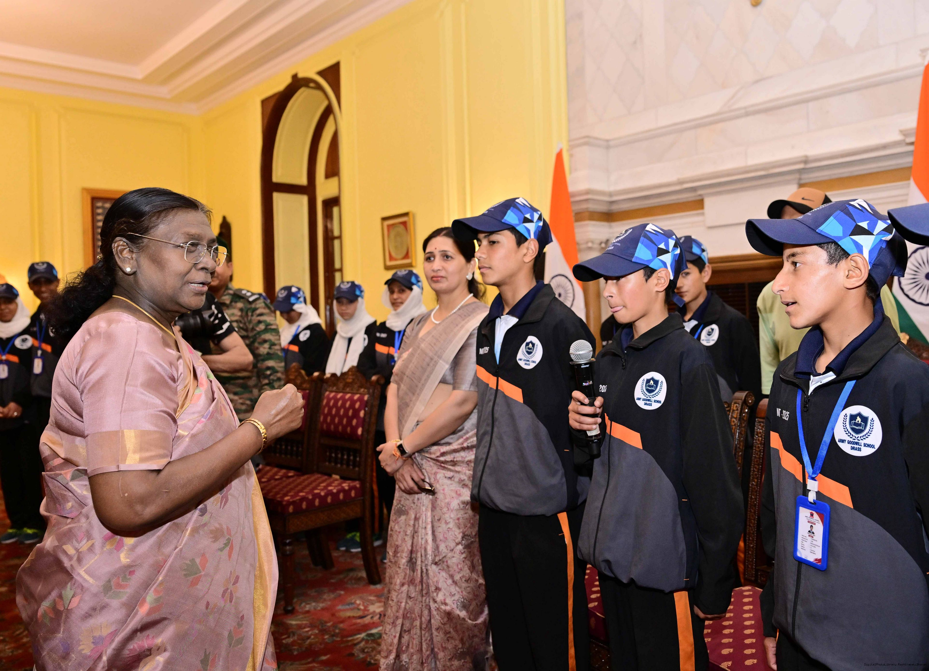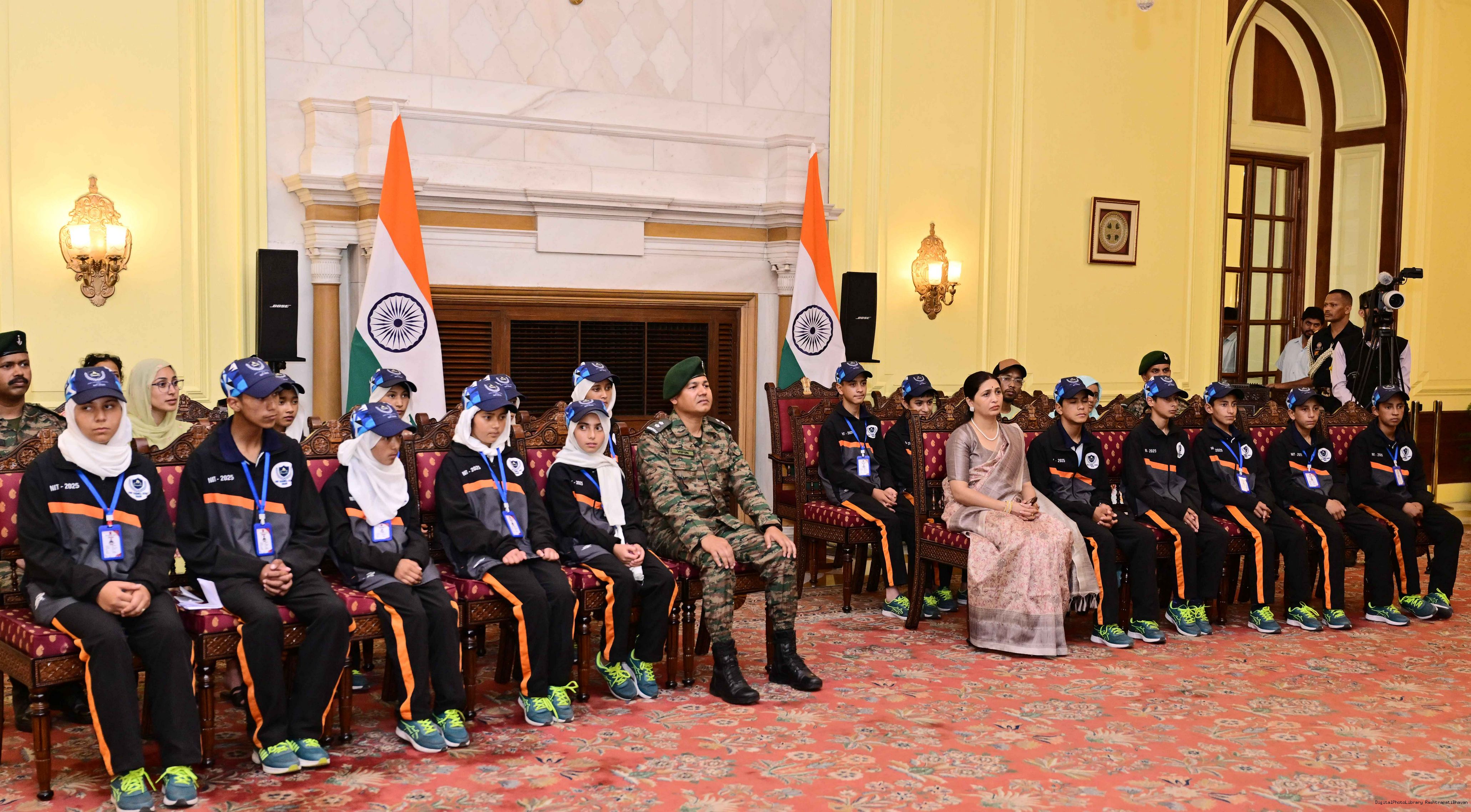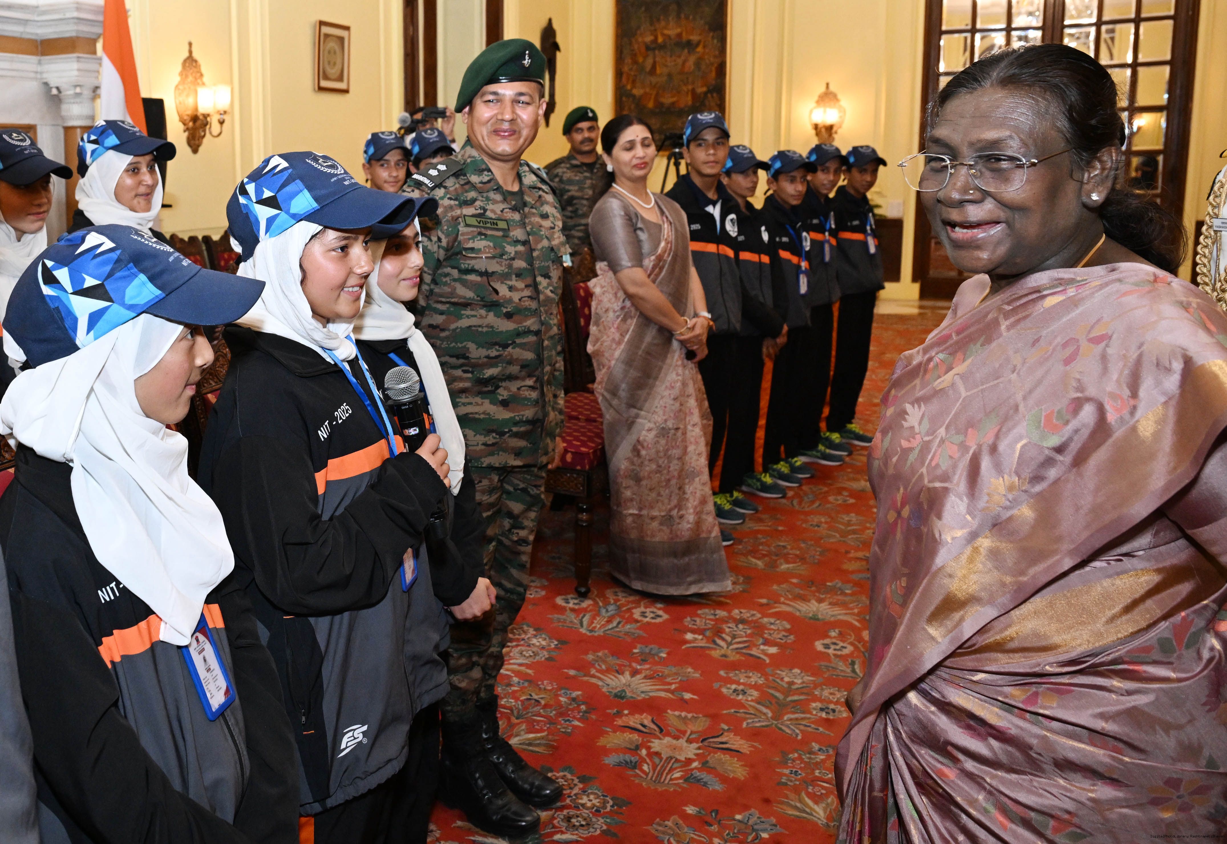 | Caption: | A group of students from Army Goodwill School, Dras, Ladakh called on the President of India, Smt. Droupadi Murmu at Rashtrapati Bhavan June 3, 2025. The group visited Rashtrapati Bhavan as part of the National Integration Tour. |