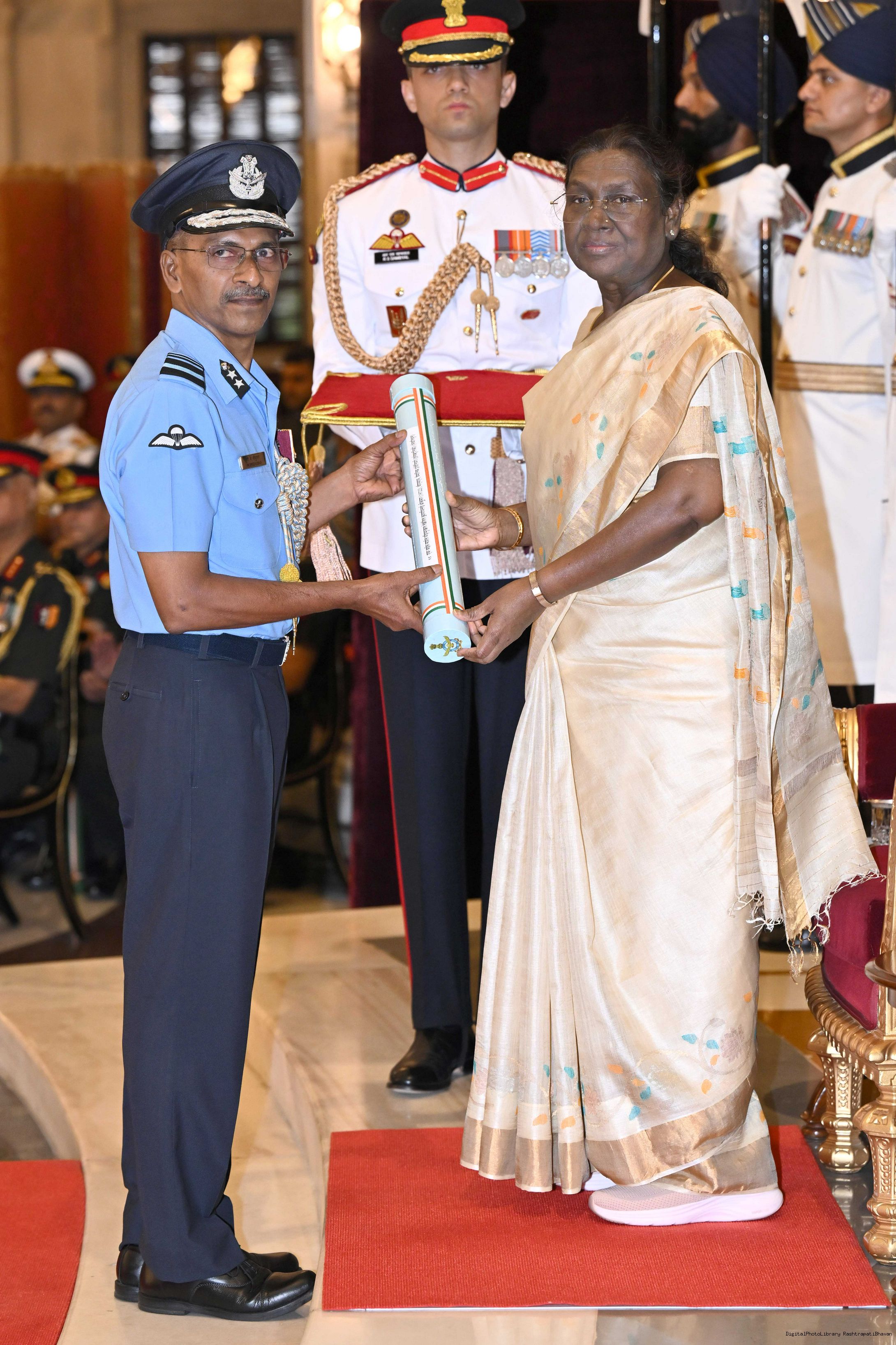 | Caption: | The President of India, Smt Droupadi Murmu presented Distinguished Service Awards at the Defence Investiture Ceremony-II held at Rashtrapati Bhavan on June 4, 2025. |