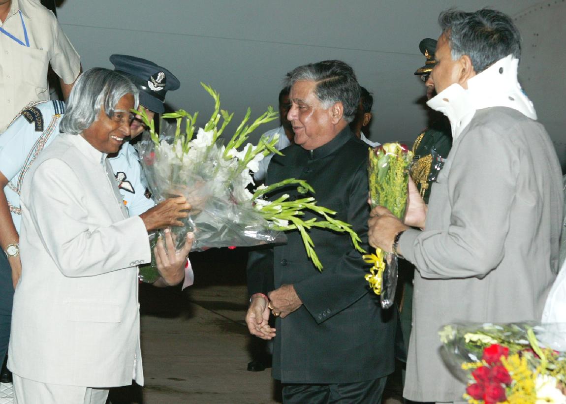 | Caption: | The President of India, Dr A P J Abdul Kalam being welcomed by the Governor of Chhattisgarh, Shri Krishna Mohan Seth and the Chief Minister of Chhattisgarh, Shri Raman Singh at Raipur Airport in Chhattisgarh on June 03, 2004 |