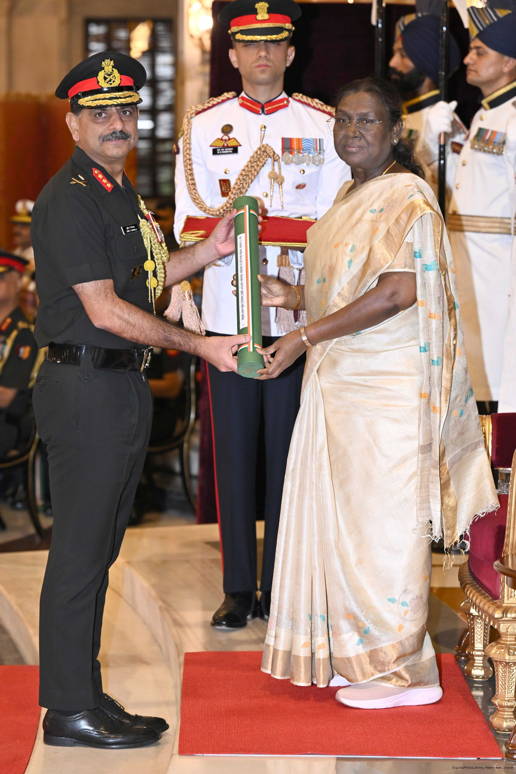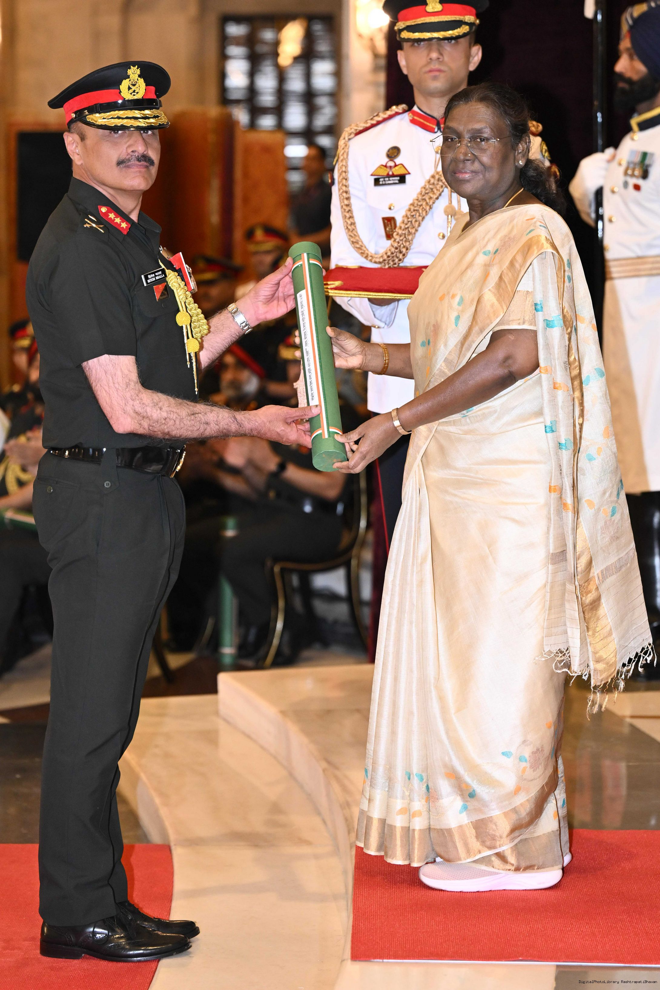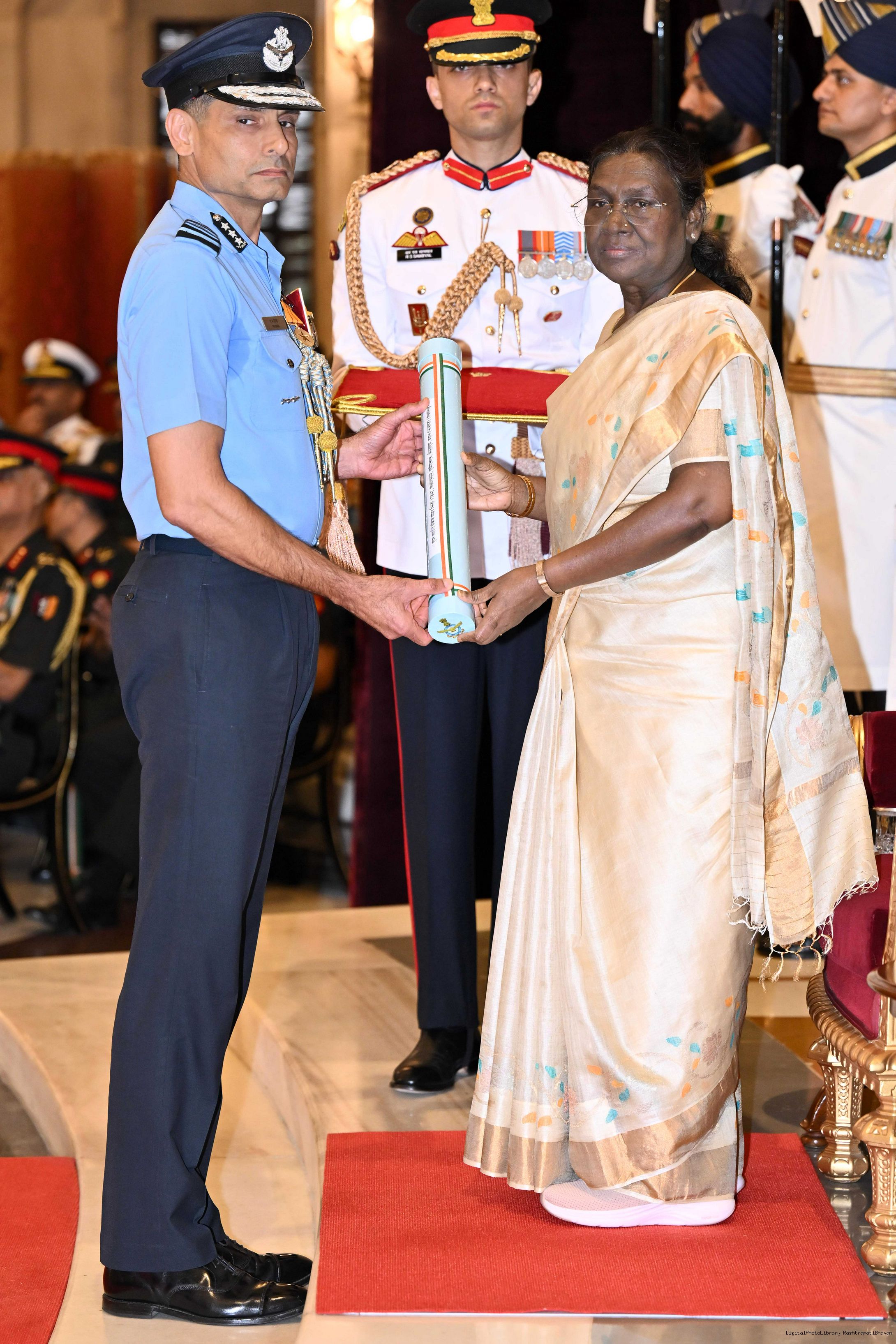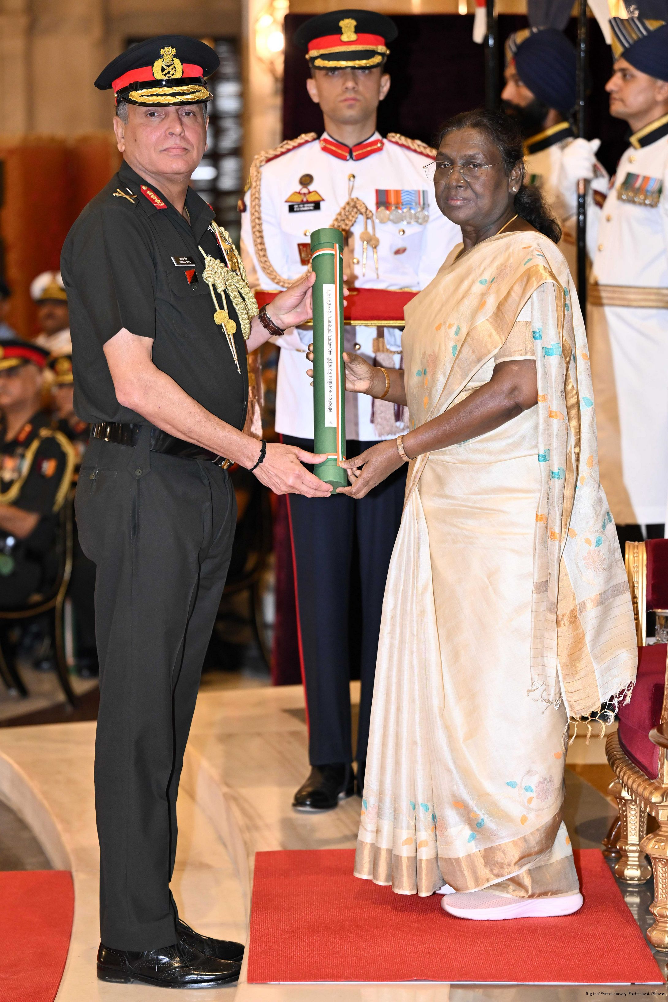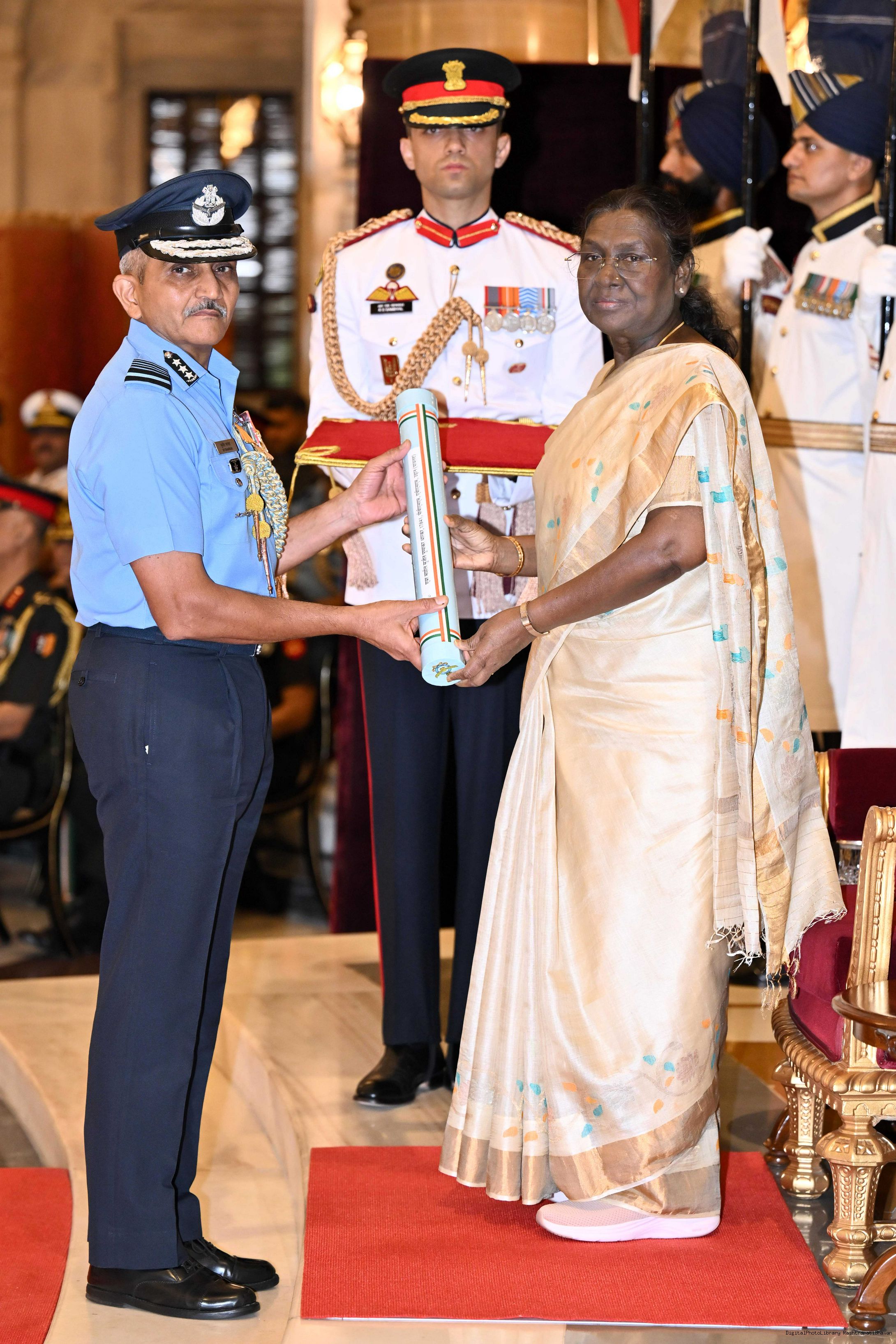 | Caption: | The President of India, Smt Droupadi Murmu presented Distinguished Service Awards at the Defence Investiture Ceremony-II held at Rashtrapati Bhavan on June 4, 2025. |