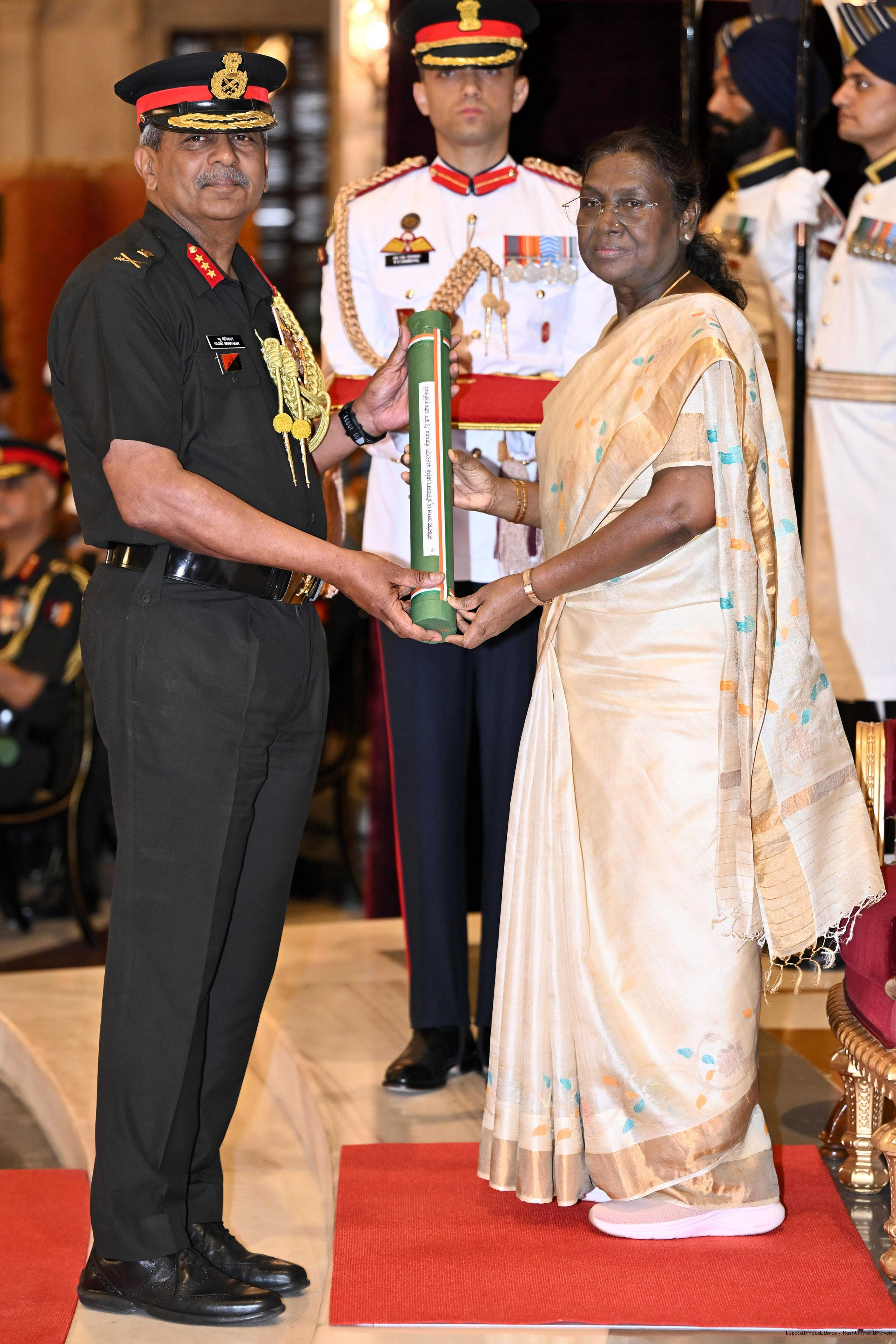 | Caption: | The President of India, Smt Droupadi Murmu presented Distinguished Service Awards at the Defence Investiture Ceremony-II held at Rashtrapati Bhavan on June 4, 2025. |