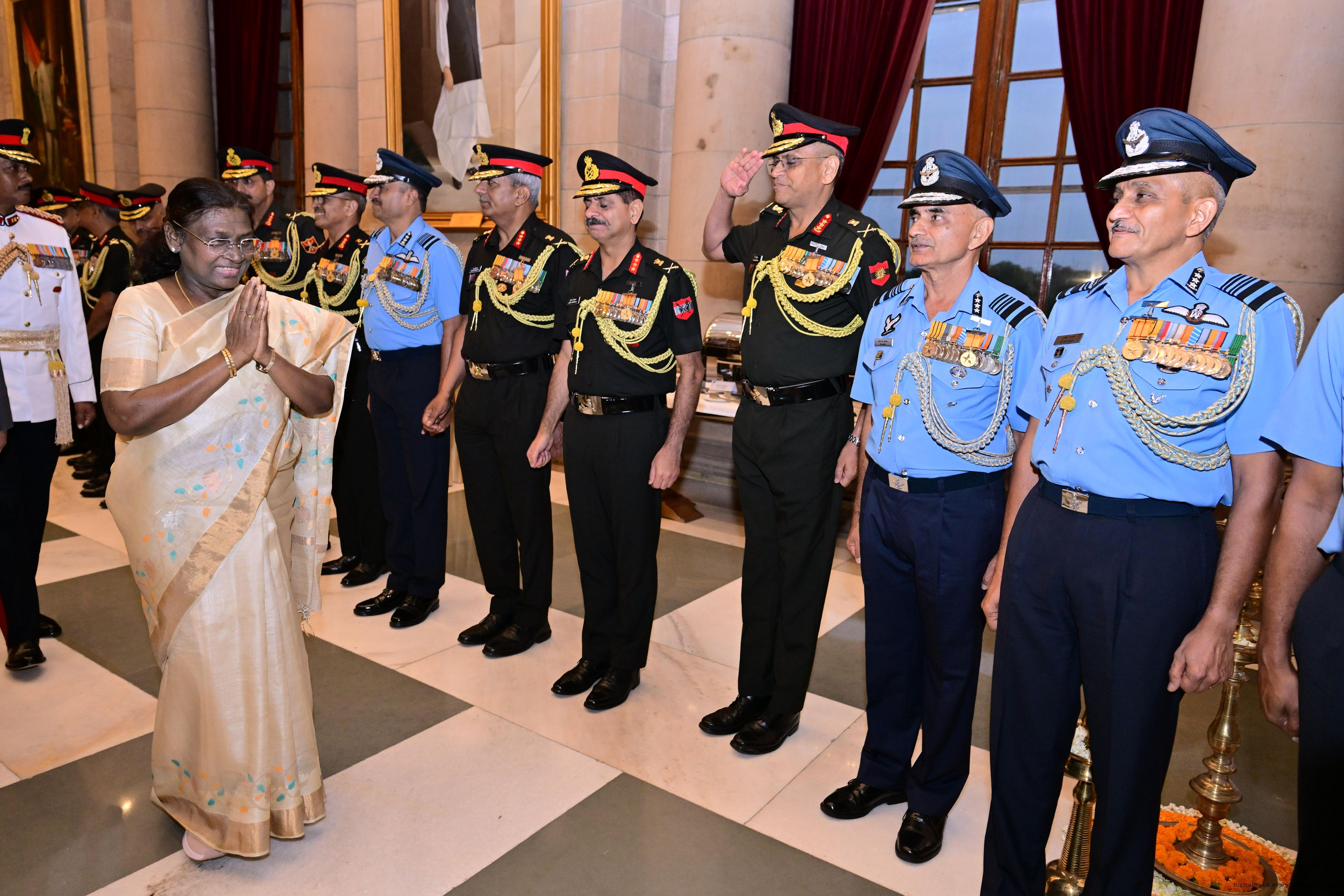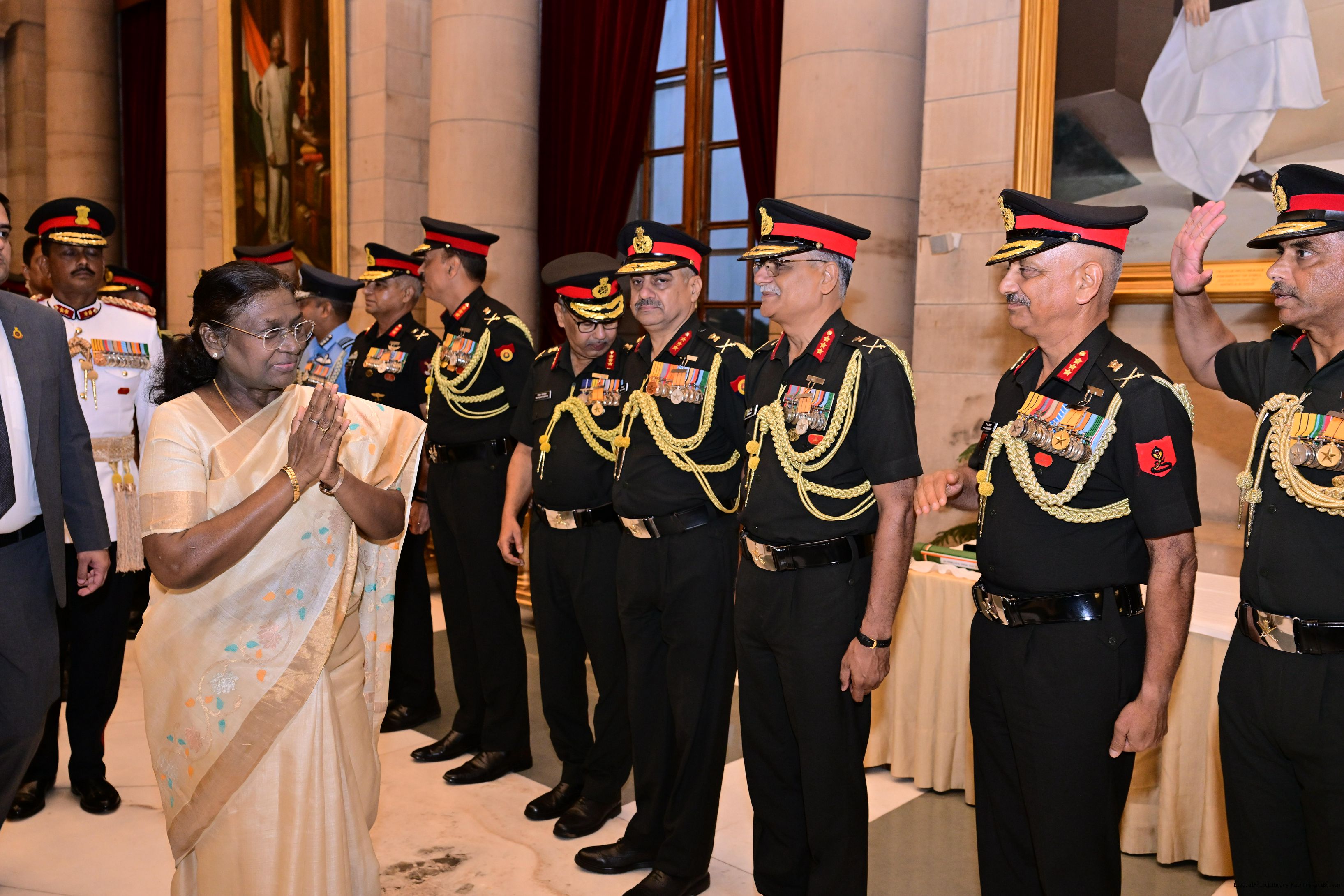 | Caption: | The President of India, Smt Droupadi Murmu presented Distinguished Service Awards at the Defence Investiture Ceremony-II held at Rashtrapati Bhavan on June 4, 2025. |