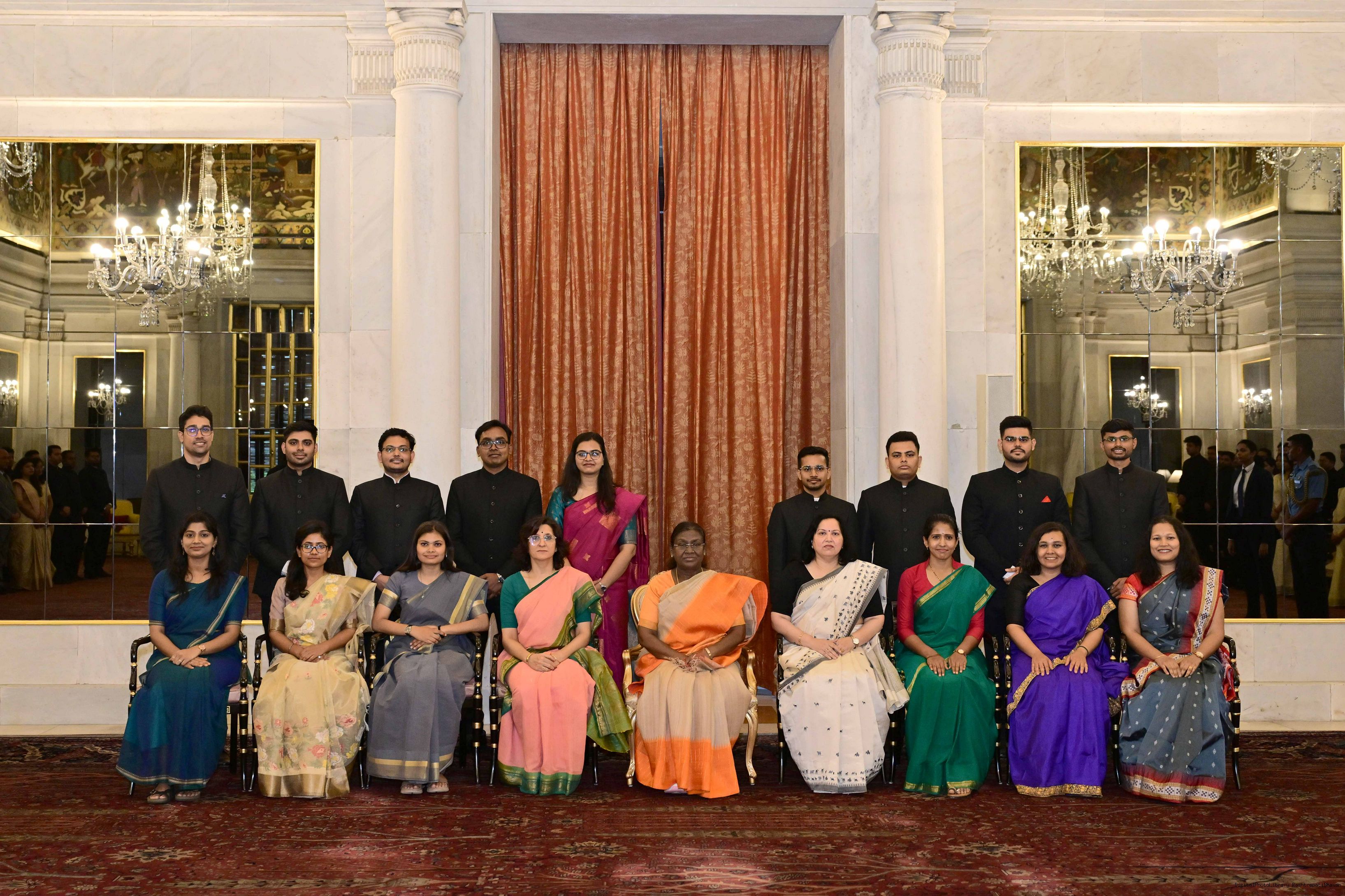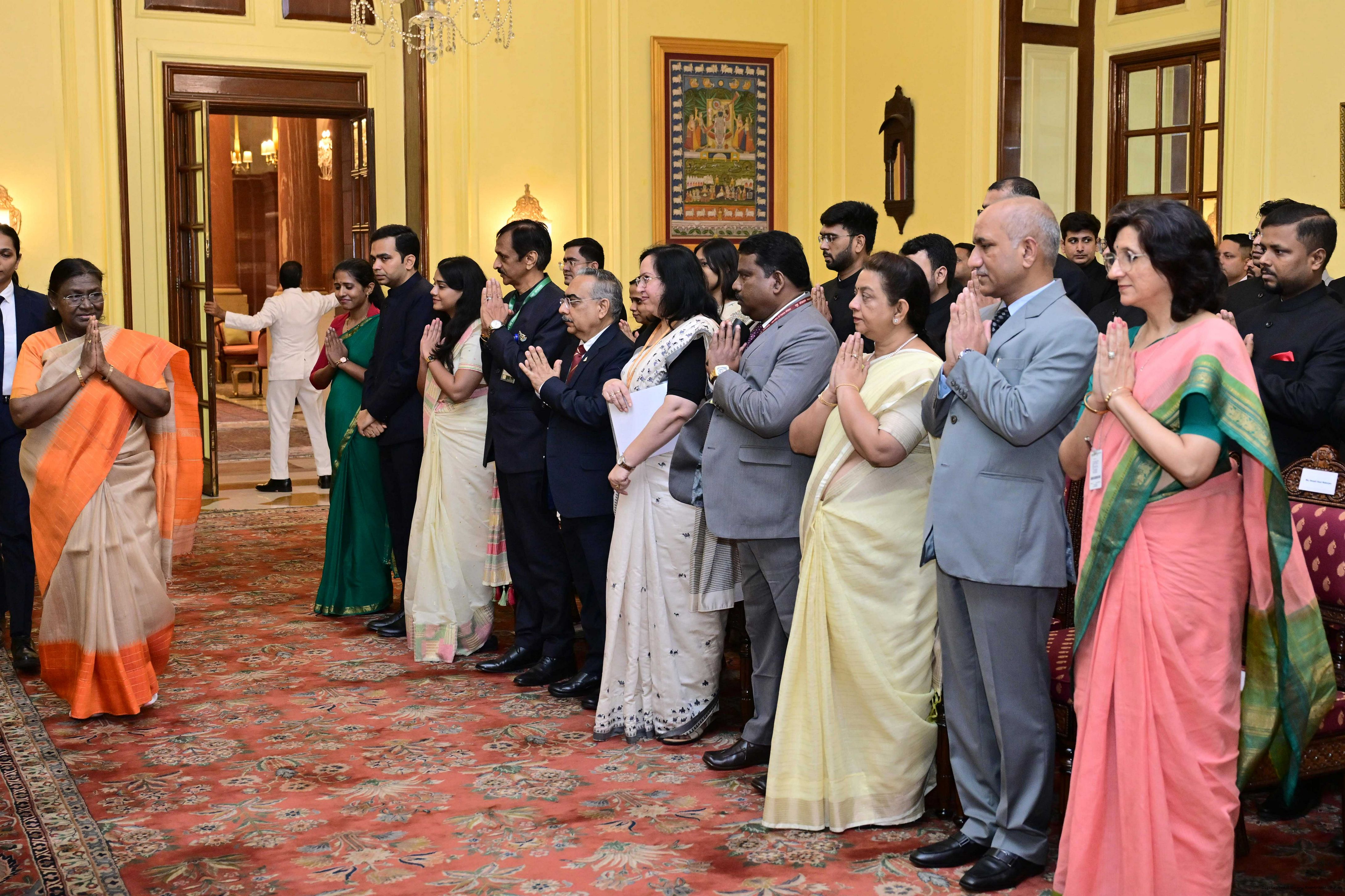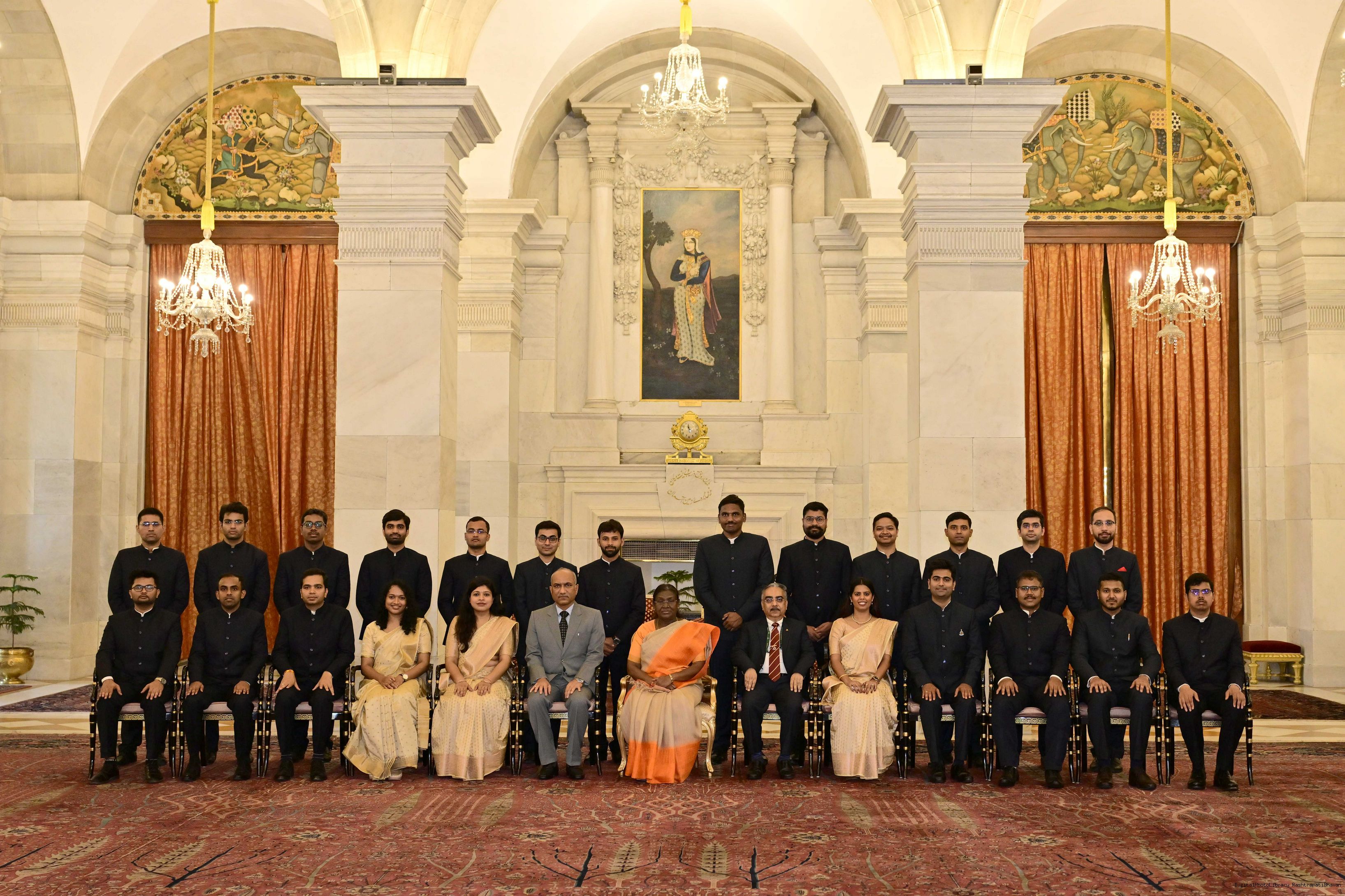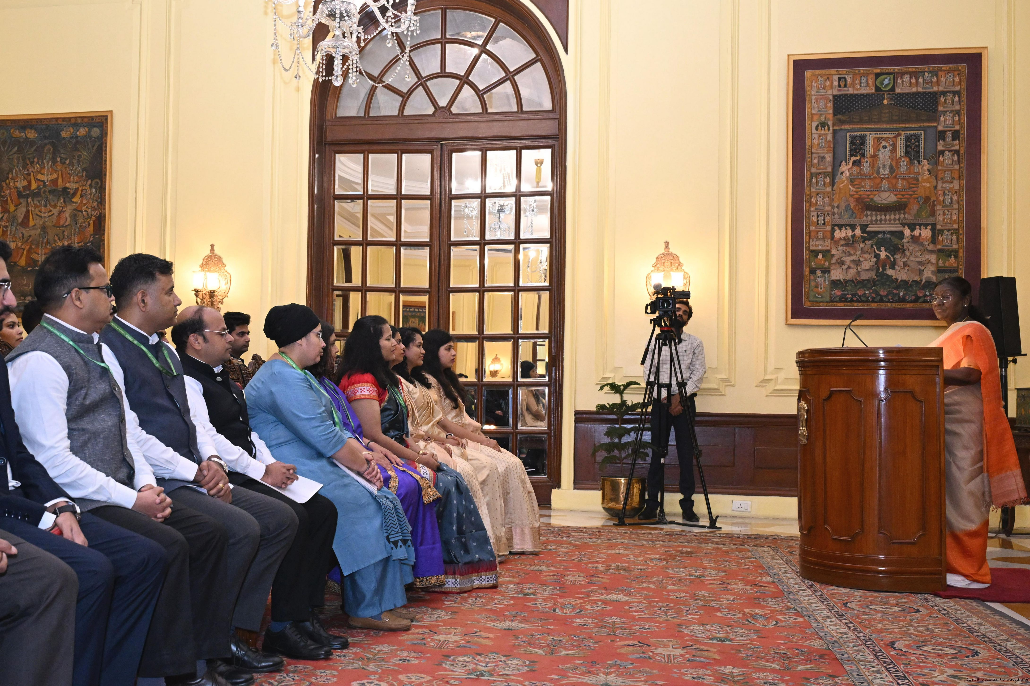 | Caption: | The probationers of the Indian Corporate Law Service, the Defence Aeronautical Quality Assurance Service and the Central Labour Service called on the President of India, Smt Droupadi Murmu at Rashtrapati Bhavan on June 18, 2025. |