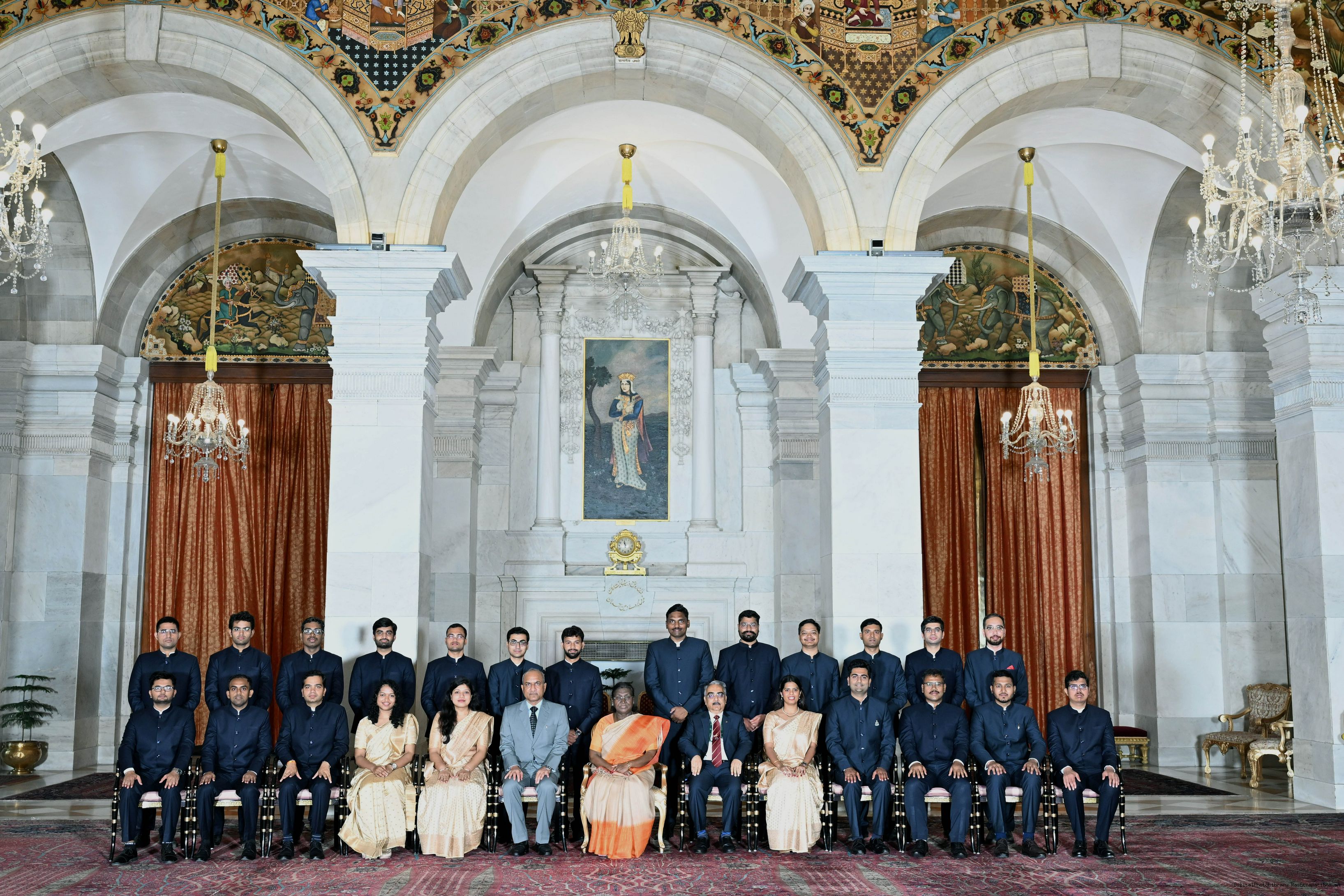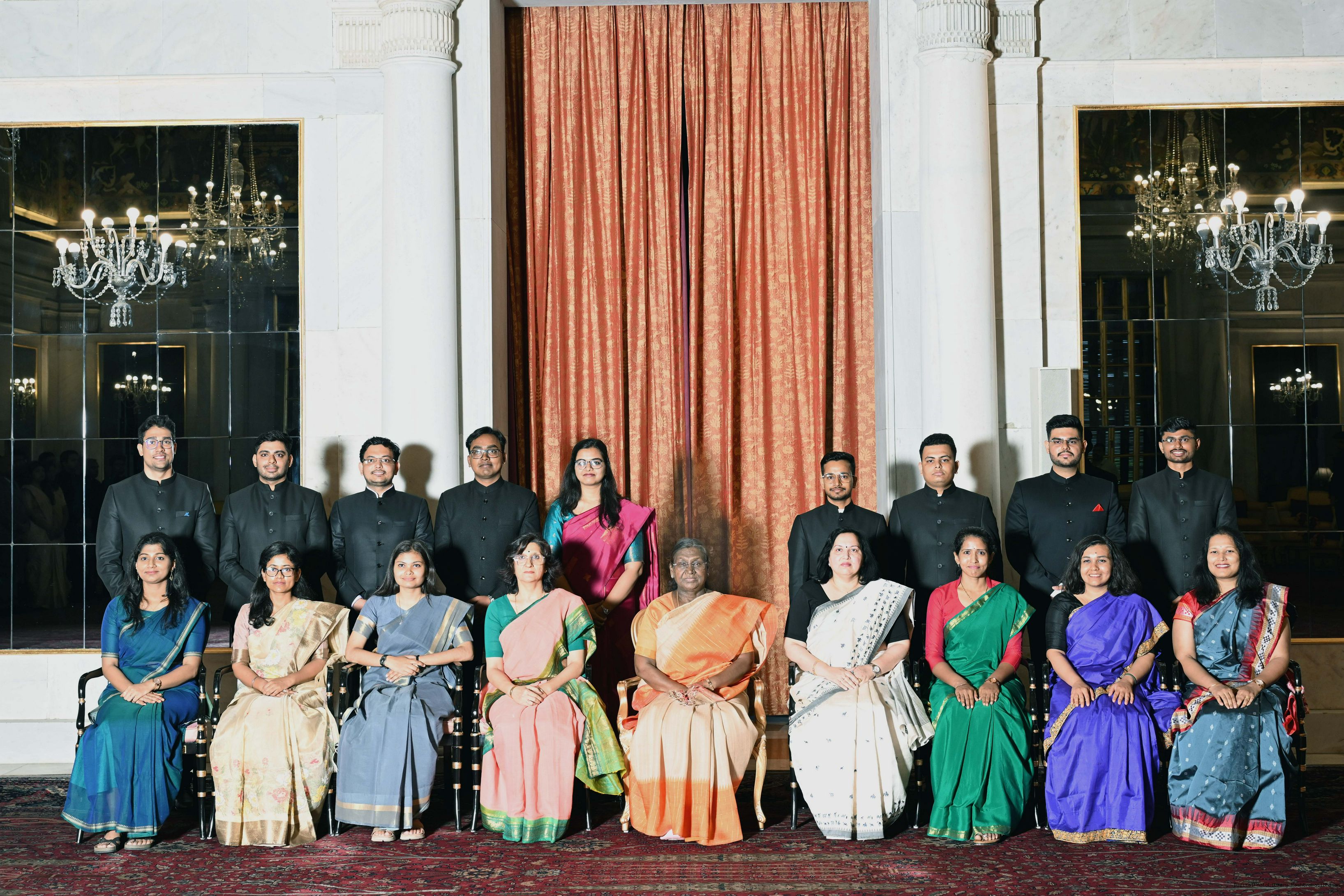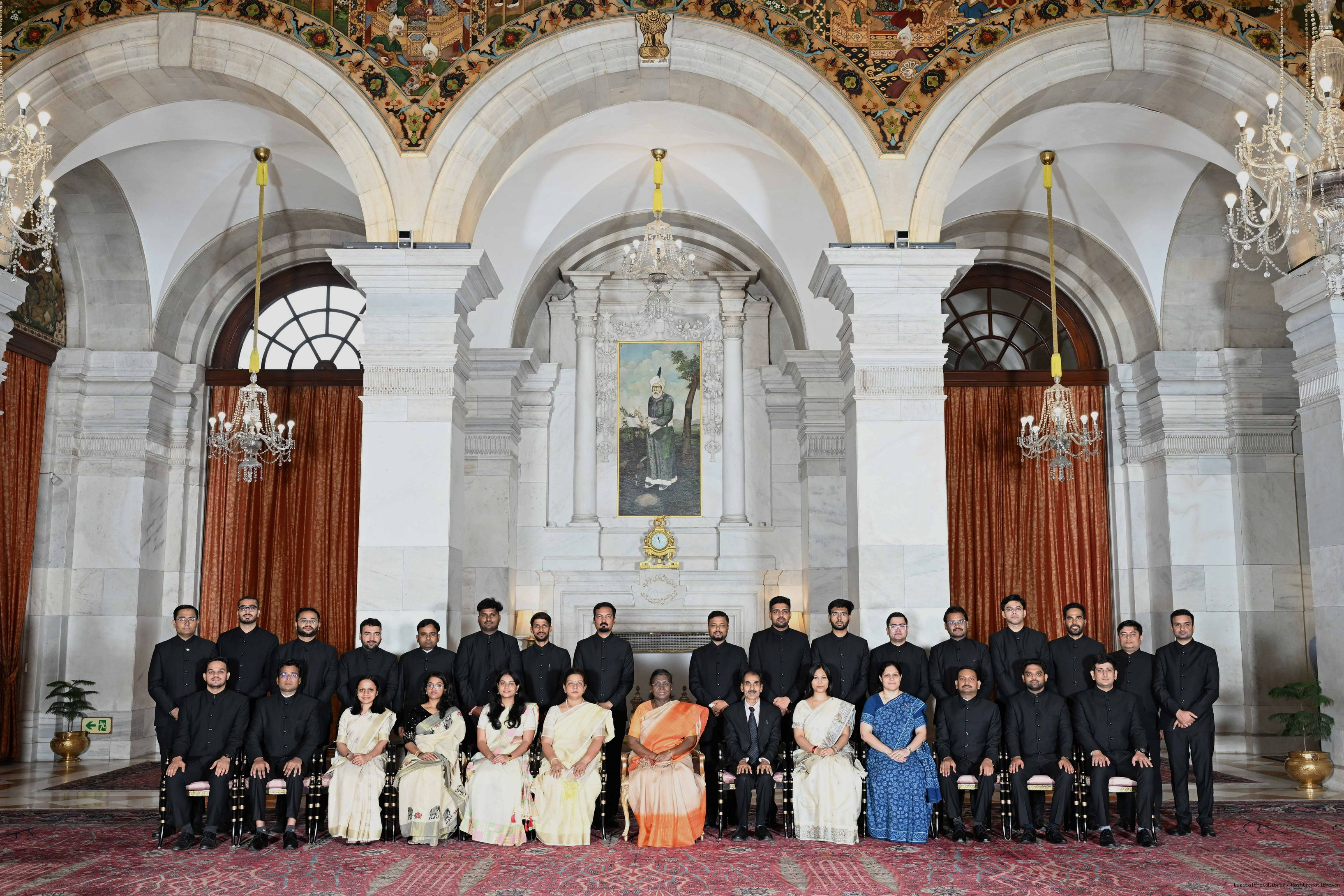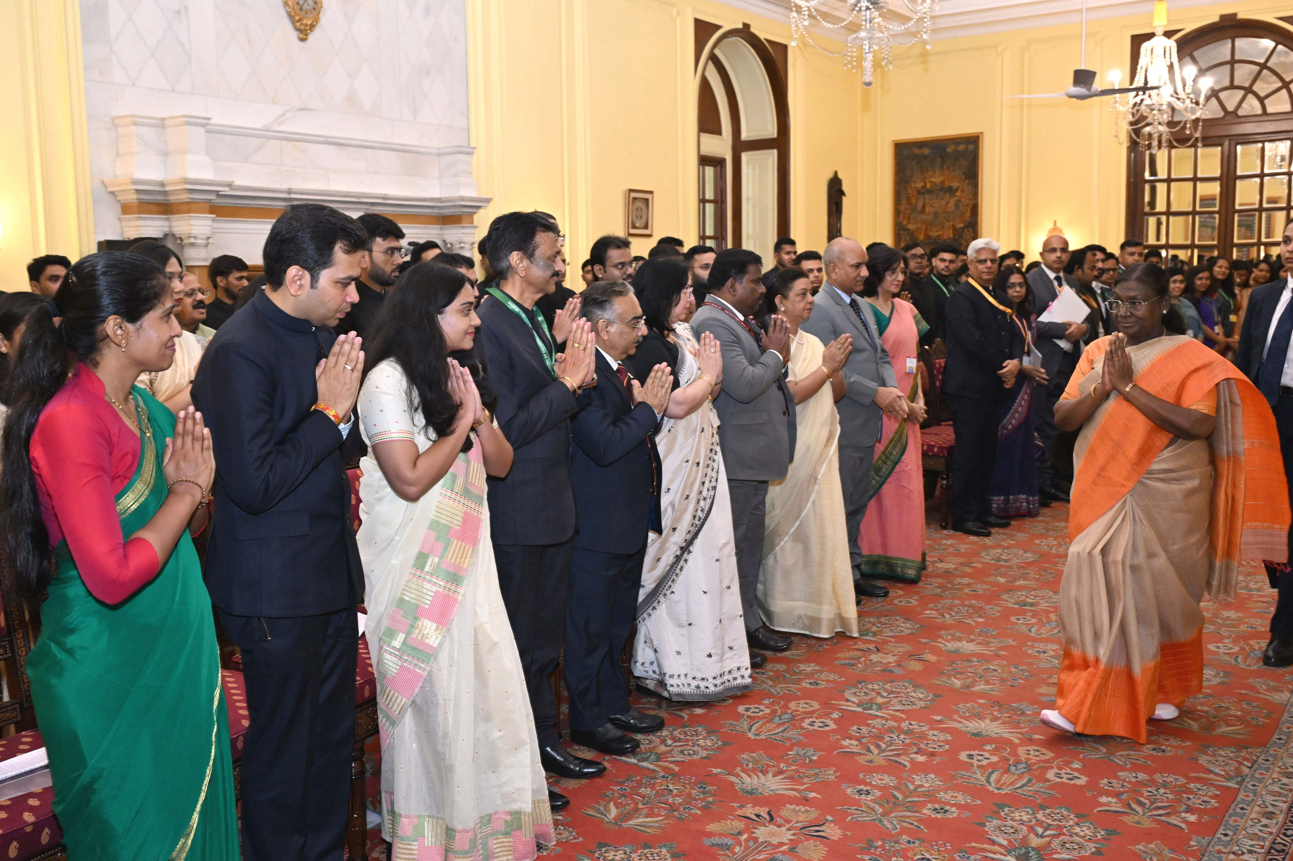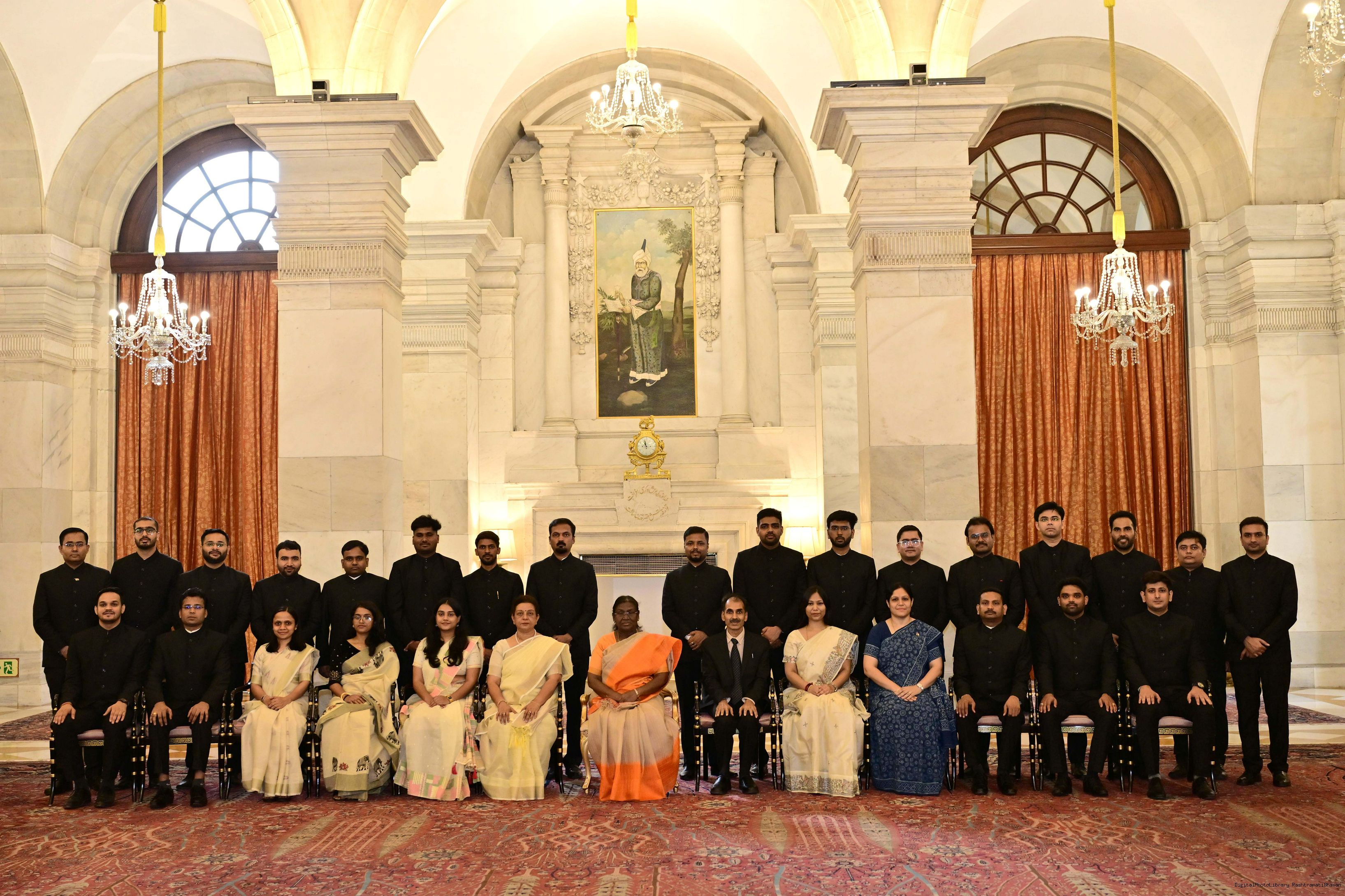 | Caption: | The probationers of the Indian Corporate Law Service, the Defence Aeronautical Quality Assurance Service and the Central Labour Service called on the President of India, Smt Droupadi Murmu at Rashtrapati Bhavan on June 18, 2025. |