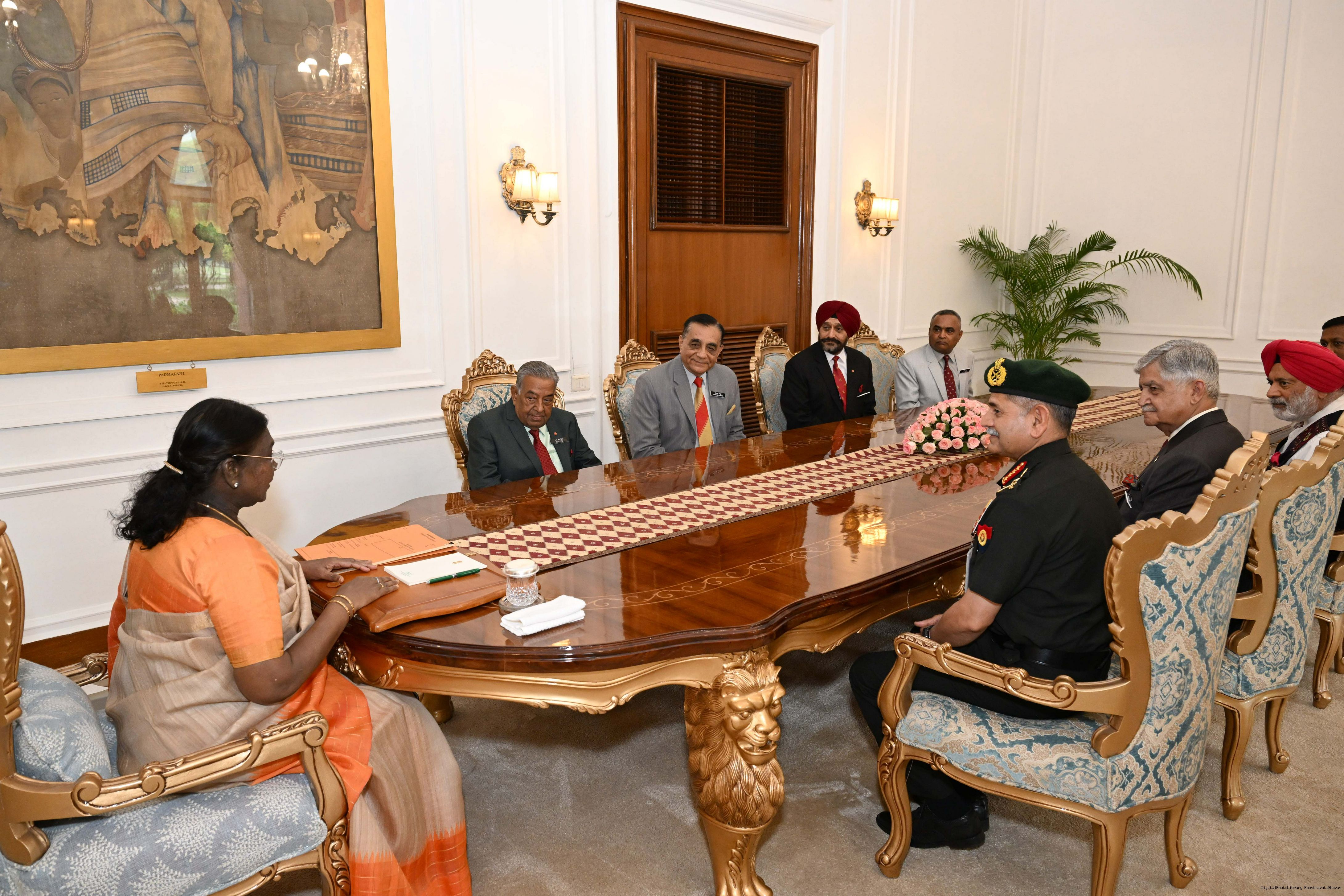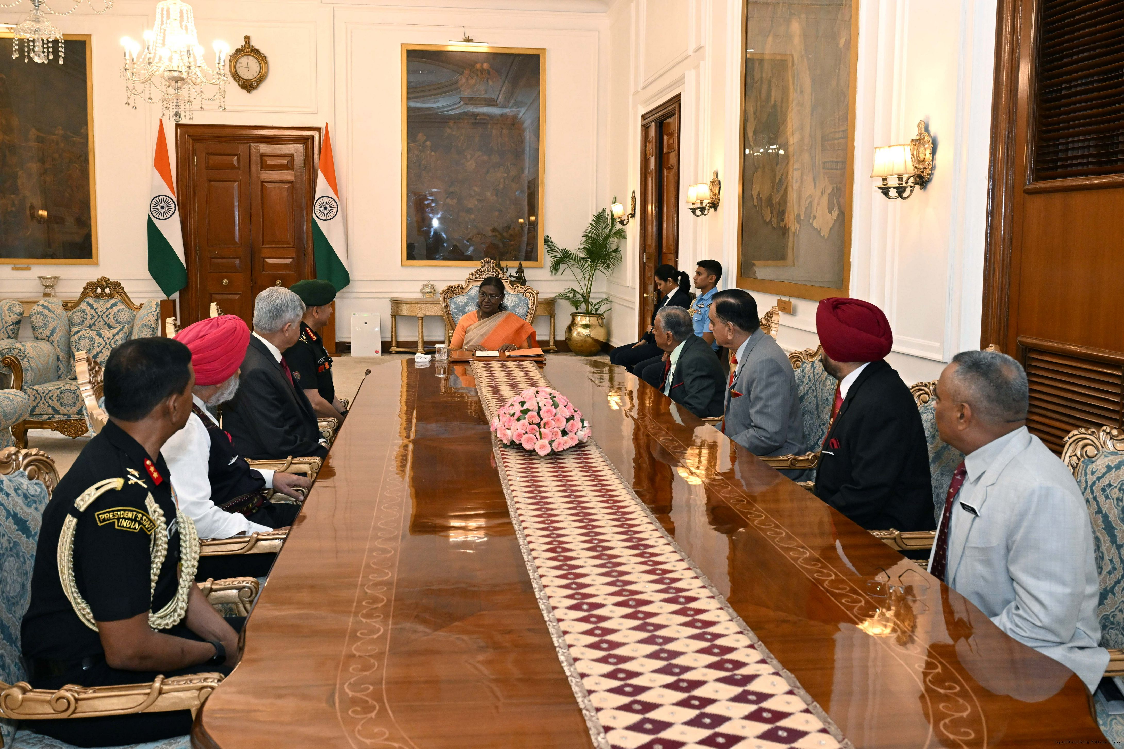 | Caption: | The Chief of the Army Staff, General Upendra Dwivedi along with former Chiefs of Army Staff General VP Malik, General NC Vij, General JJ Singh, General Deepak Kapoor, General Bikram Singh and General Manoj Pande called on the President of India, Smt Droupadi Murmu at Rashtrapati Bhavan on June 18, 2025. |