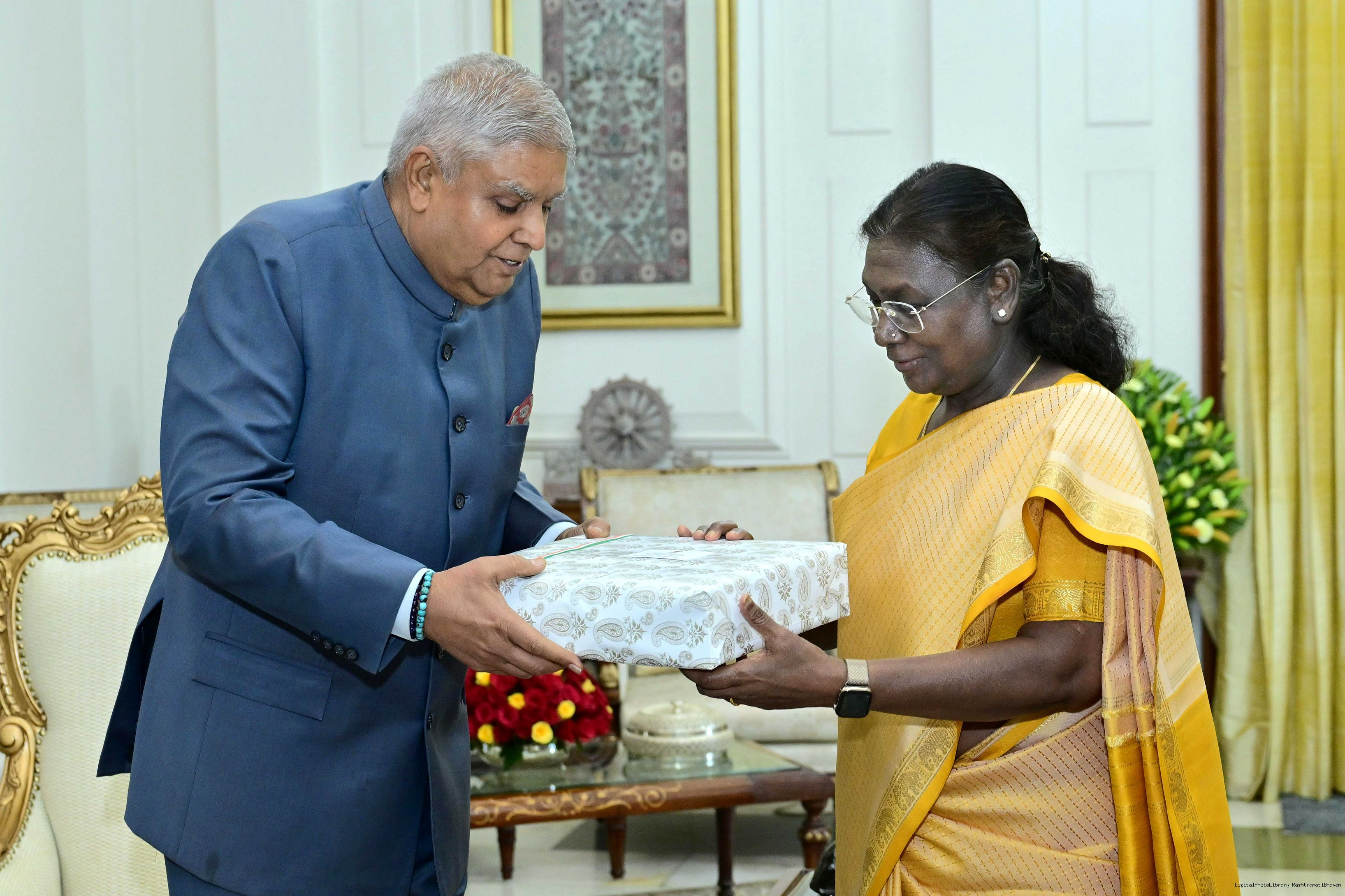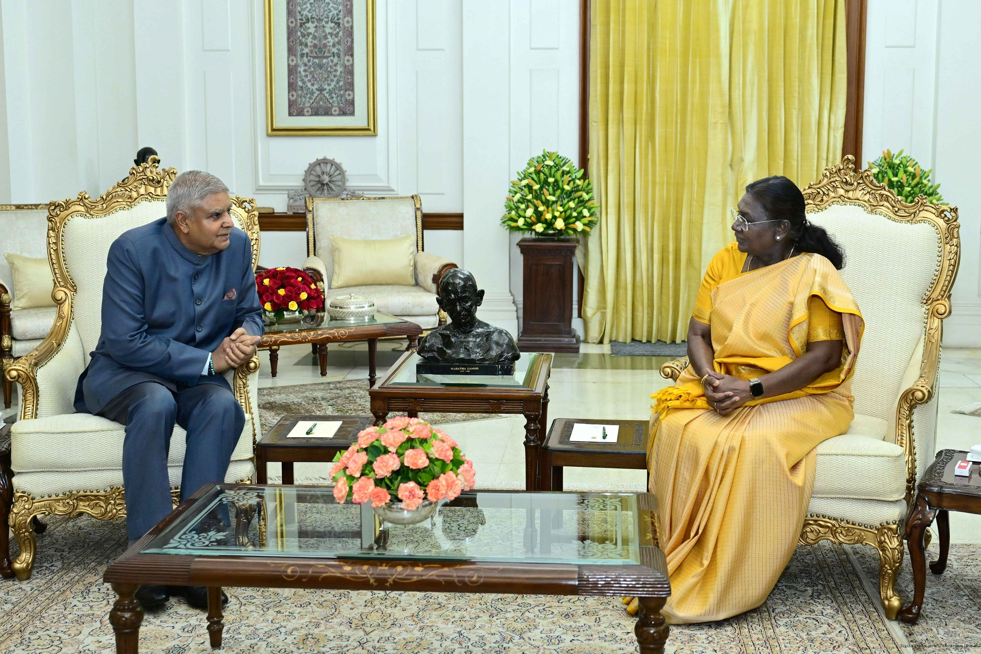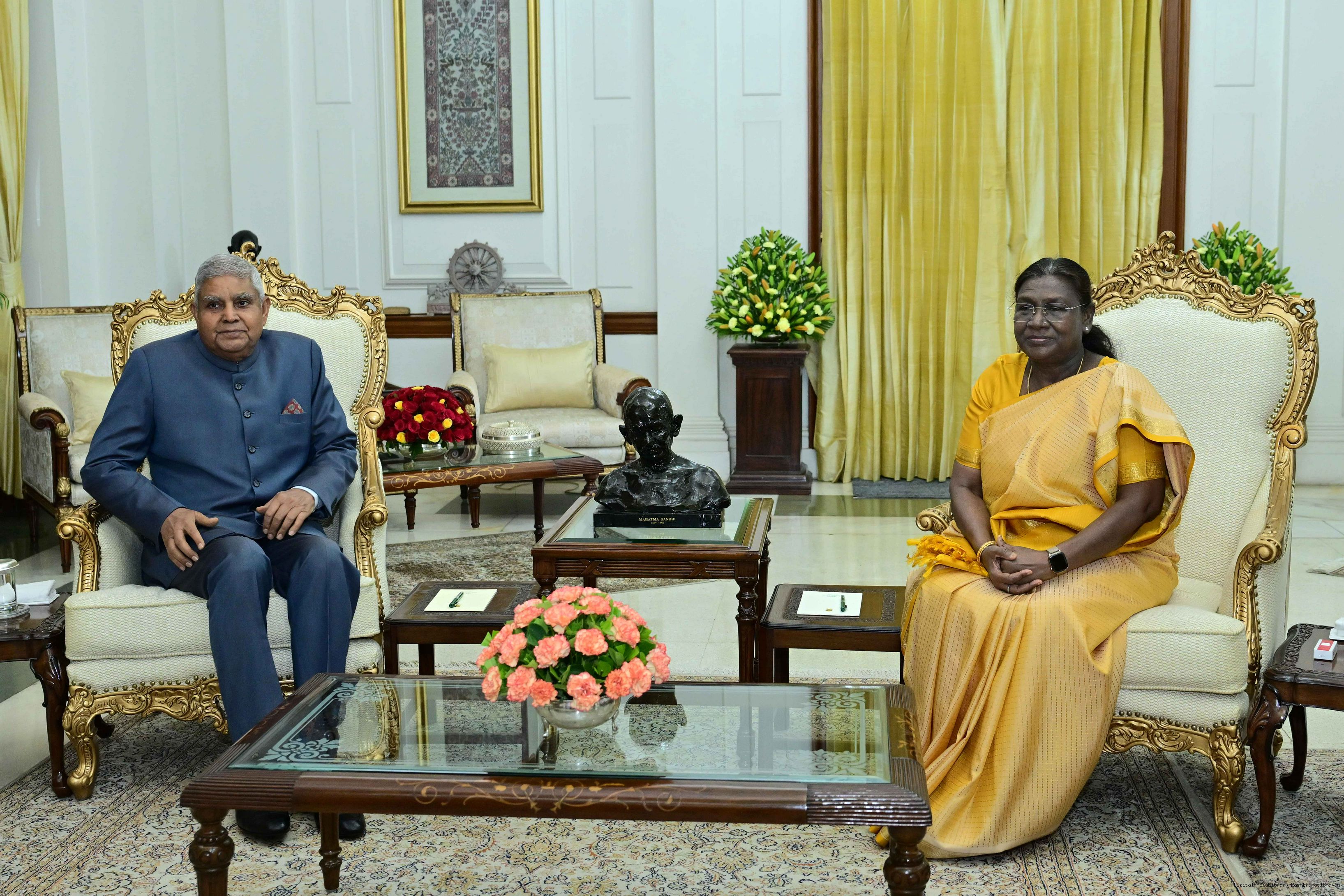 | Caption: | The Vice President of India, Shri Jagdeep Dhankhar, called on the President of India Smt Droupadi Murmu at Rashtrapati Bhavan on June 19, 2025. |