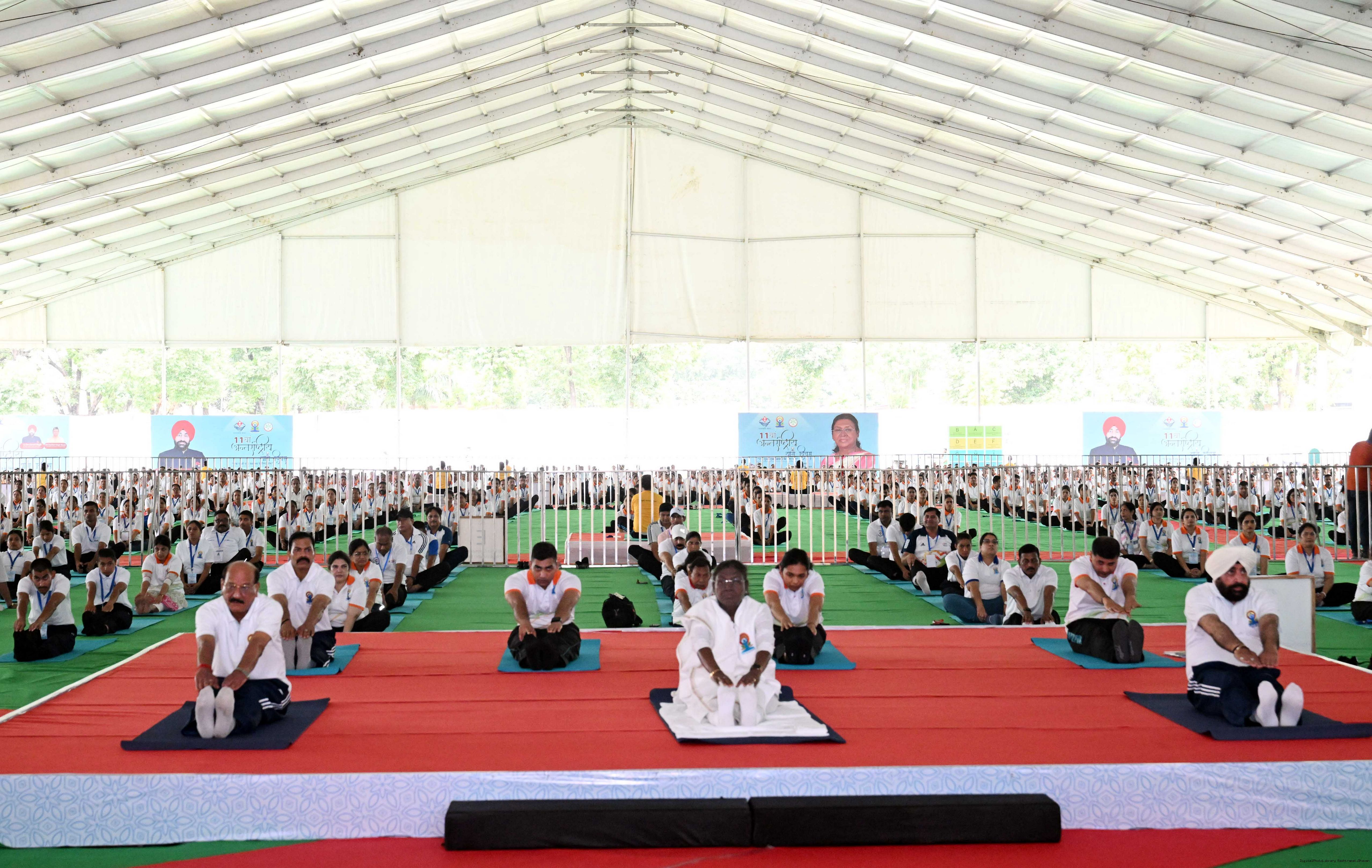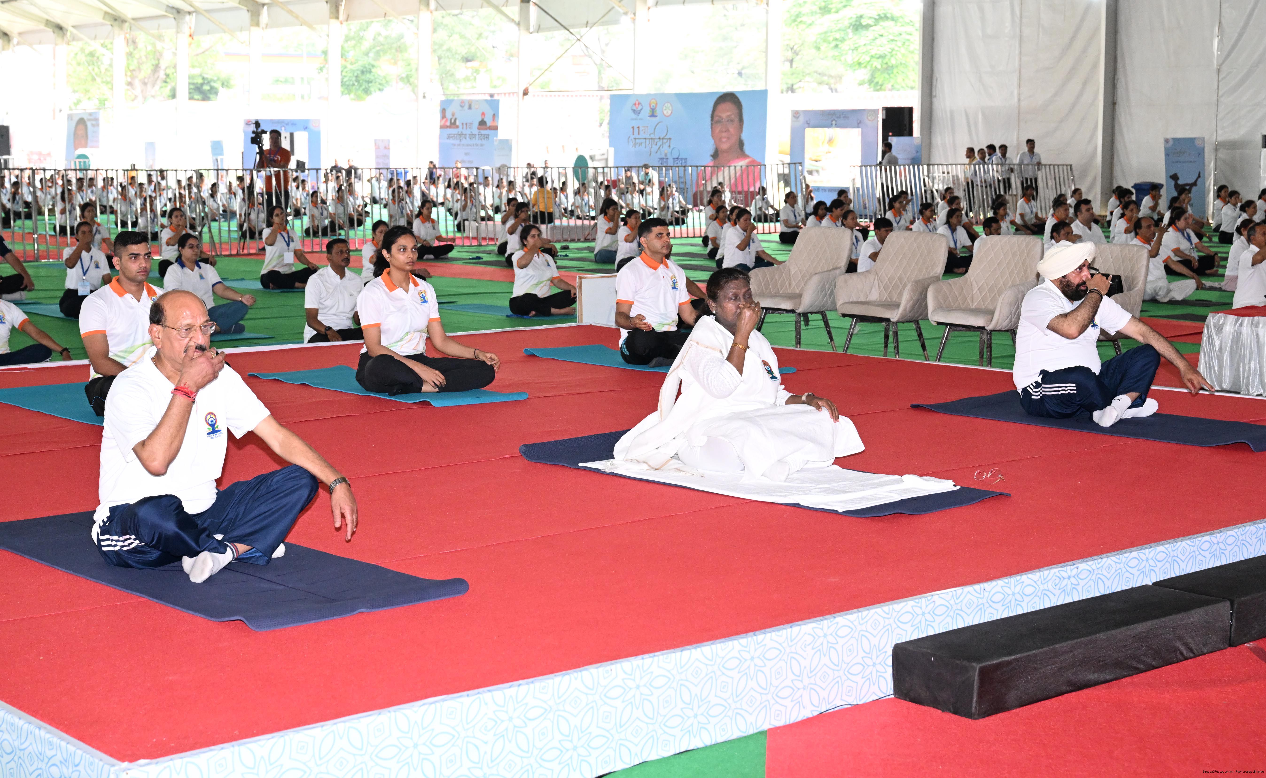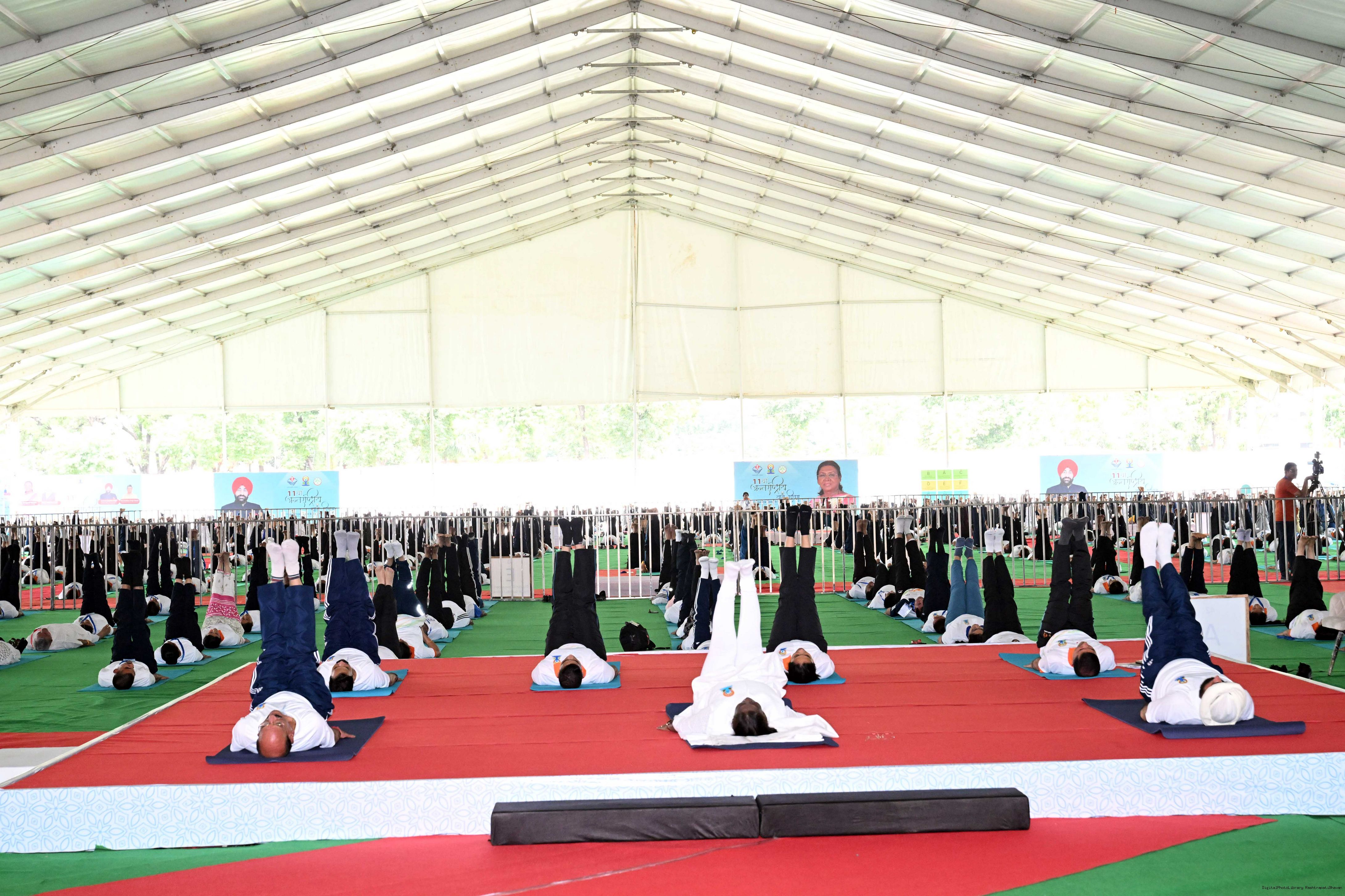 | Caption: | The President of India, Smt Droupadi Murmu participated in a mass yoga demonstration at the Uttarakhand State Police Line Maidan, Dehradun, on the International Yoga Day on June 21, 2025. |