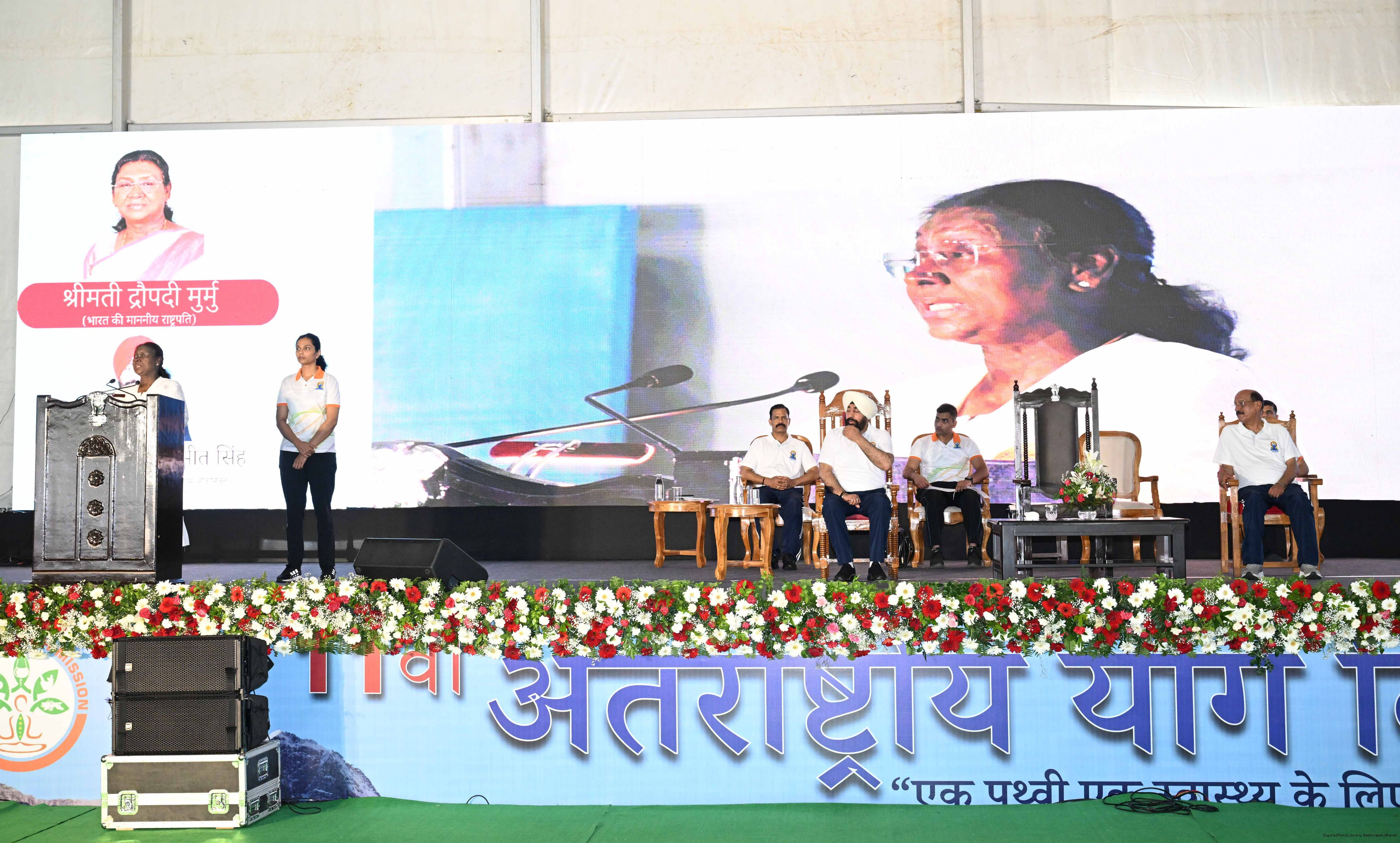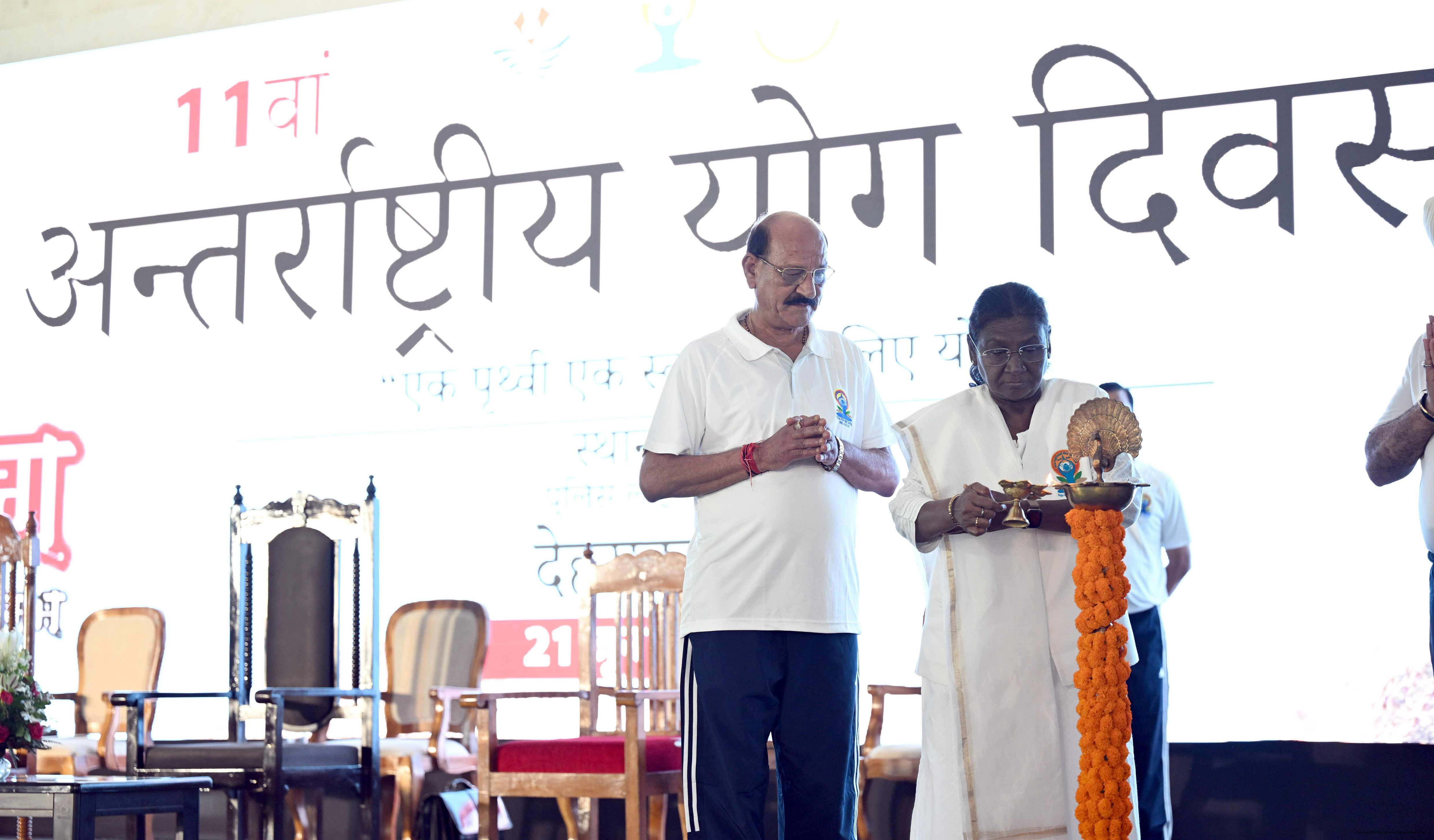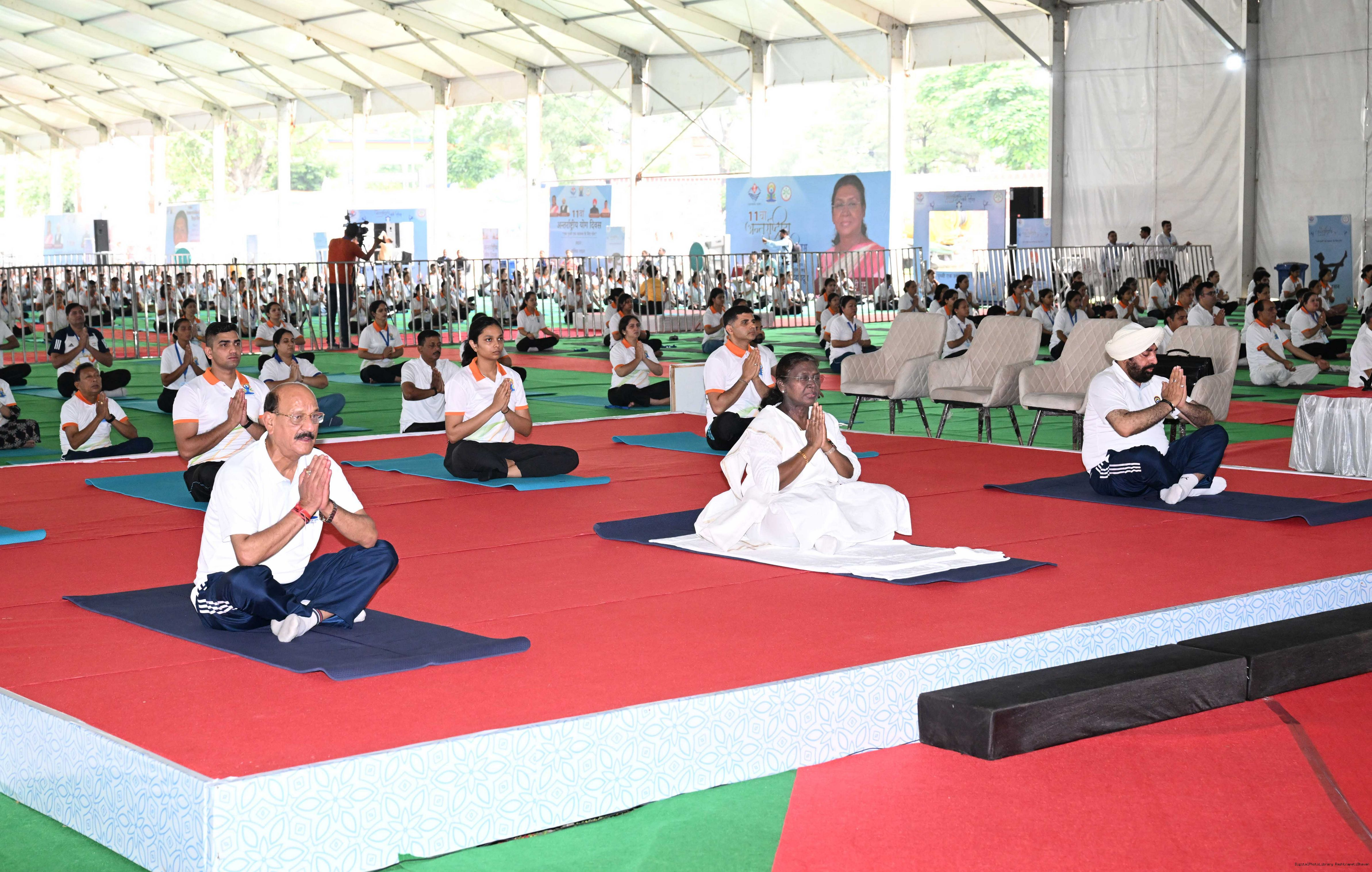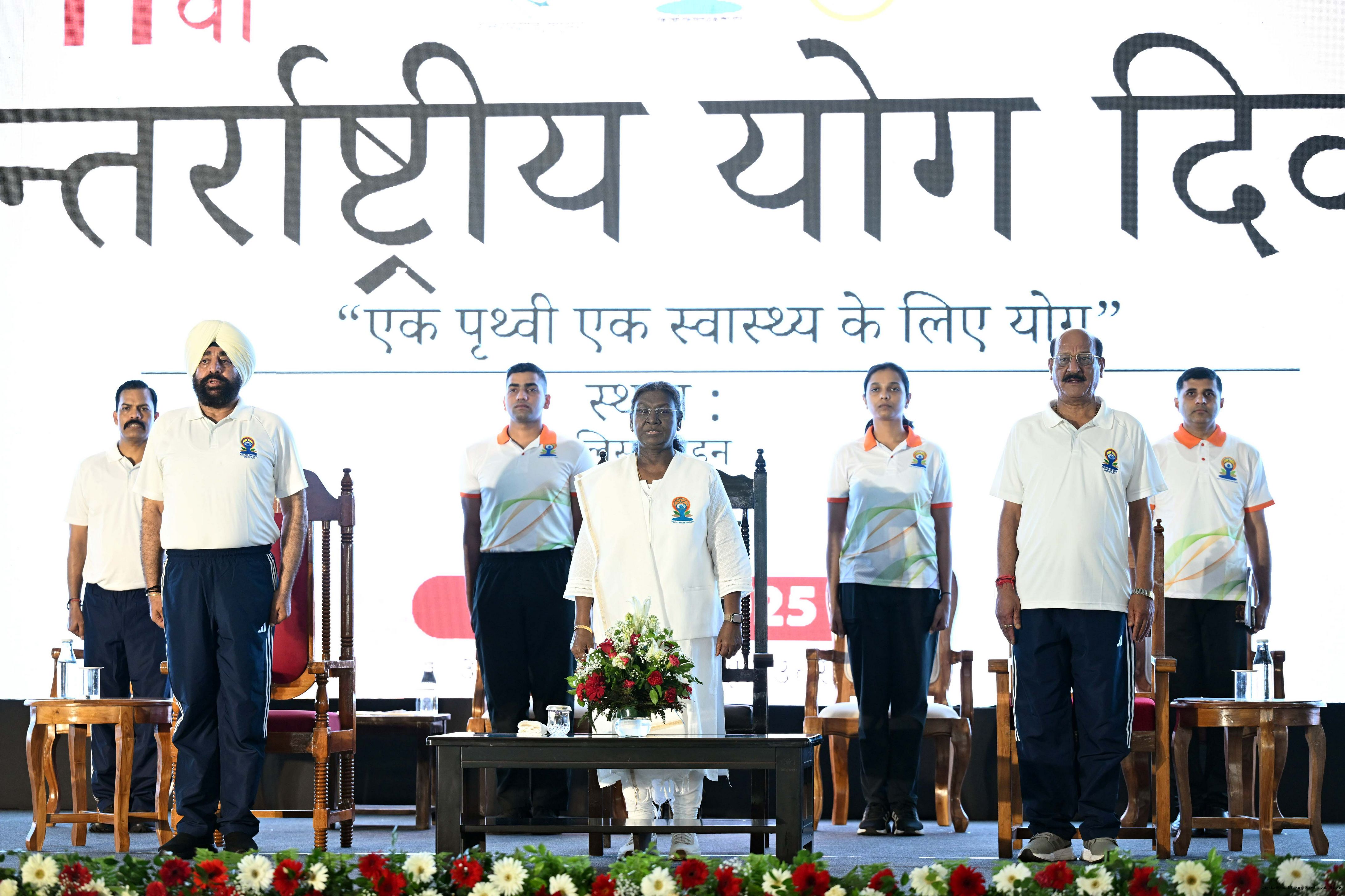 | Caption: | The President of India, Smt Droupadi Murmu participated in a mass yoga demonstration at the Uttarakhand State Police Line Maidan, Dehradun, on the International Yoga Day on June 21, 2025. |