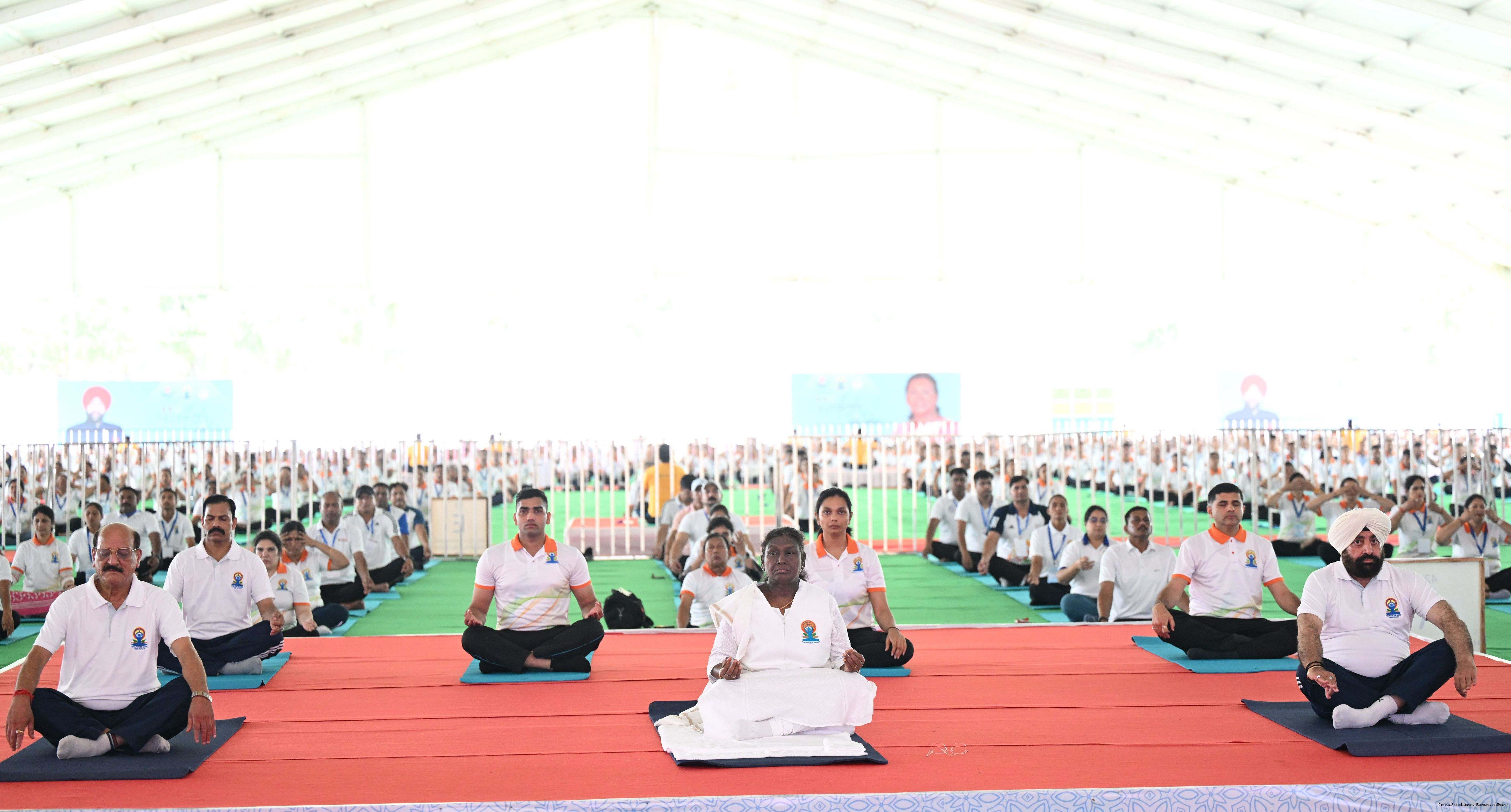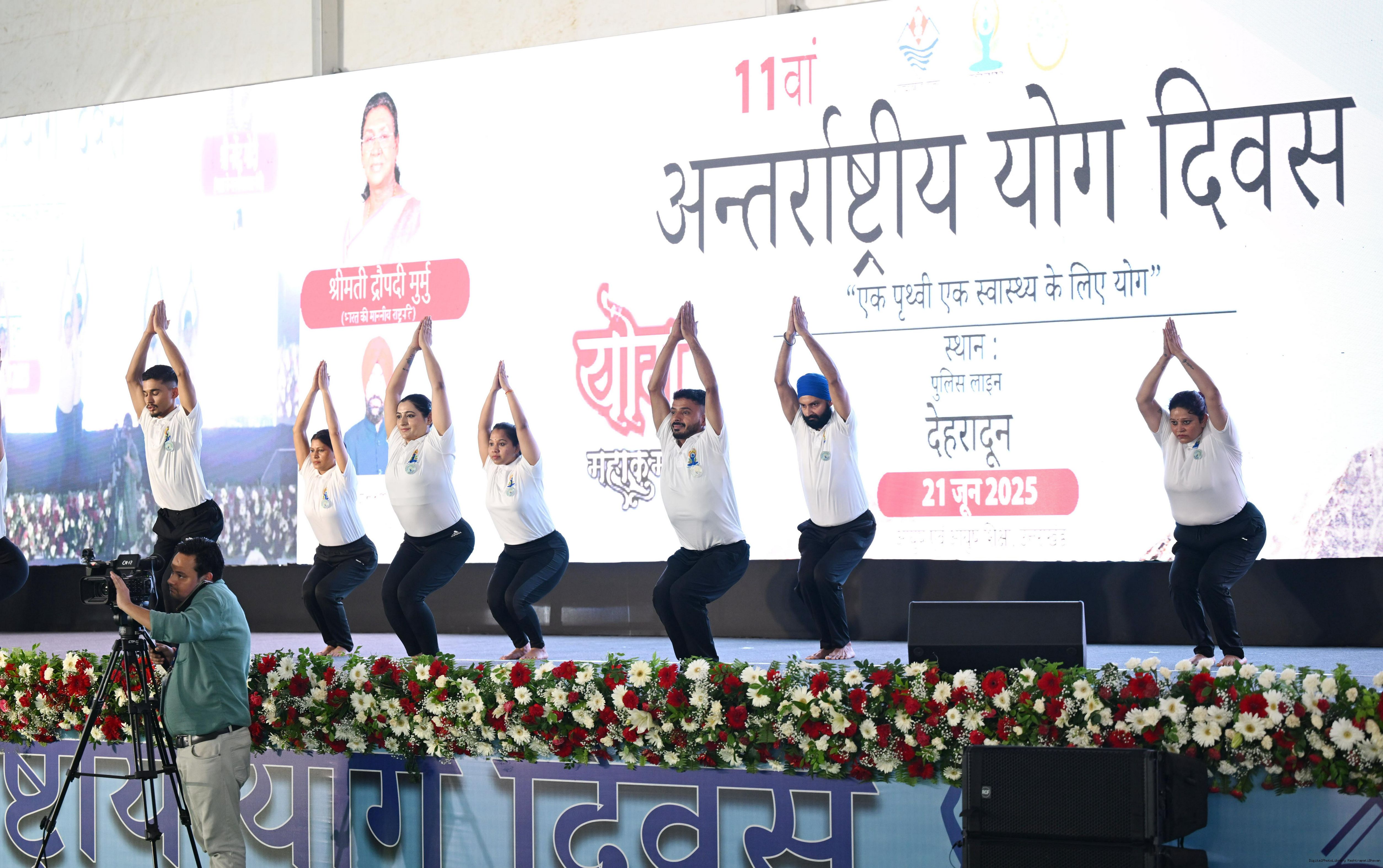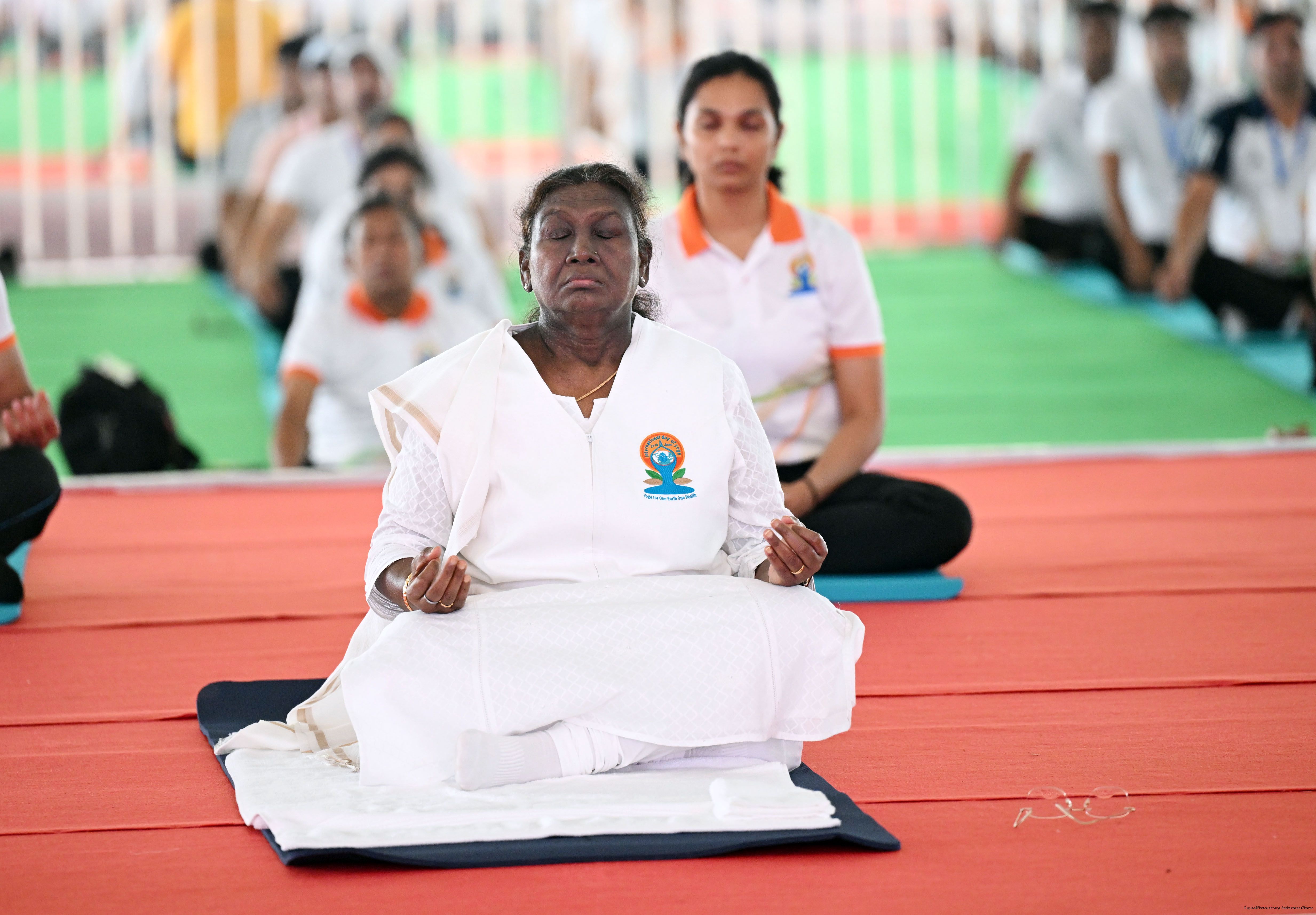 | Caption: | The President of India, Smt Droupadi Murmu participated in a mass yoga demonstration at the Uttarakhand State Police Line Maidan, Dehradun, on the International Yoga Day on June 21, 2025. |
